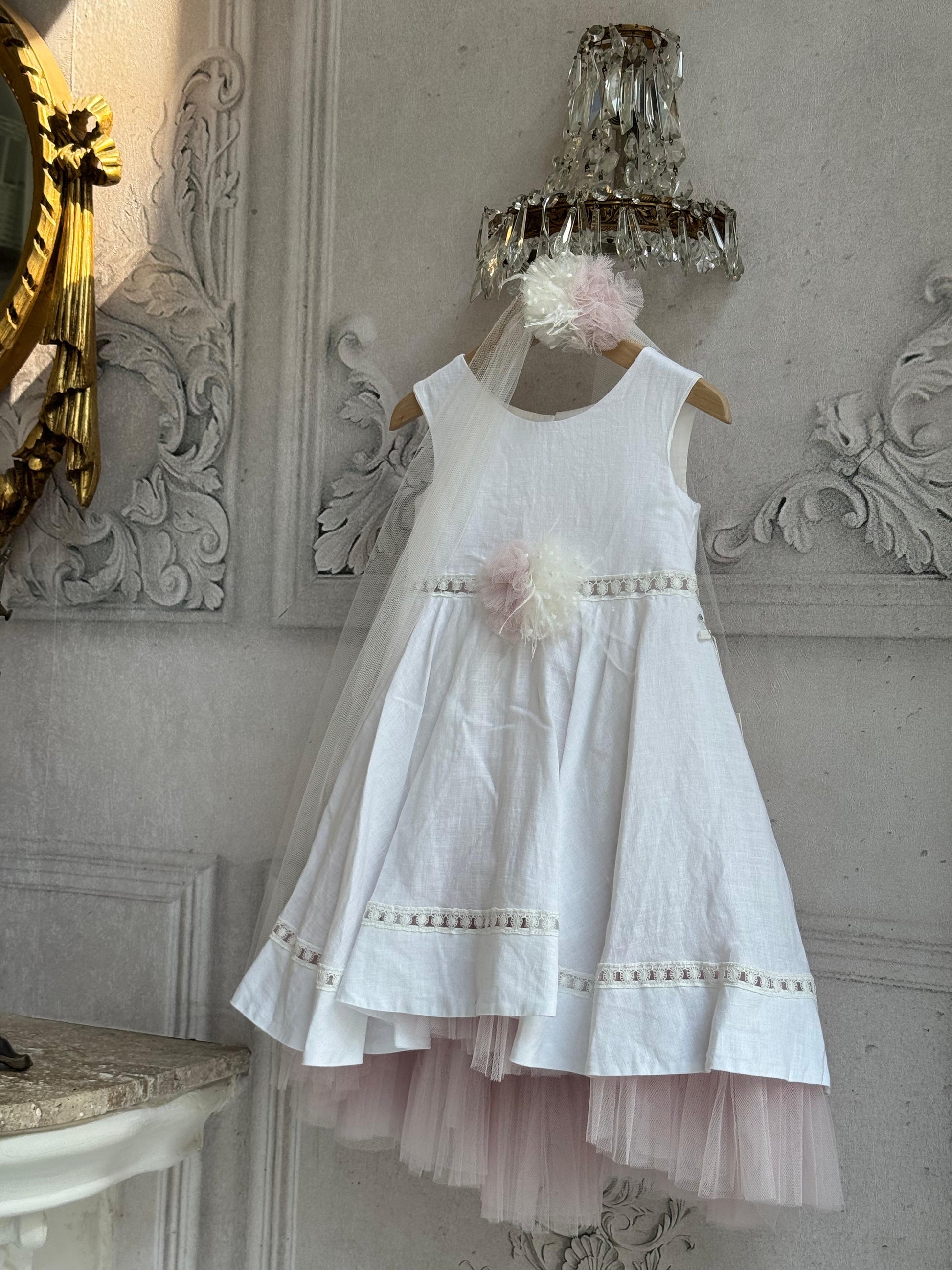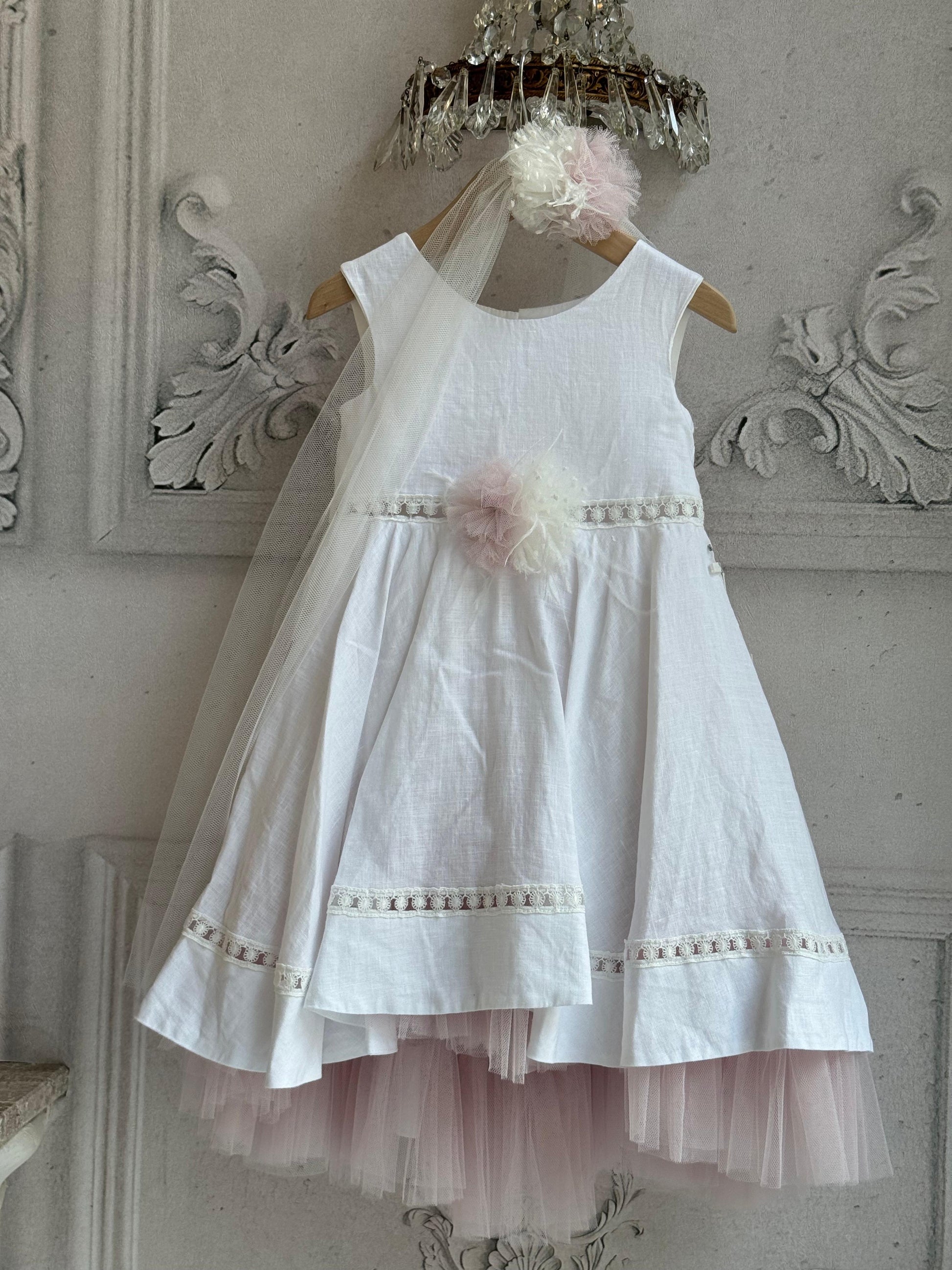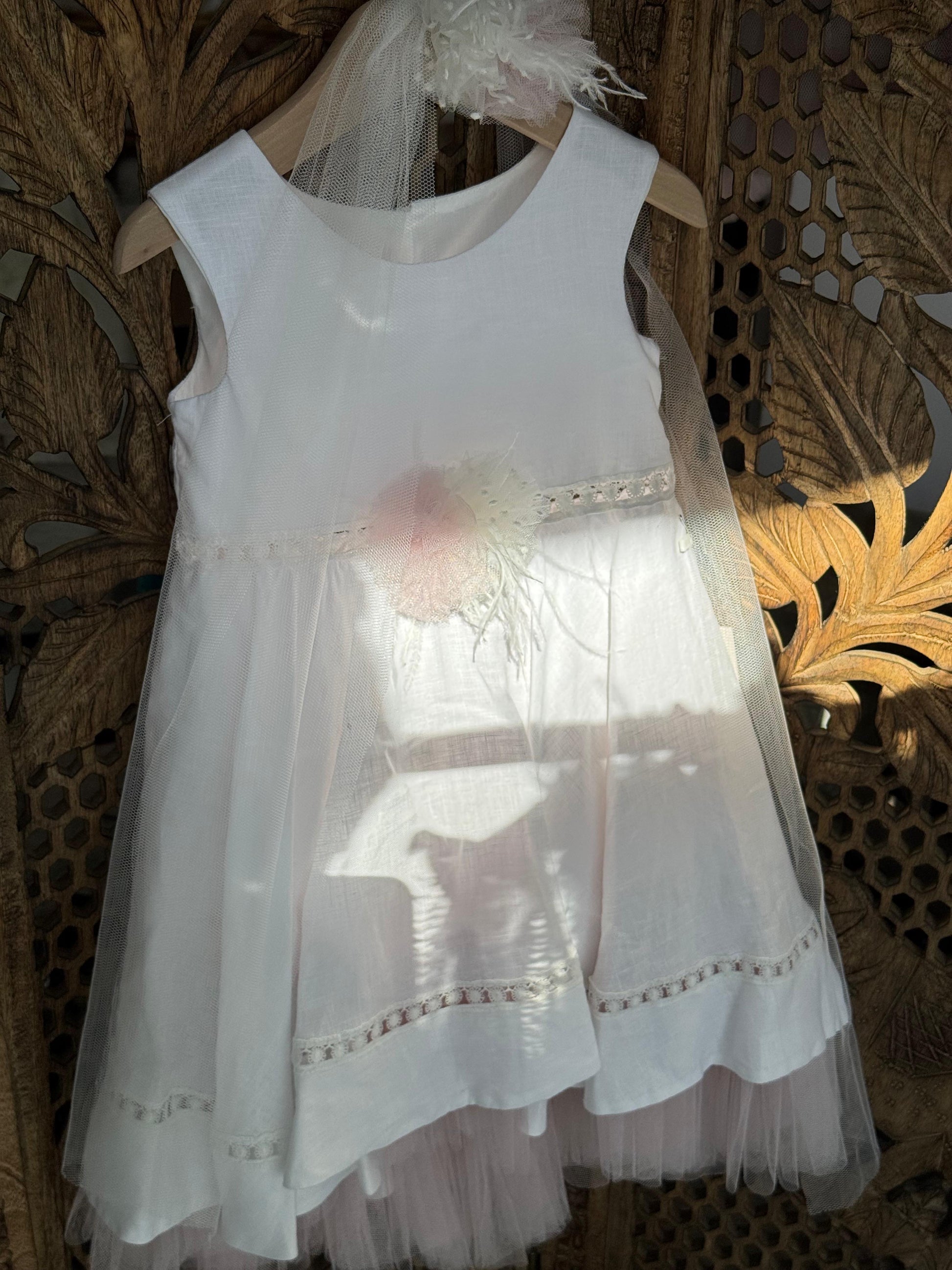 Fustan ceremonial me shtresa tyli dhe astar posht.