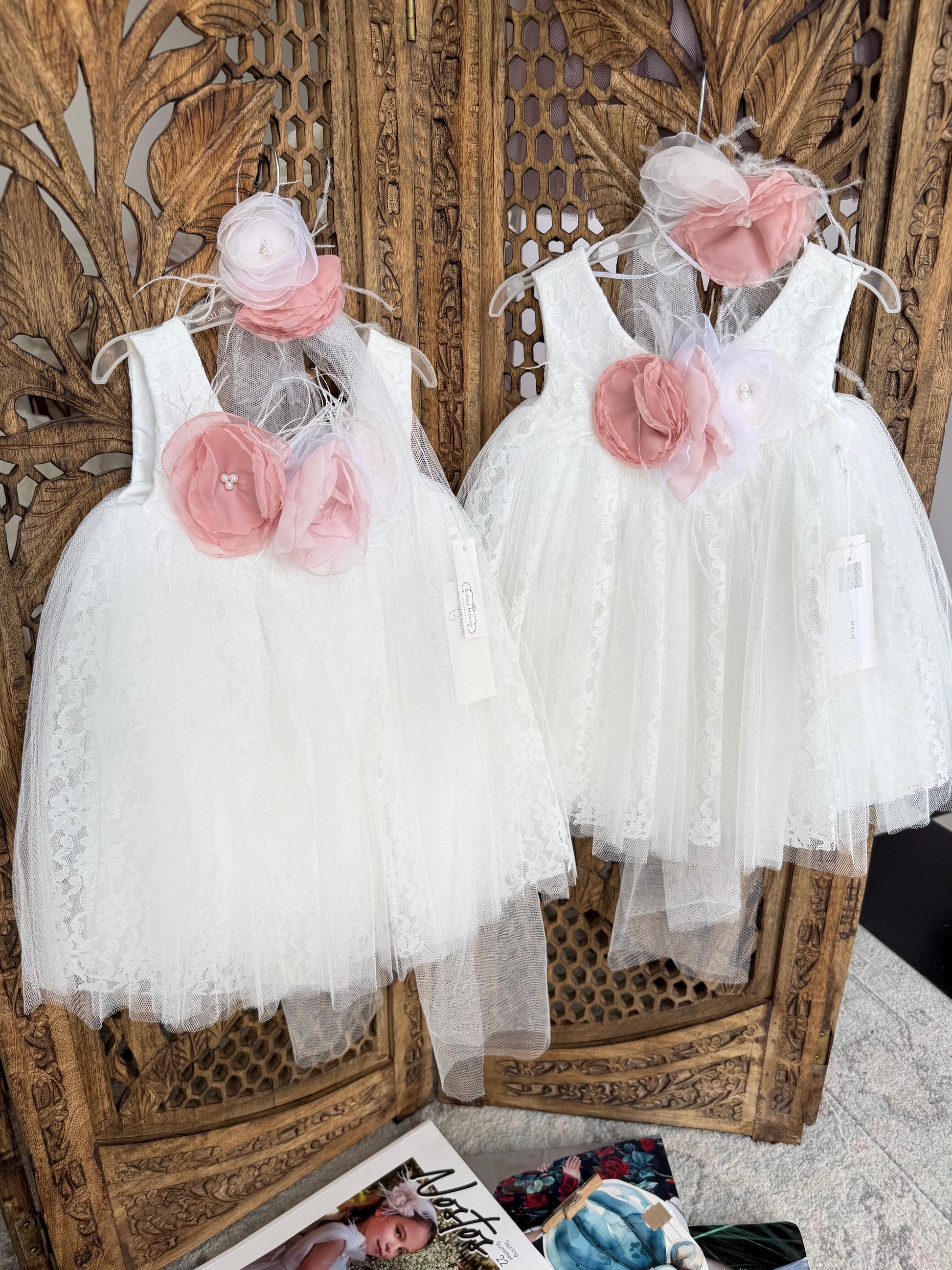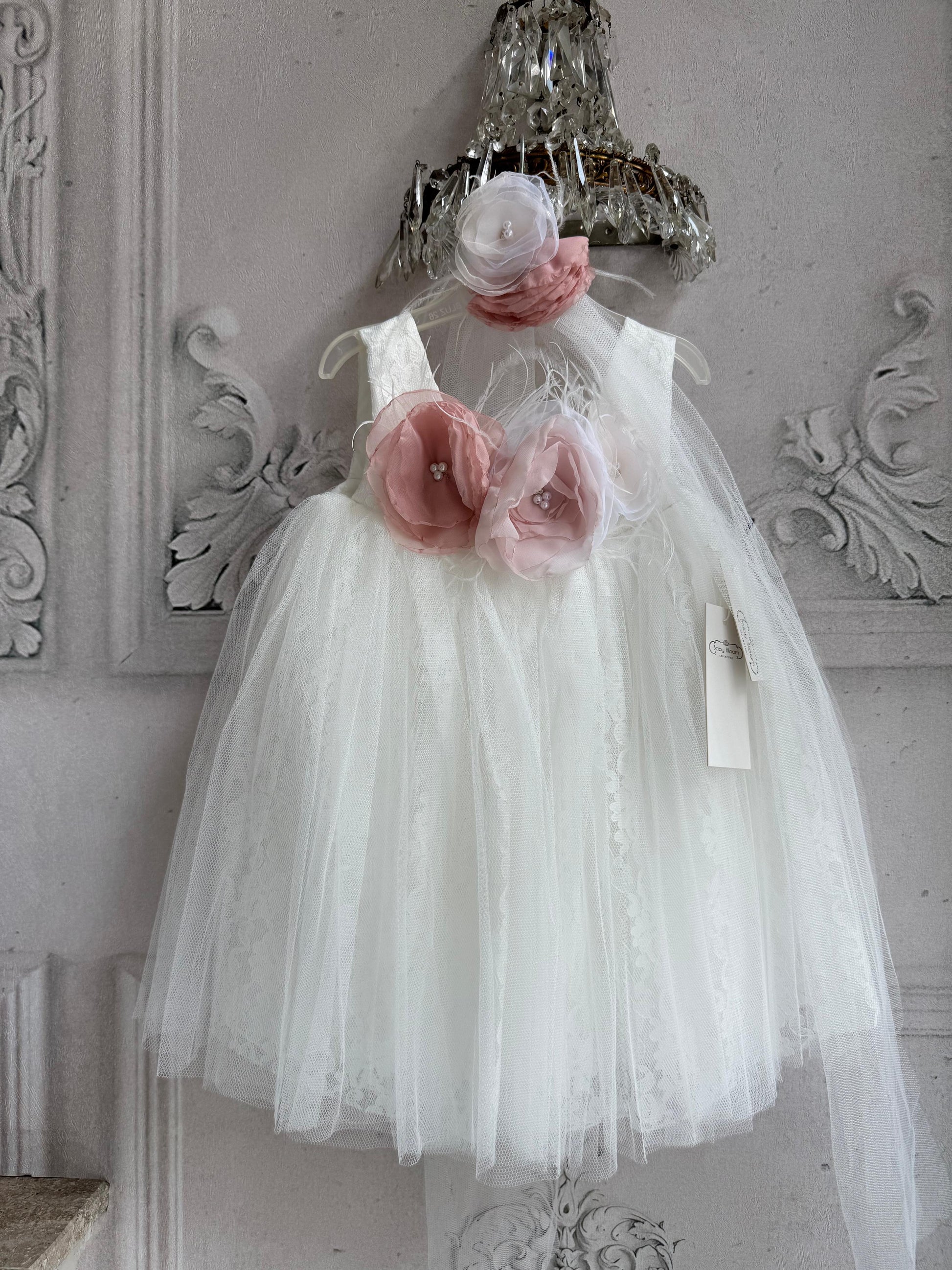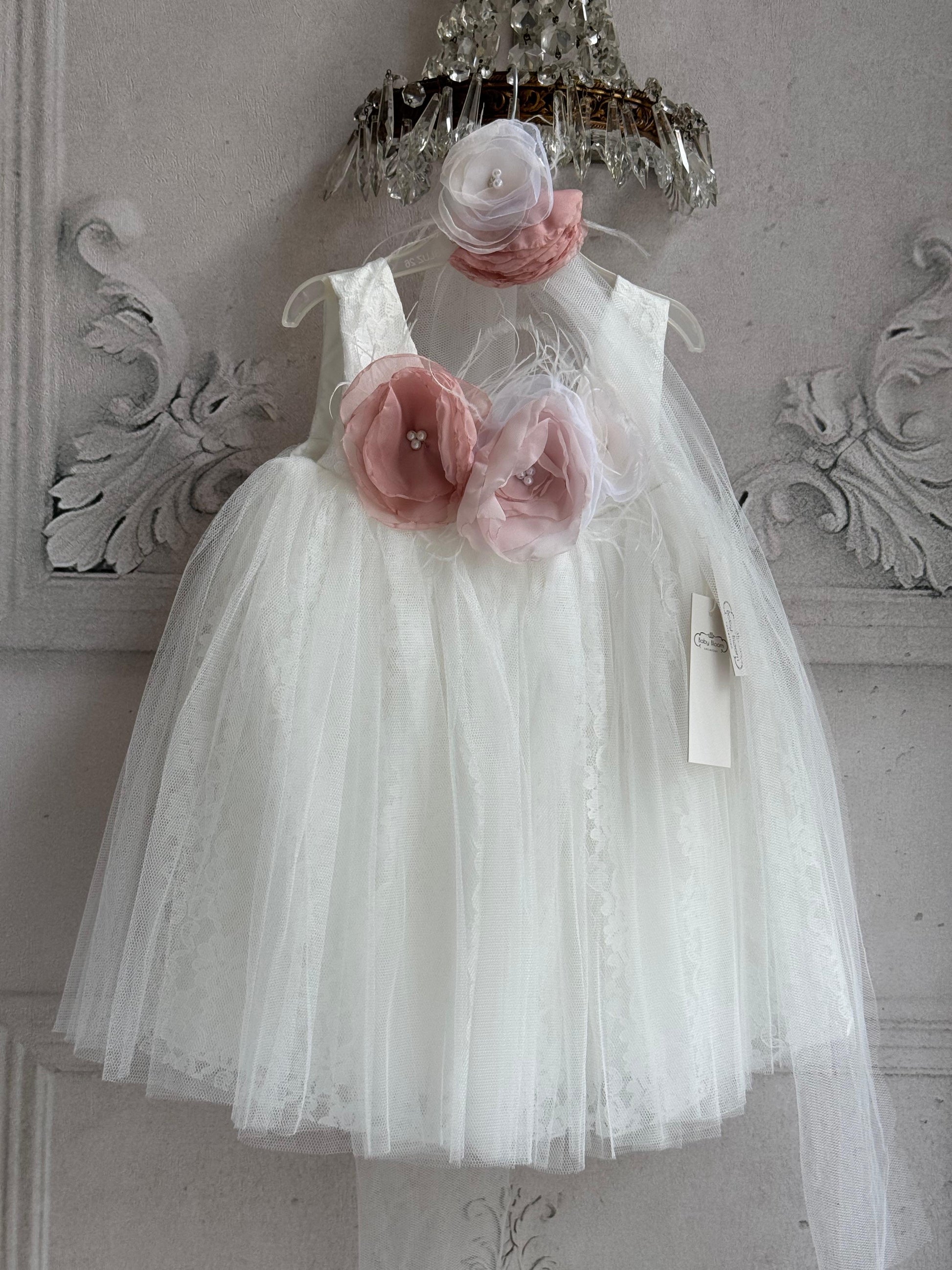 Fustan ceremonial, veror! Me shtresa tyli dhe tantelle dhe detaje delikate lulesh!