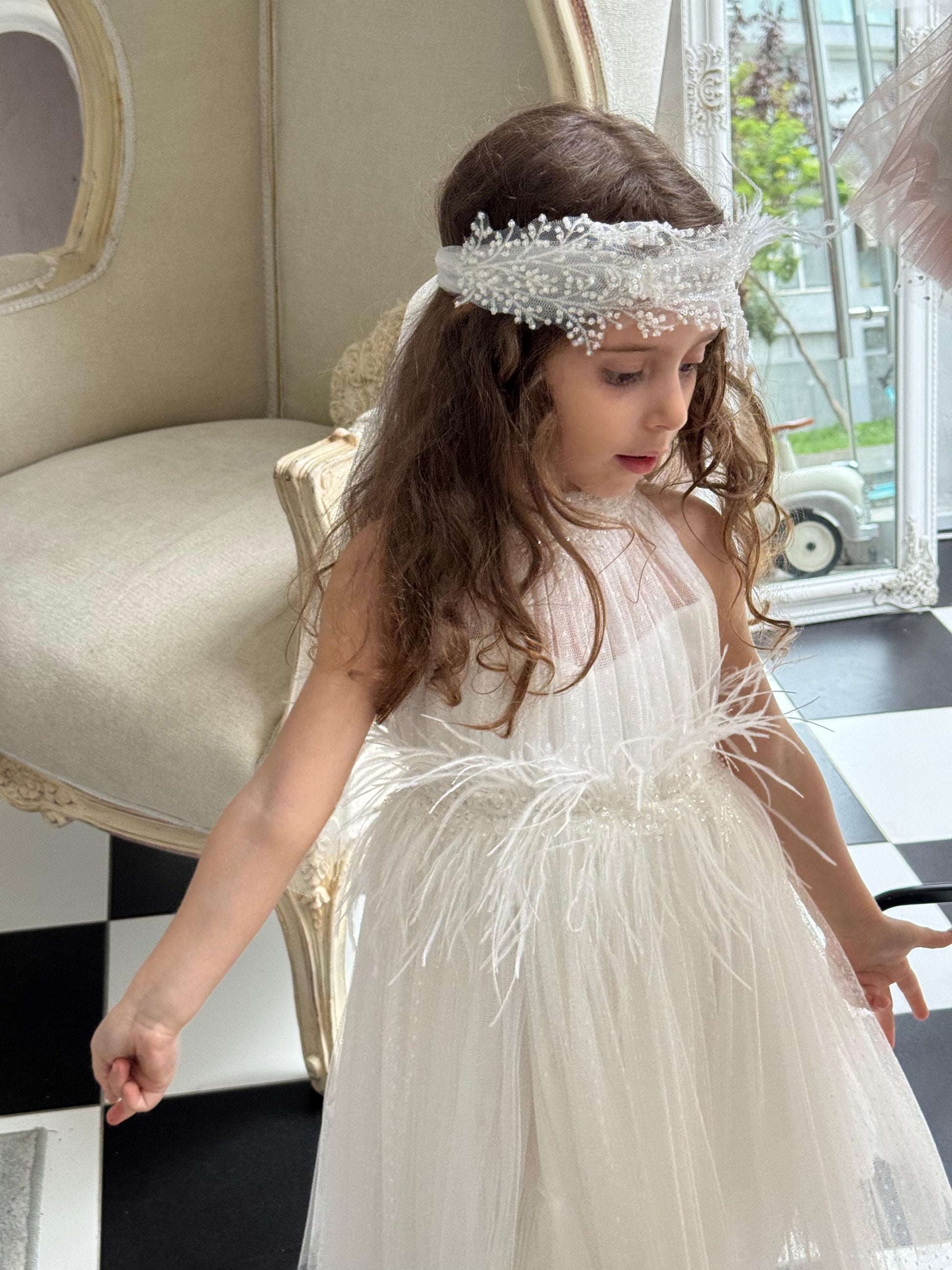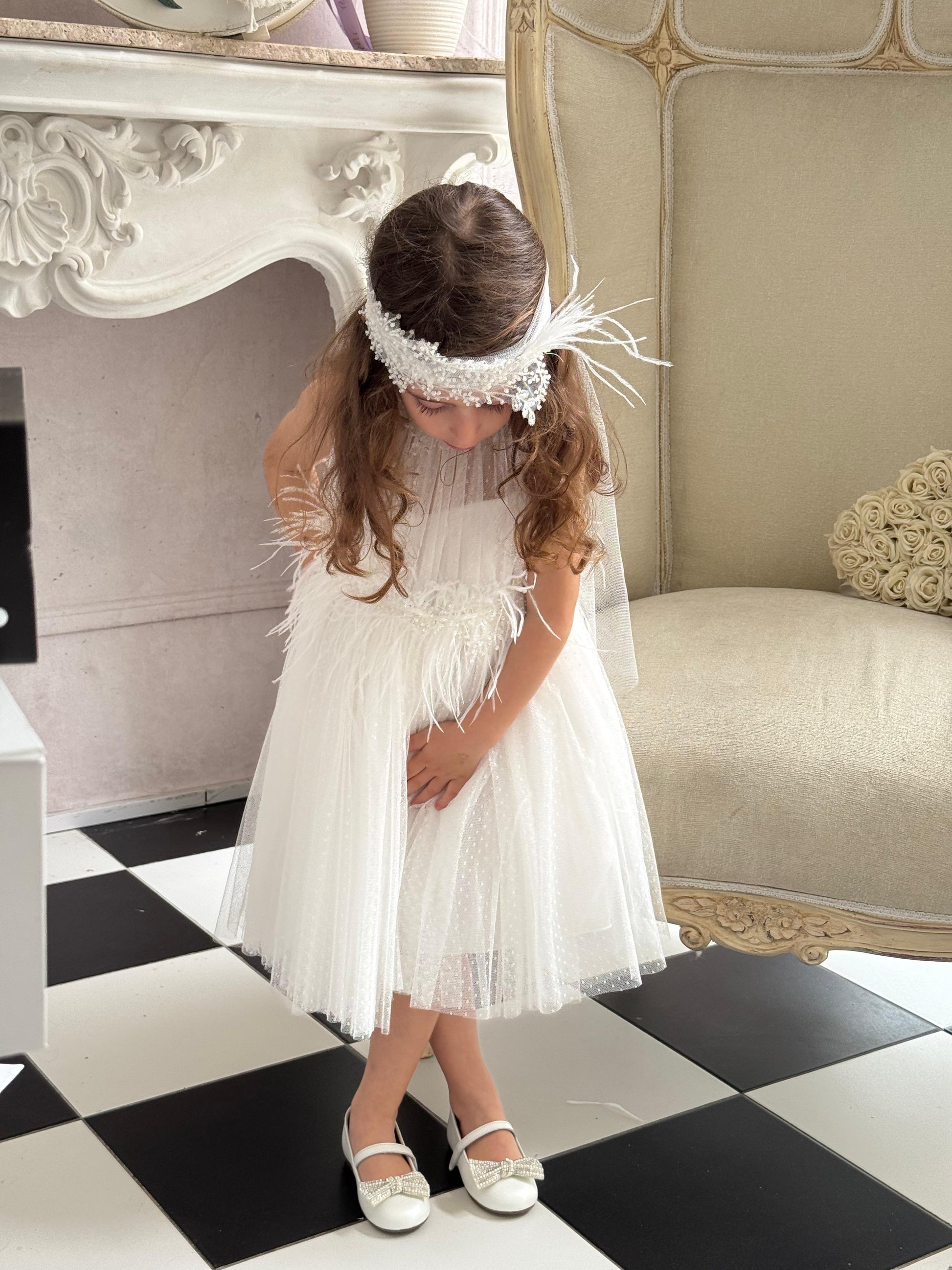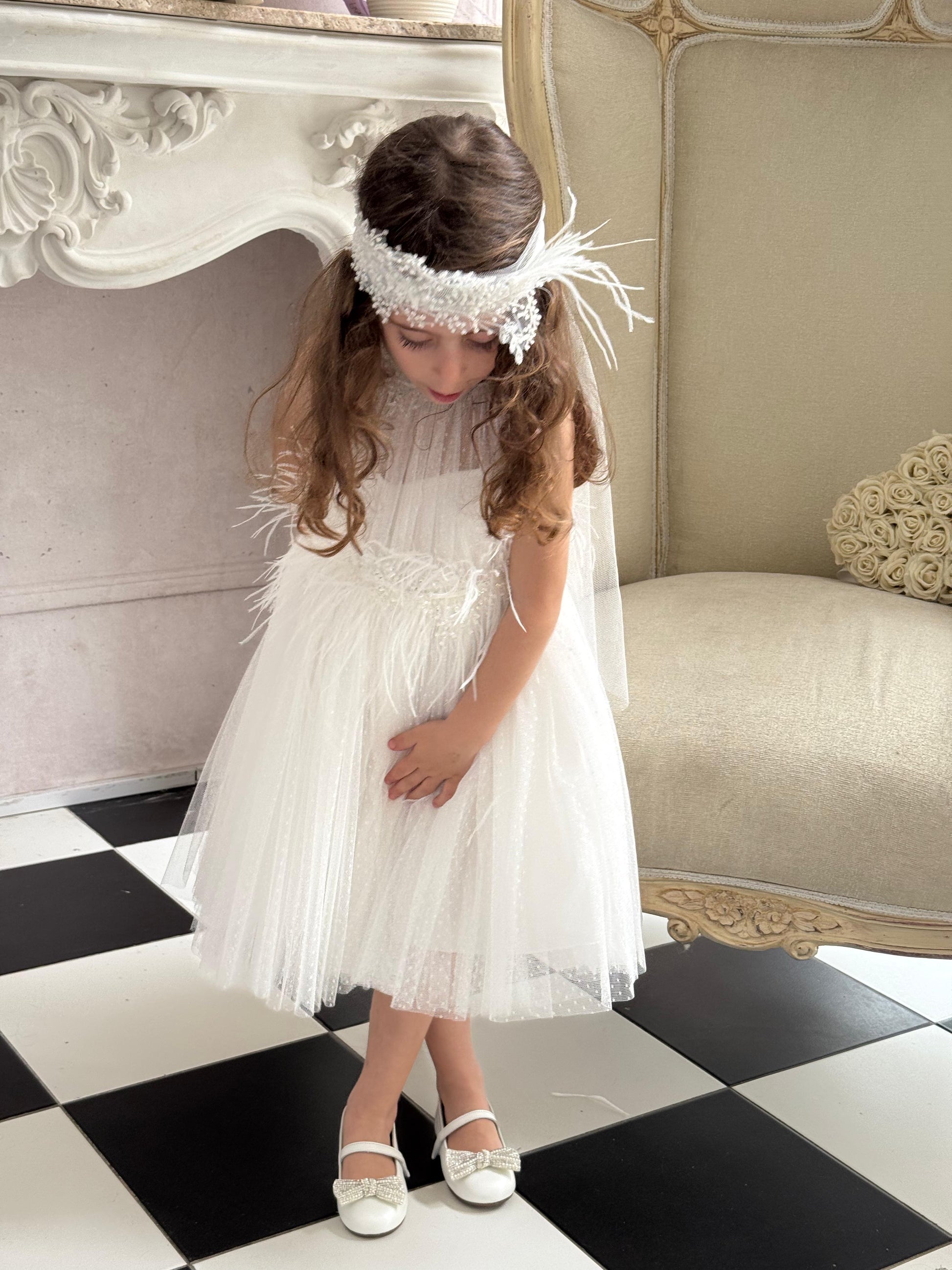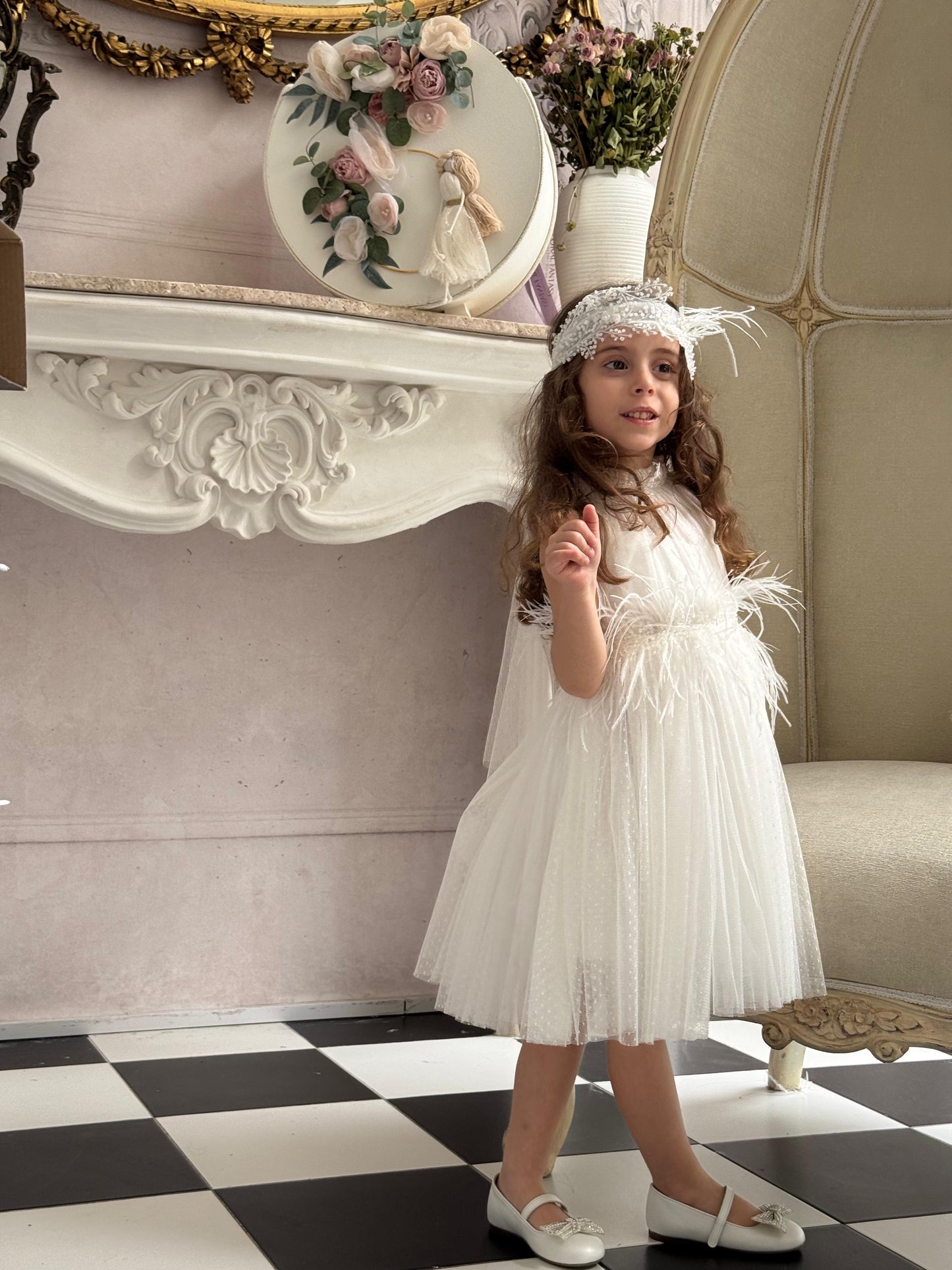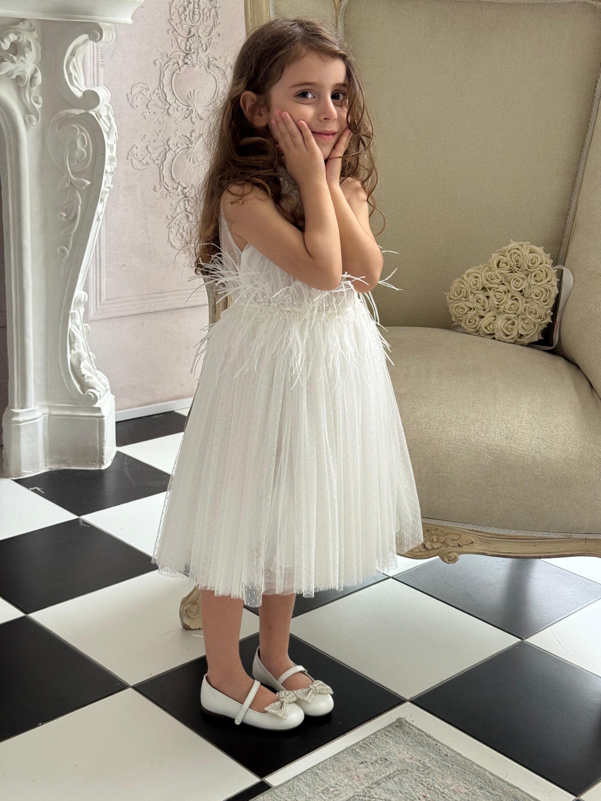 Fustan pagezimesh dhe eventesh, me fyt te mbyllur, me detaje kristalesh dhe puplash.