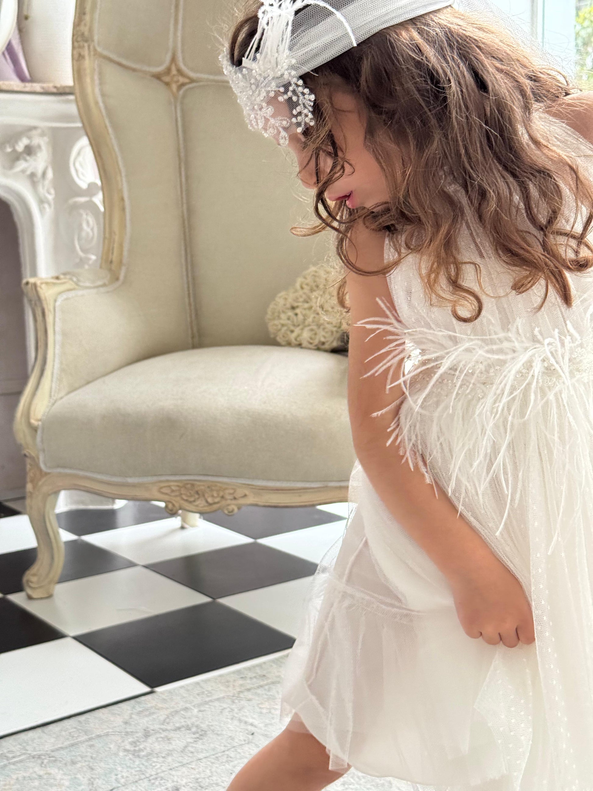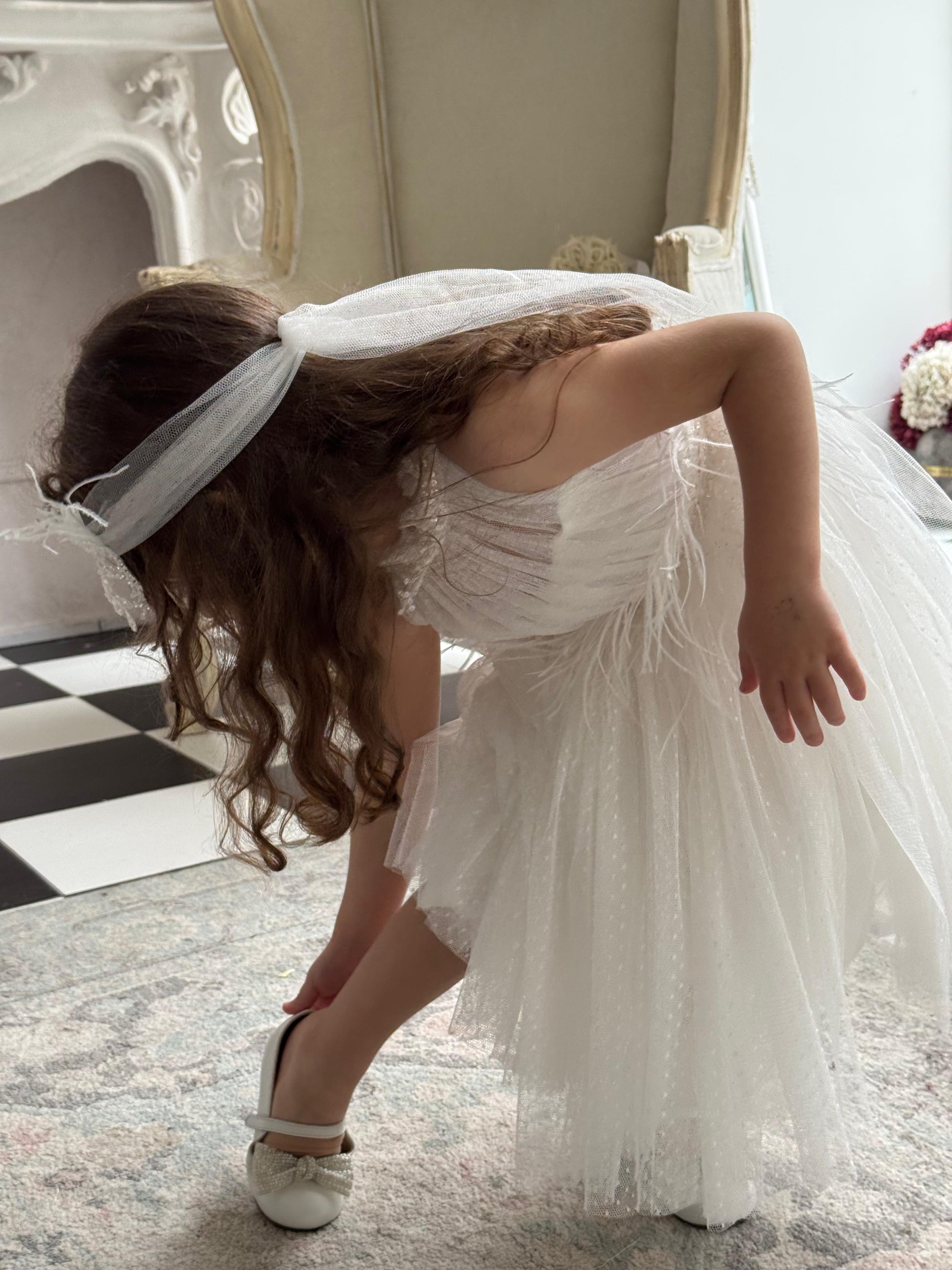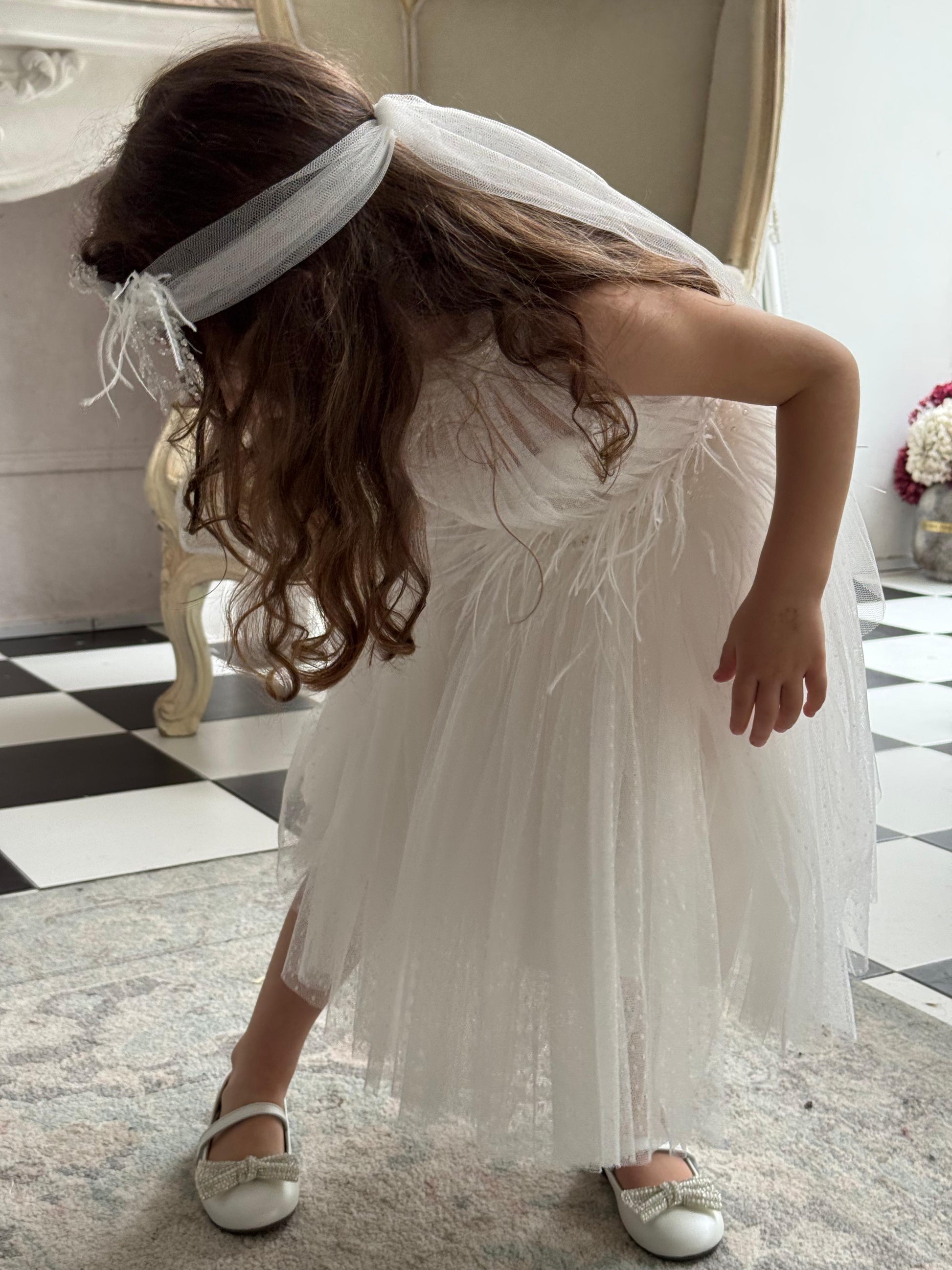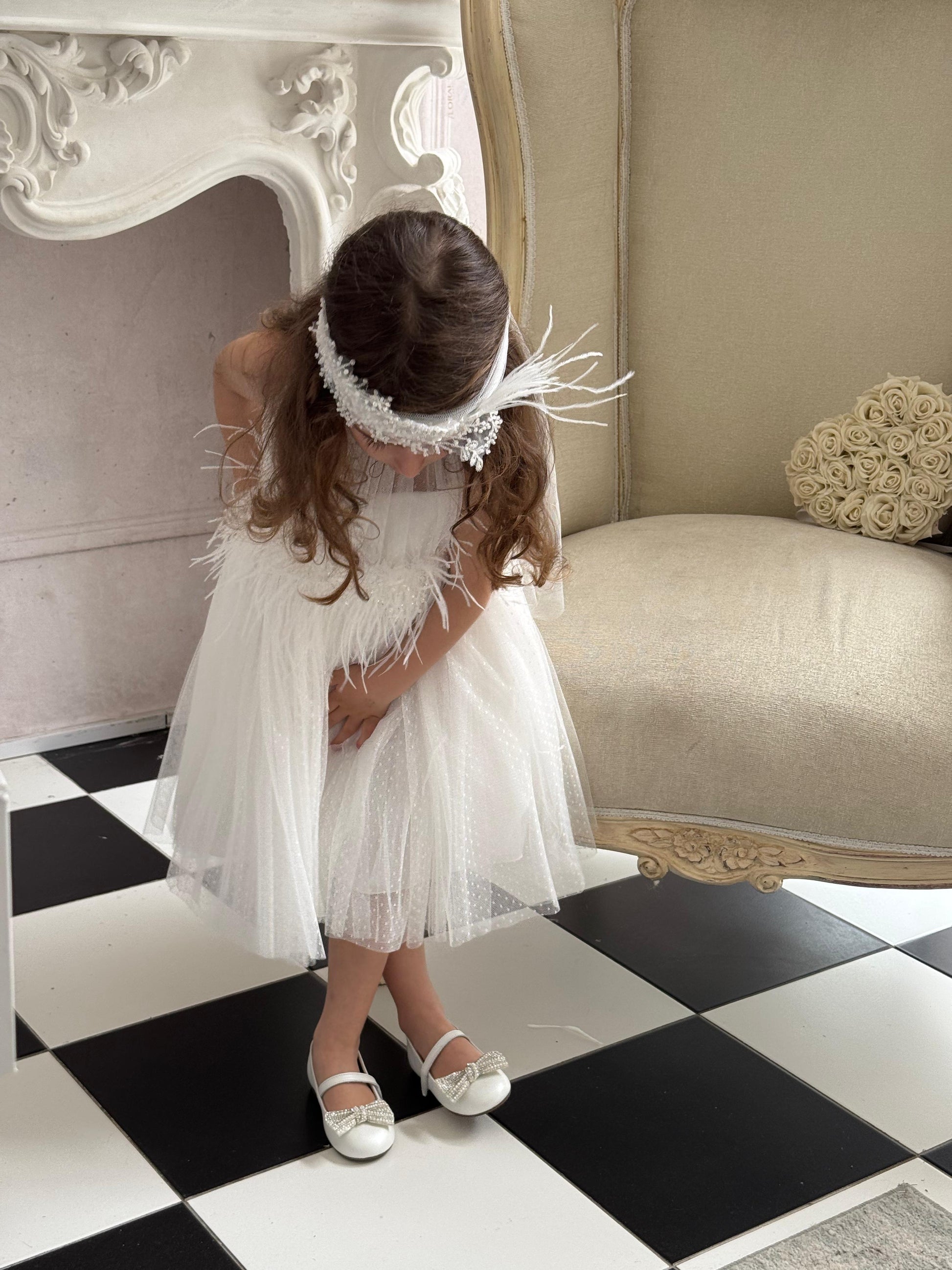 Fustan pagezimesh dhe eventesh, me fyt te mbyllur, me detaje kristalesh dhe puplash.