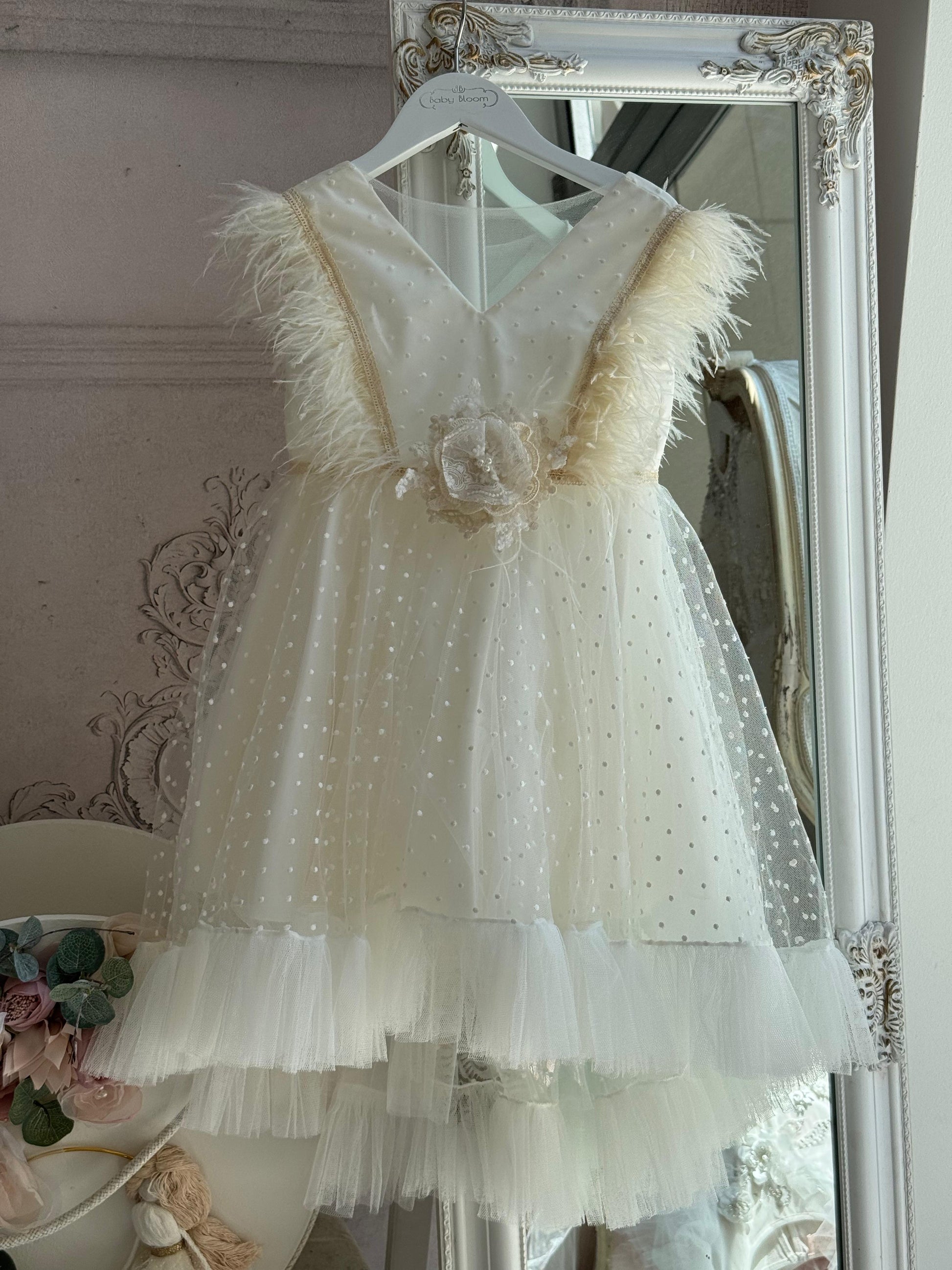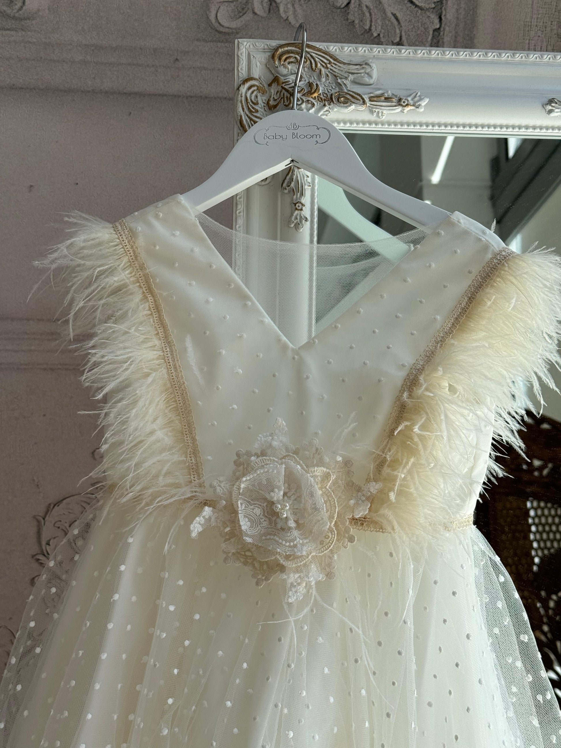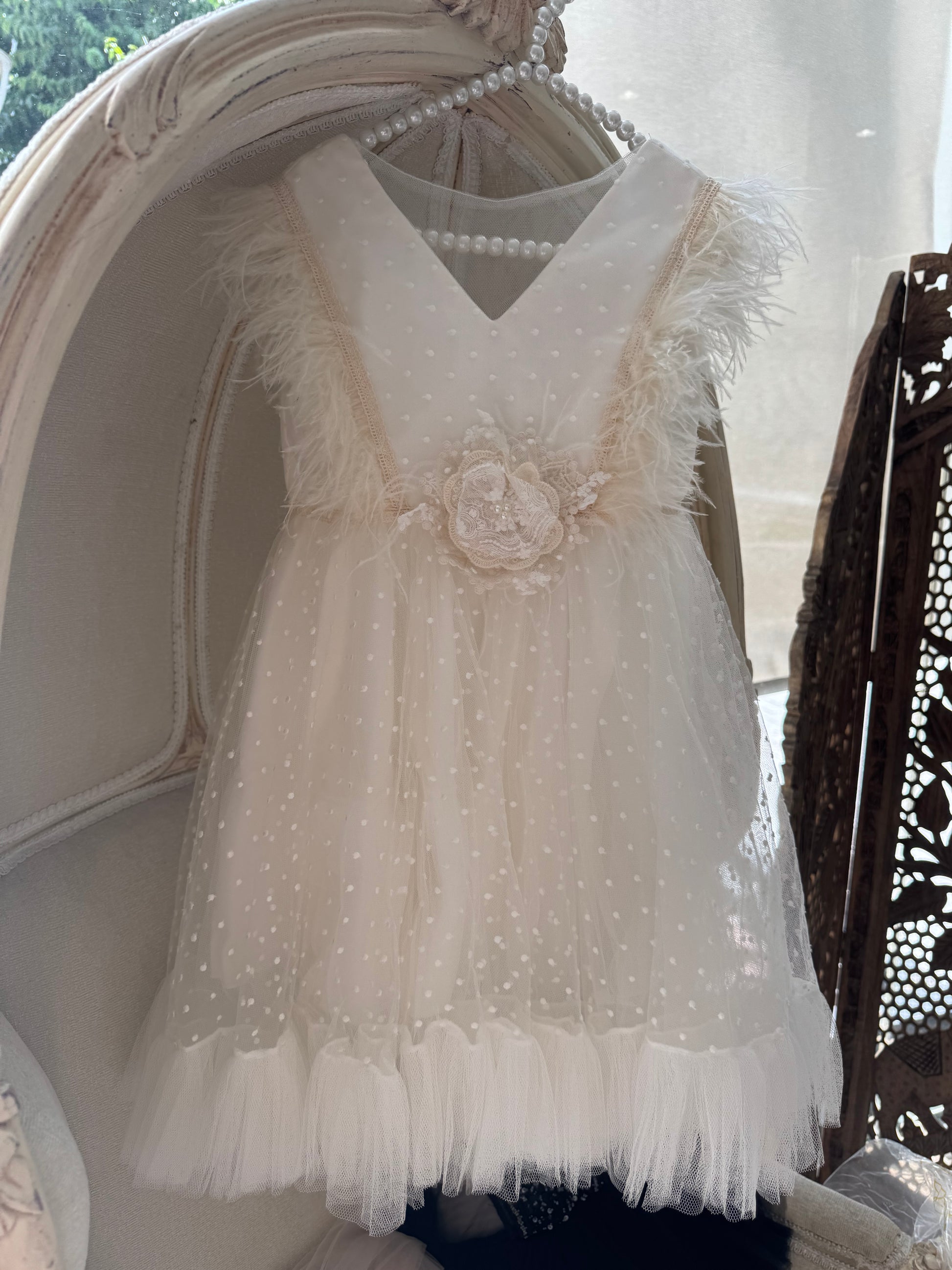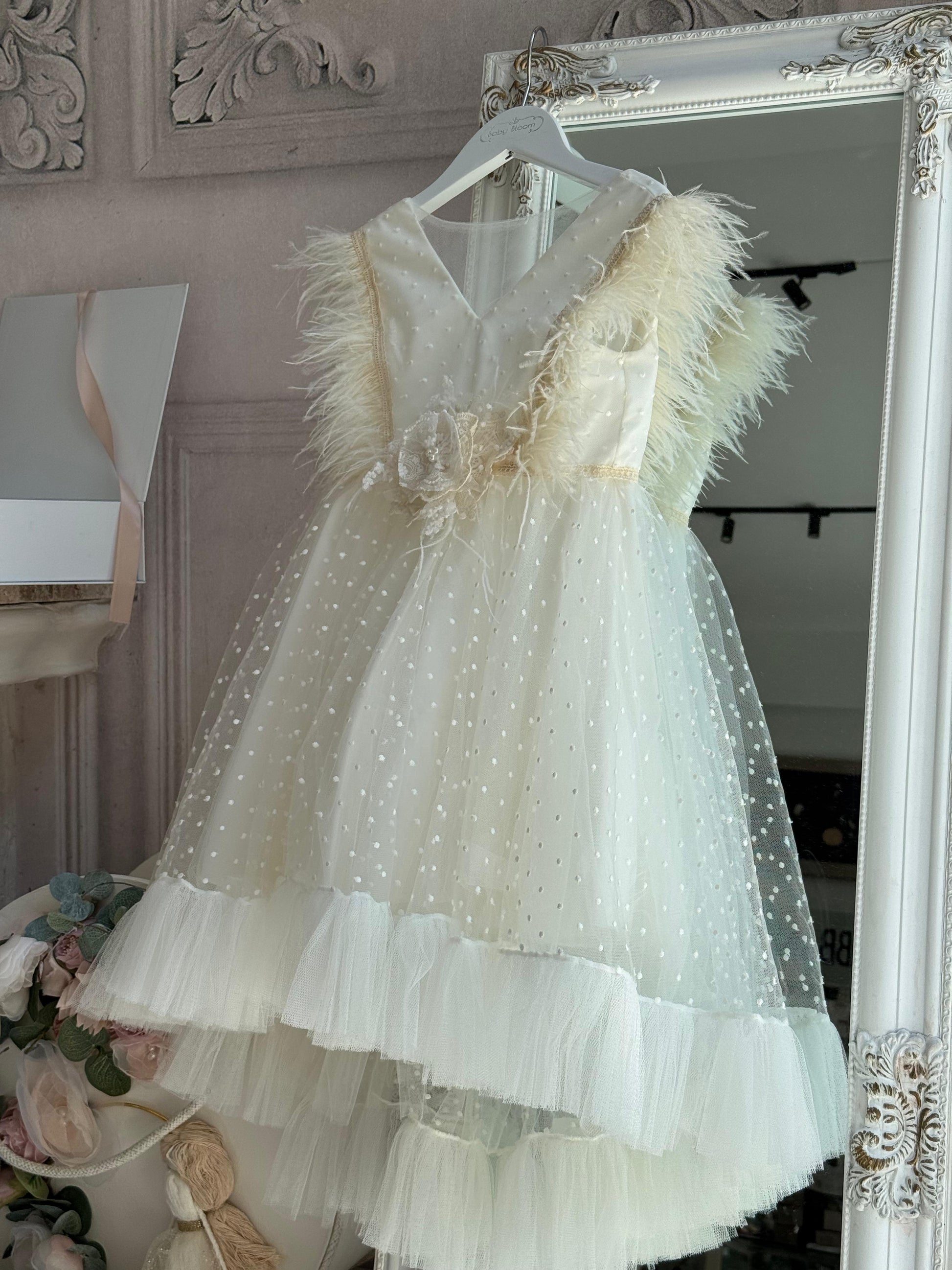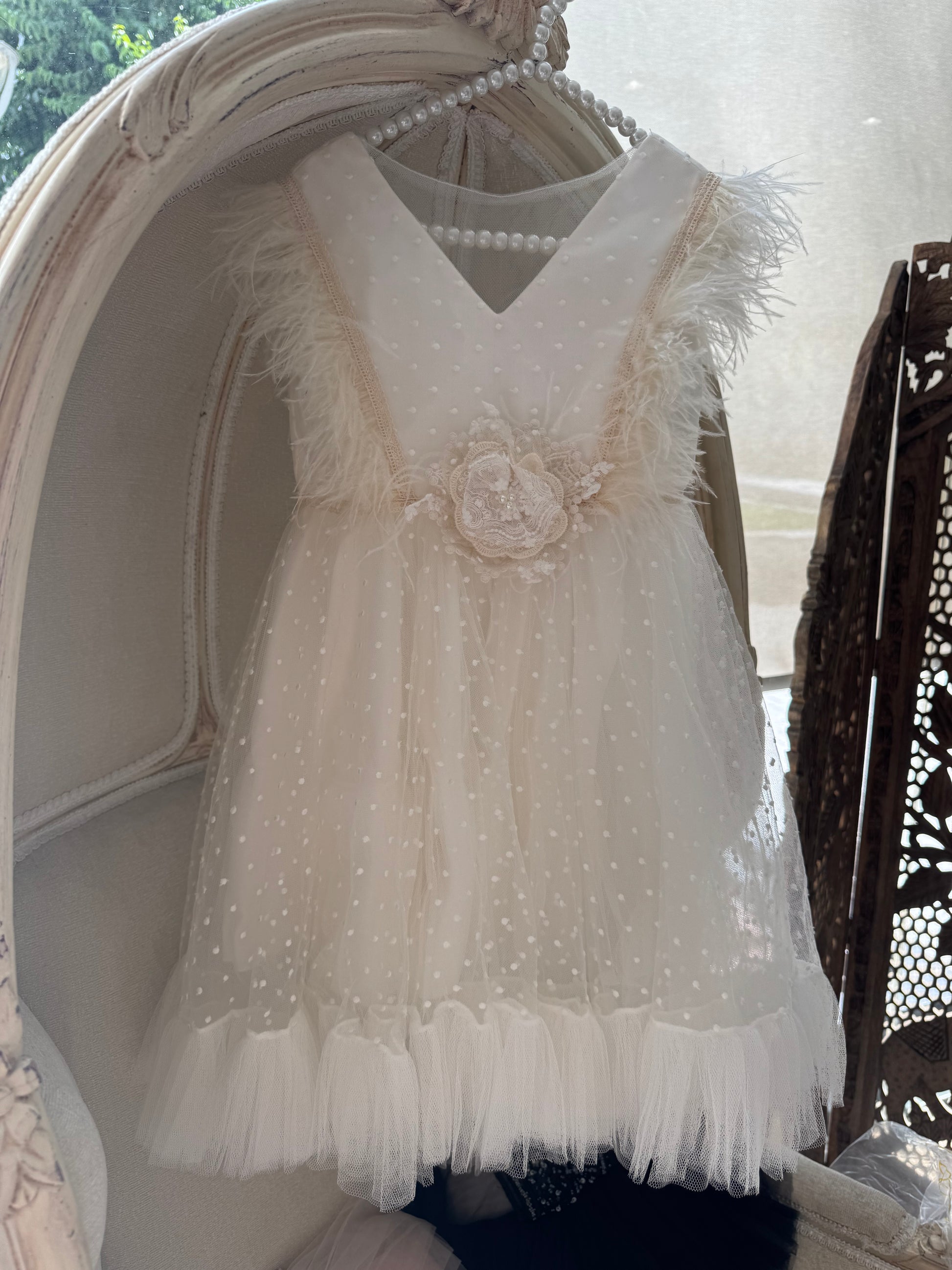 Fustan eventesh dhe pagezimi , me detaje puplash dhe tyl me pika
