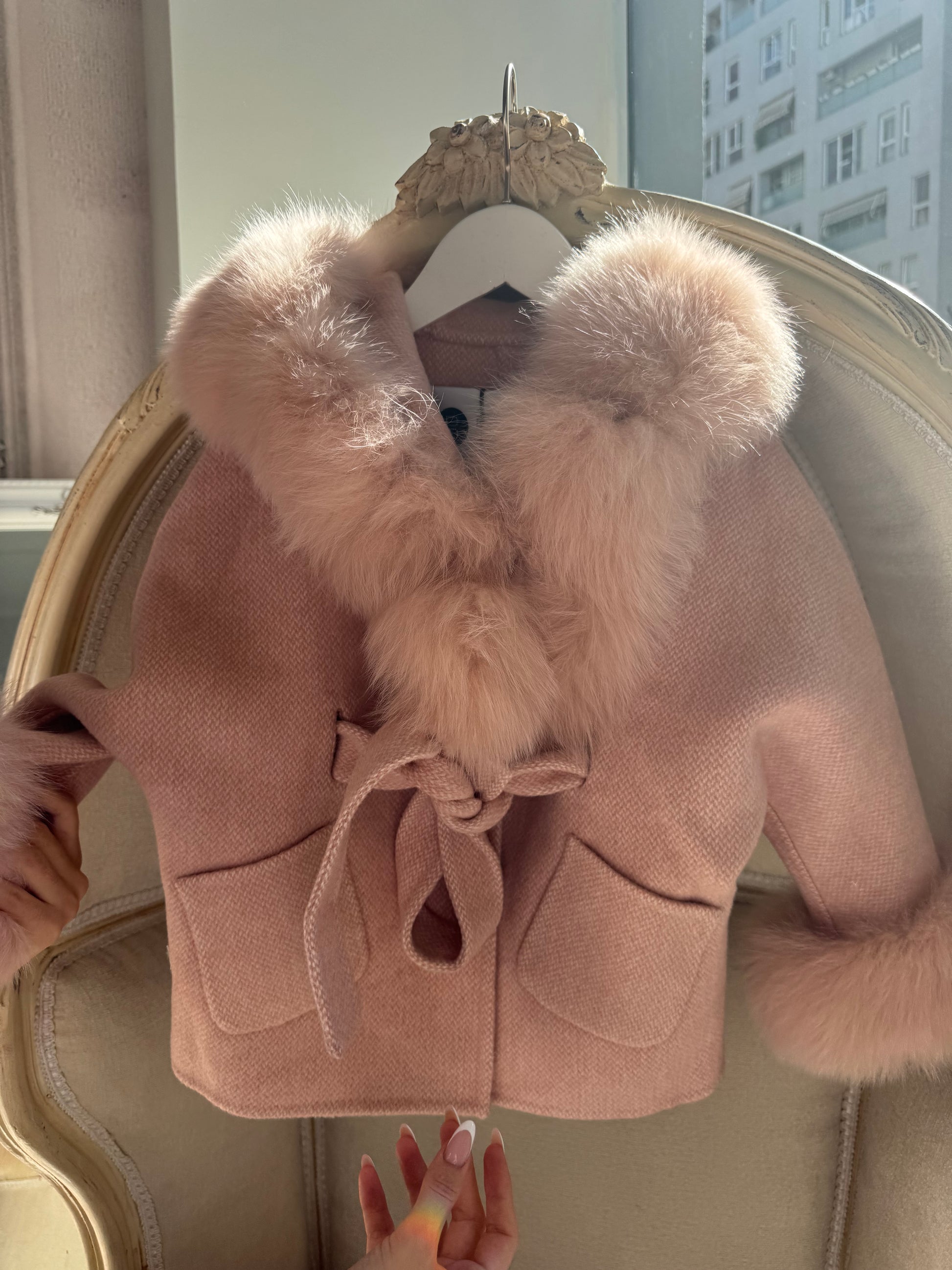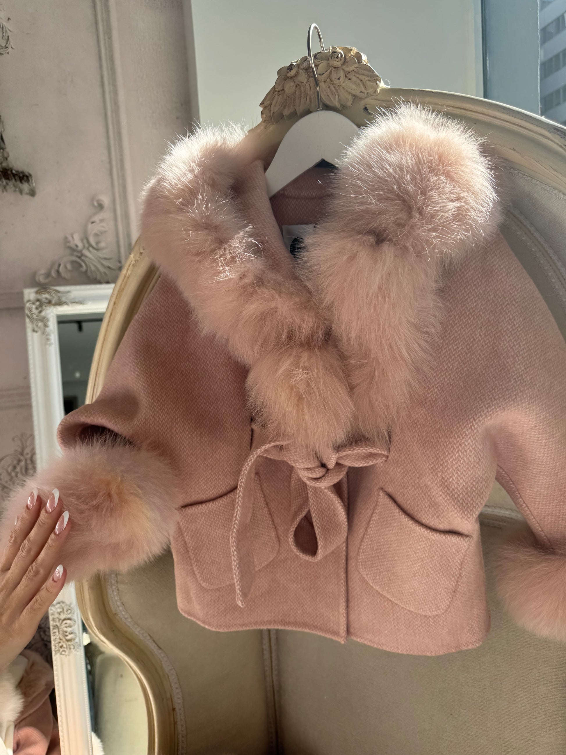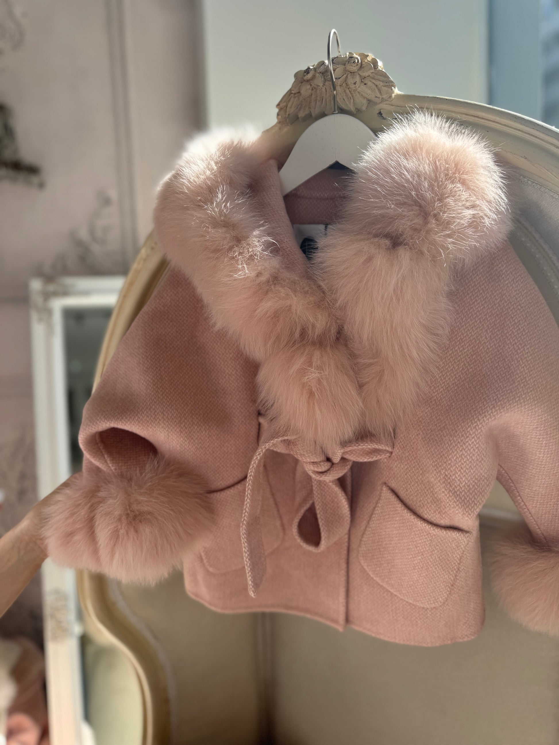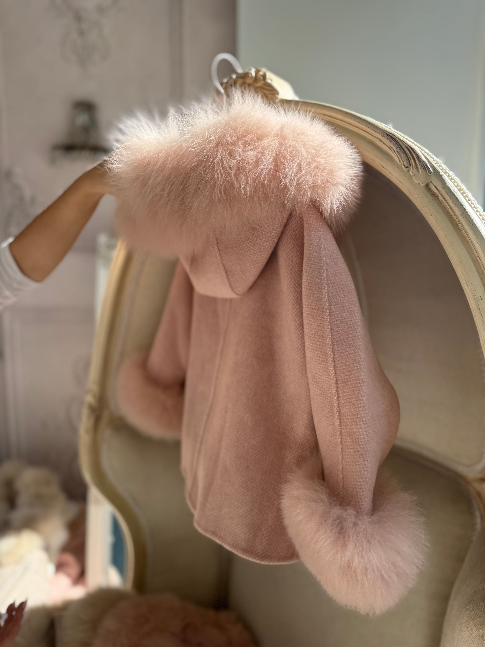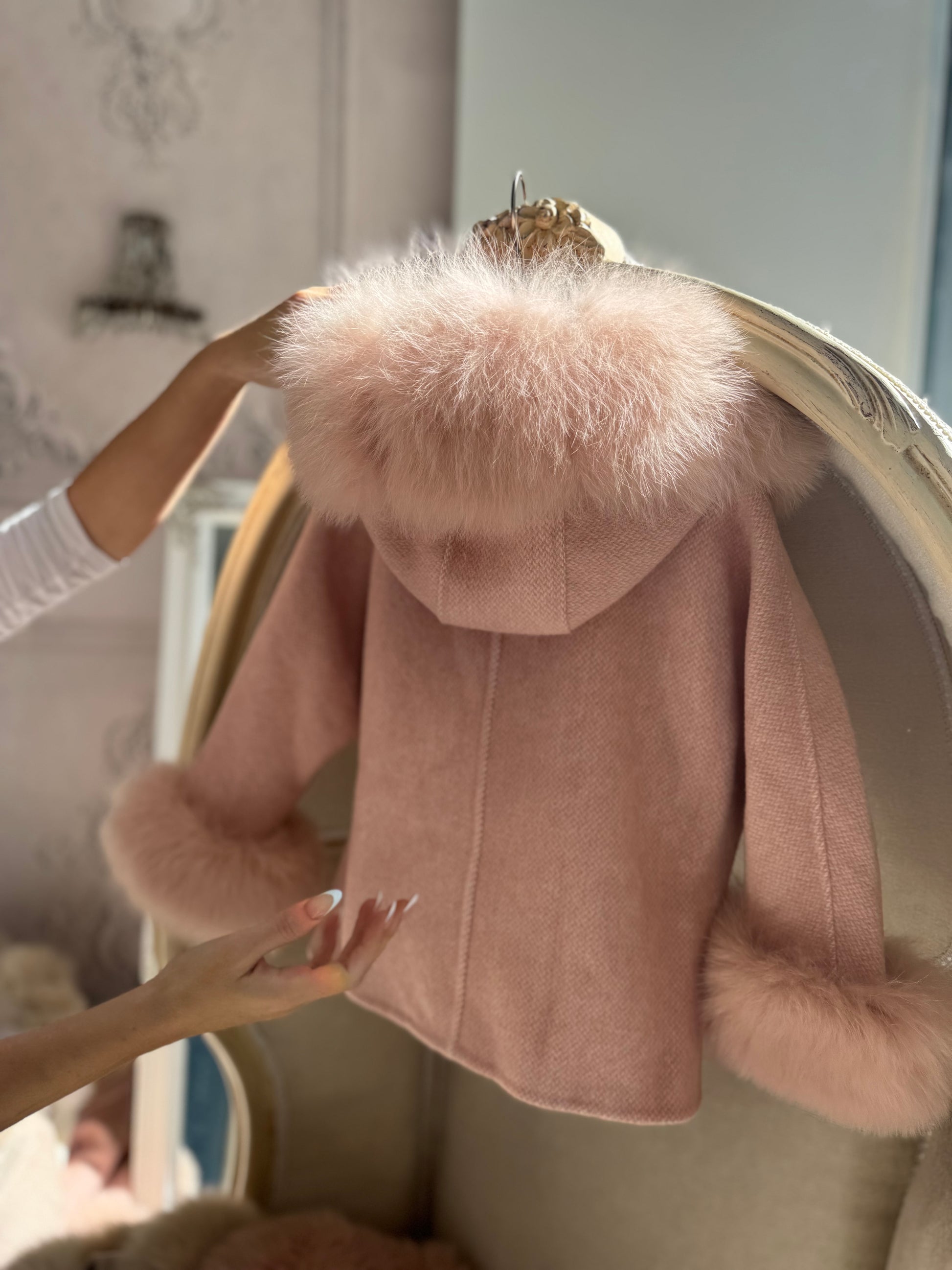 Hooded Shadow fur belt coat - BLUSH