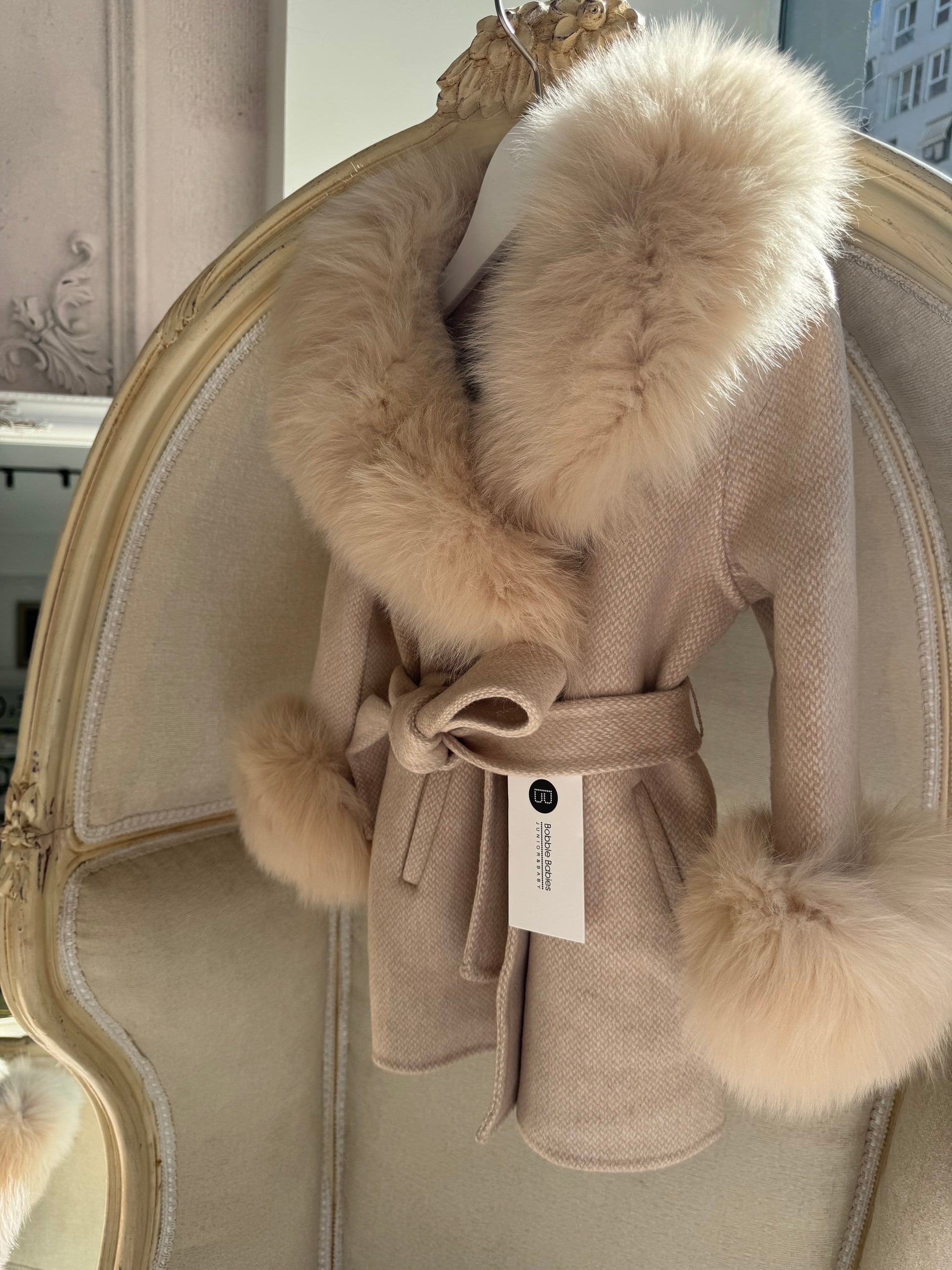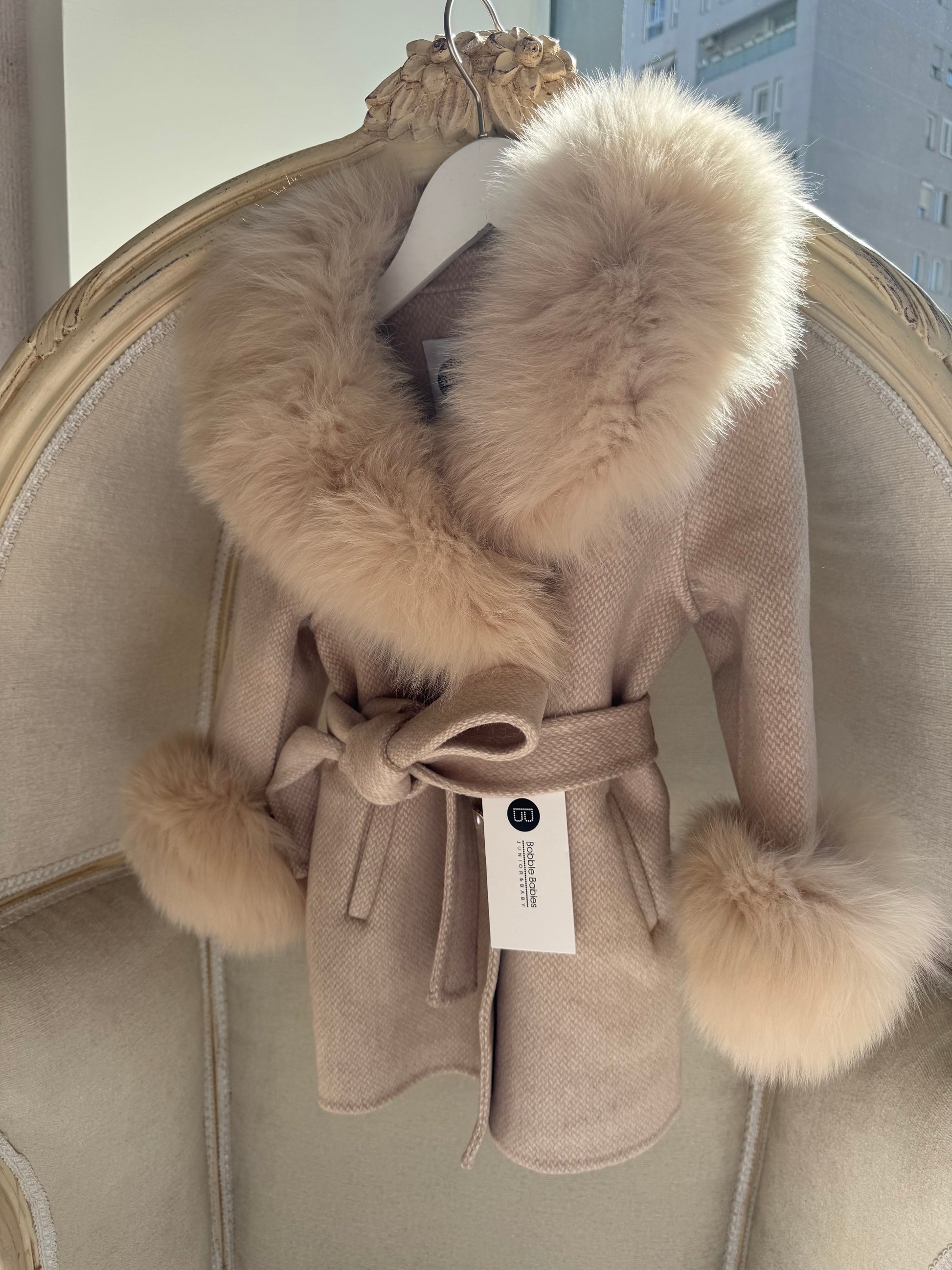 Belted fur cuff and collar cashmere -NUDE