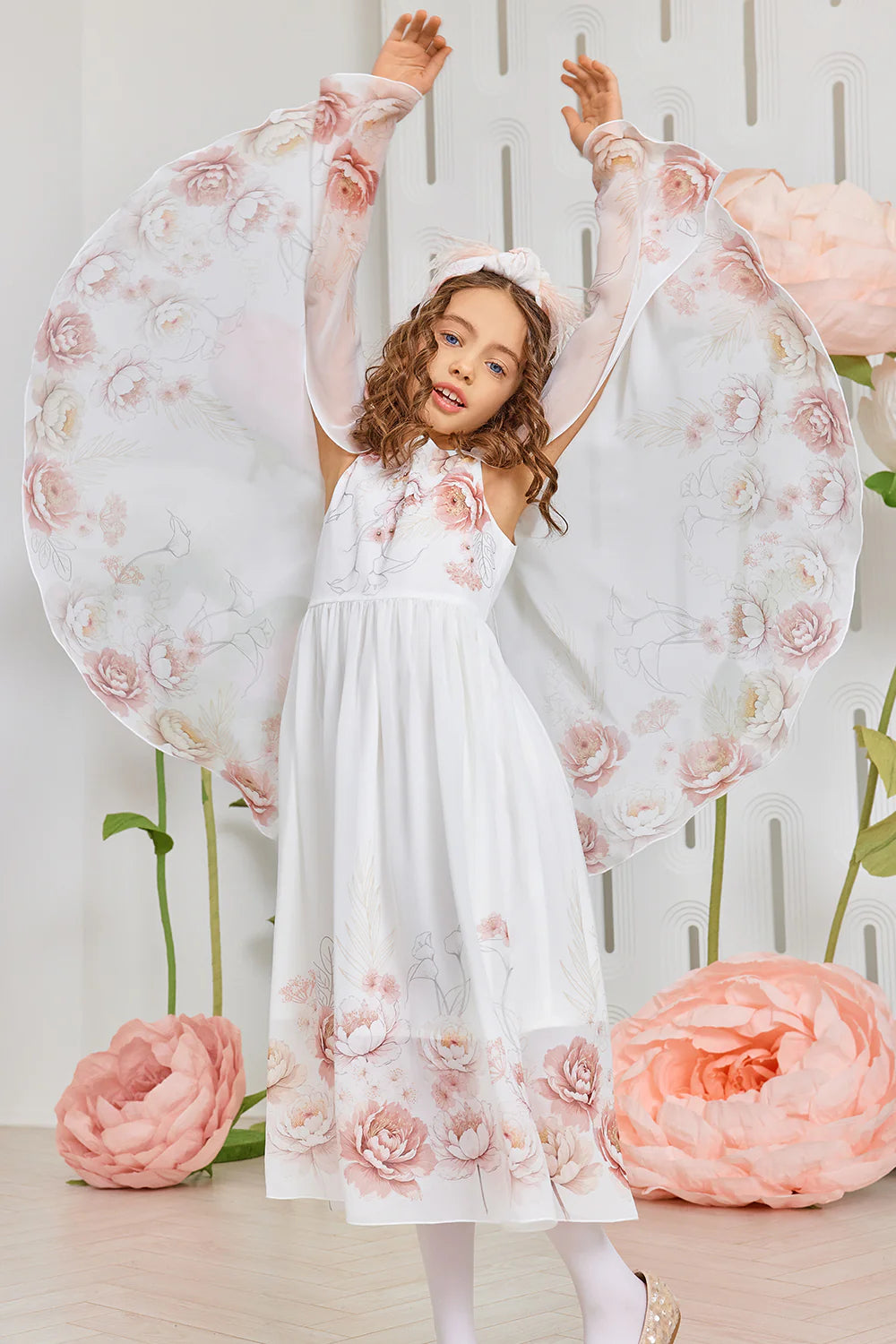 DRESS WITH HAND-EMBELLISHED FRONT AND CAPE SLEEVES