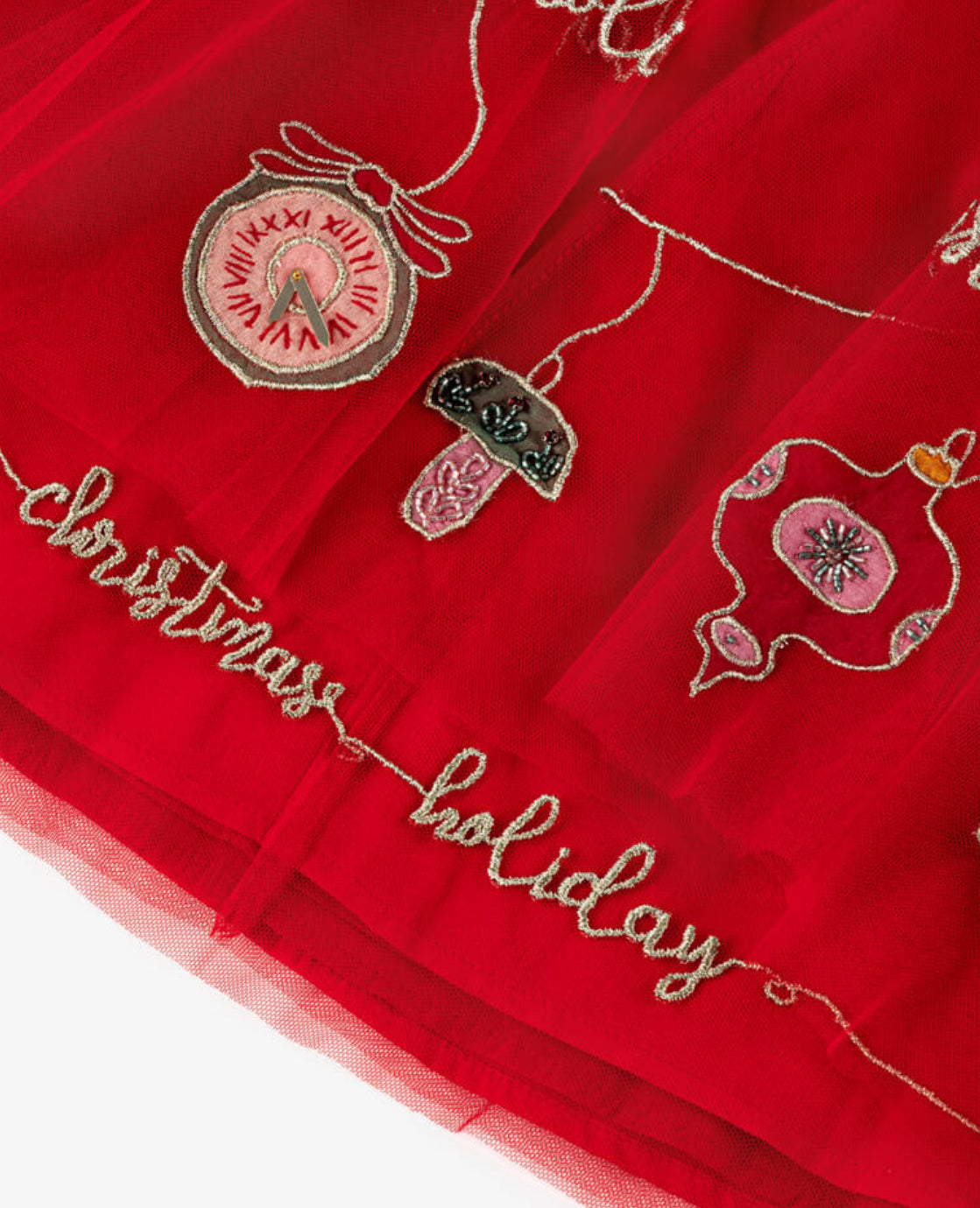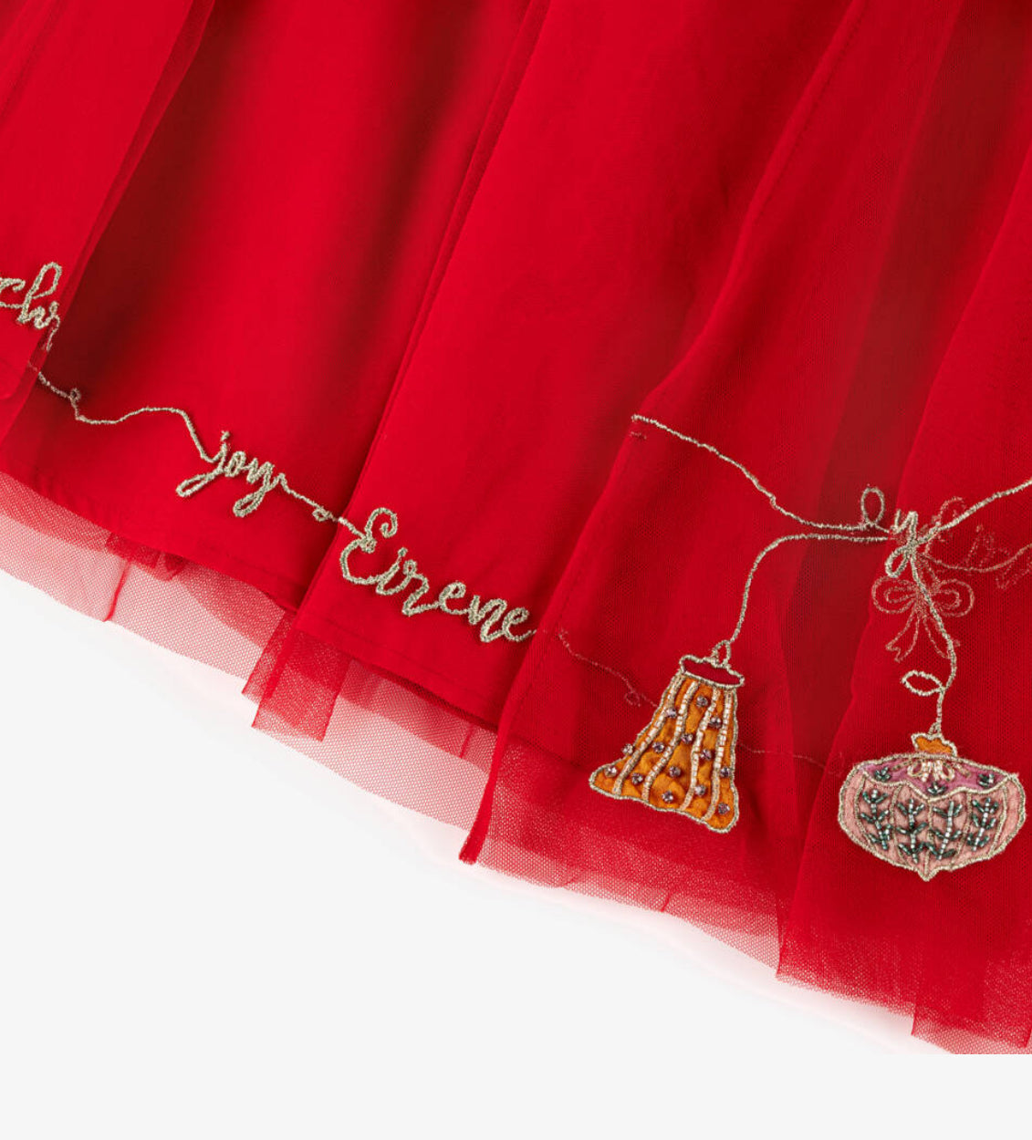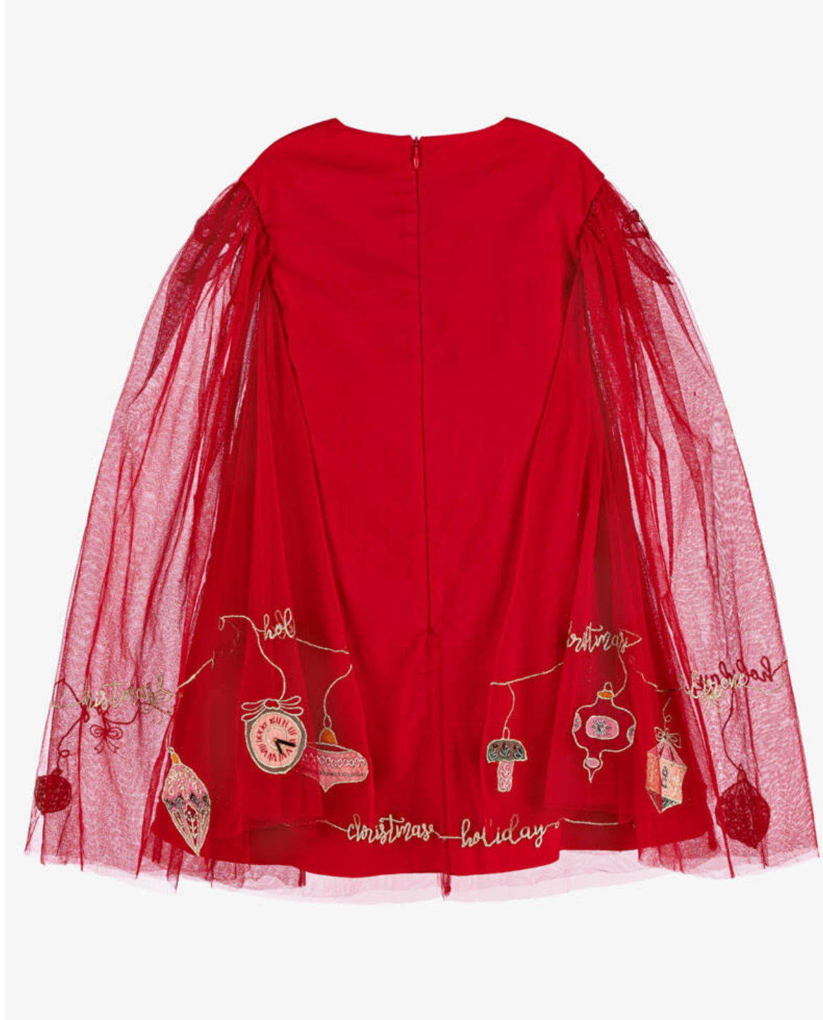 Sparkle and shine at Christmas in this bright red tulle dress for girls, with gorgeously sheer cape sleeves. Beautifully handmade, it is embellished with luxuriously stunning festive-inspired embroidery, sequins and beaded detailing. The dress is fully cotton-lined for comfort and fastens neatly with a zip.
