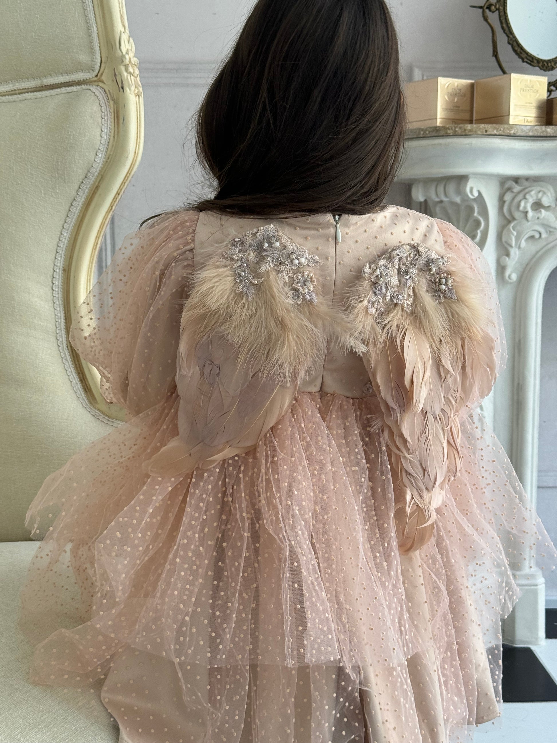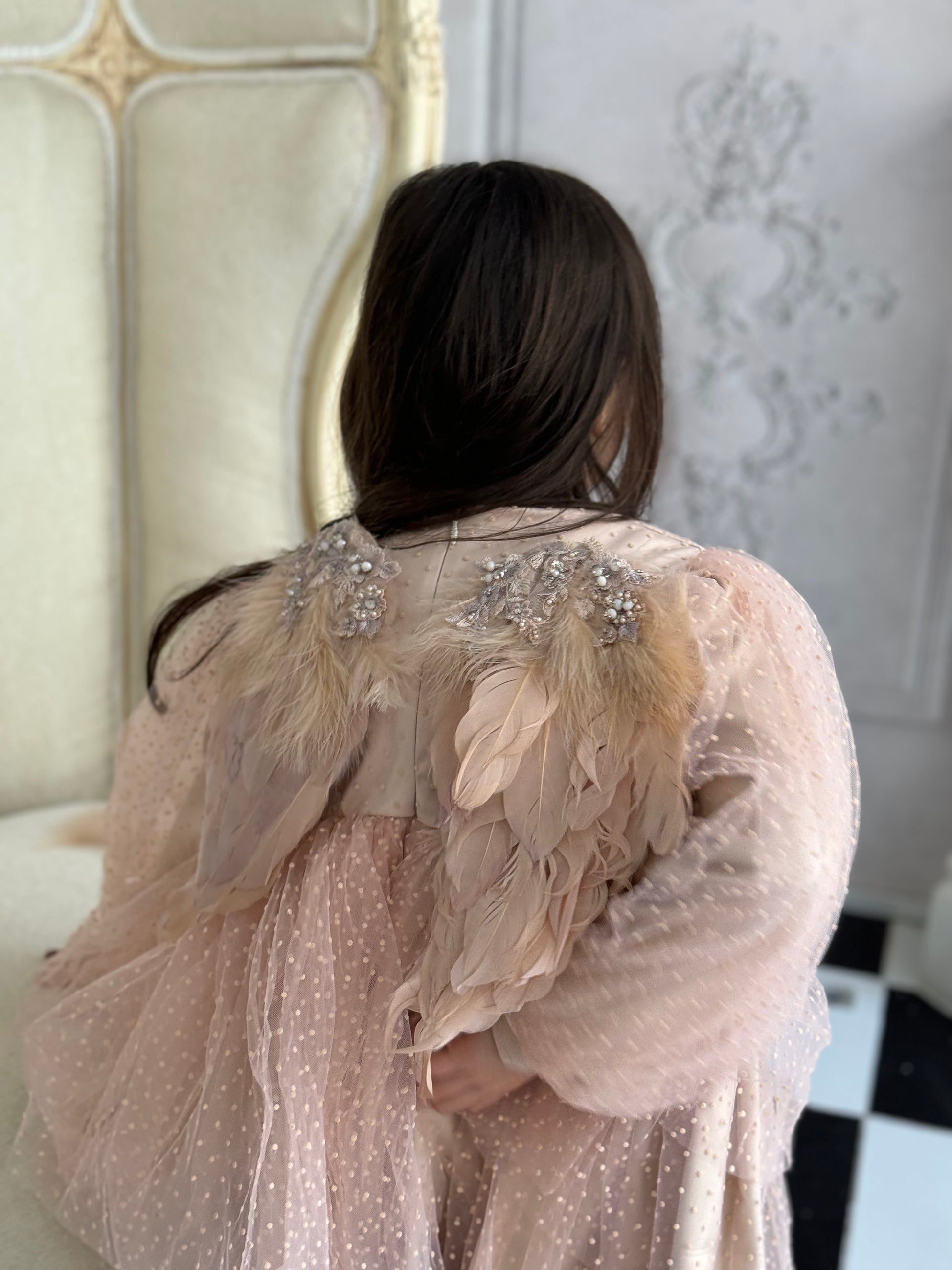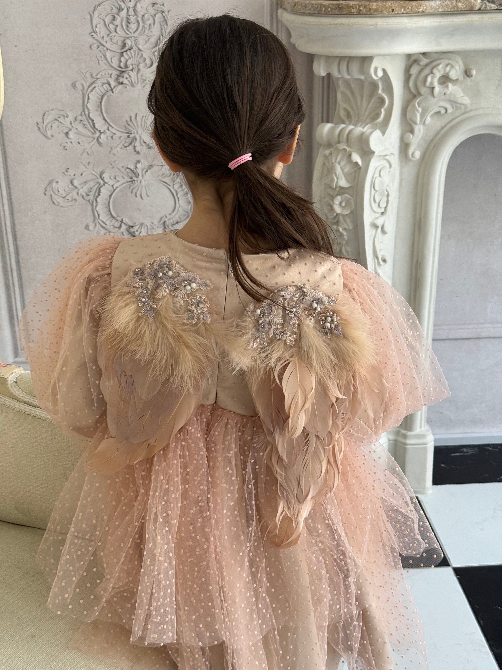 Angel dress, fustani me krahe engjelli ne pjesen e shpines.Krahet hiqen dhe vihen.