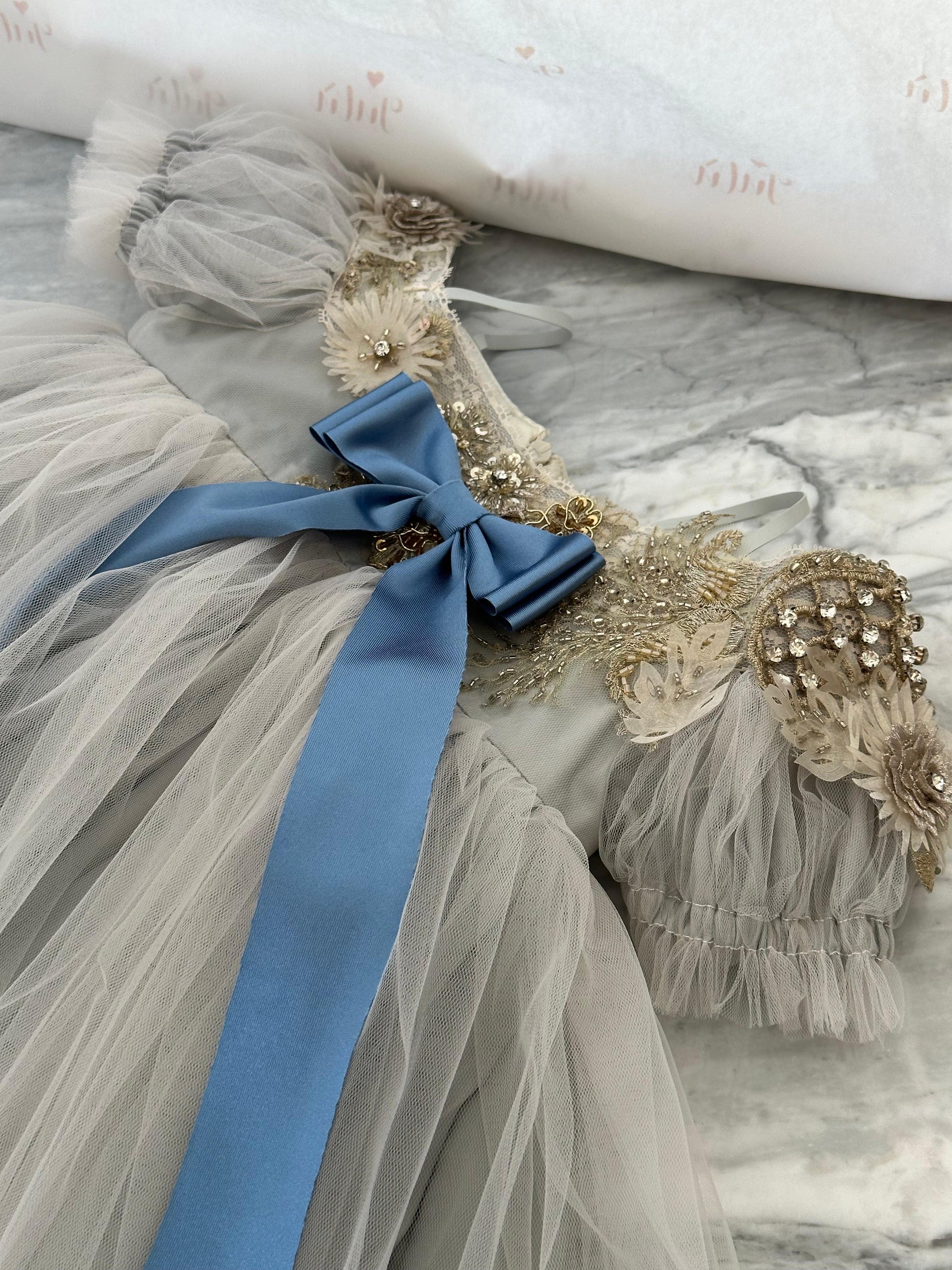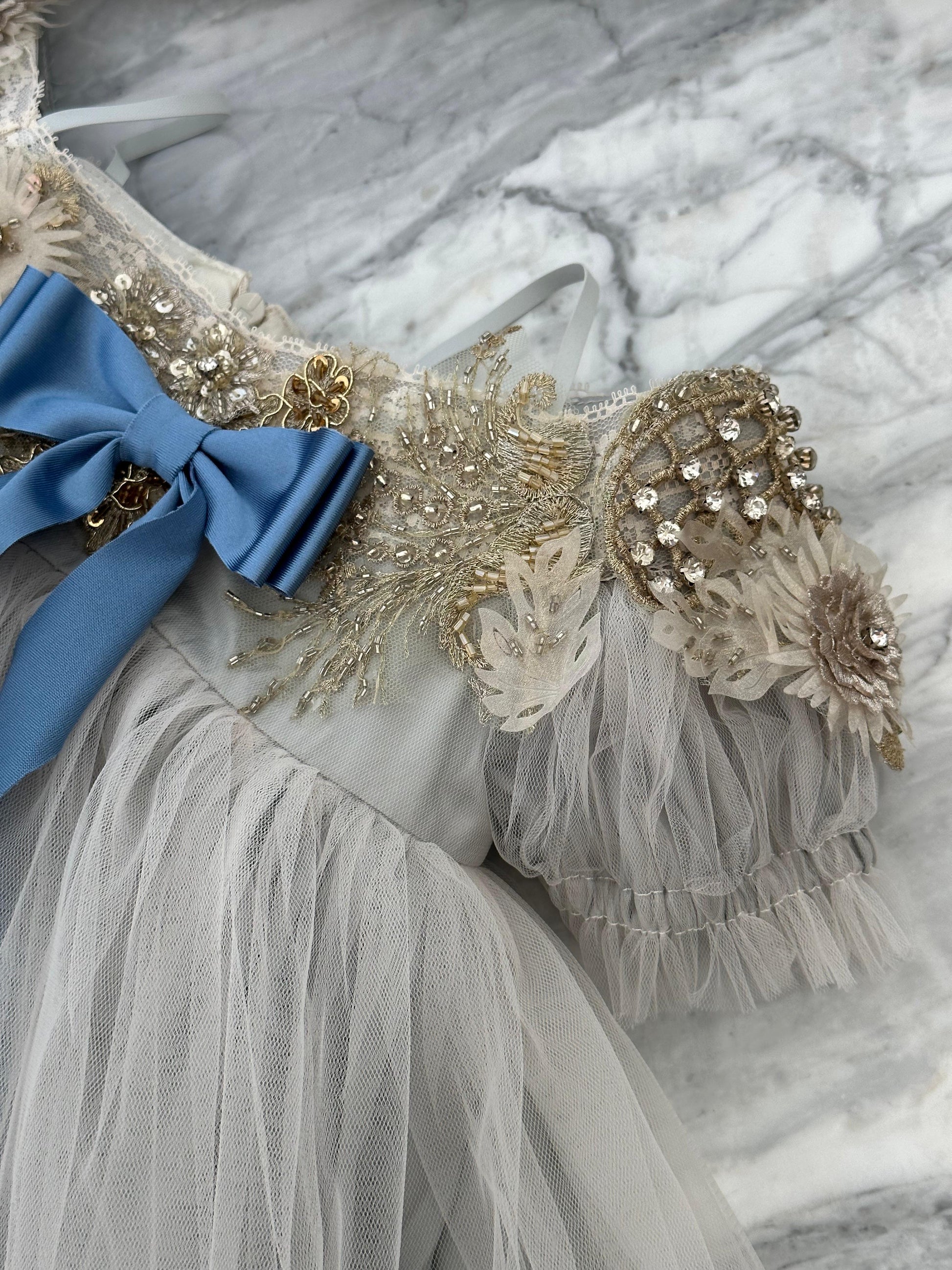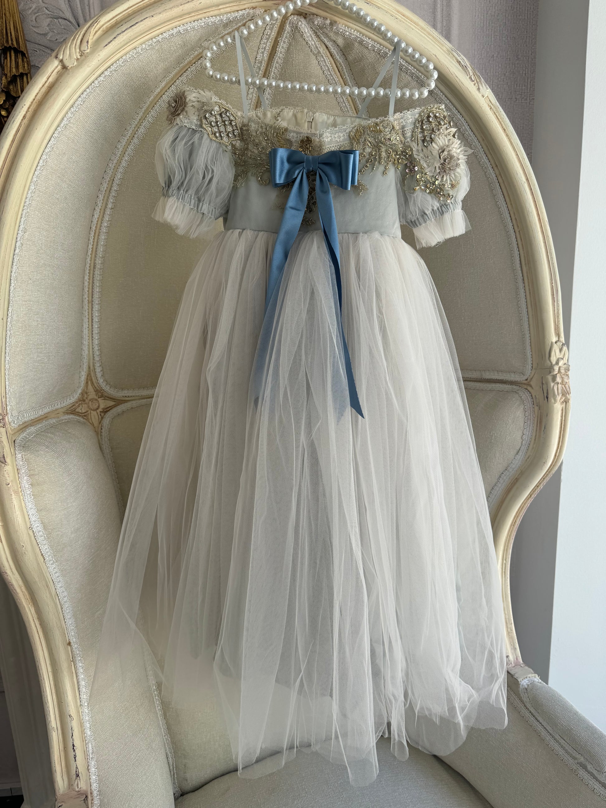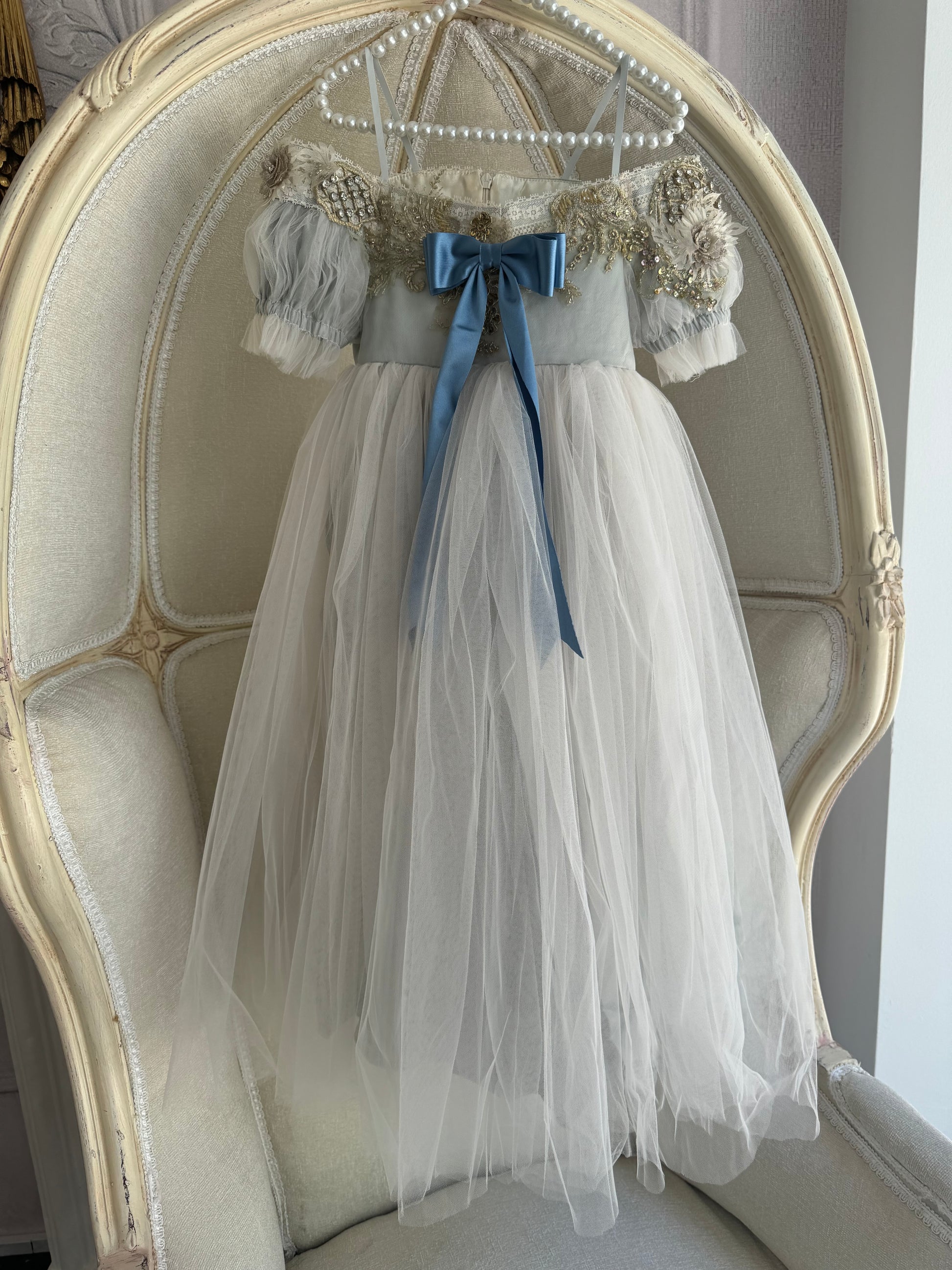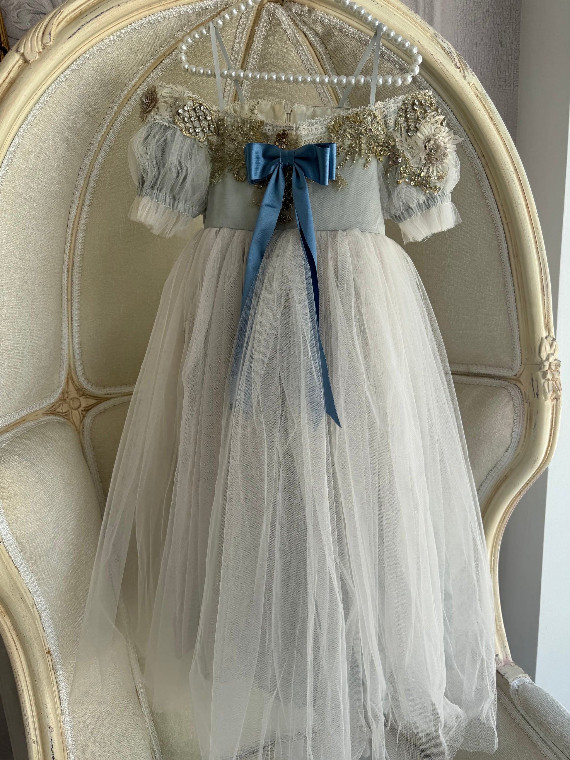 Lotus blu dress! Fustan madheshtor eventesh, me extra gjatesi! Me detaje te qendisura dhe kristale e gure delikate.