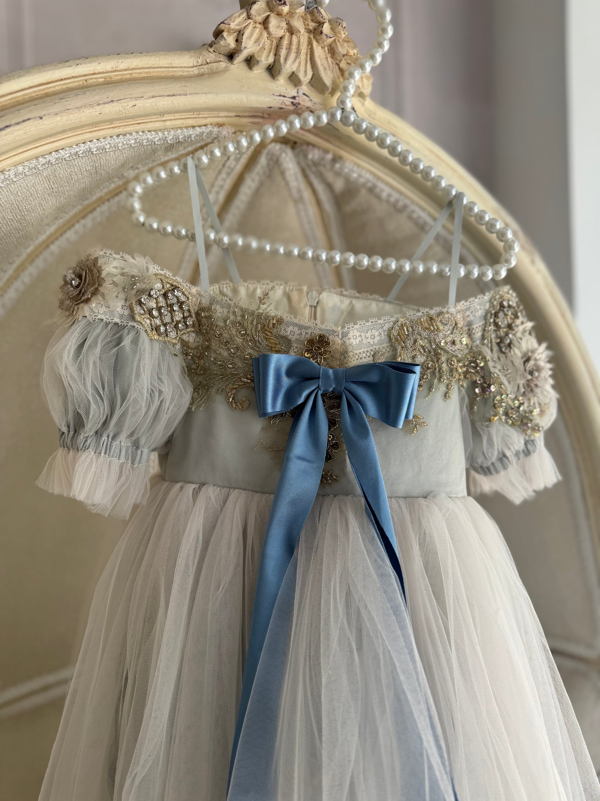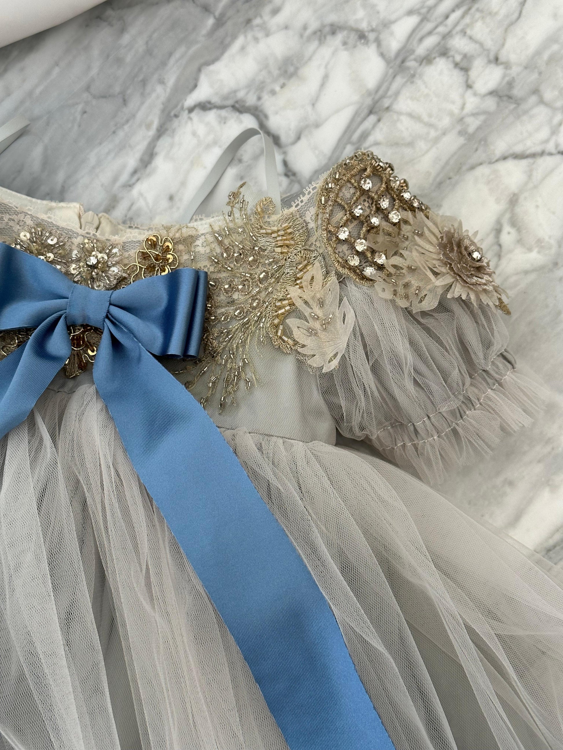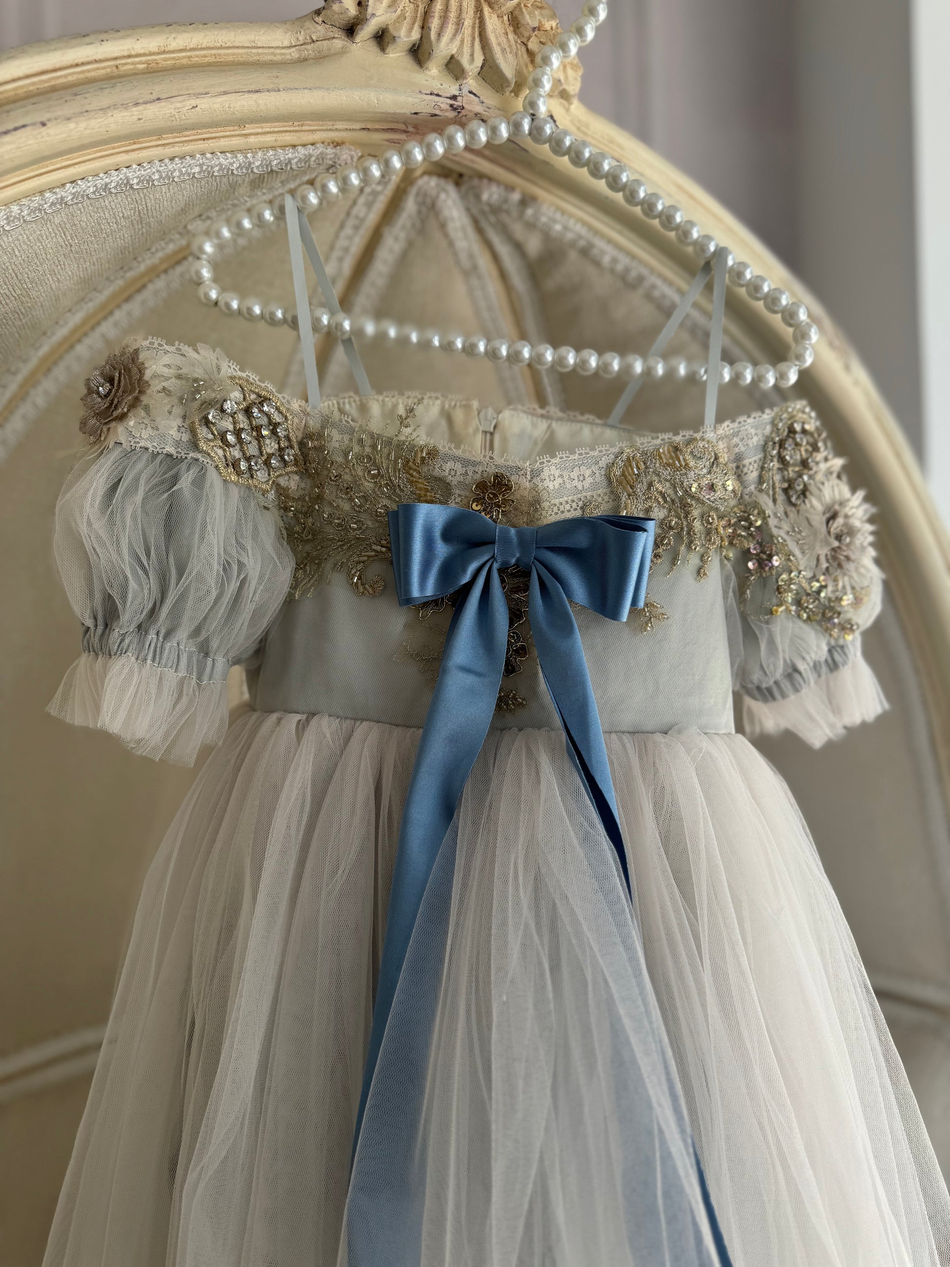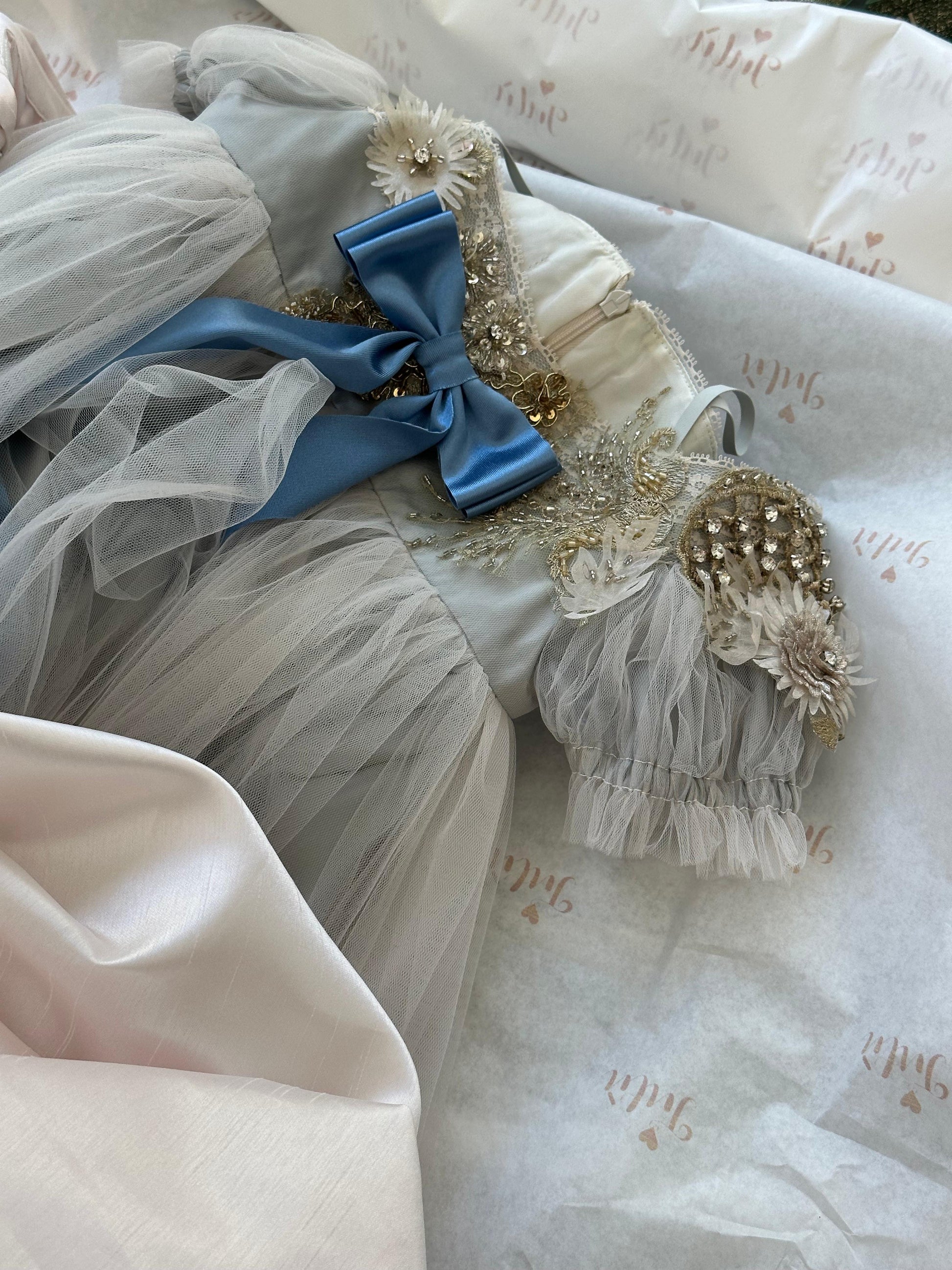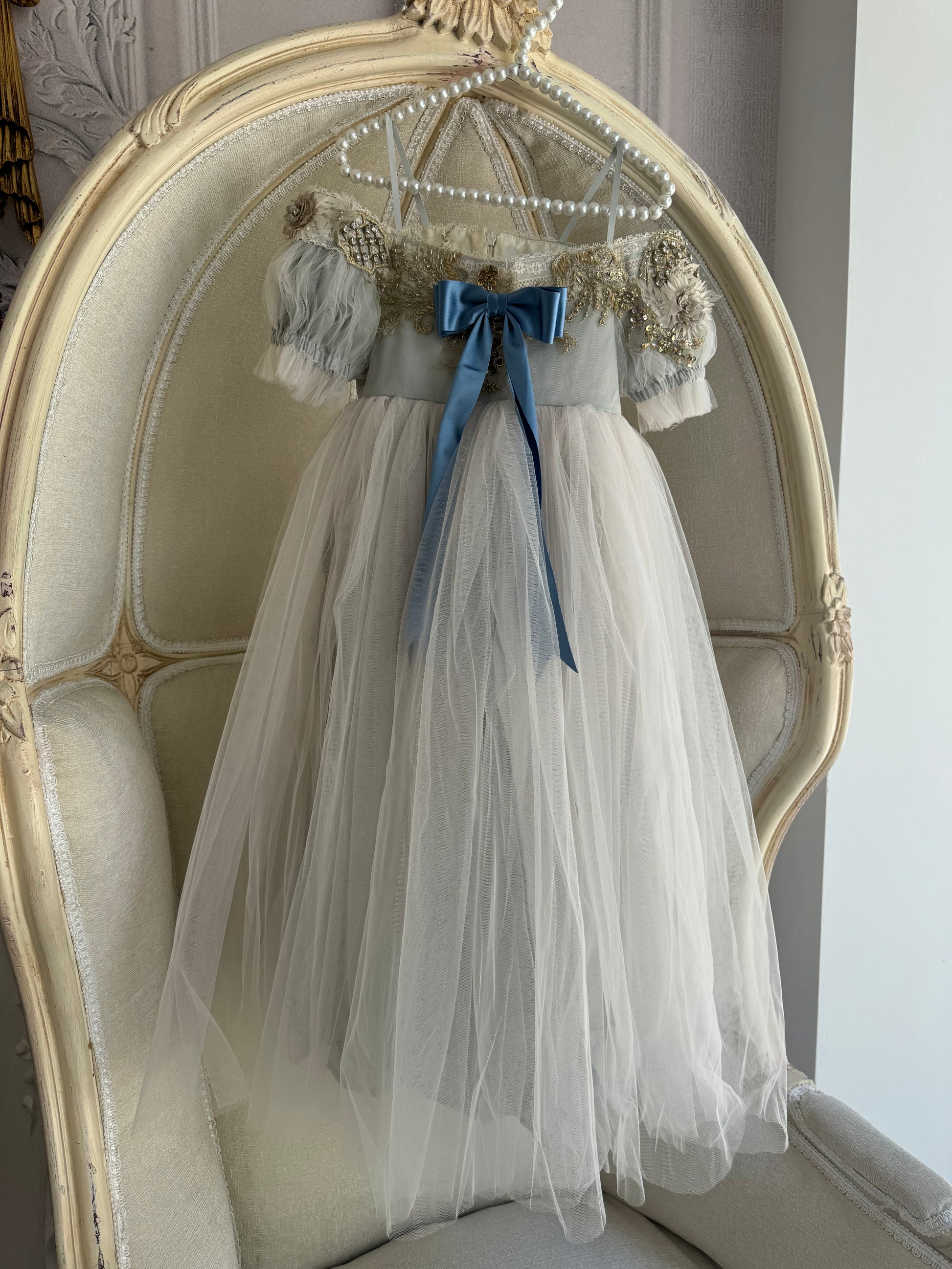 Lotus blu dress! Fustan madheshtor eventesh, me extra gjatesi! Me detaje te qendisura dhe kristale e gure delikate.