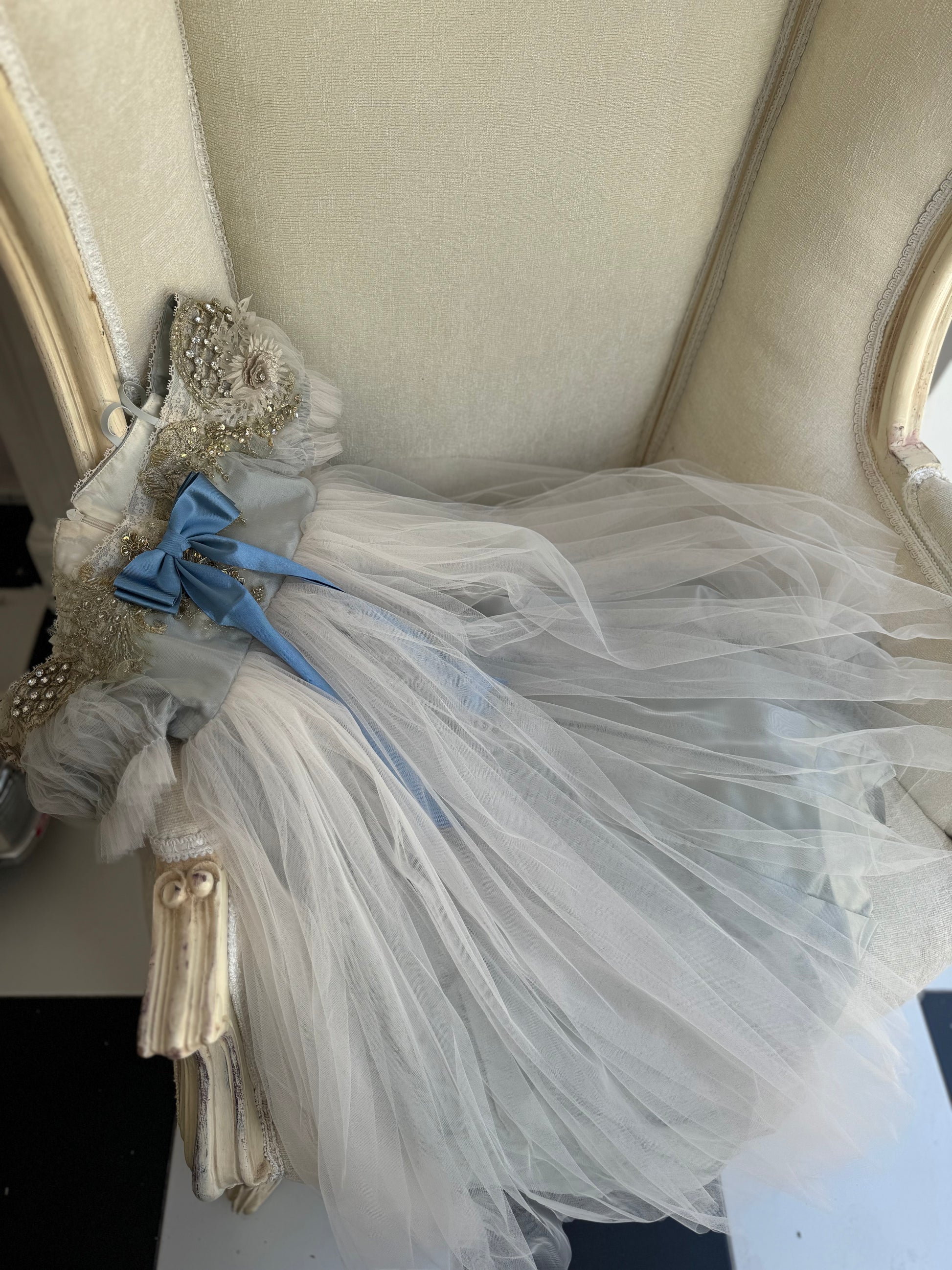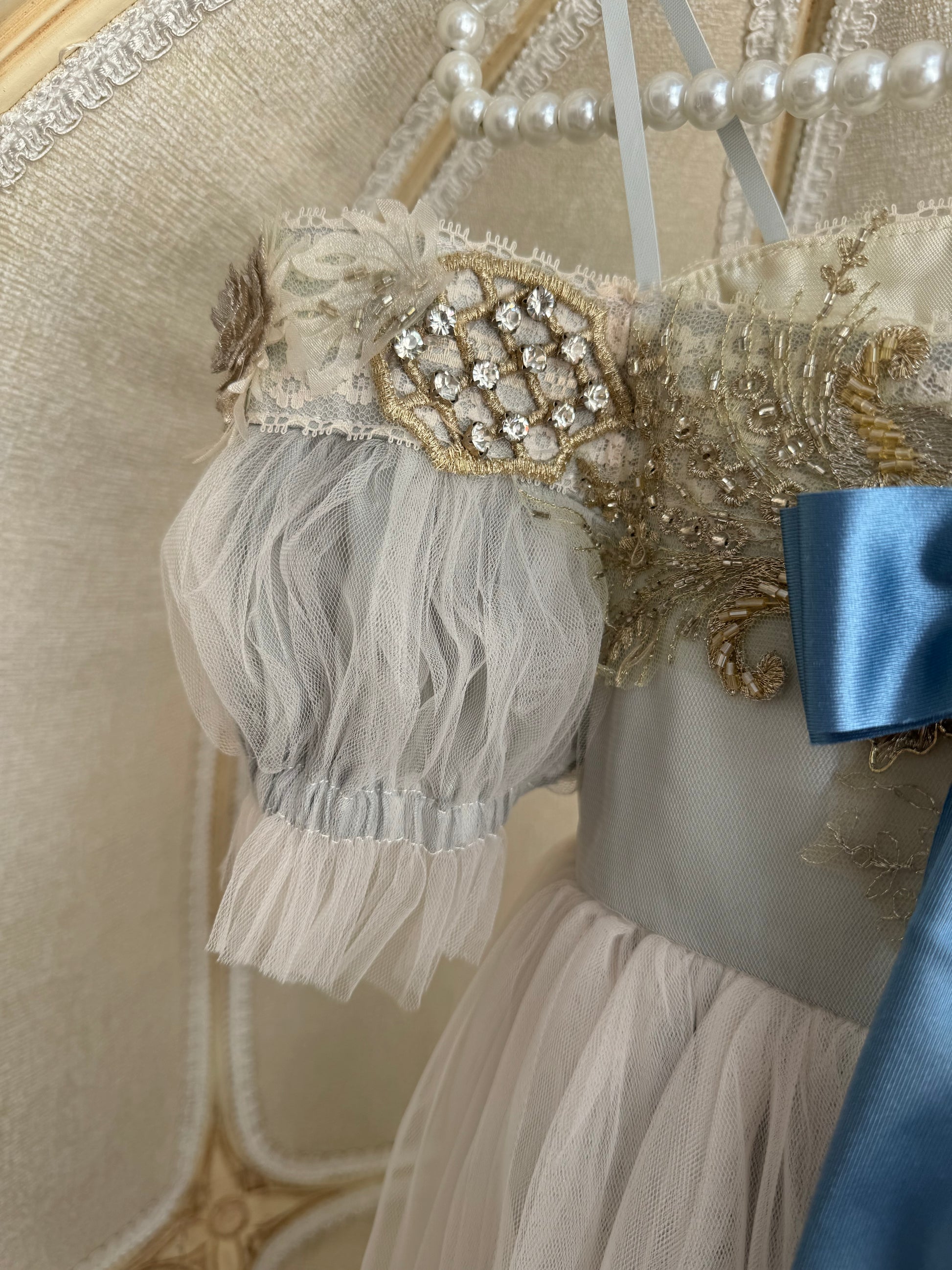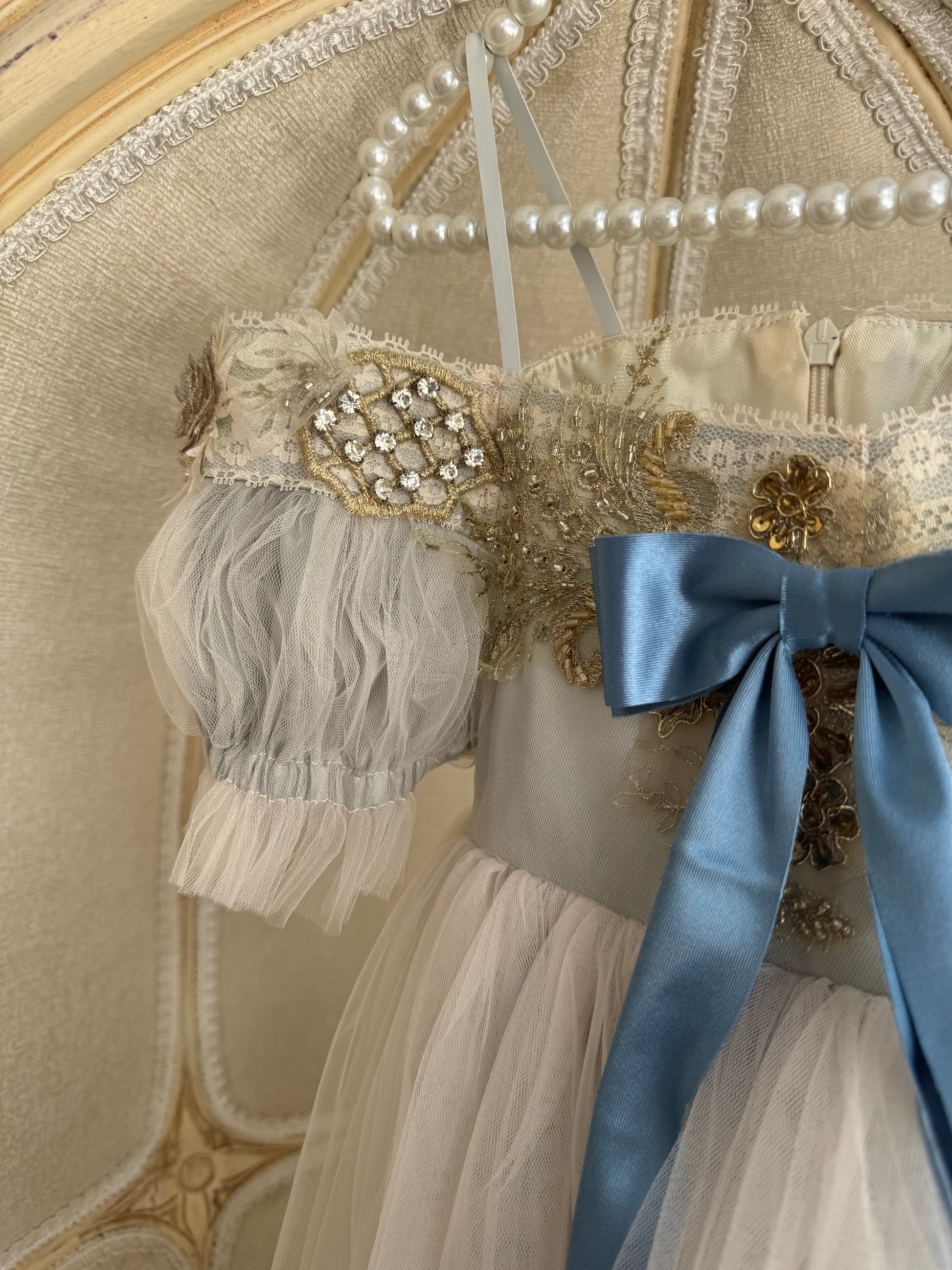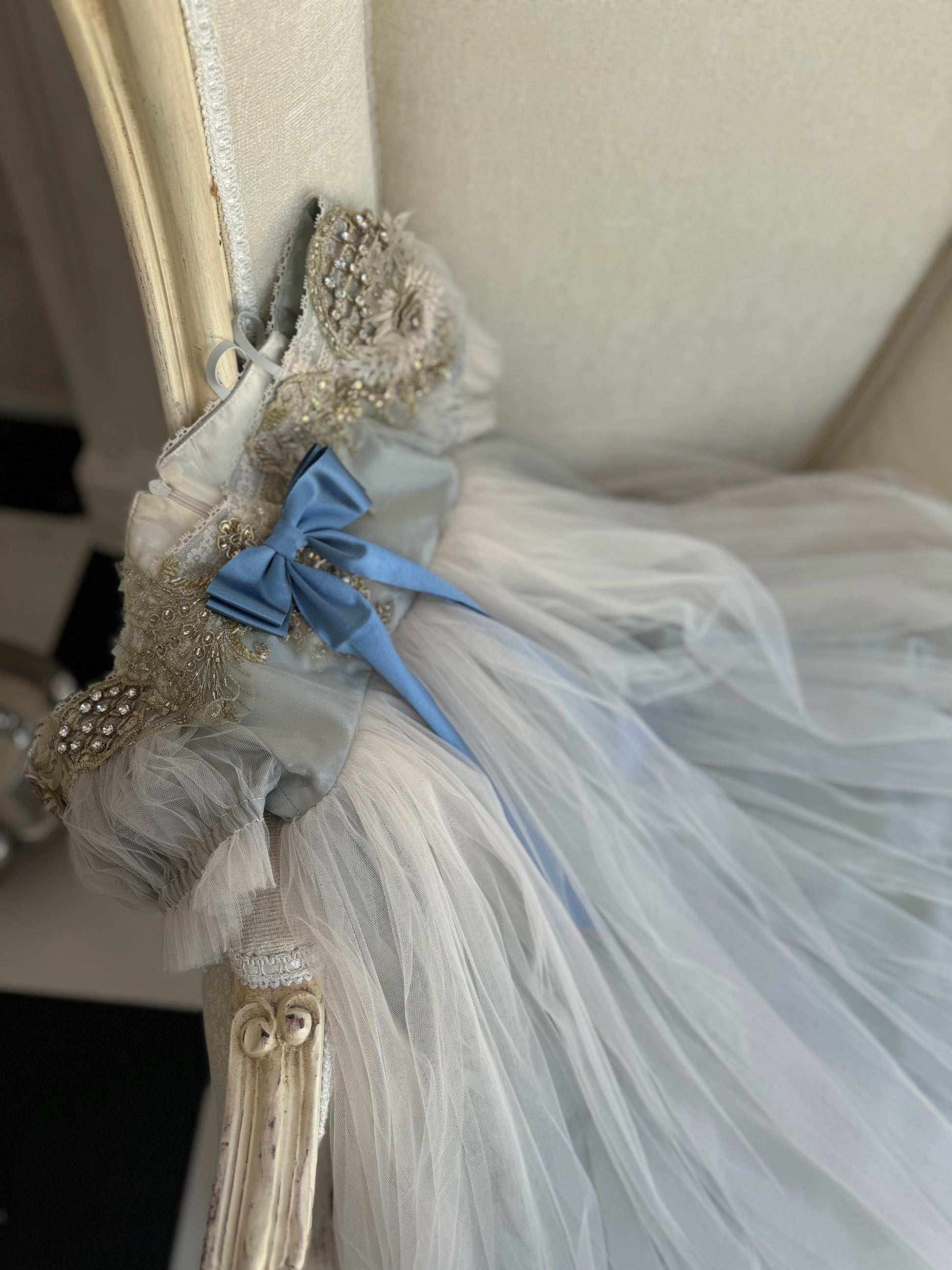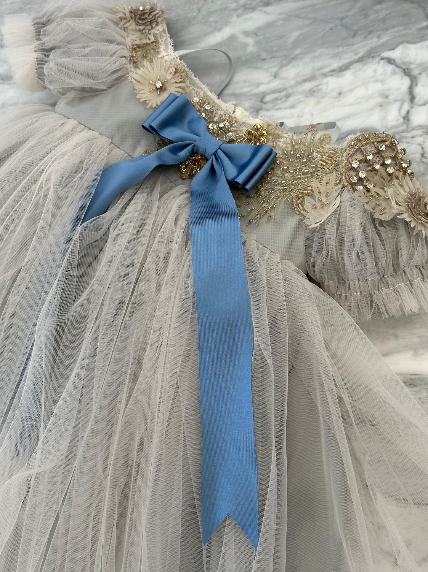 Lotus blu dress! Fustan madheshtor eventesh, me extra gjatesi! Me detaje te qendisura dhe kristale e gure delikate.