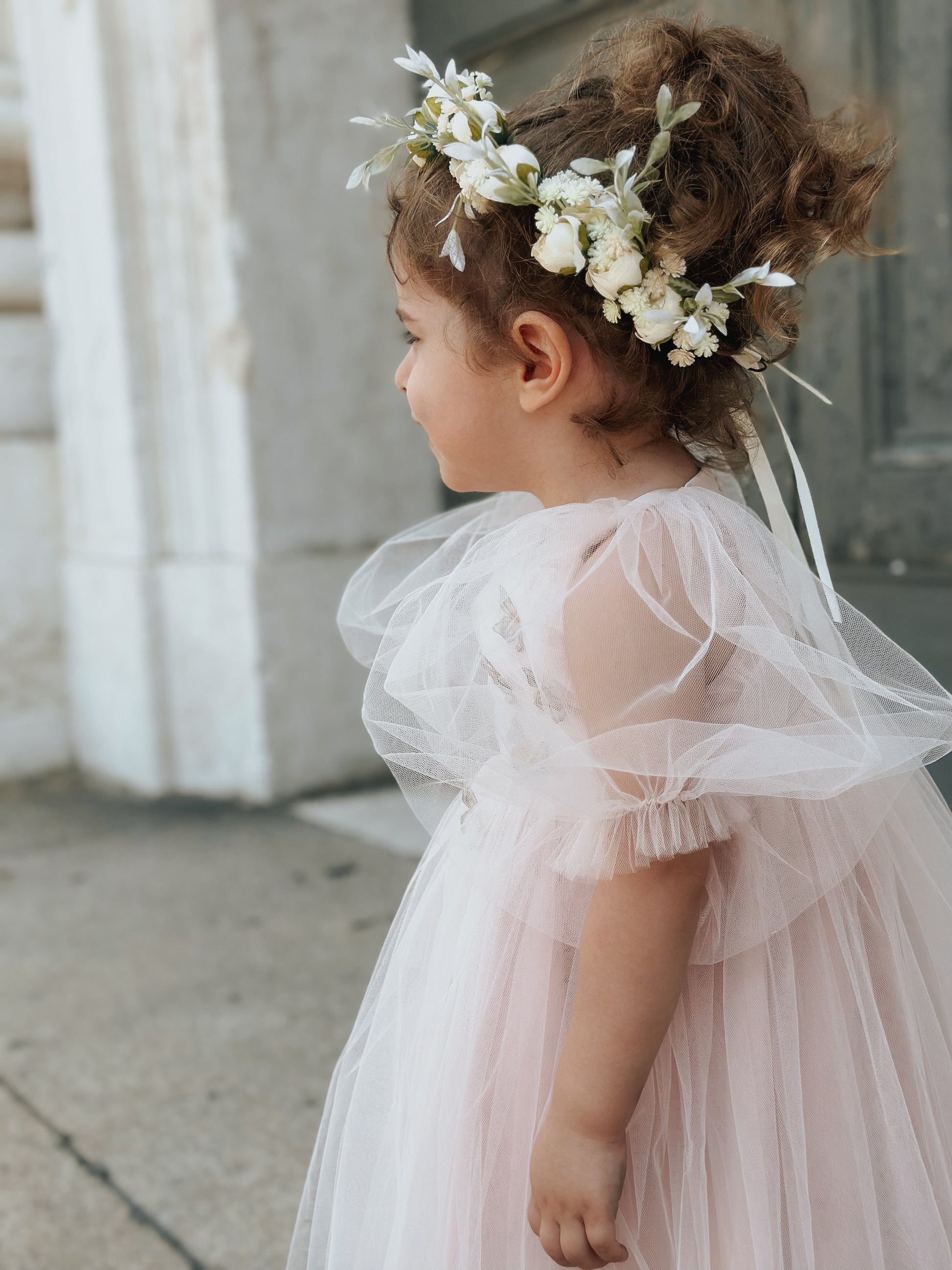 Butterfly dress, fustan eventesh dhe pagezimesh me flutura , tyl i bute dhe astar.