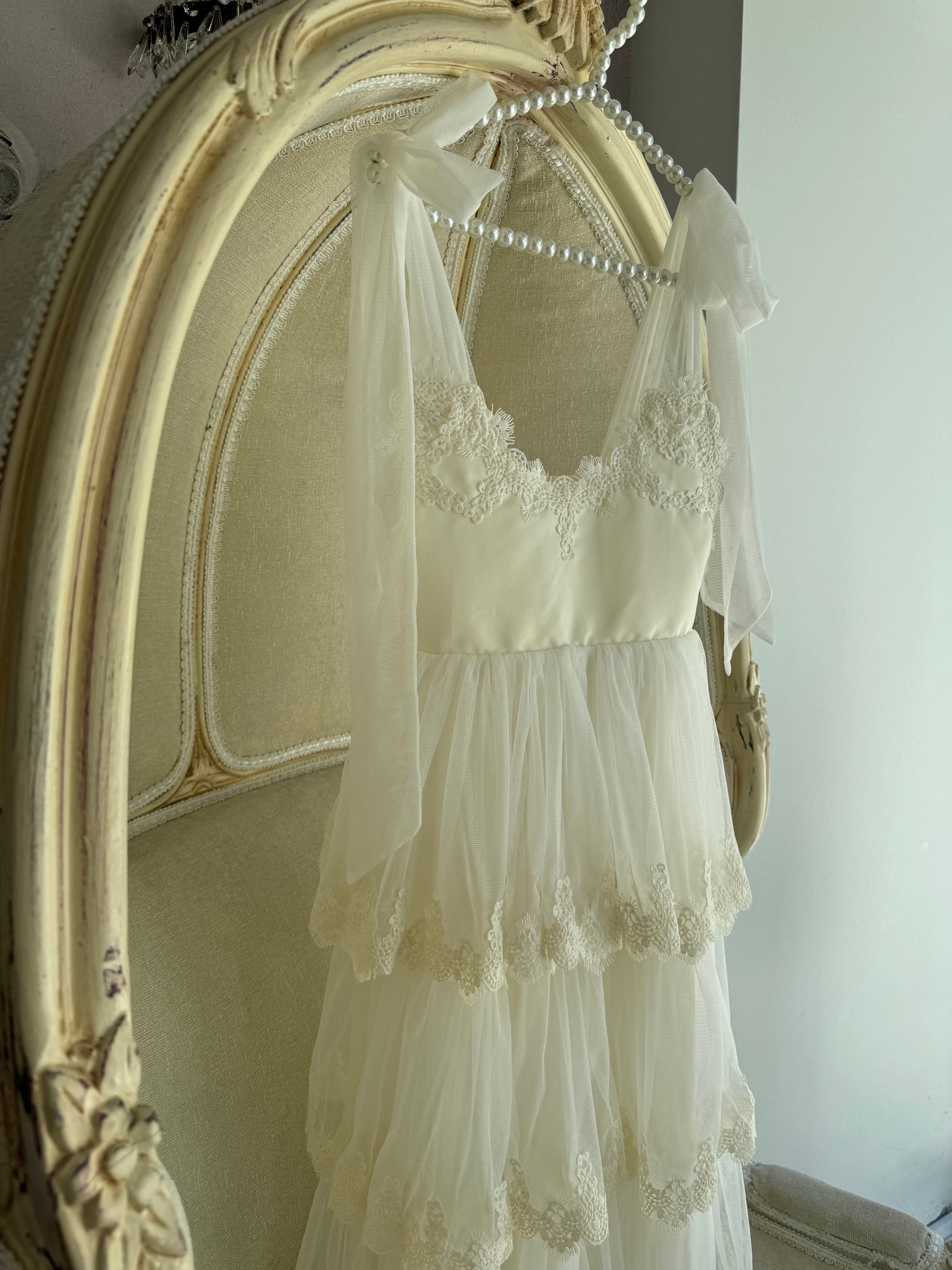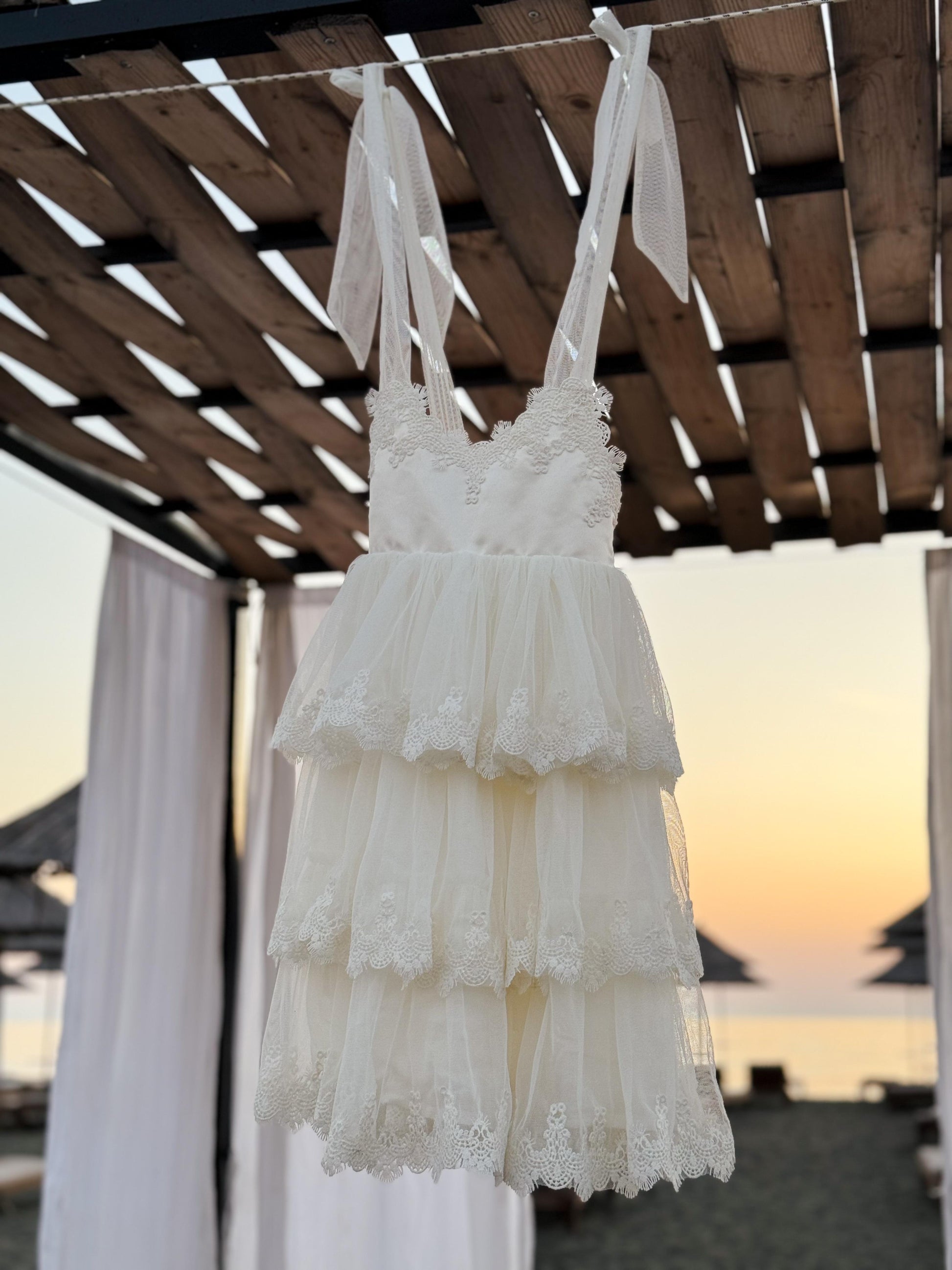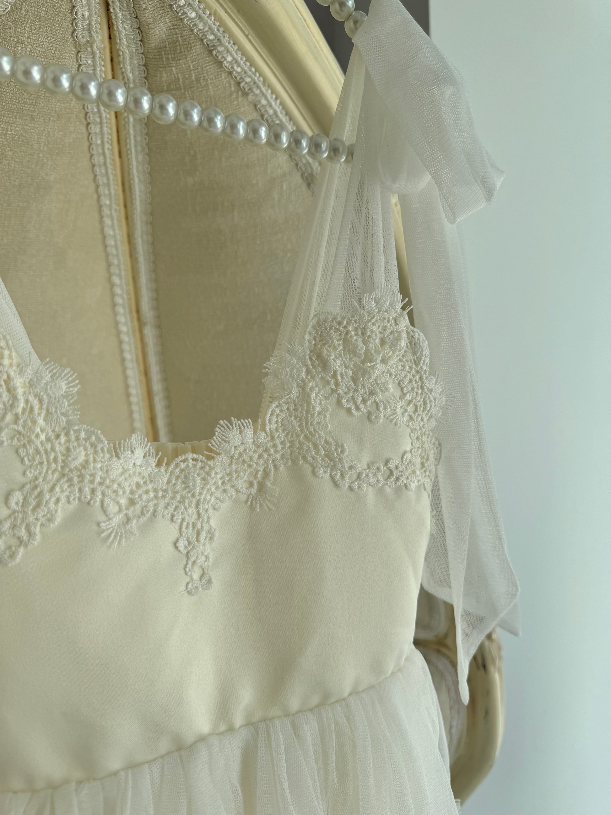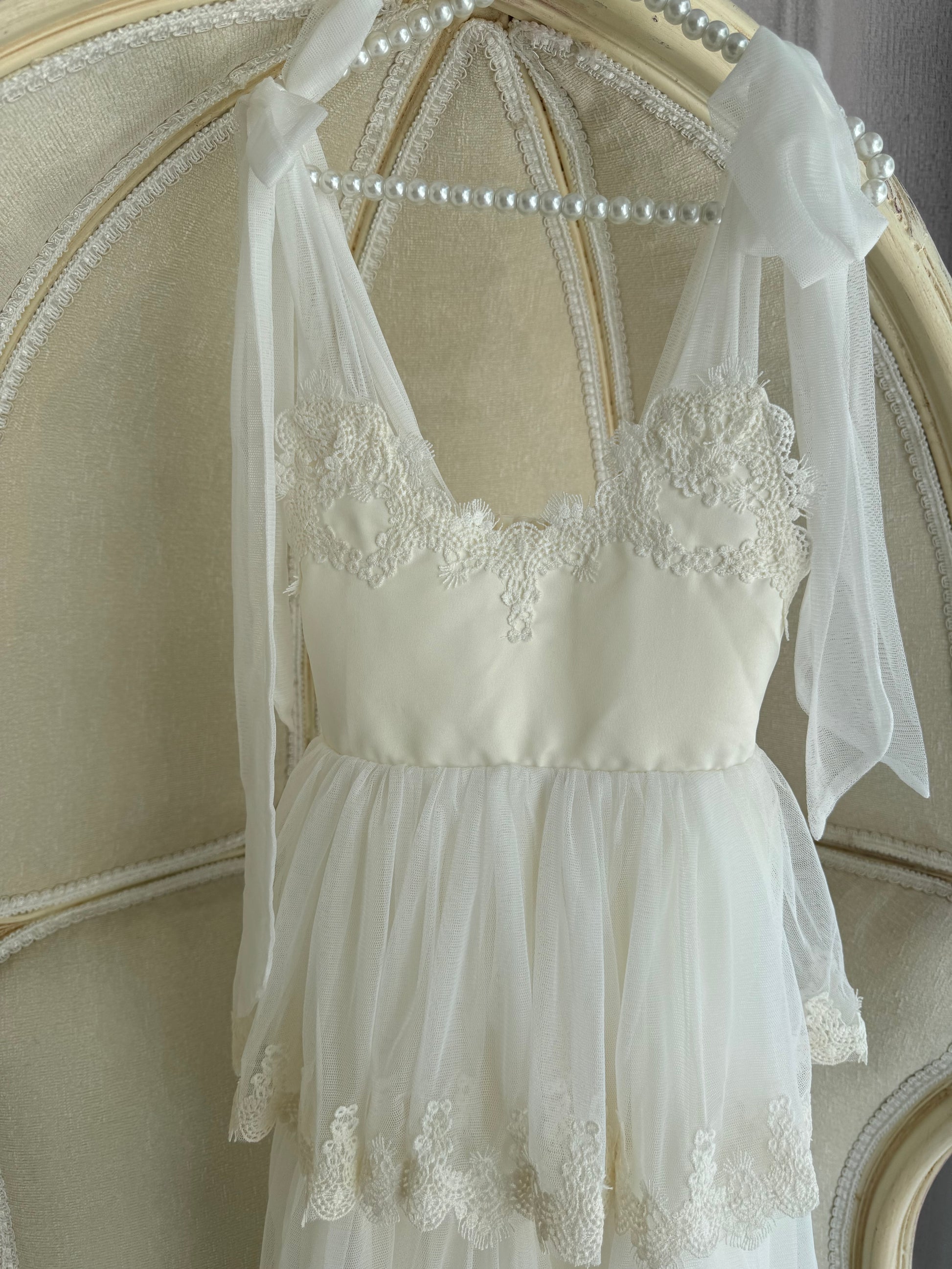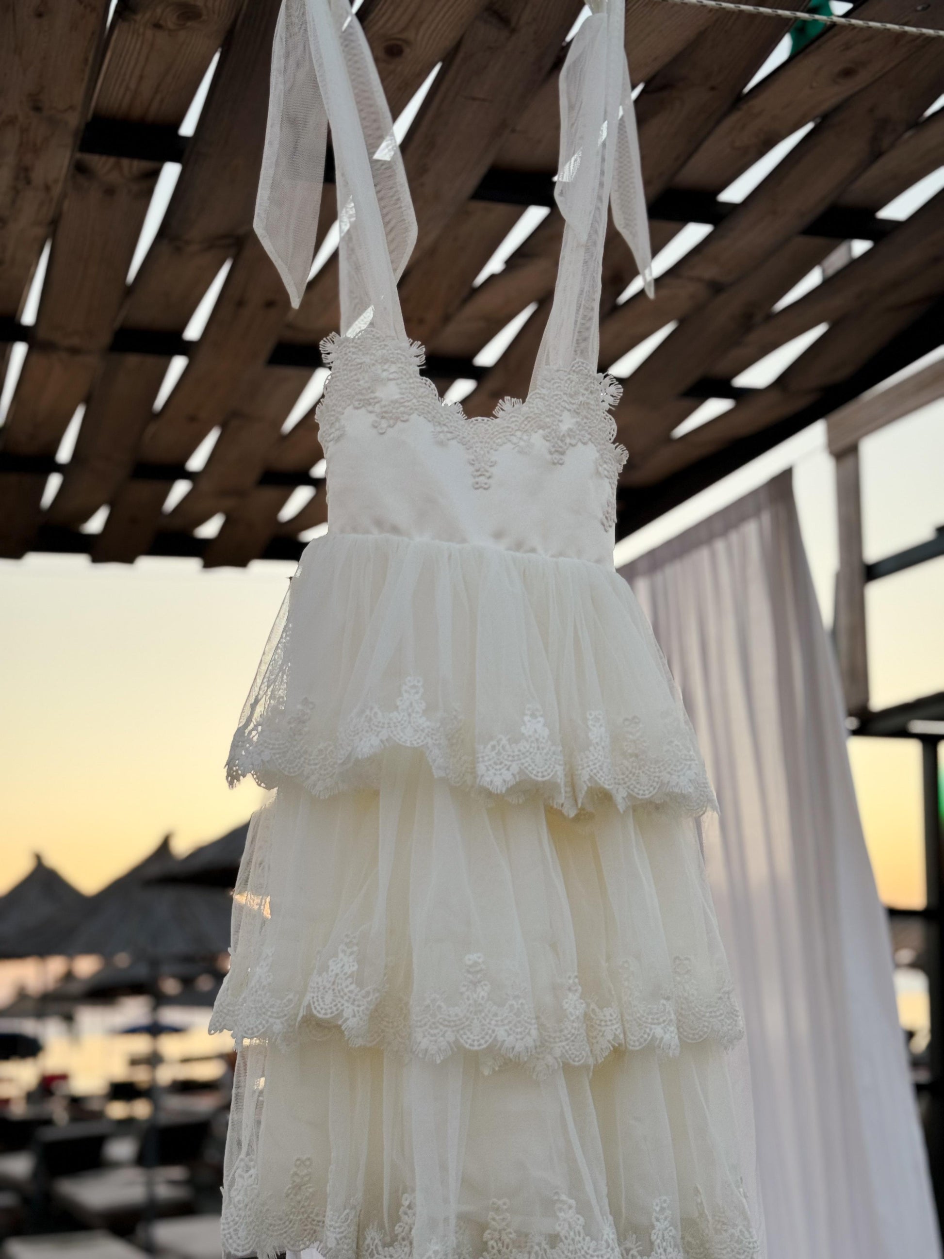 Fustan eventesh dhe pagezimesh, veror me tirante qe lidhen, me extra gjatesi.