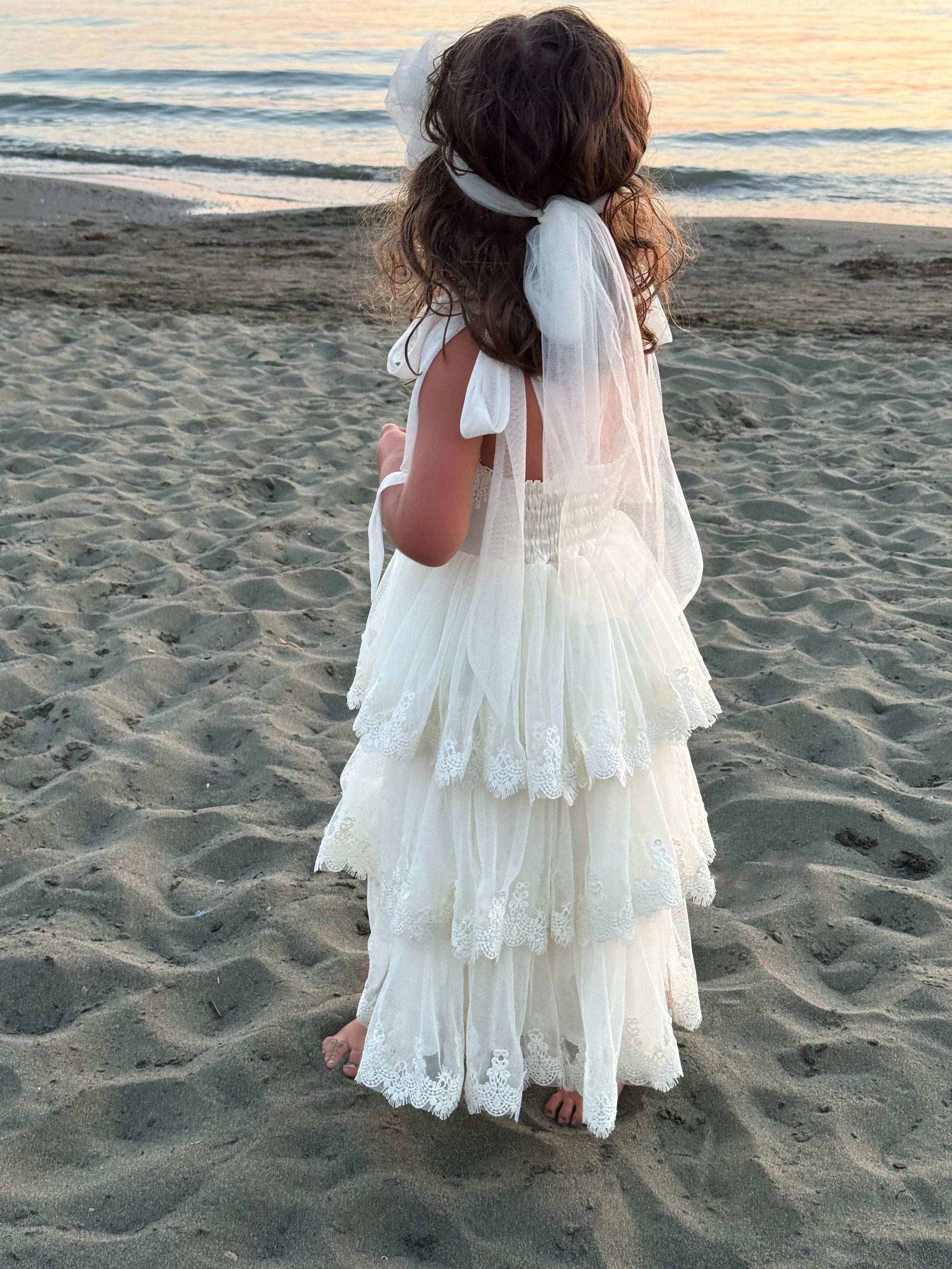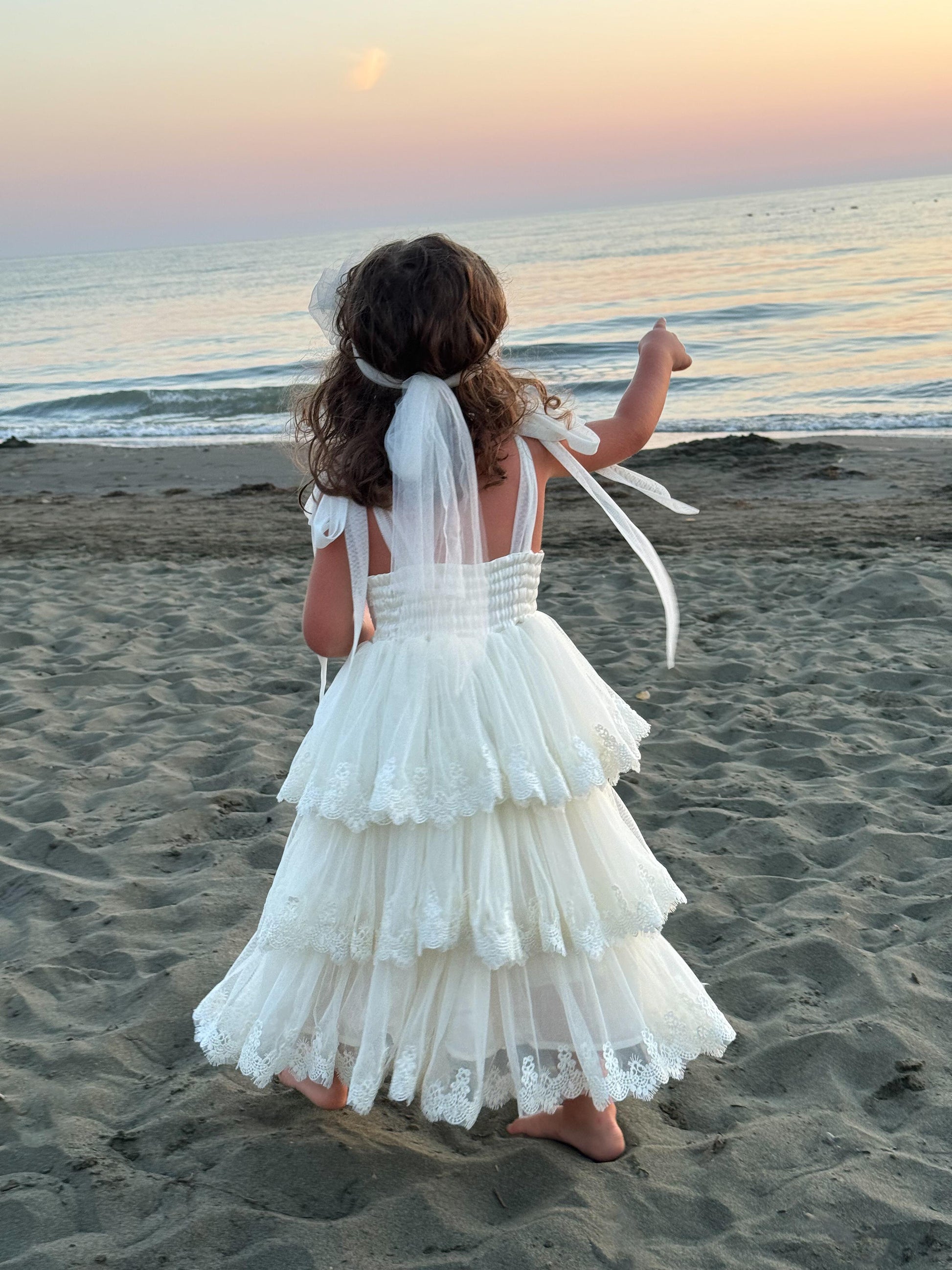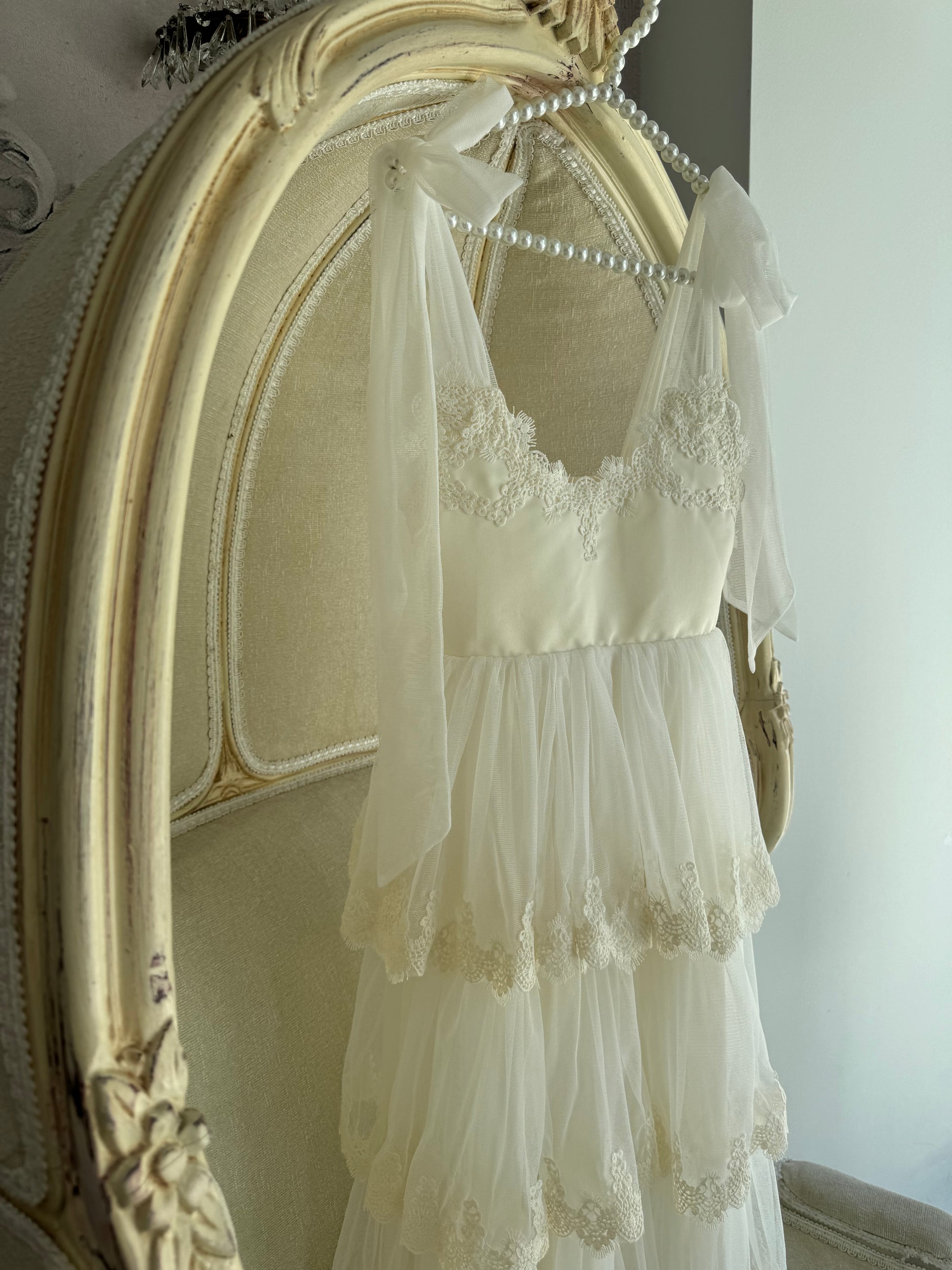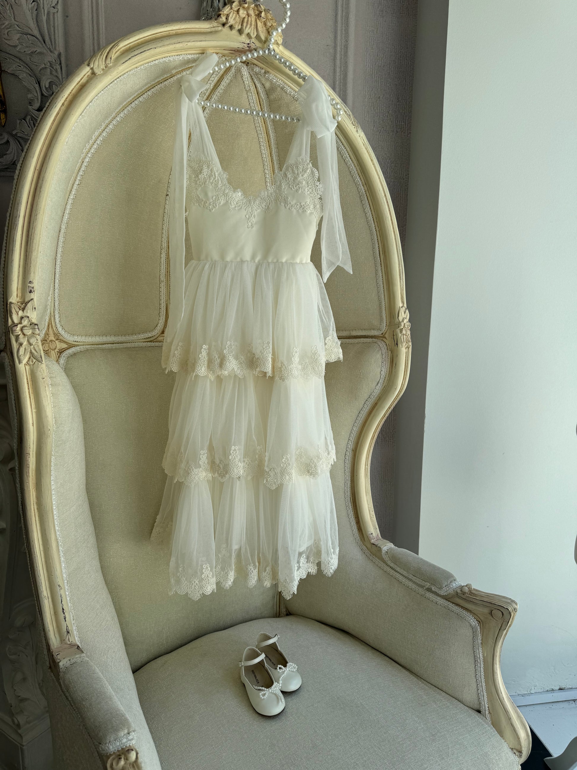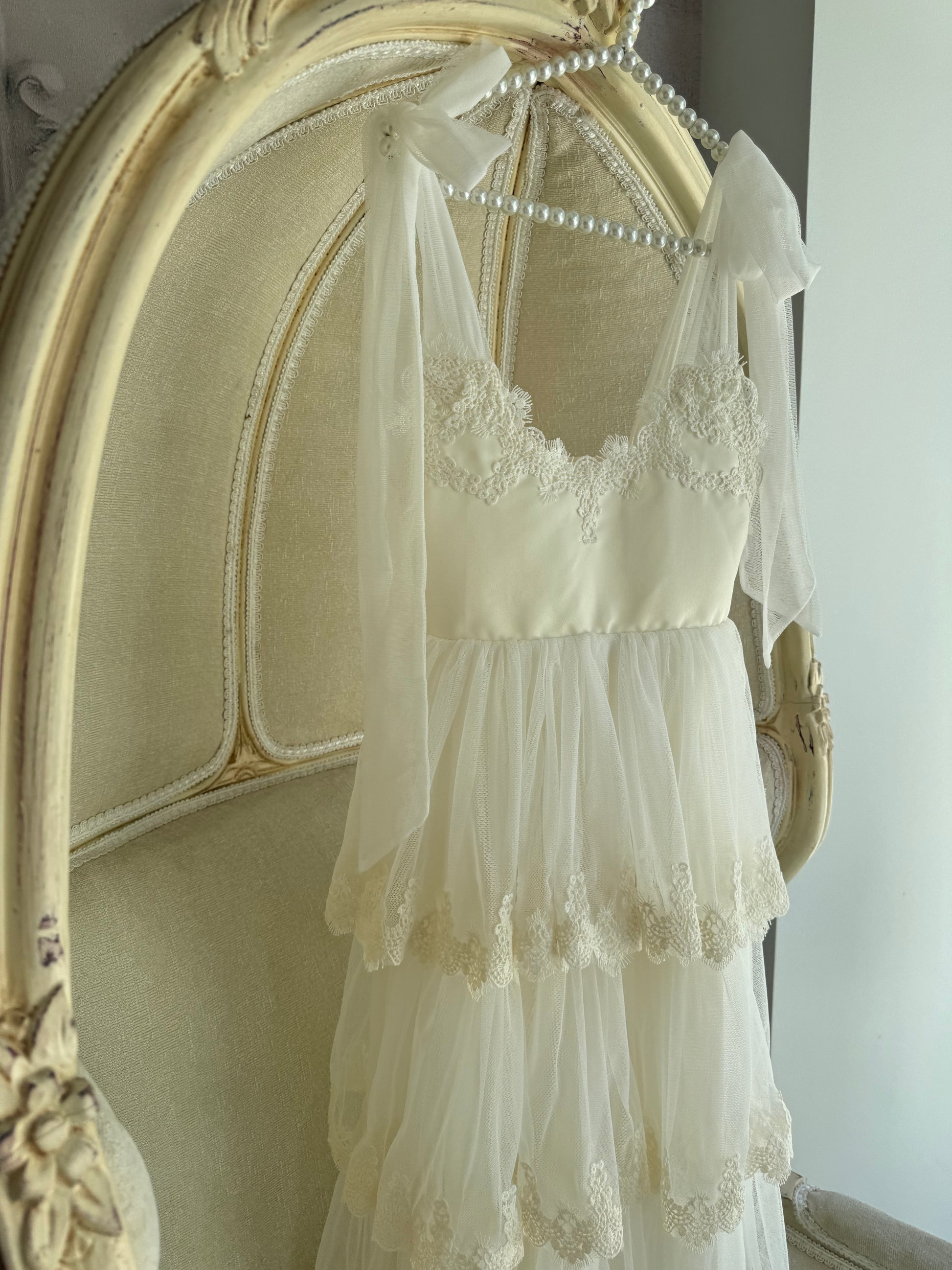 Fustan eventesh dhe pagezimesh, veror me tirante qe lidhen, me extra gjatesi.