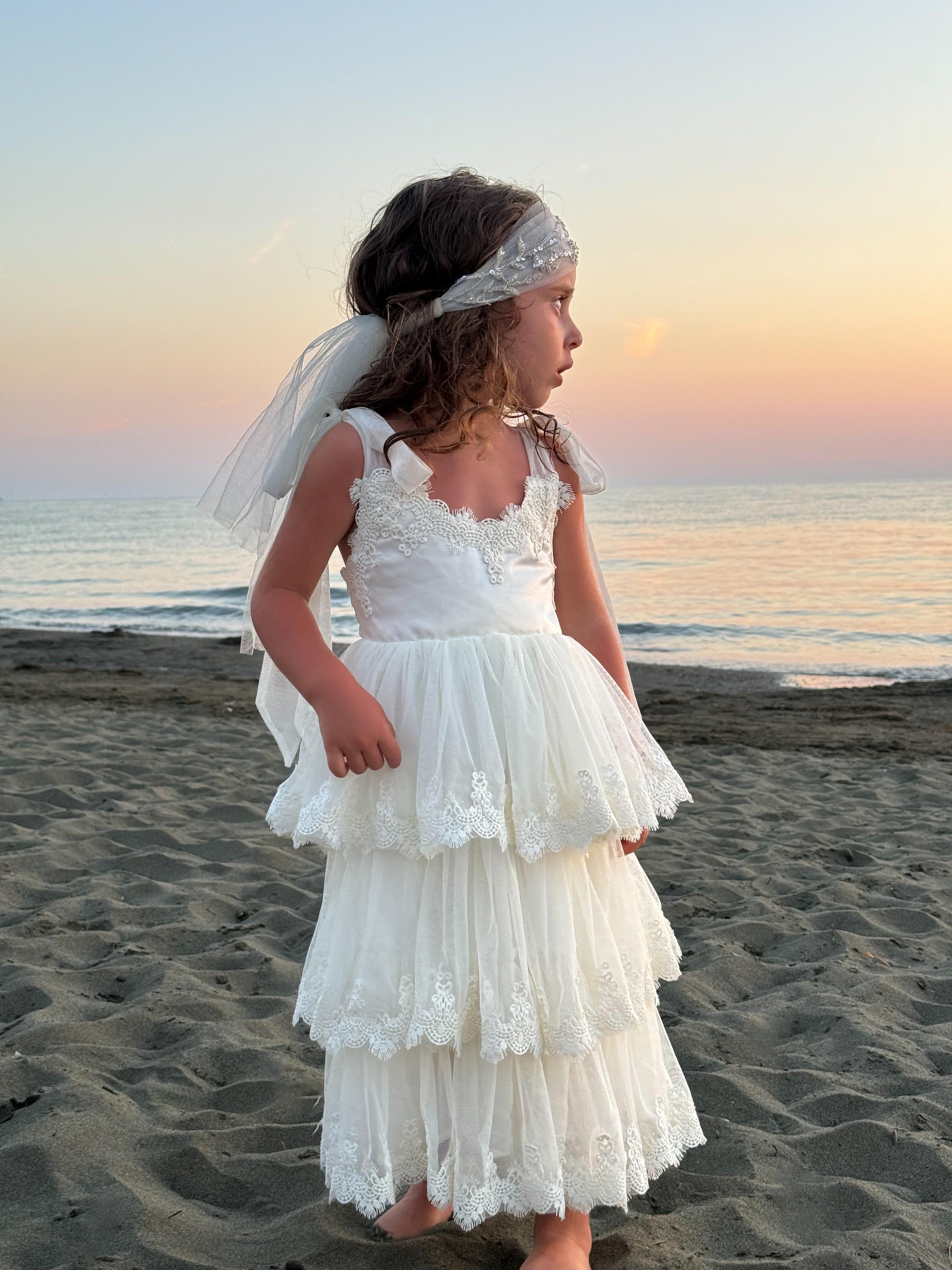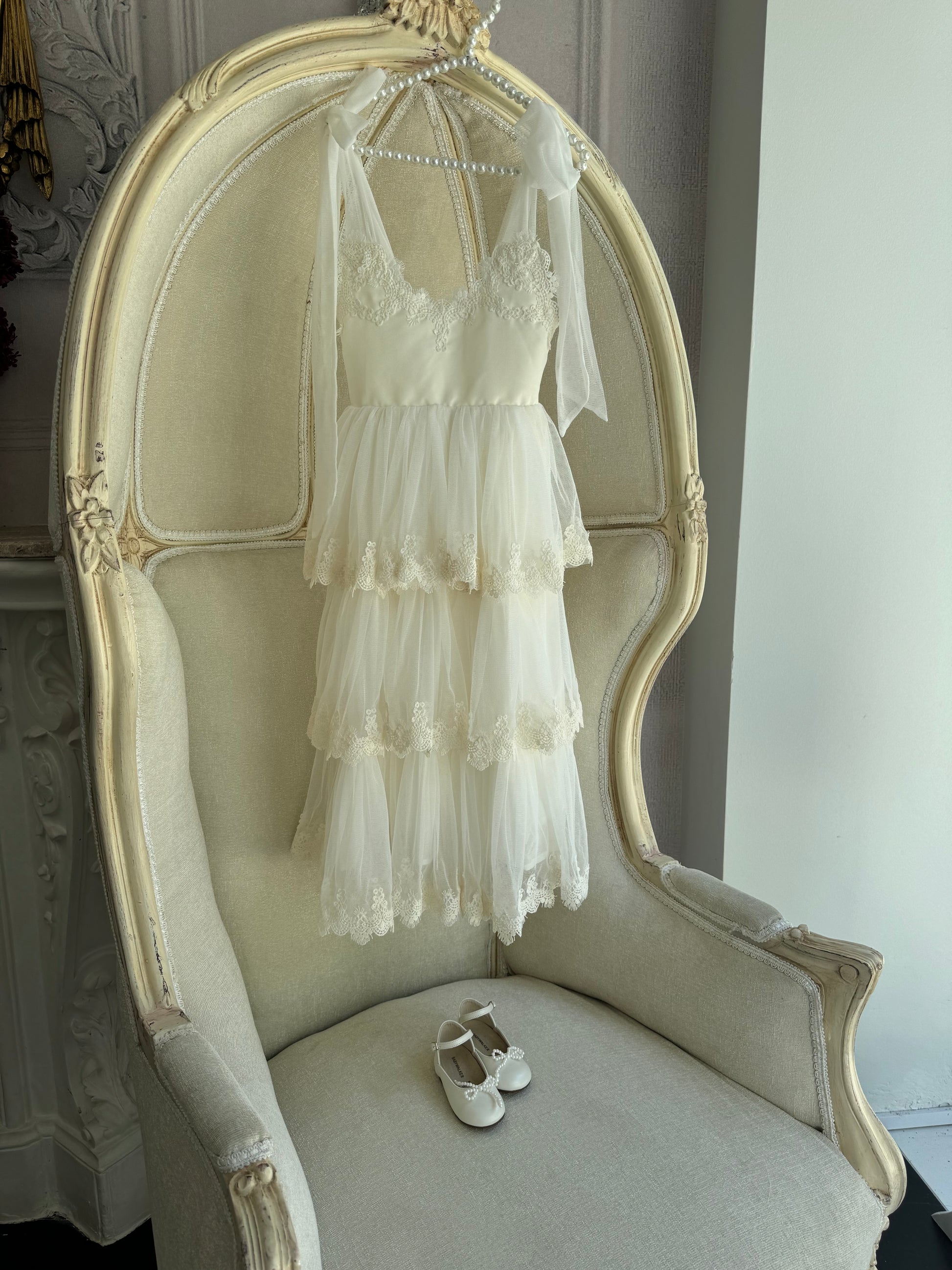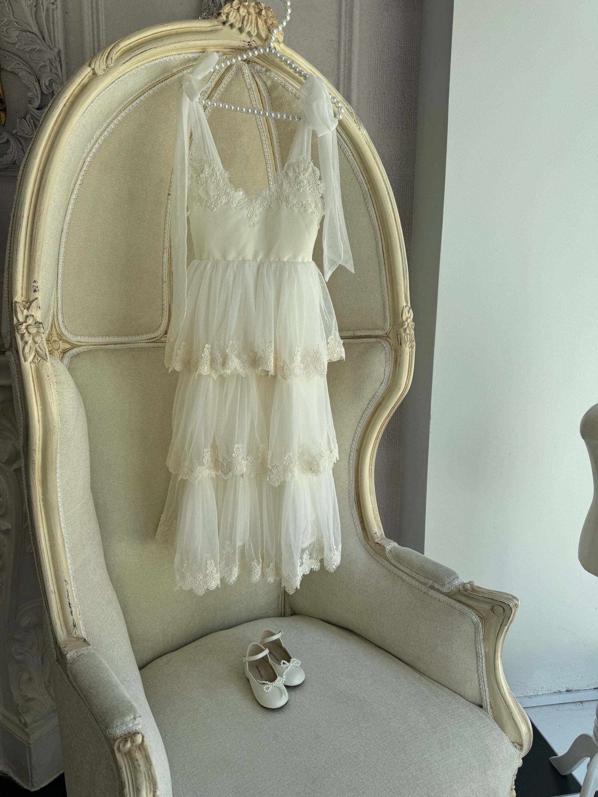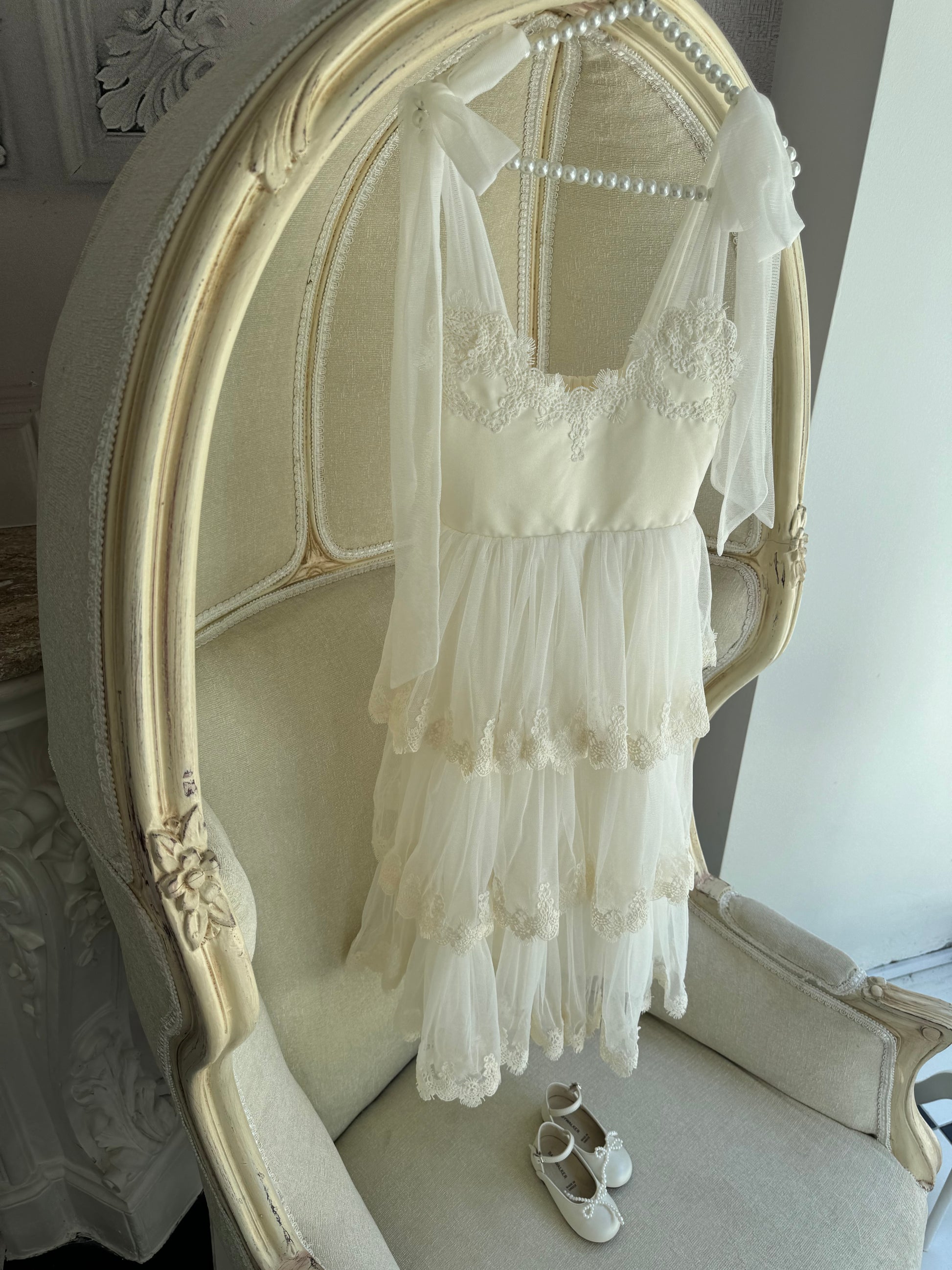 Fustan eventesh dhe pagezimesh, veror me tirante qe lidhen, me extra gjatesi.
