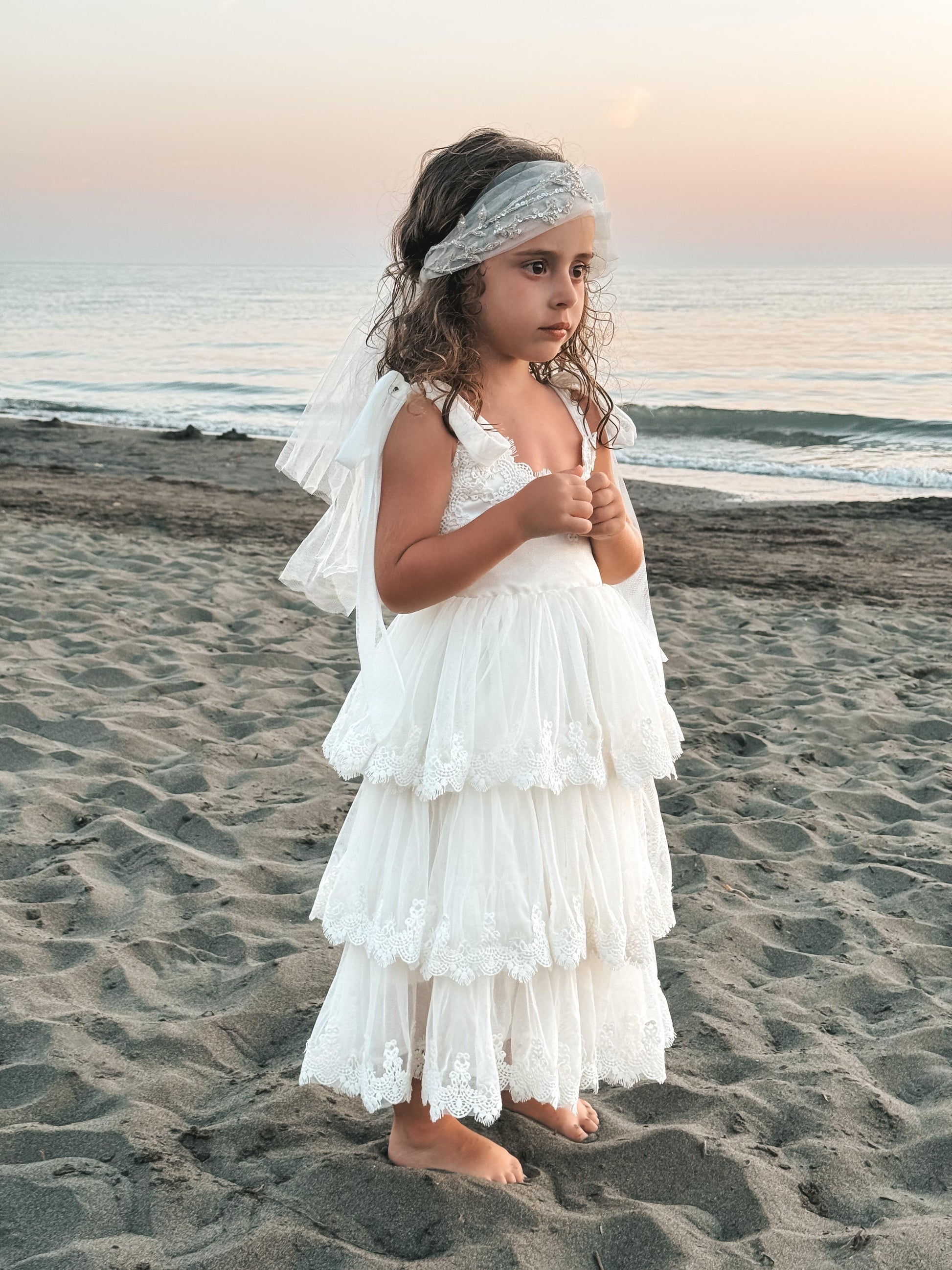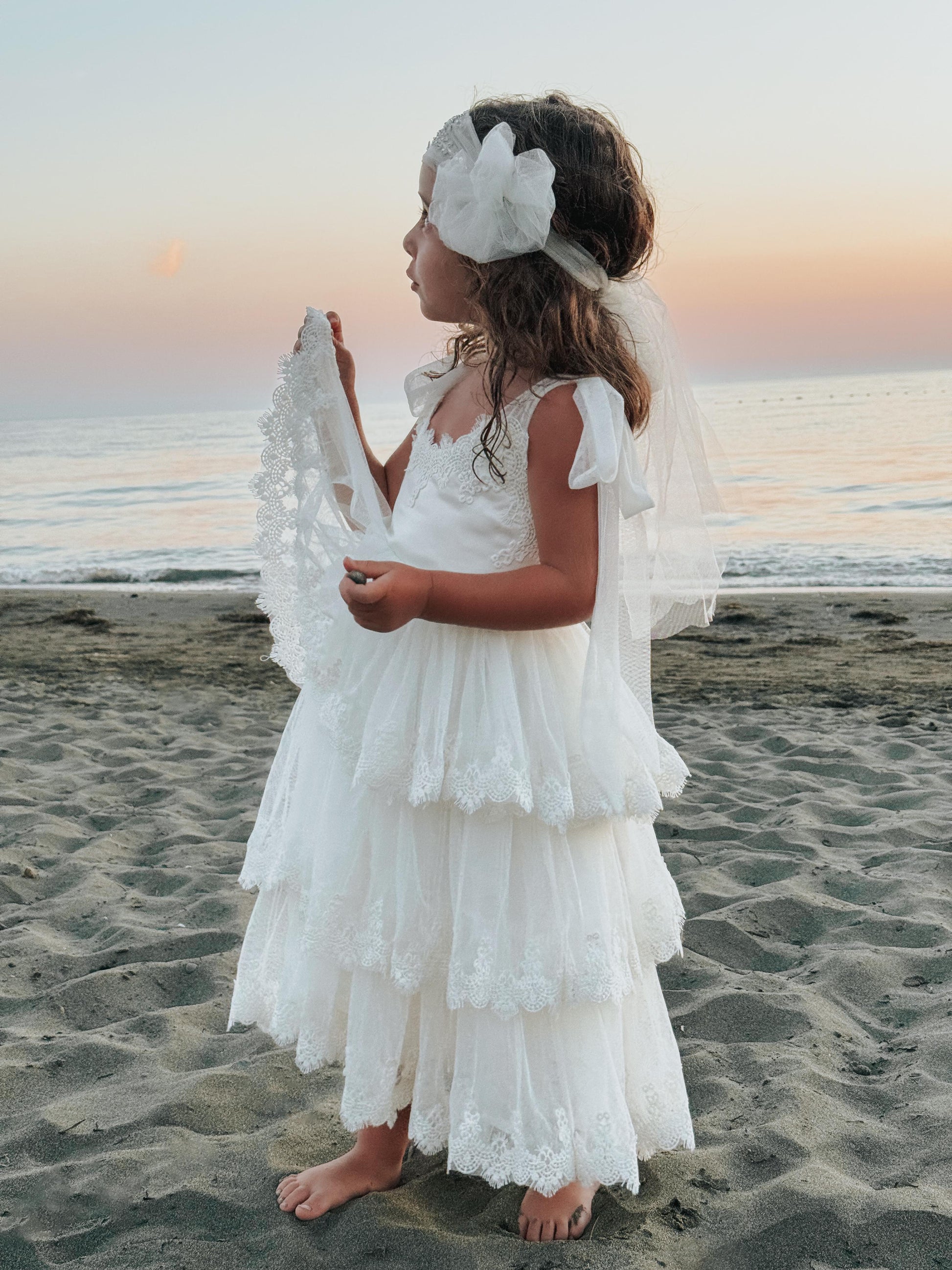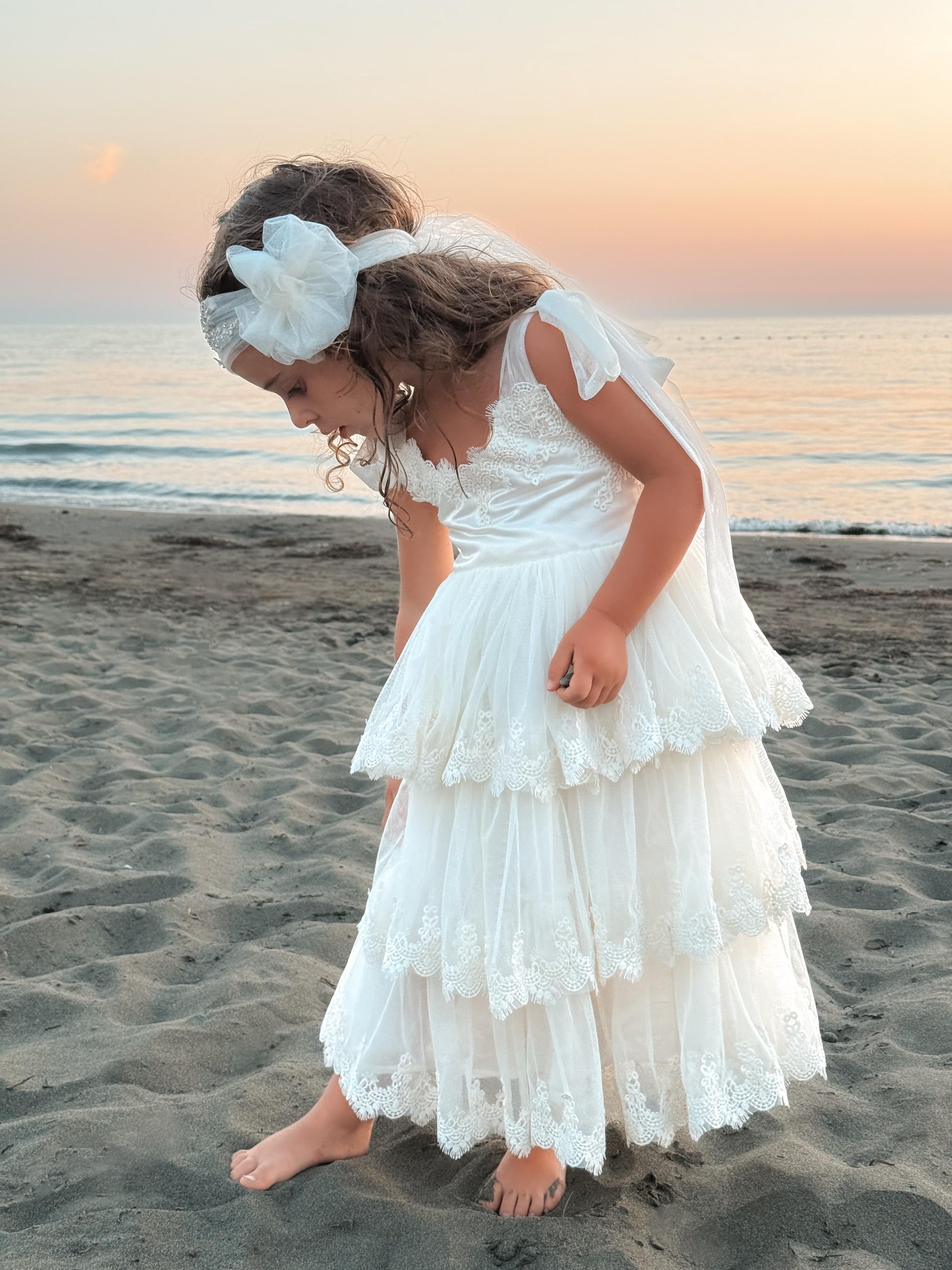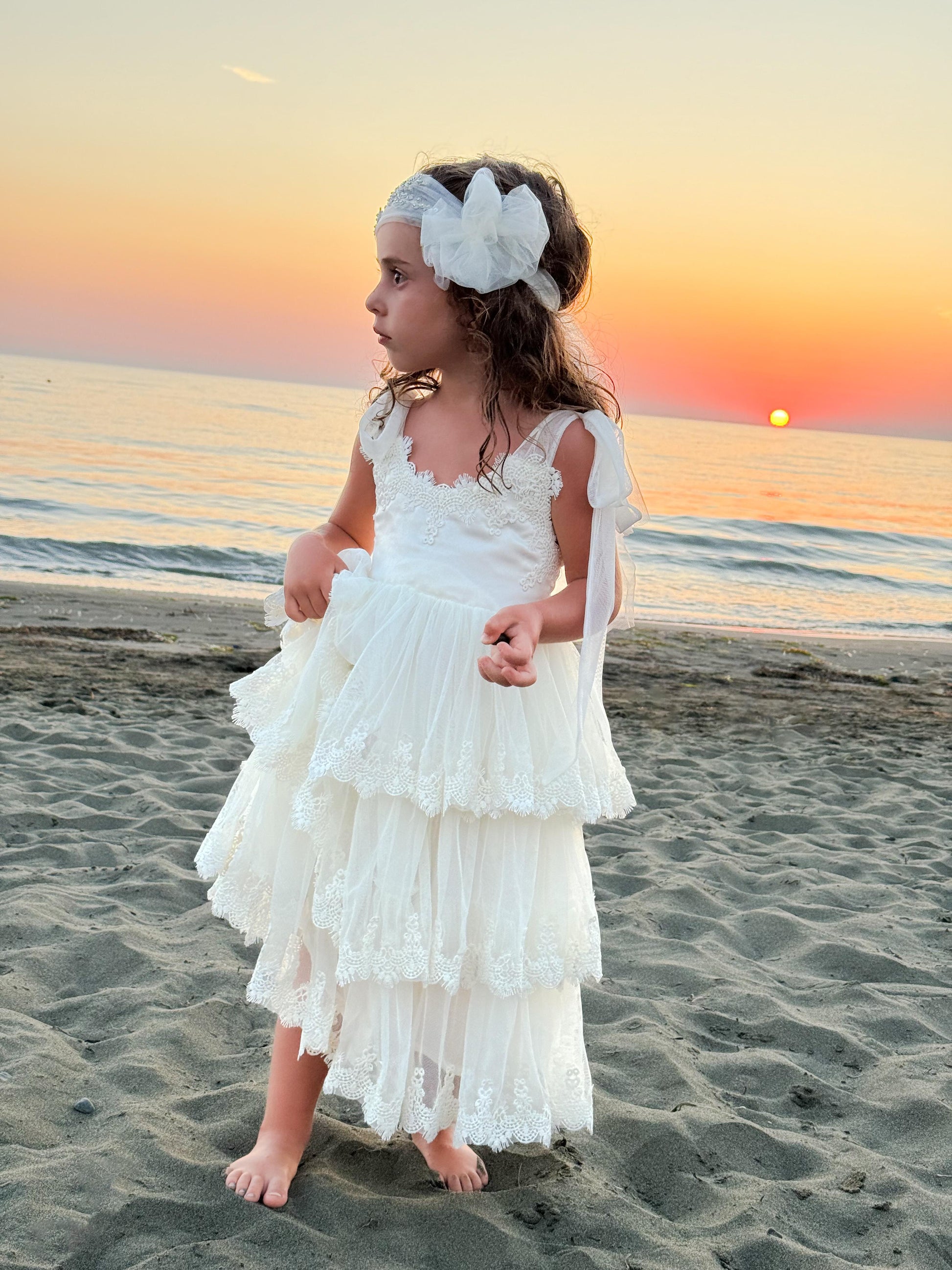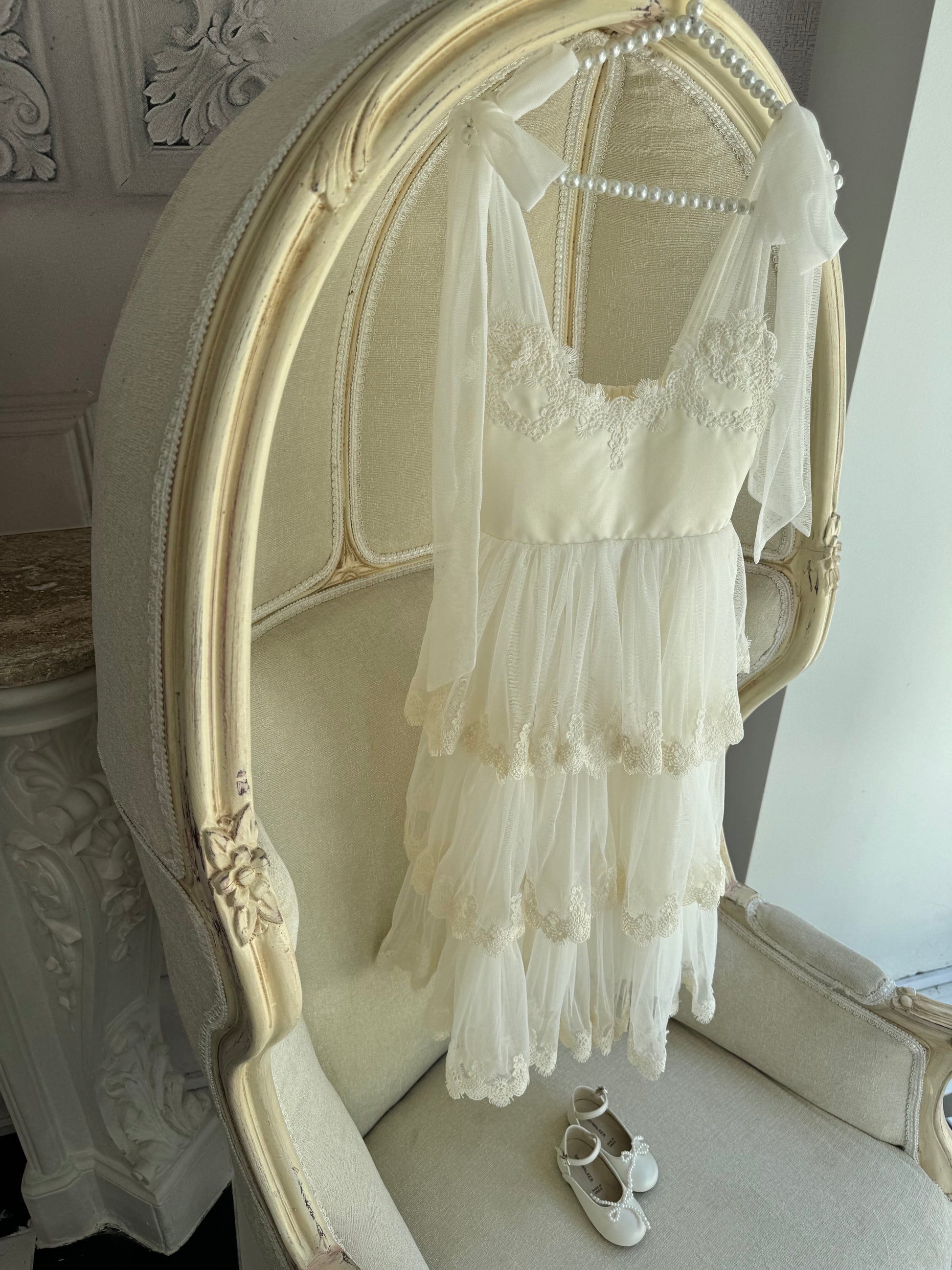 Fustan eventesh dhe pagezimesh, veror me tirante qe lidhen, me extra gjatesi.