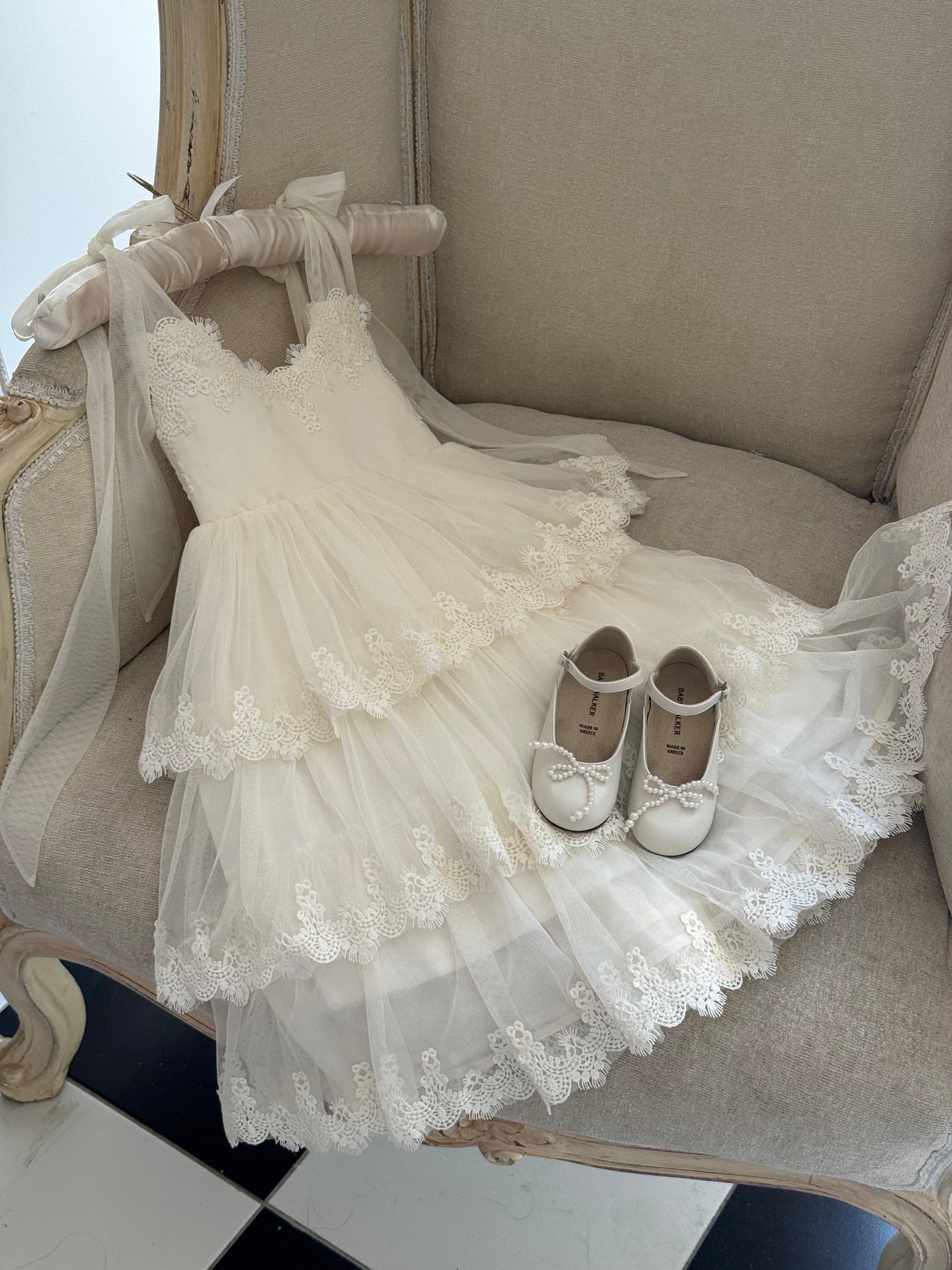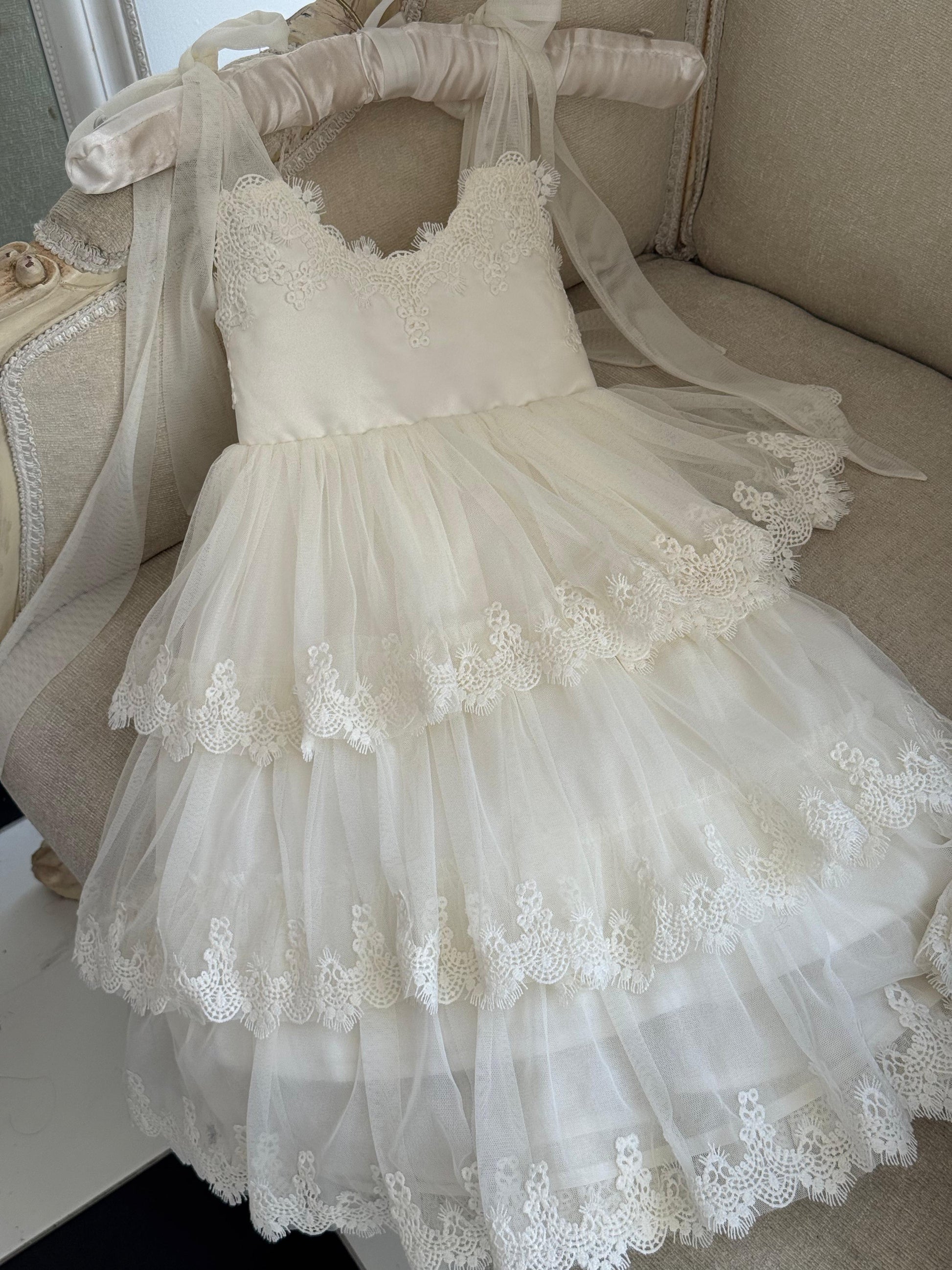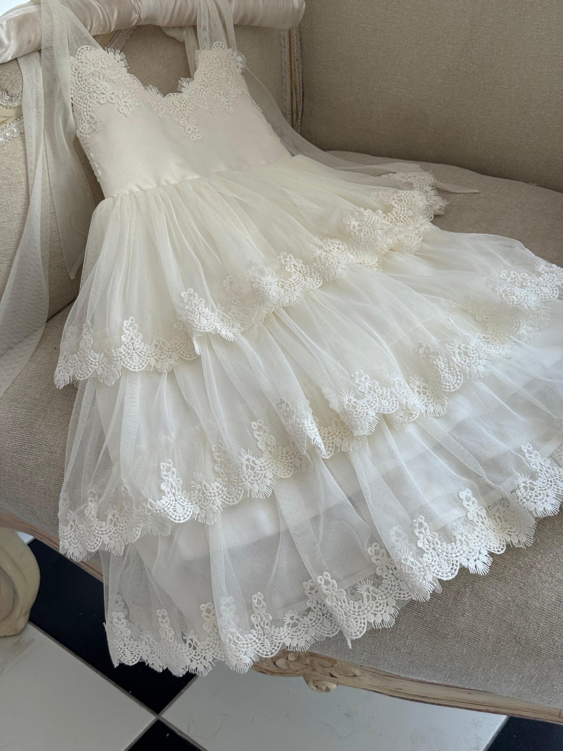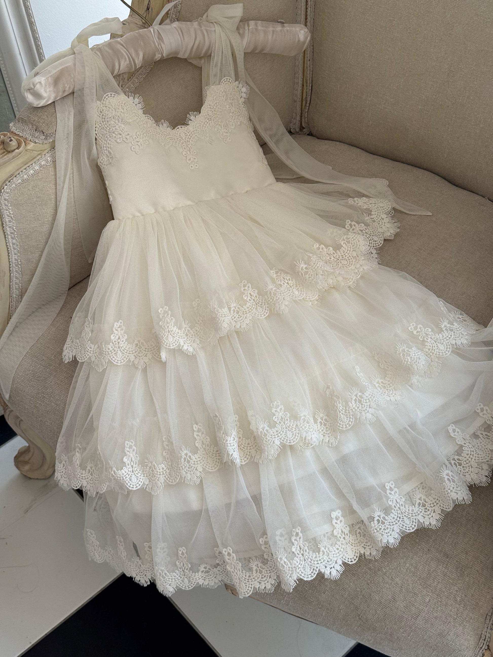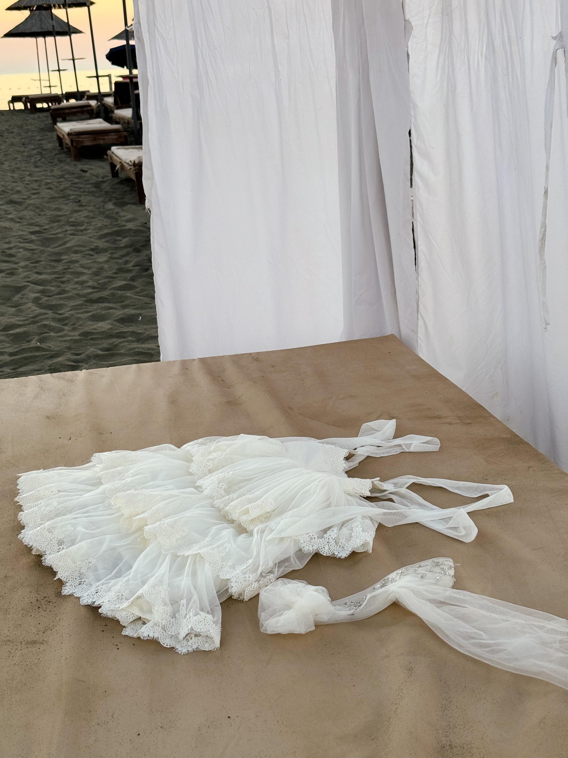 Fustan eventesh dhe pagezimesh, veror me tirante qe lidhen, me extra gjatesi.