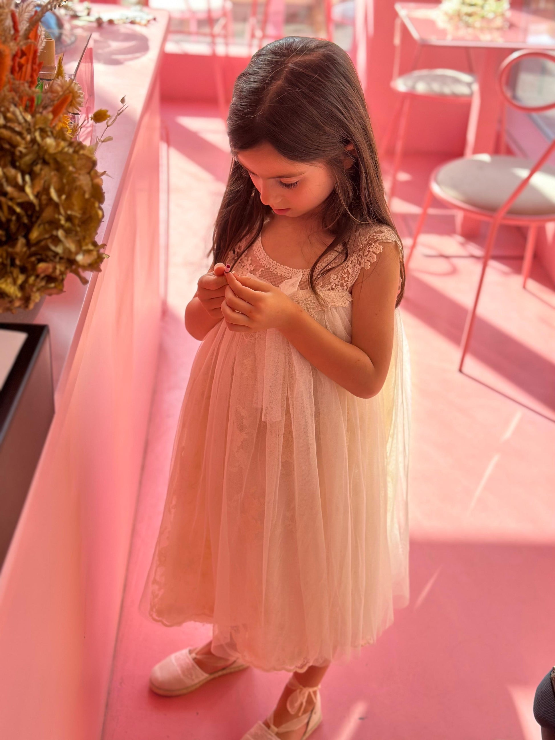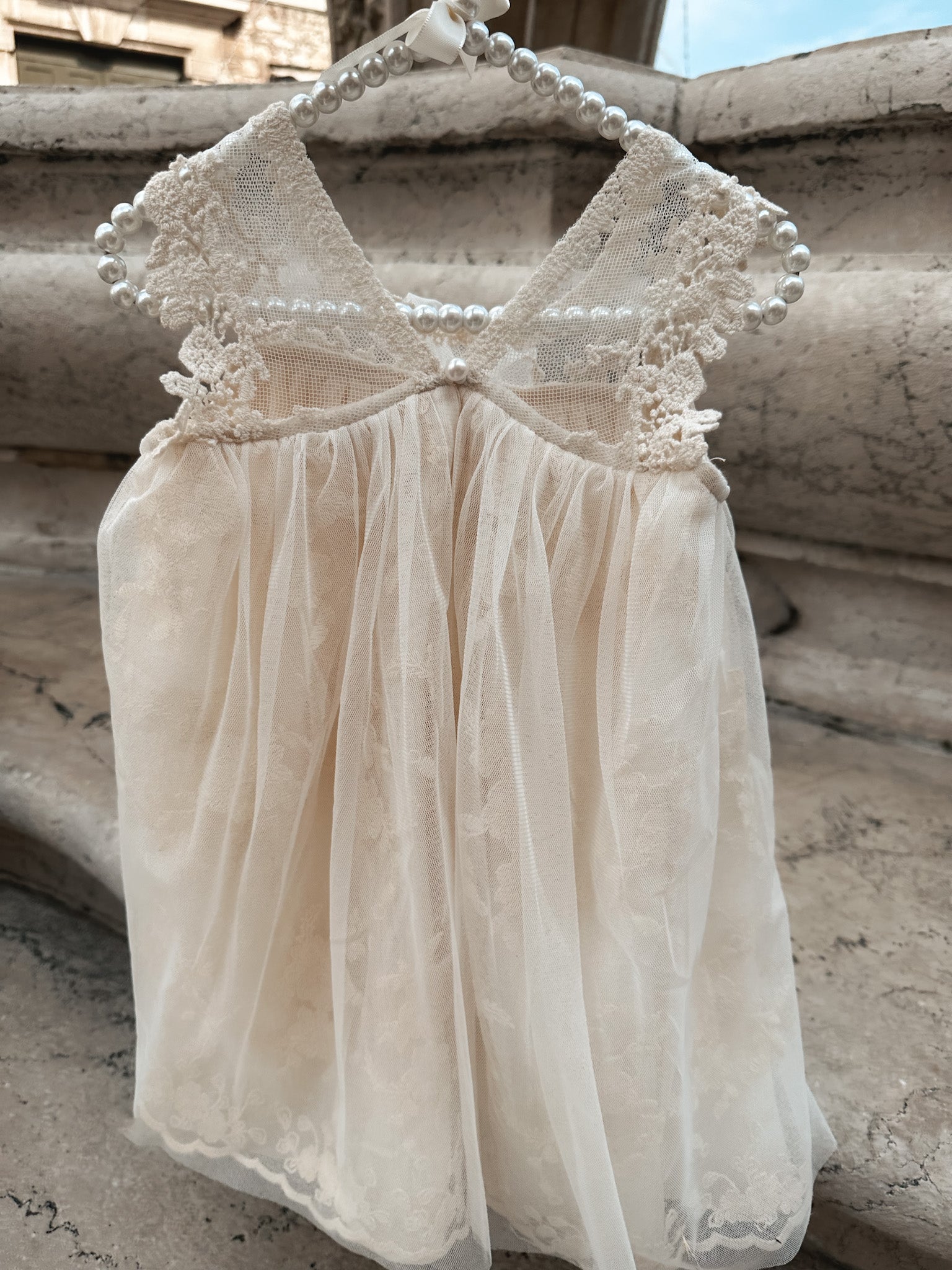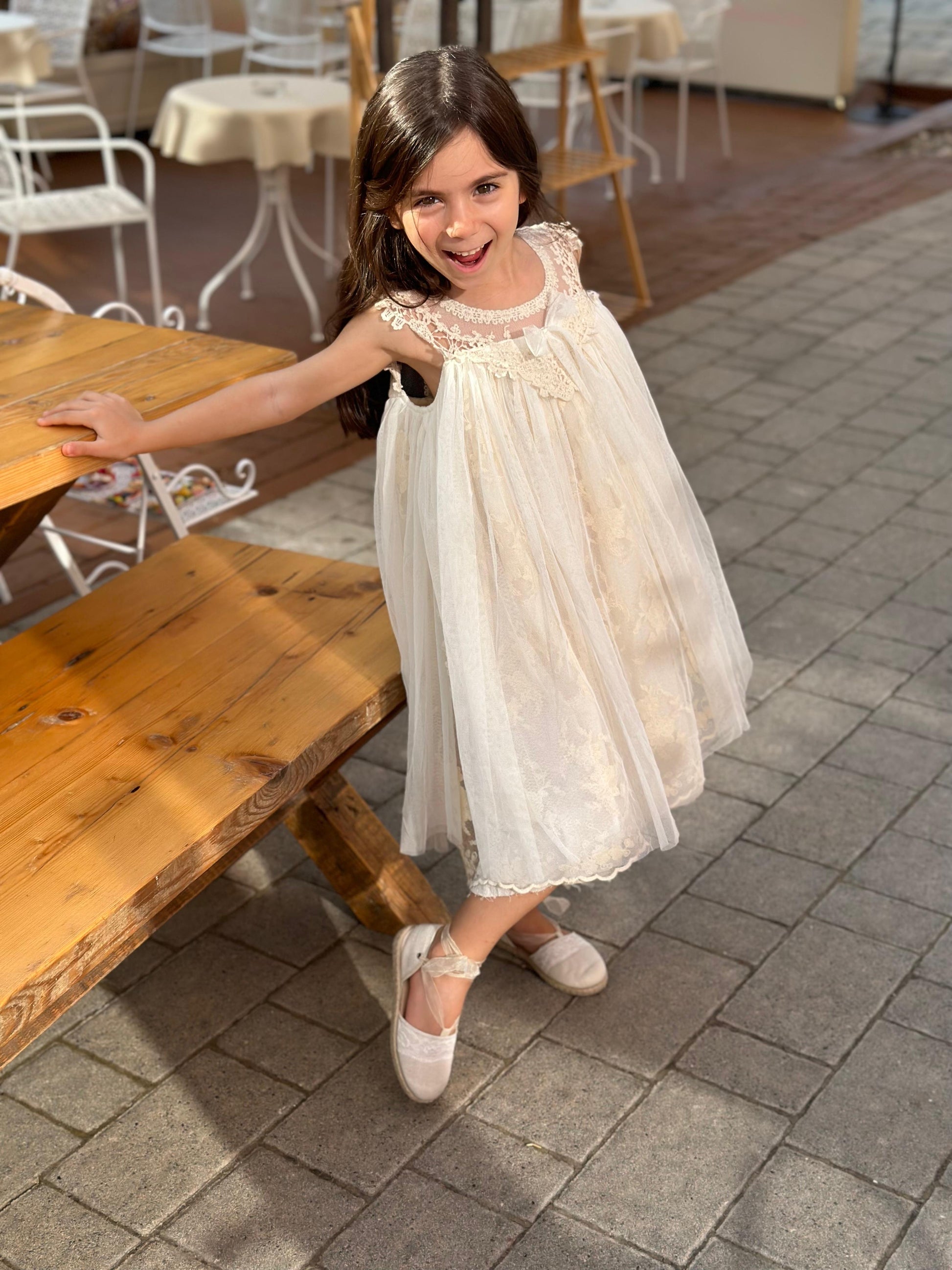 Fustan pagezimesh dhe eventesh, veror, me tantelle, tyl dhe lino luksi!