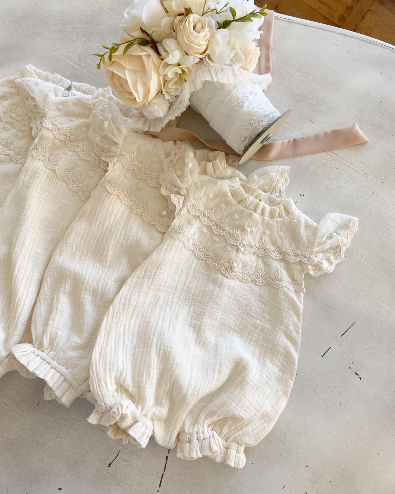 Romper pagezimesh dhe eventesh! Lino dhe tantelle me 3 perla perpara.