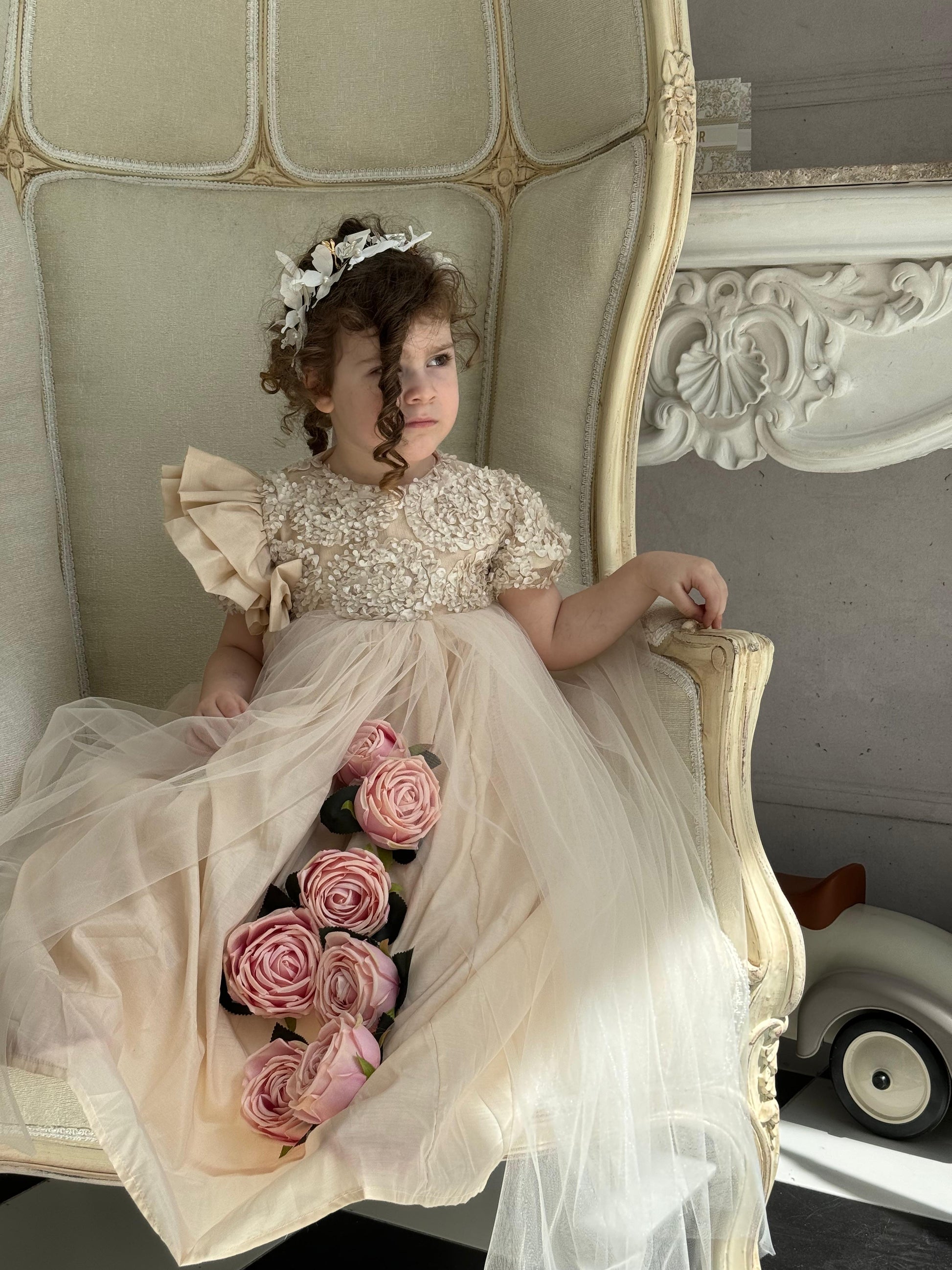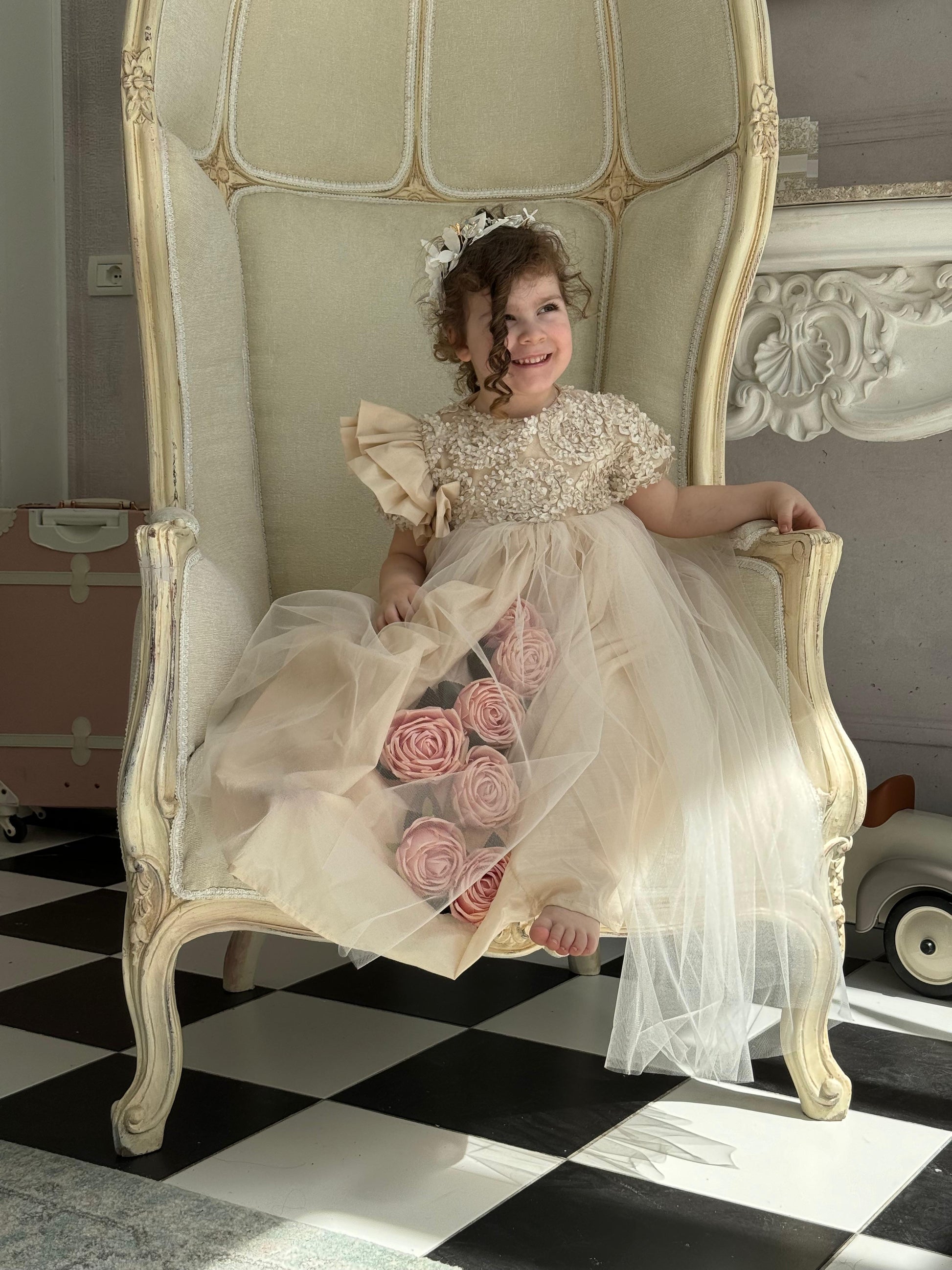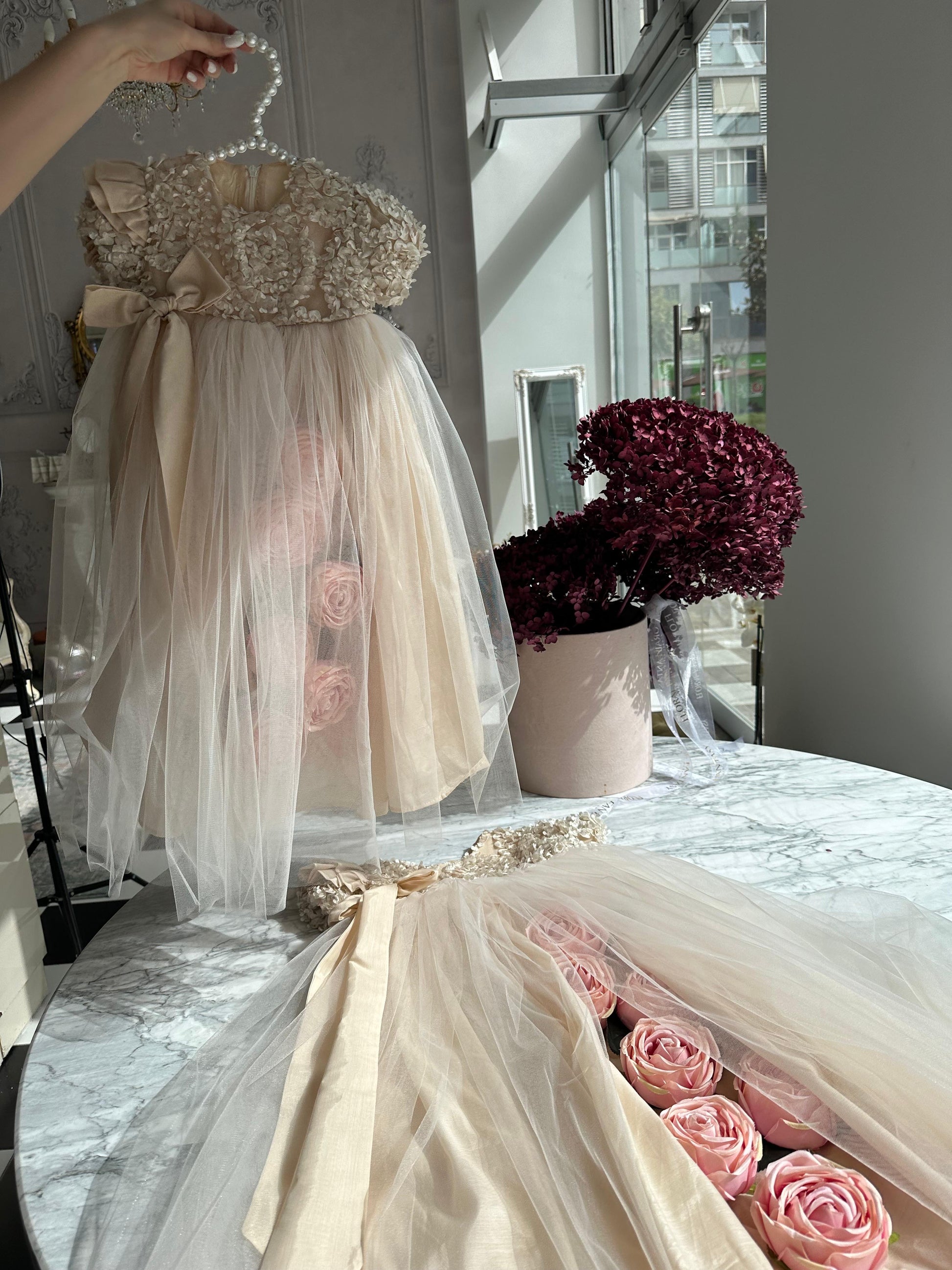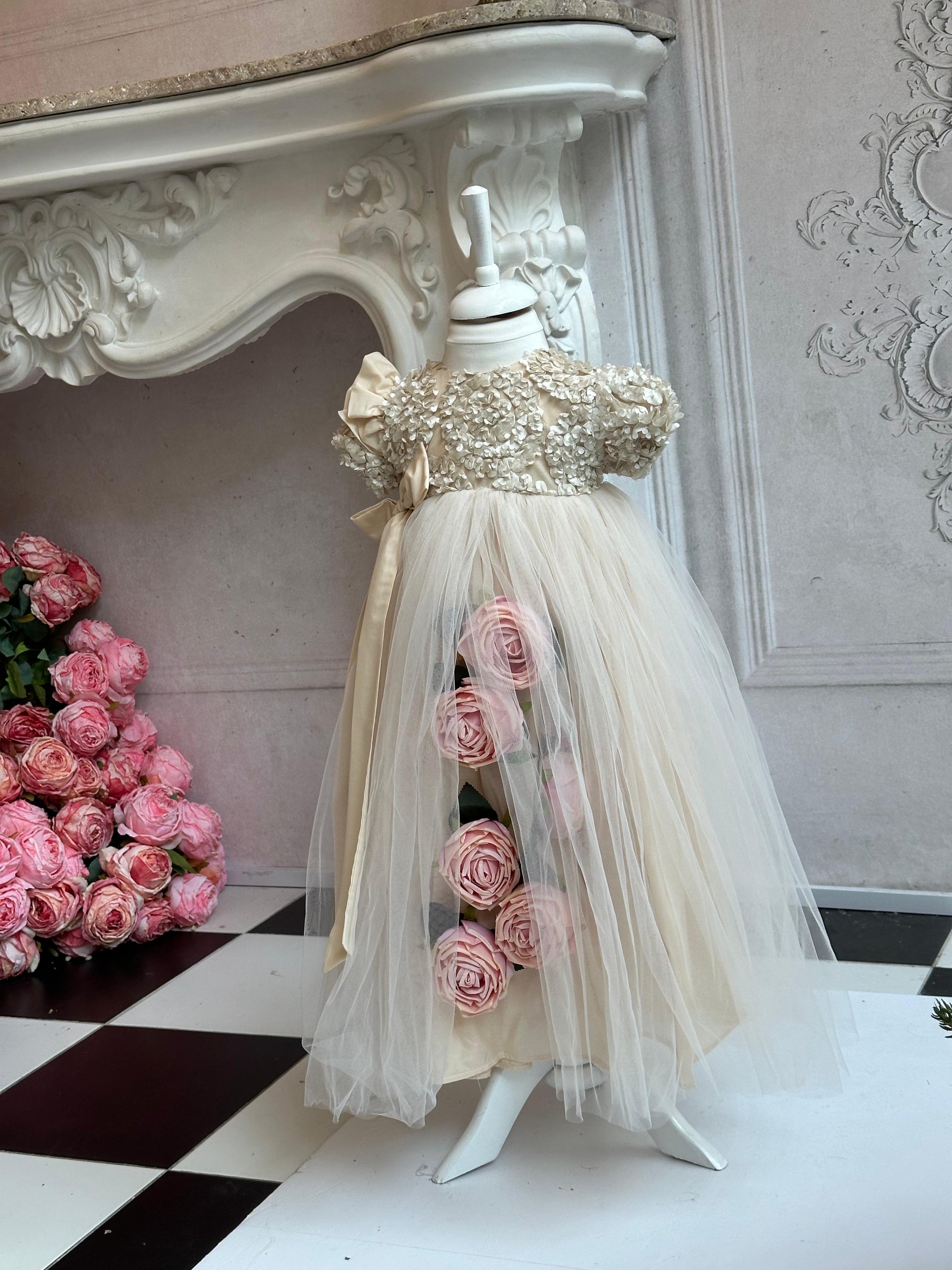 Fustan me extra gjatesi me trendafila