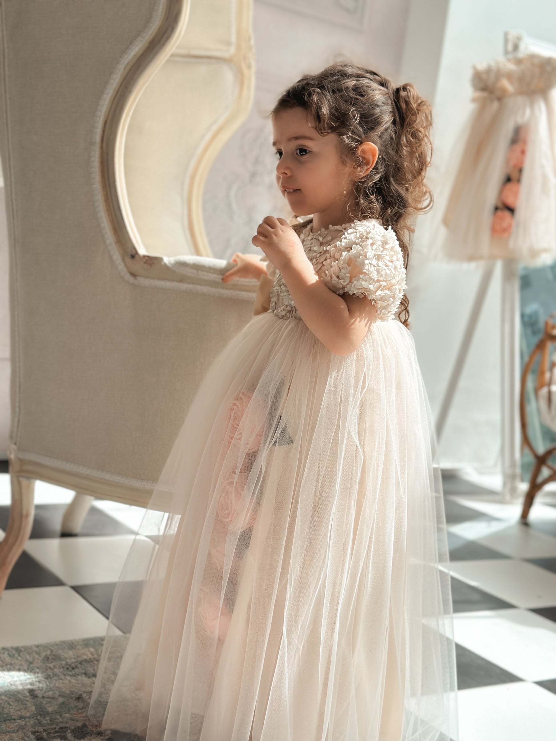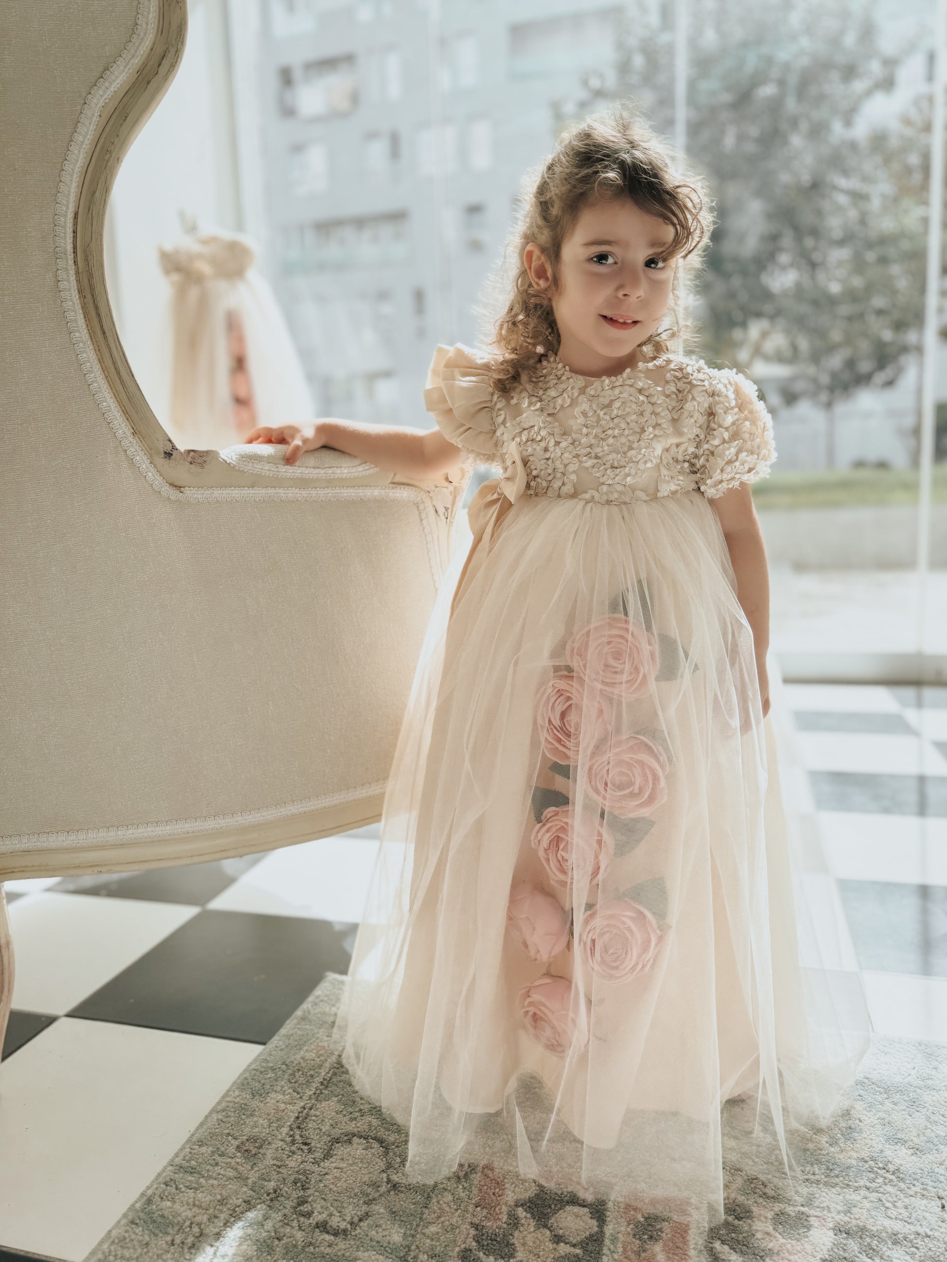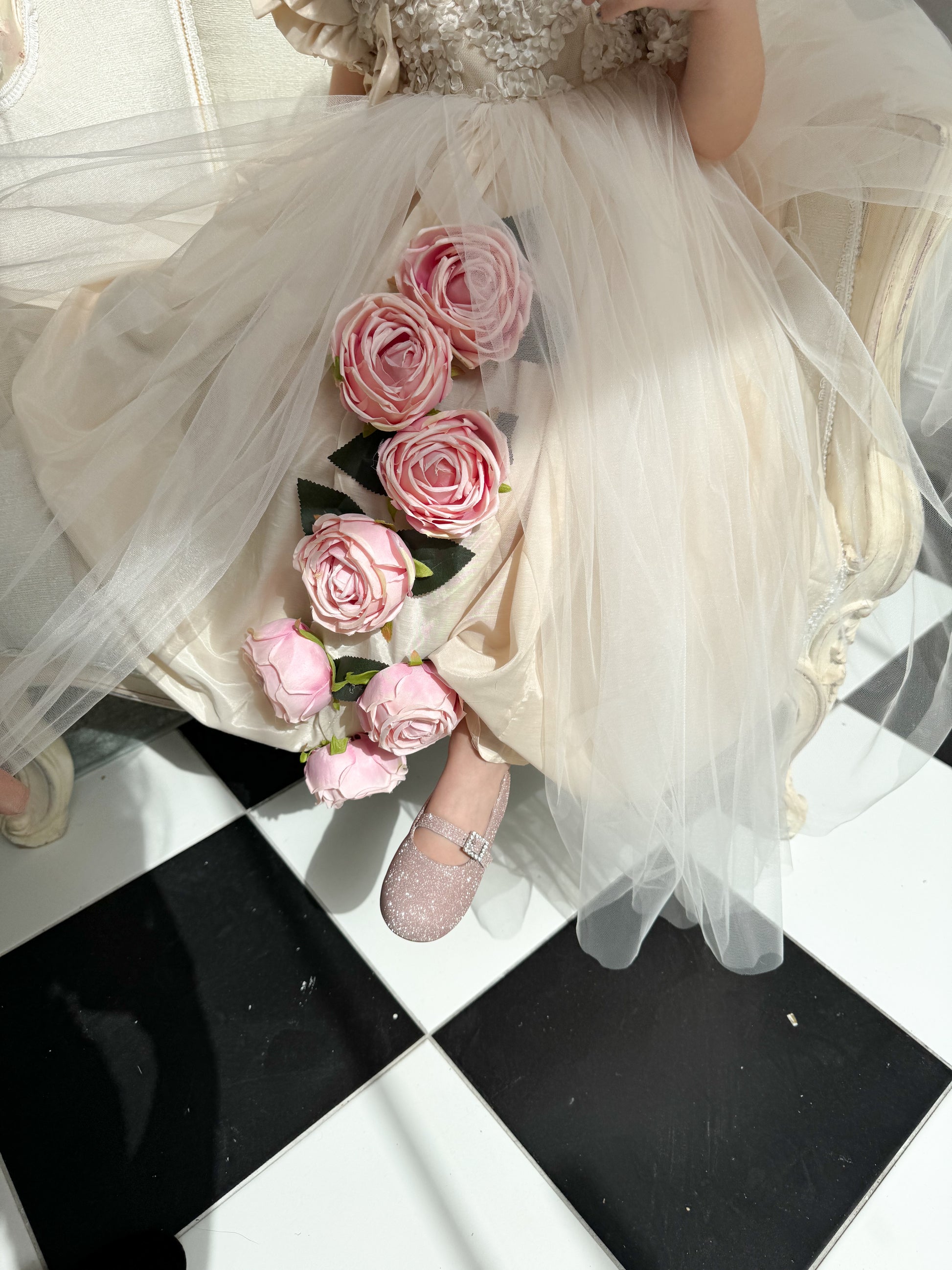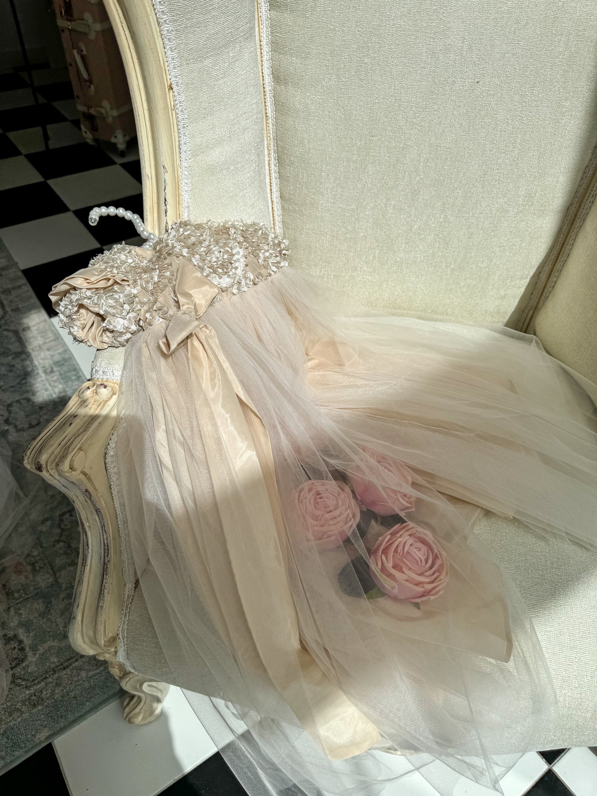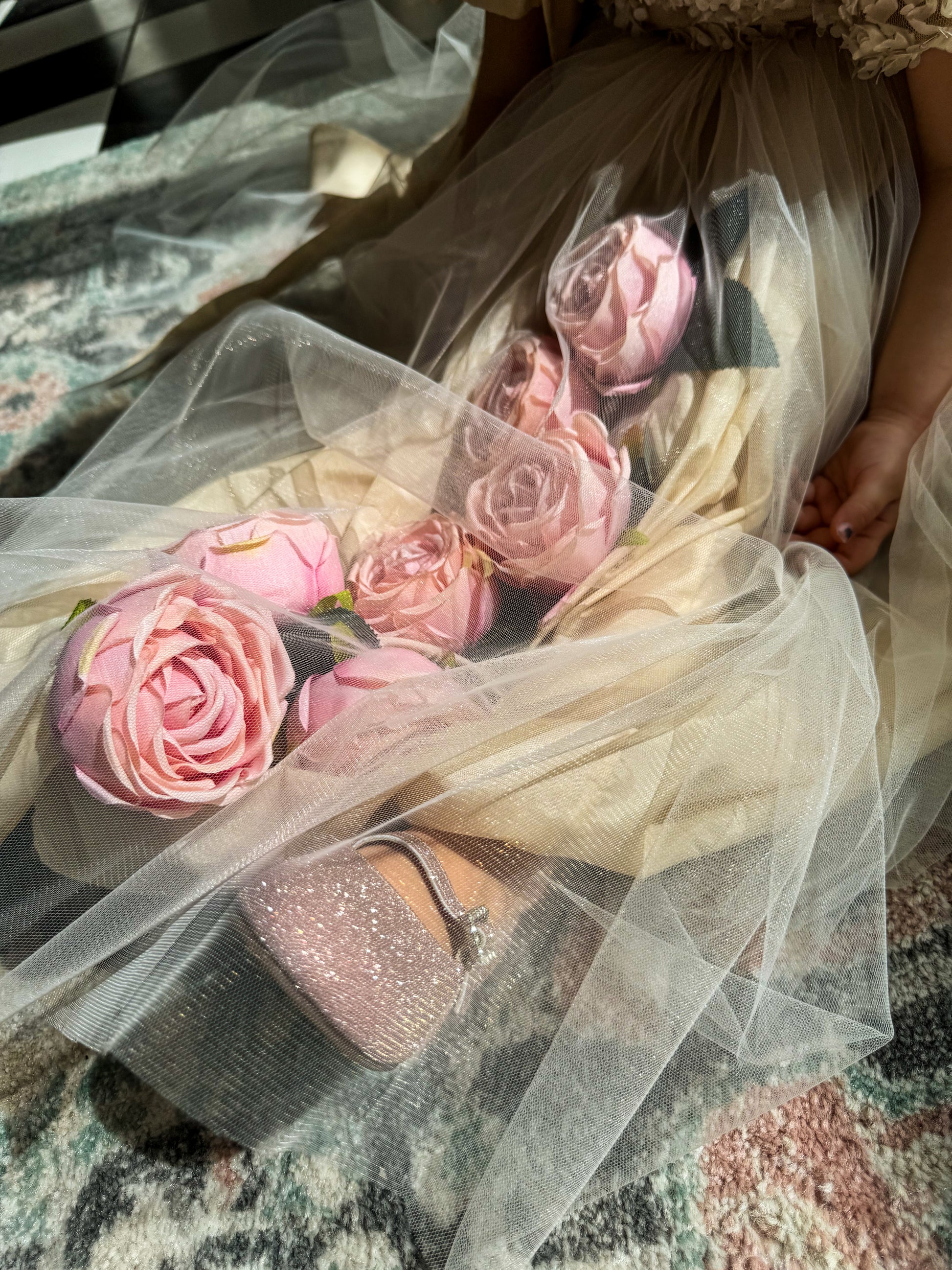 Fustan me extra gjatesi me trendafila