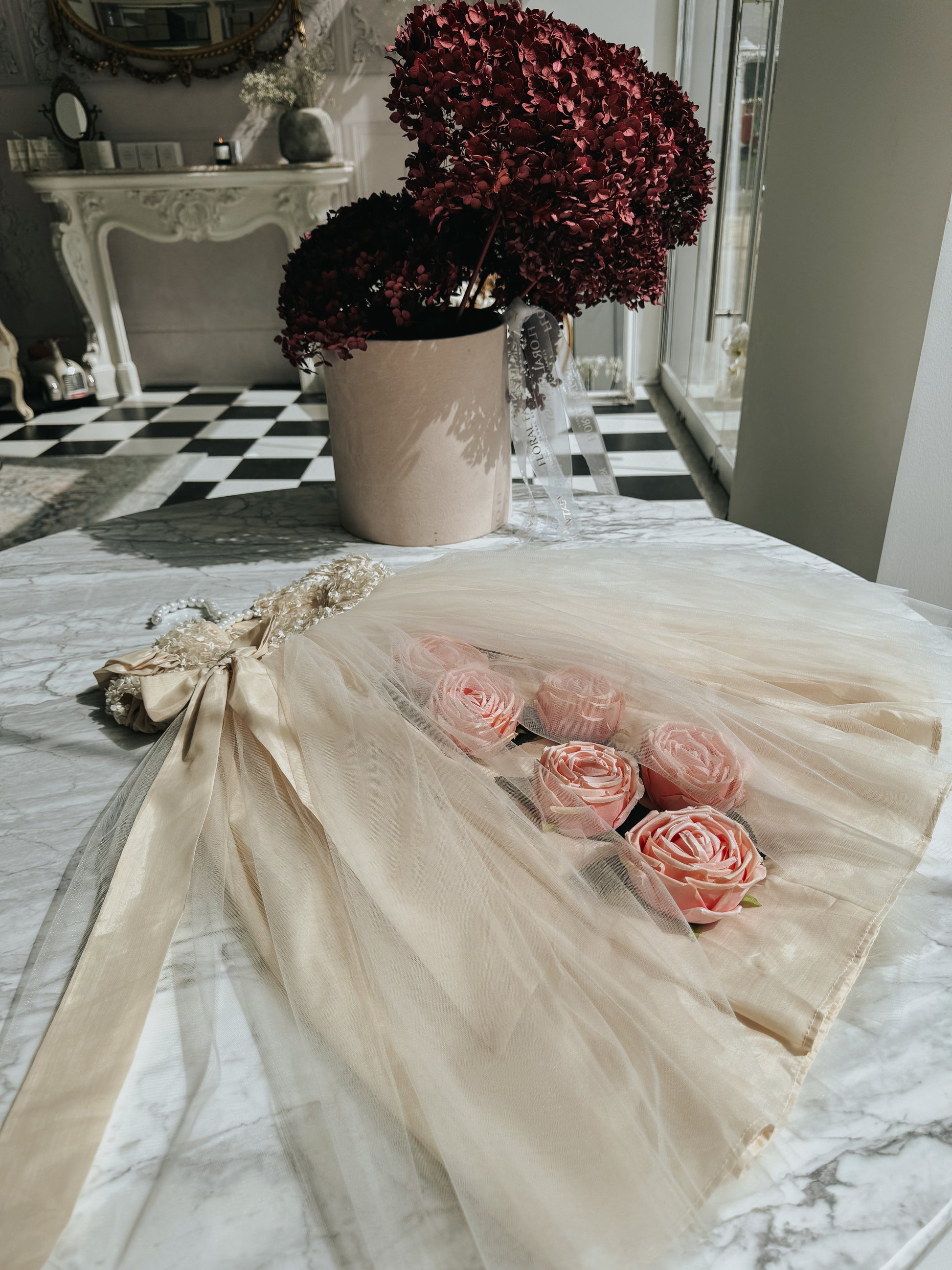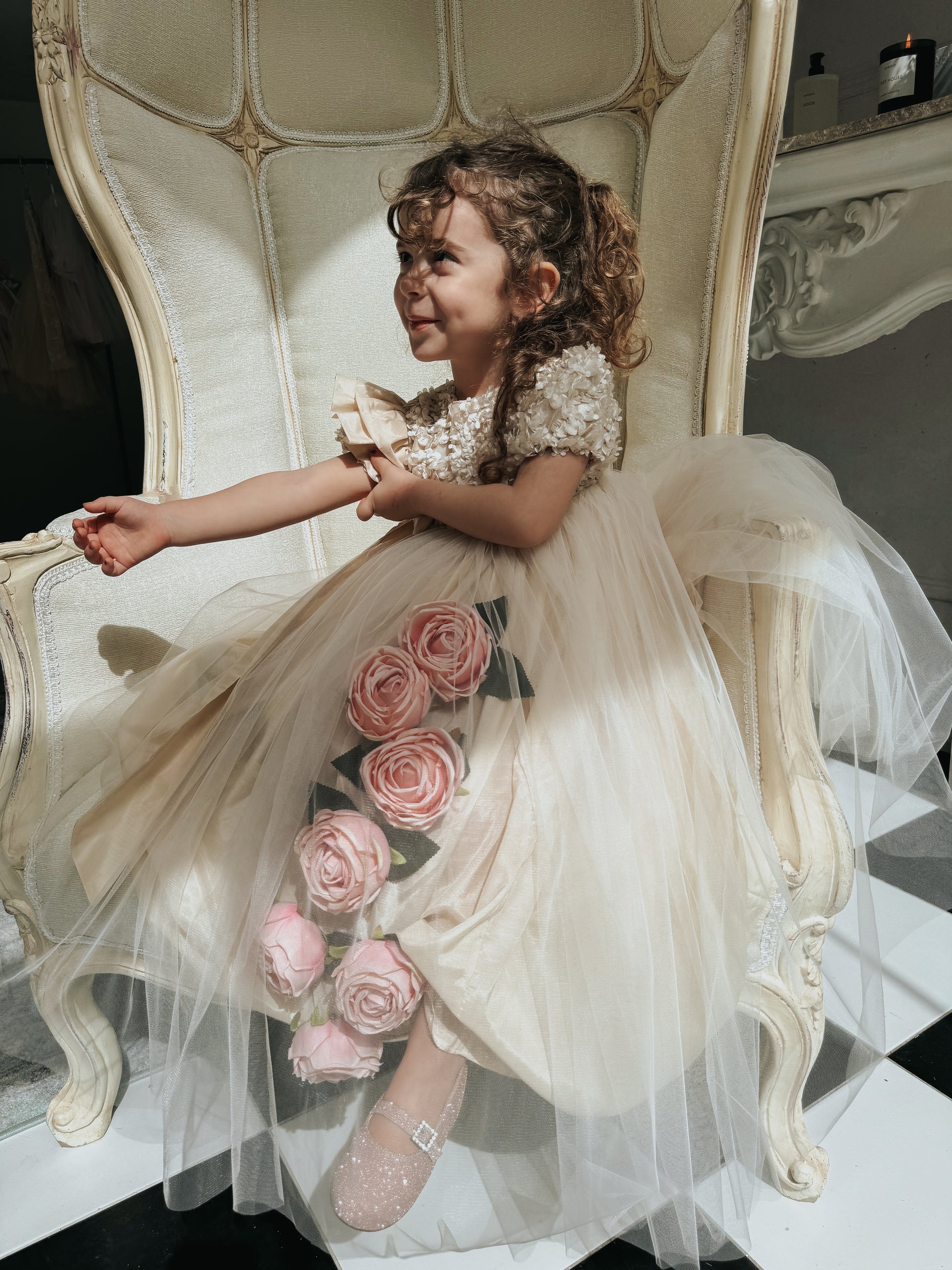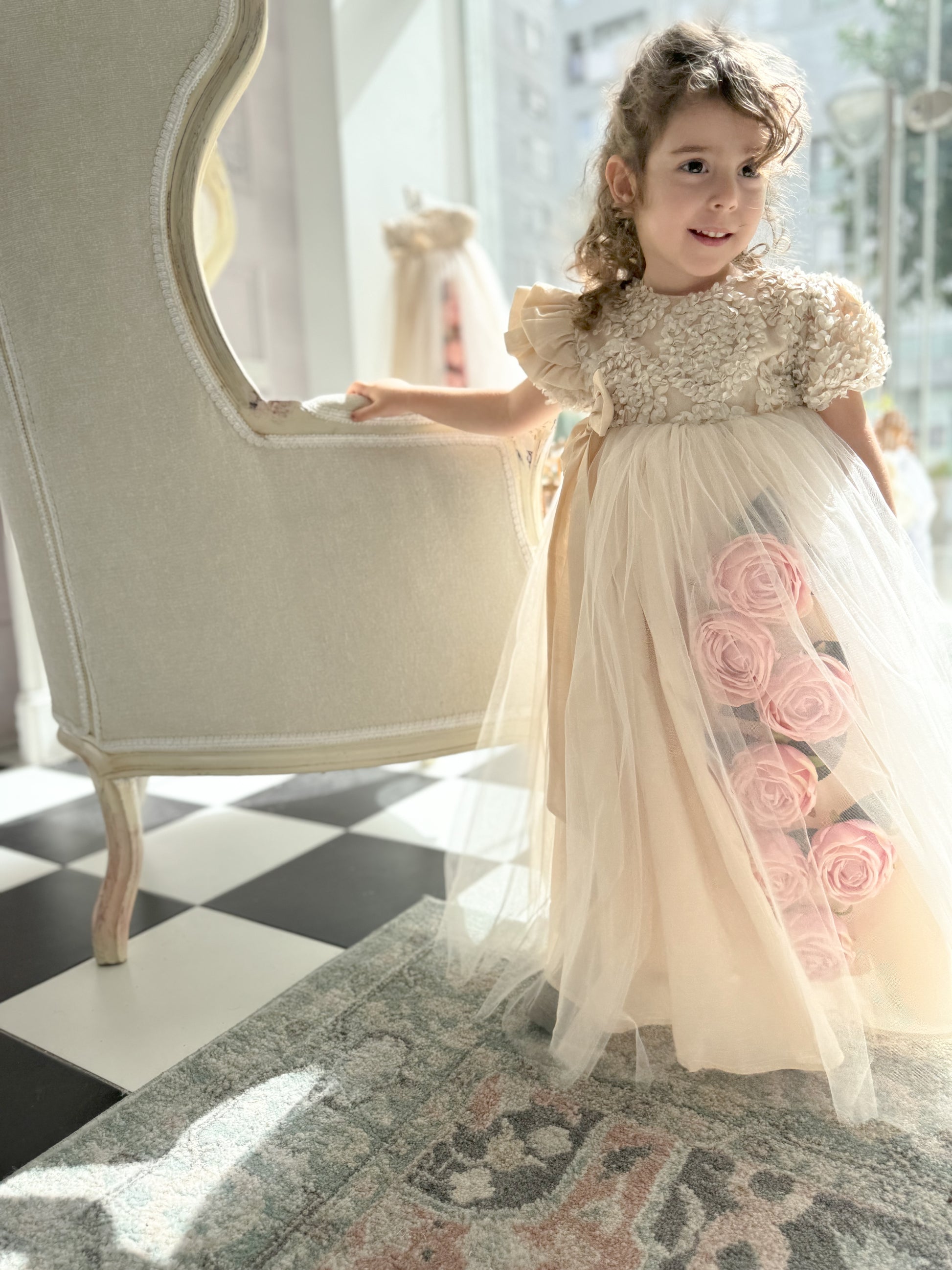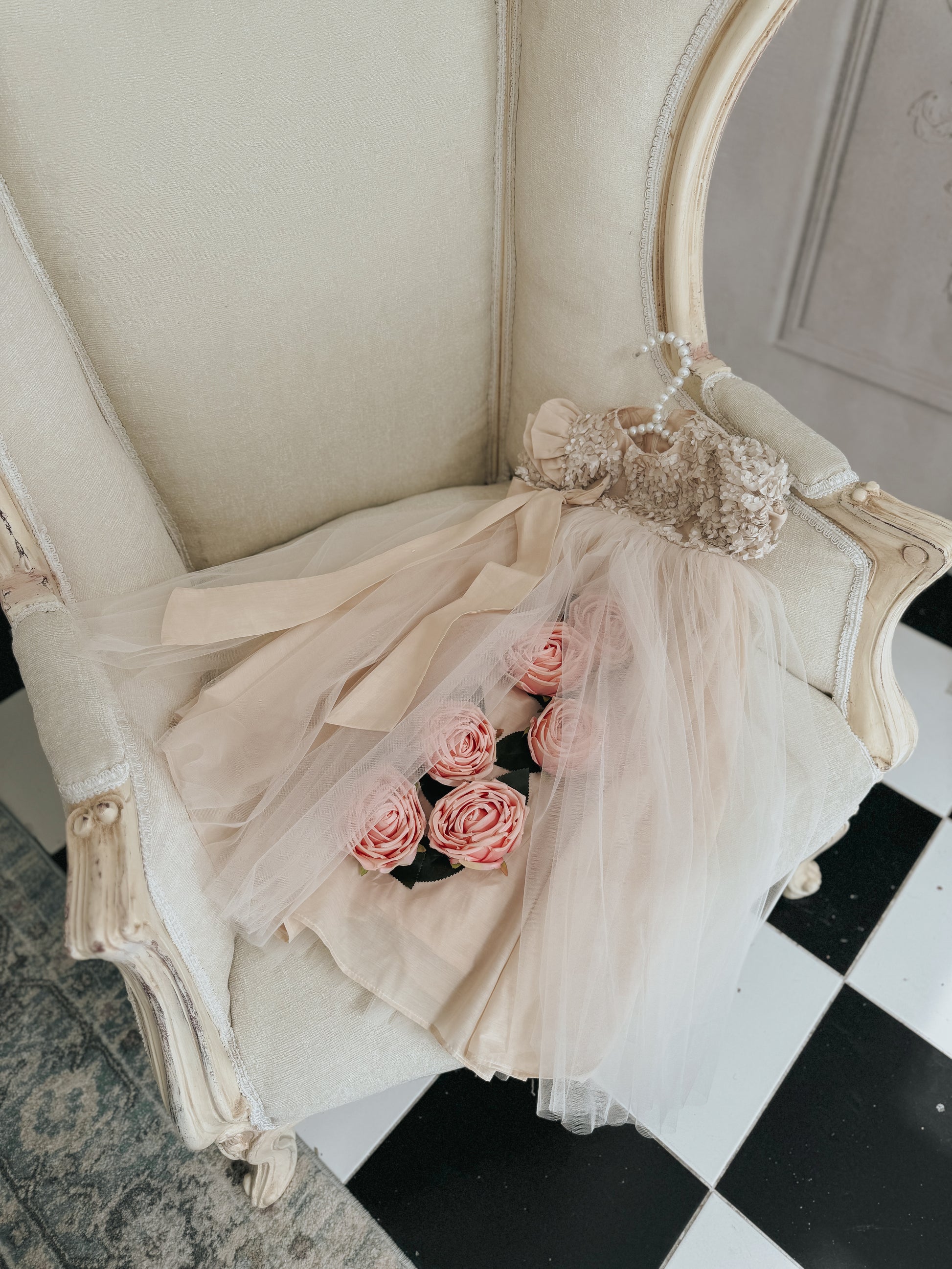 Fustan me extra gjatesi me trendafila
