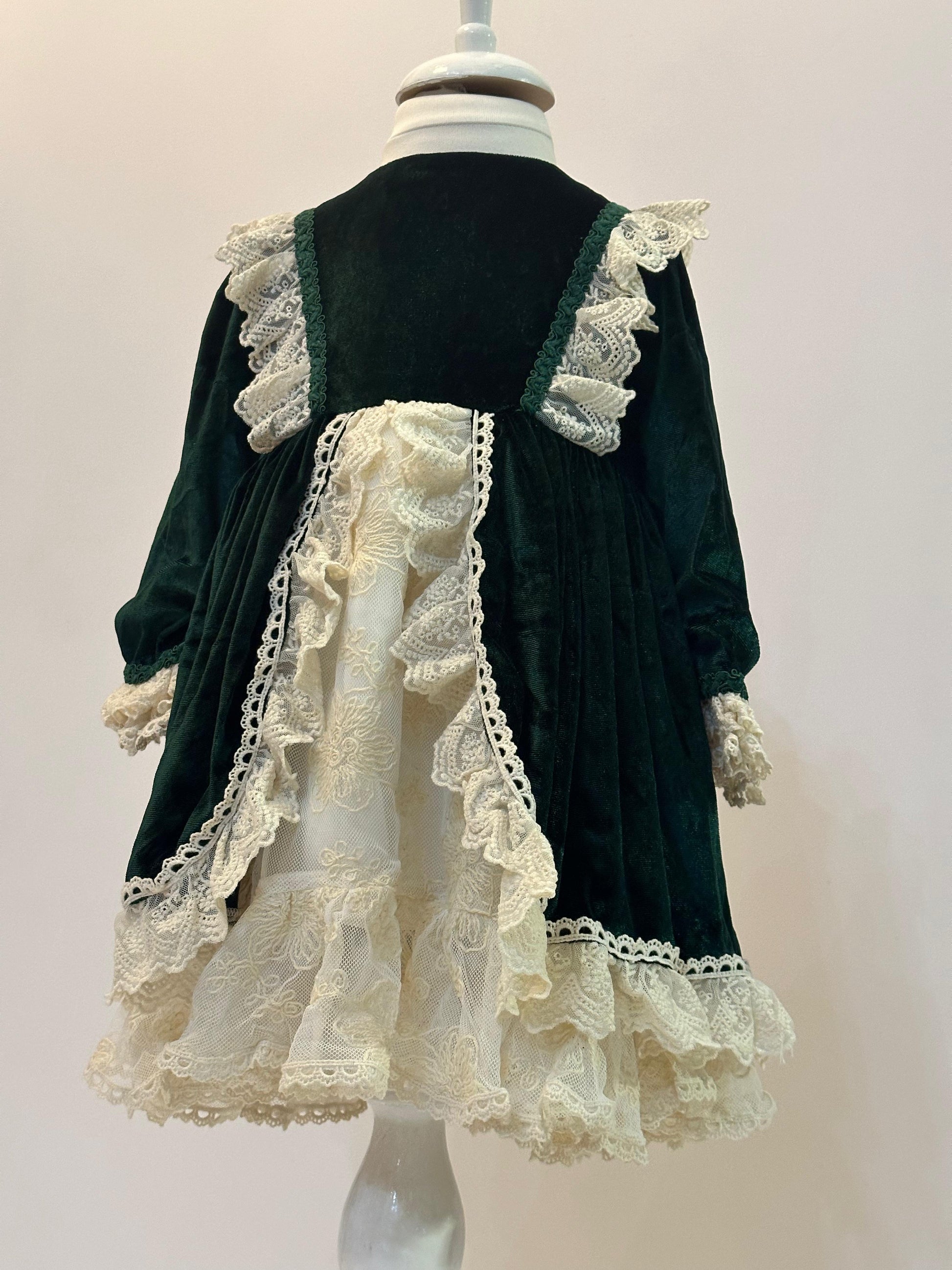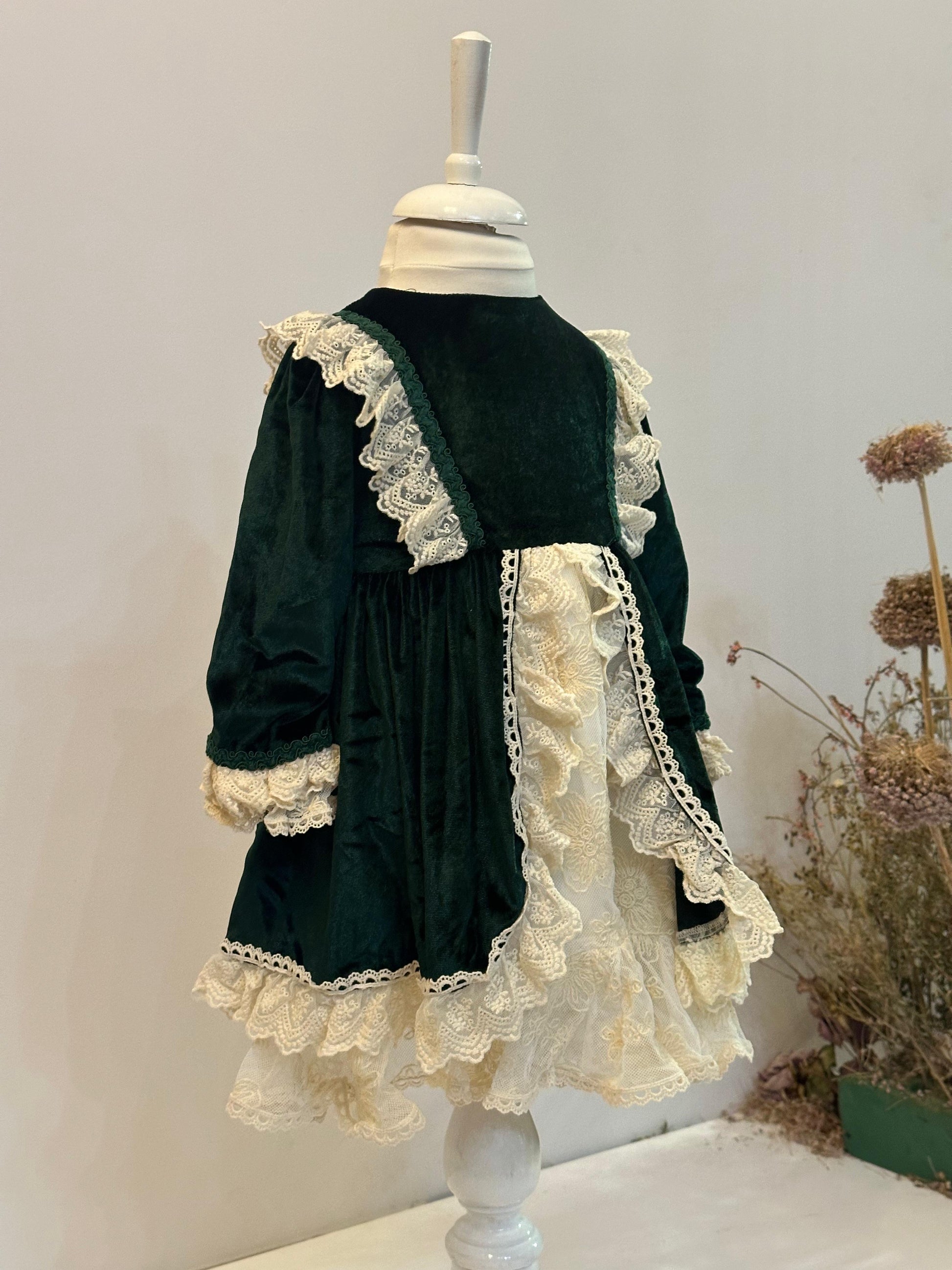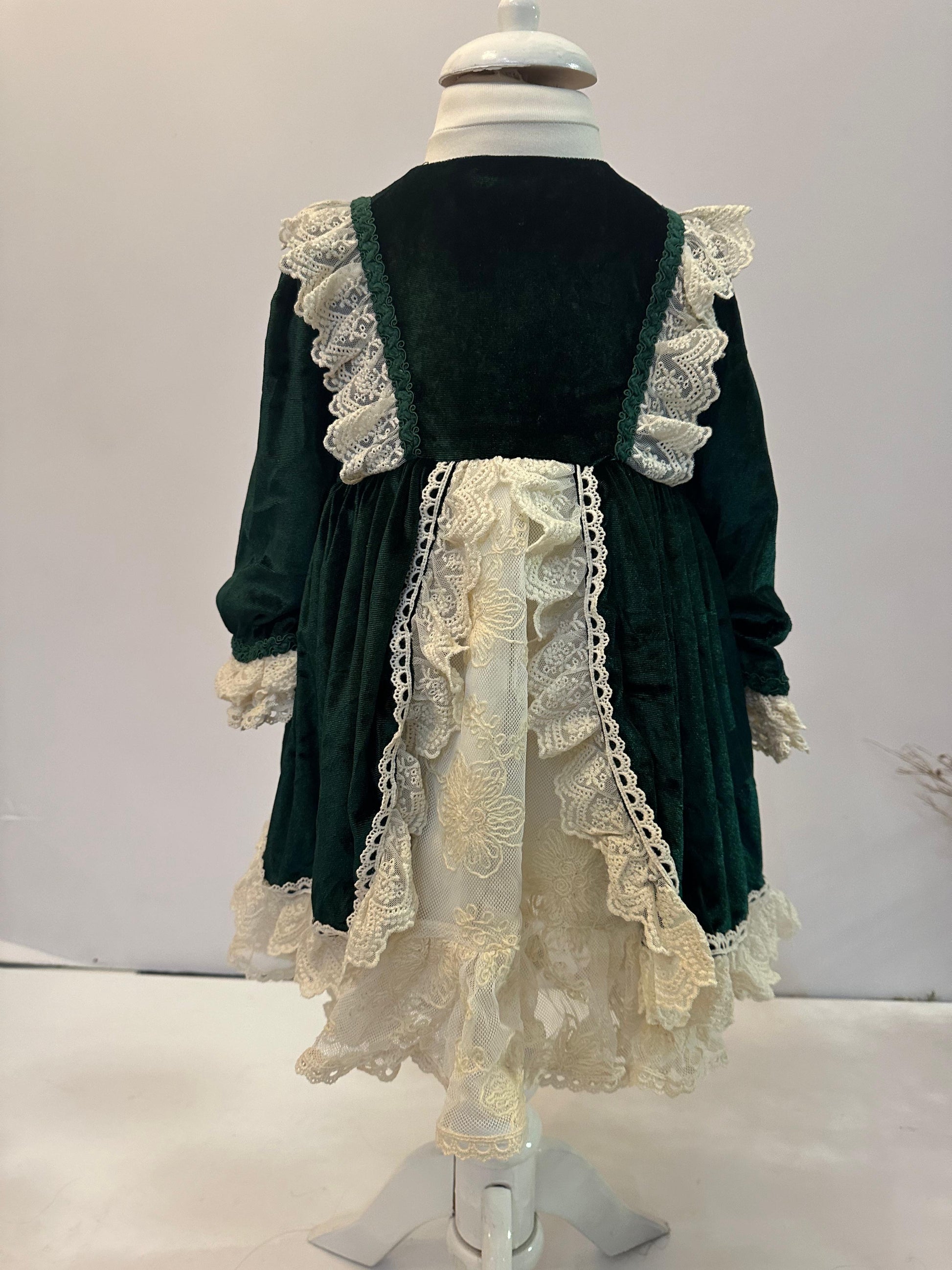 Fustan festiv, velvet jeshil me shtresa tantelle.