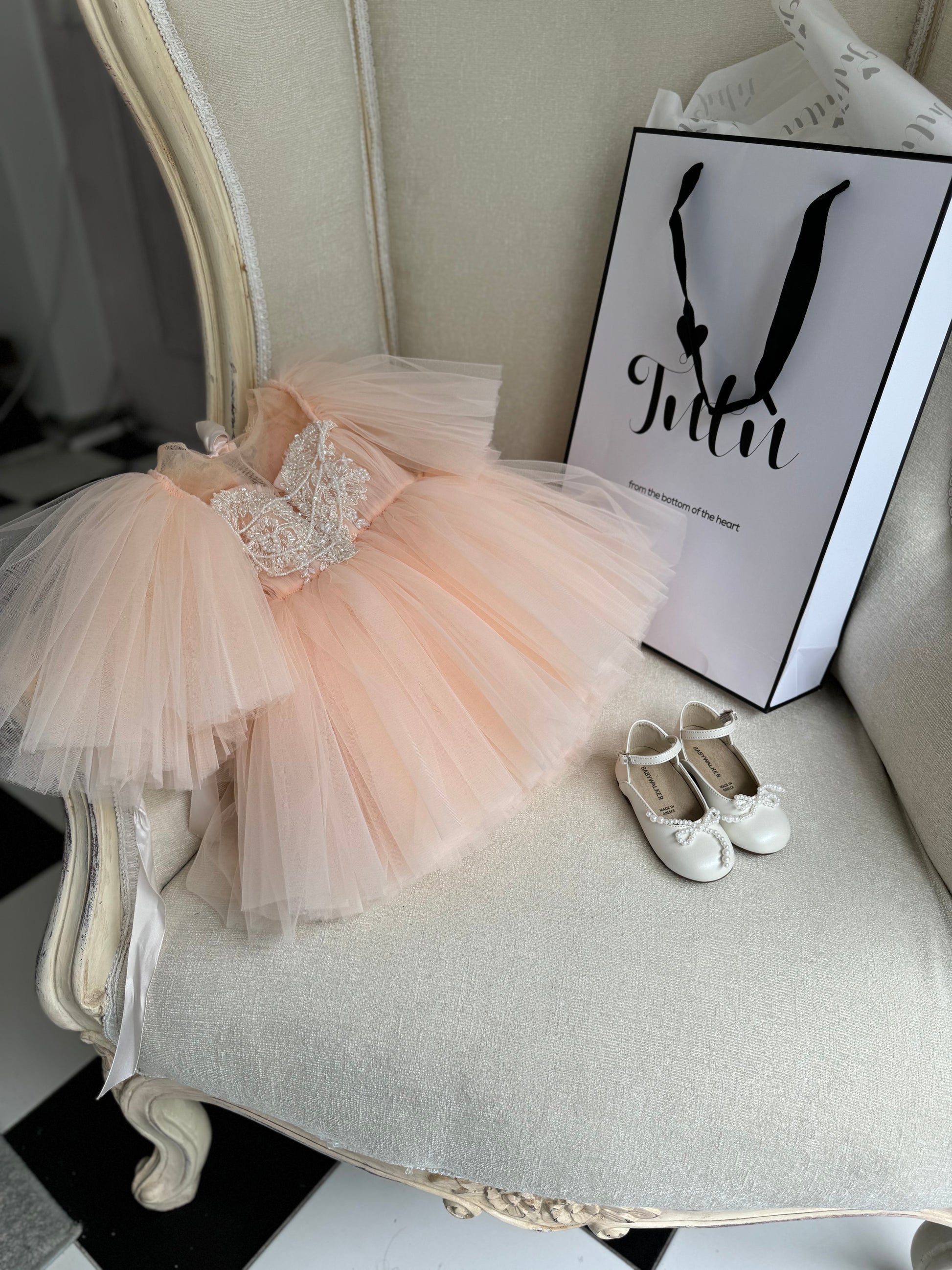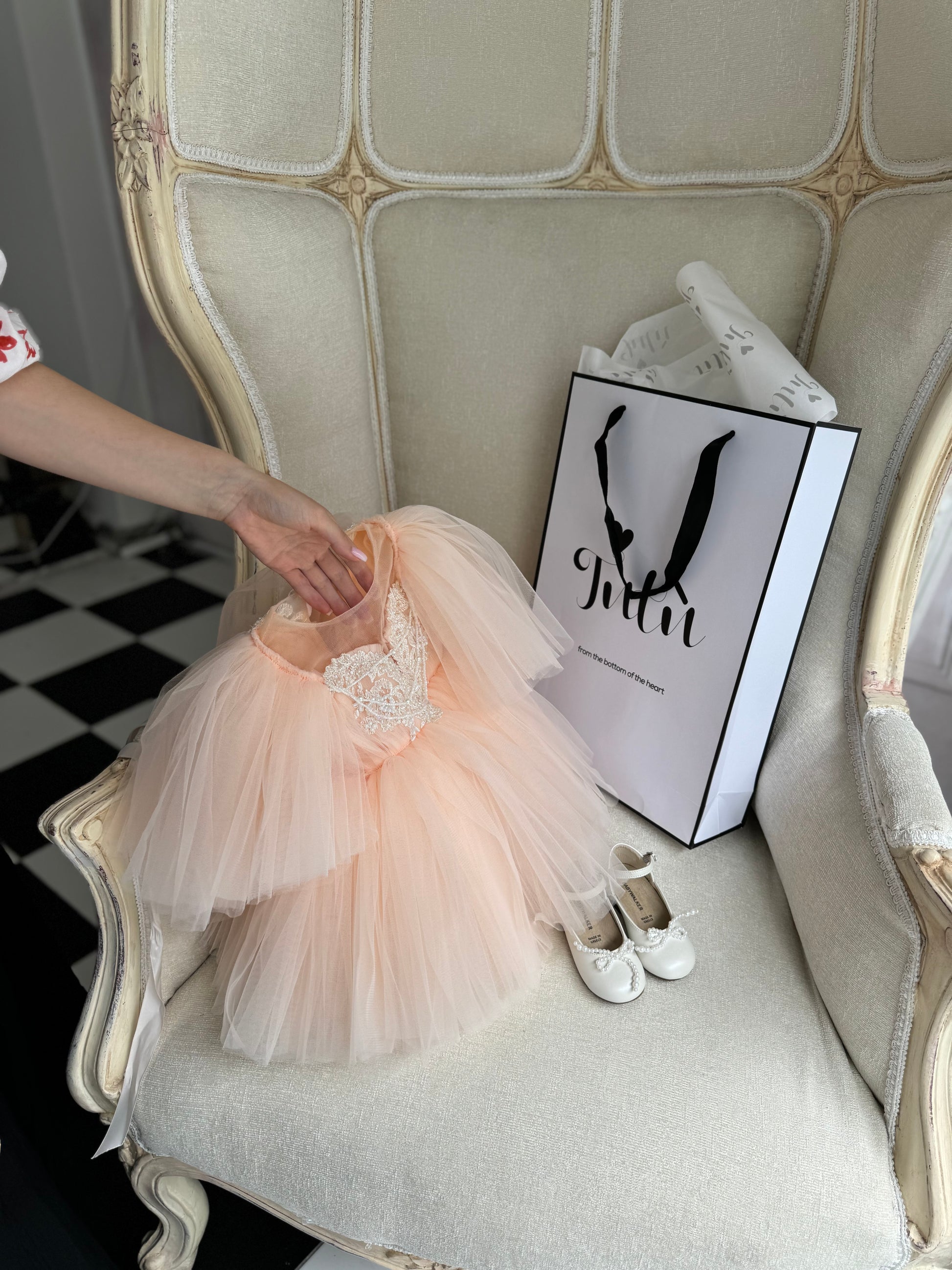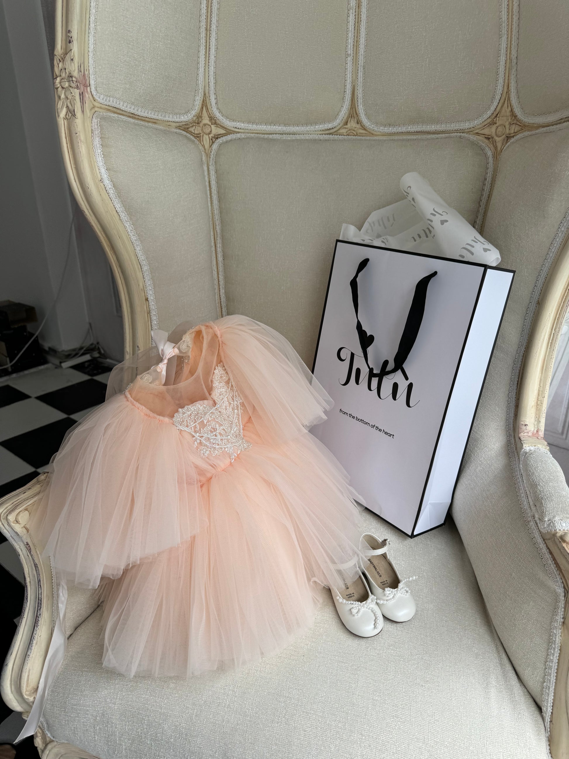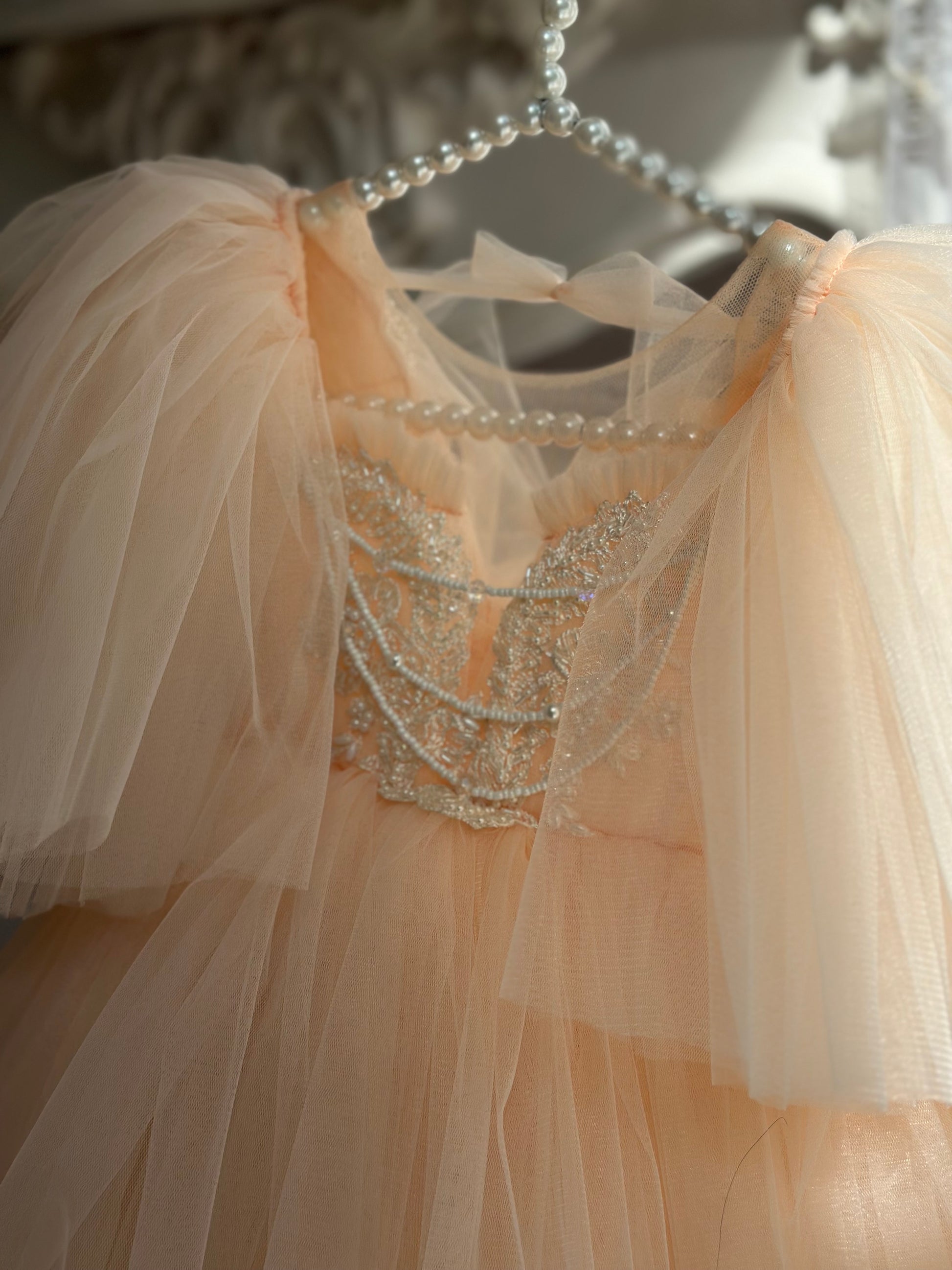 Fustan eventesh me tyl dhe ruaza te qendisura