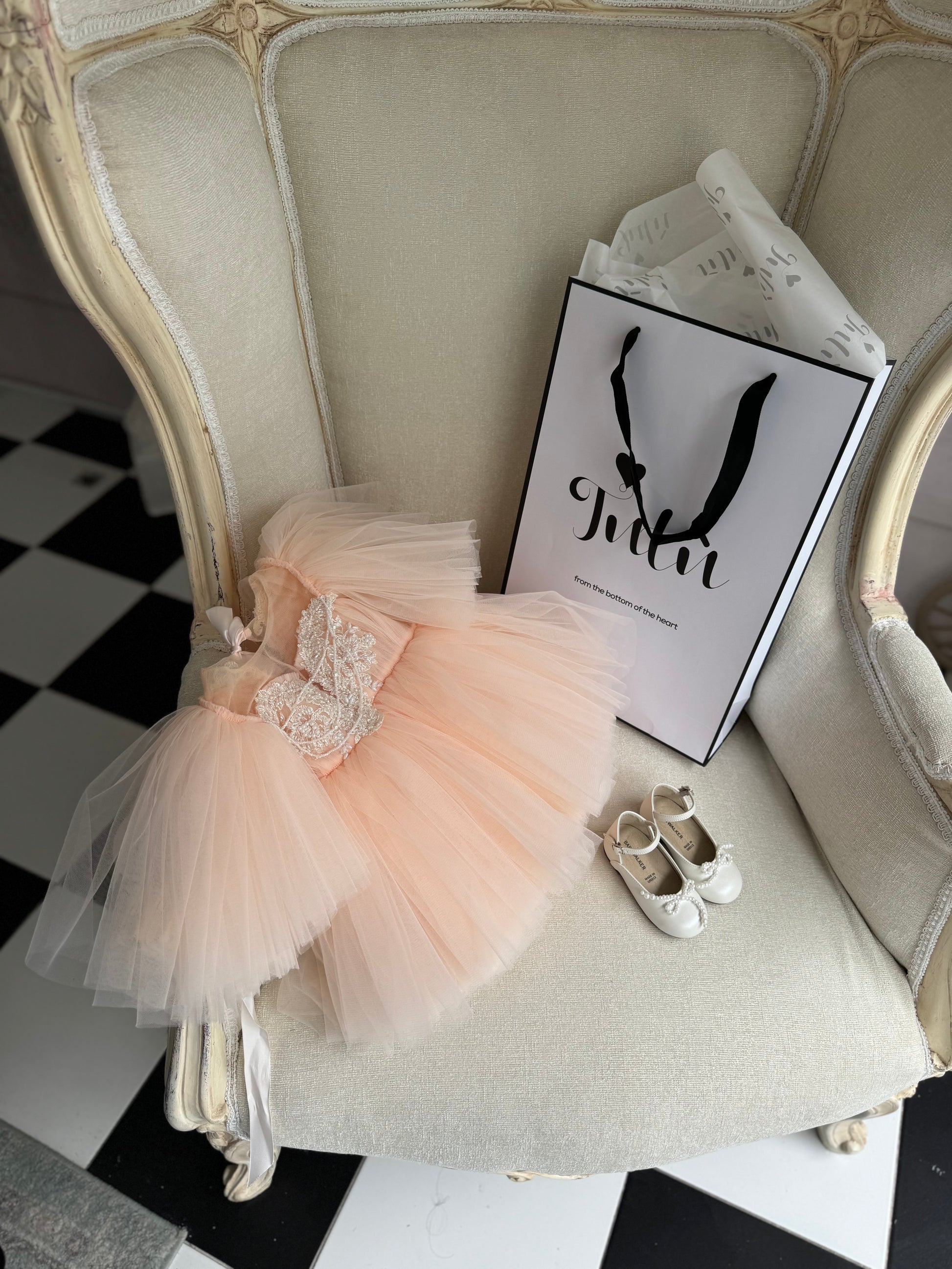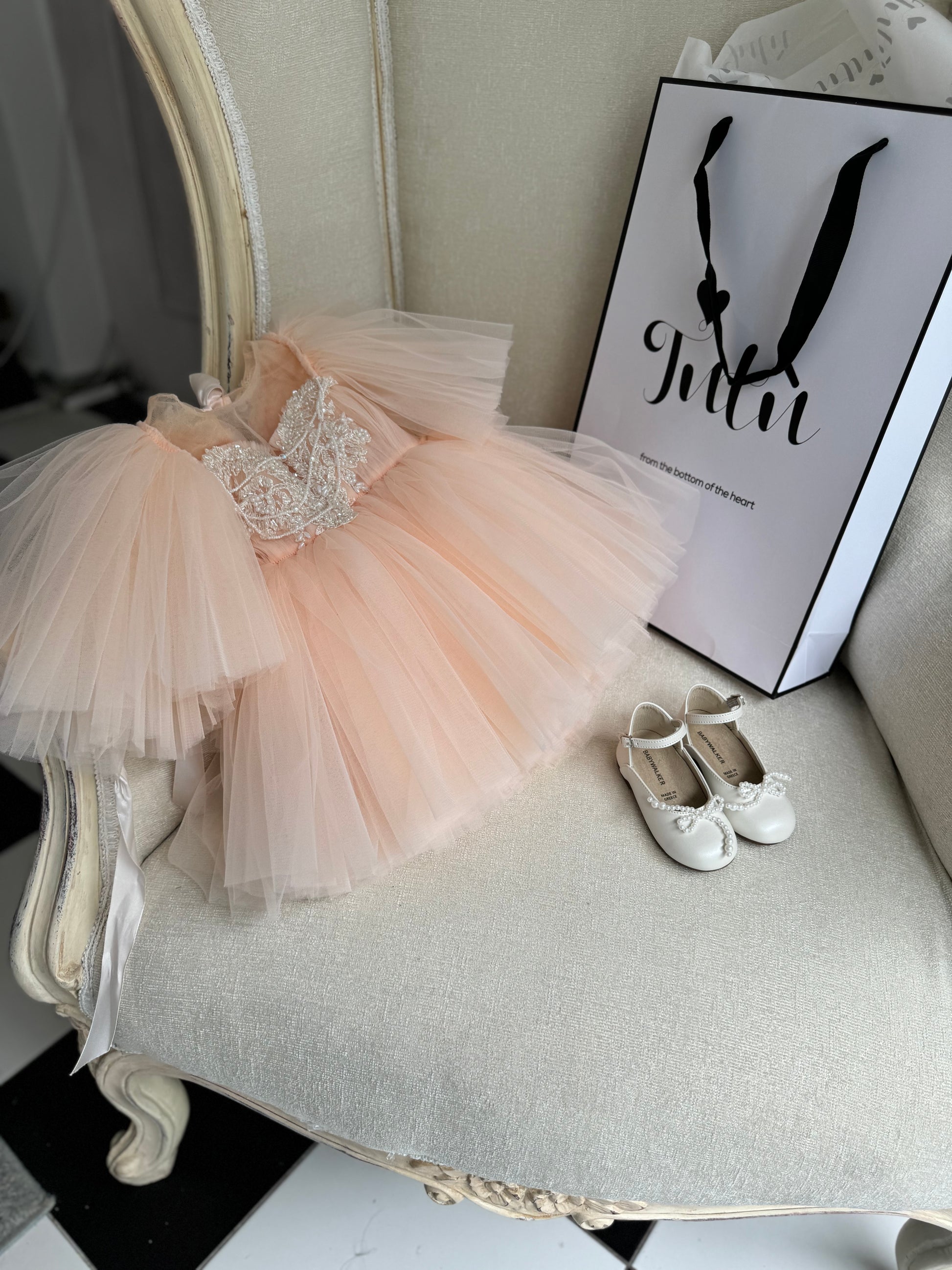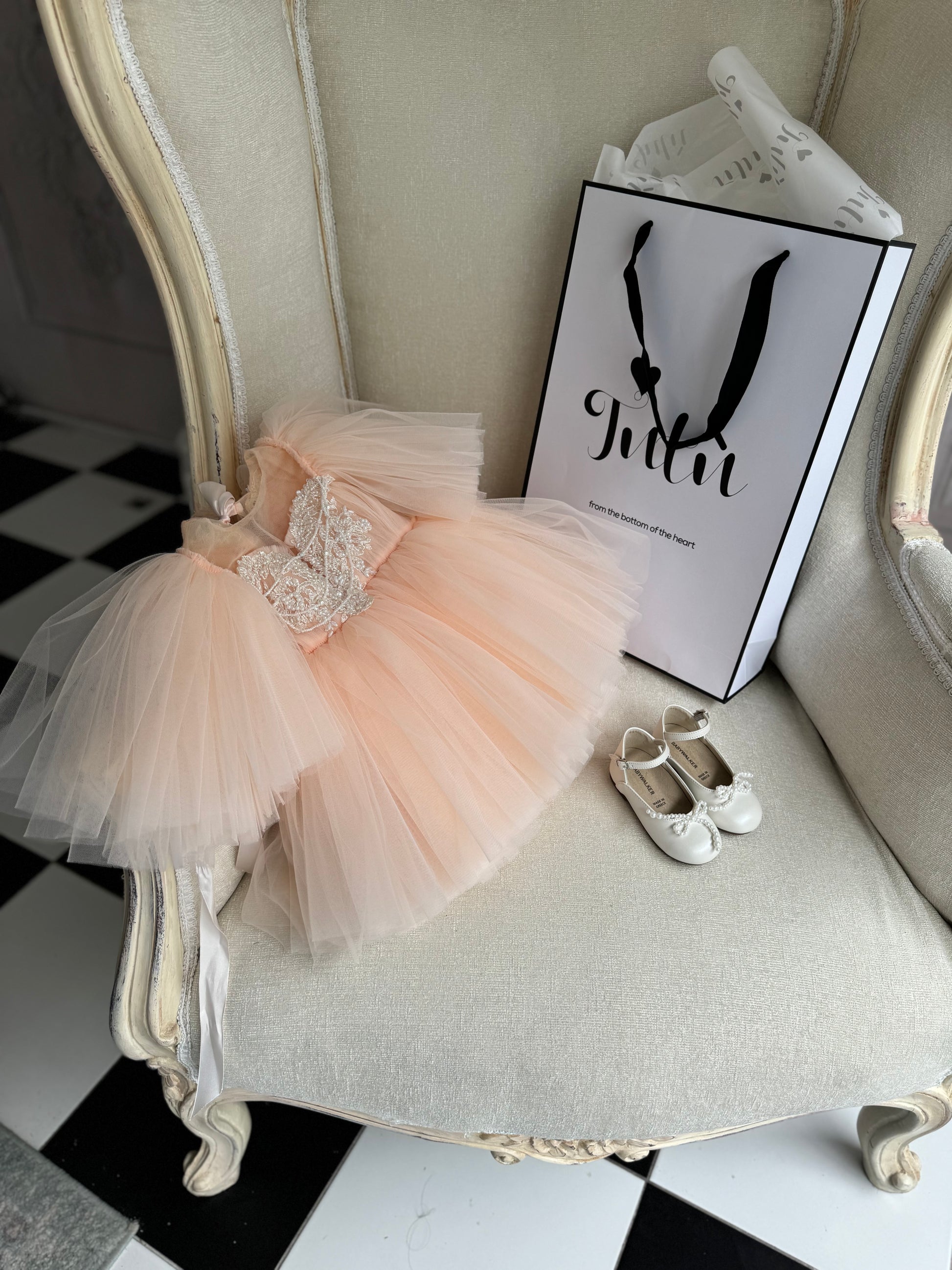 Fustan eventesh me tyl dhe ruaza te qendisura