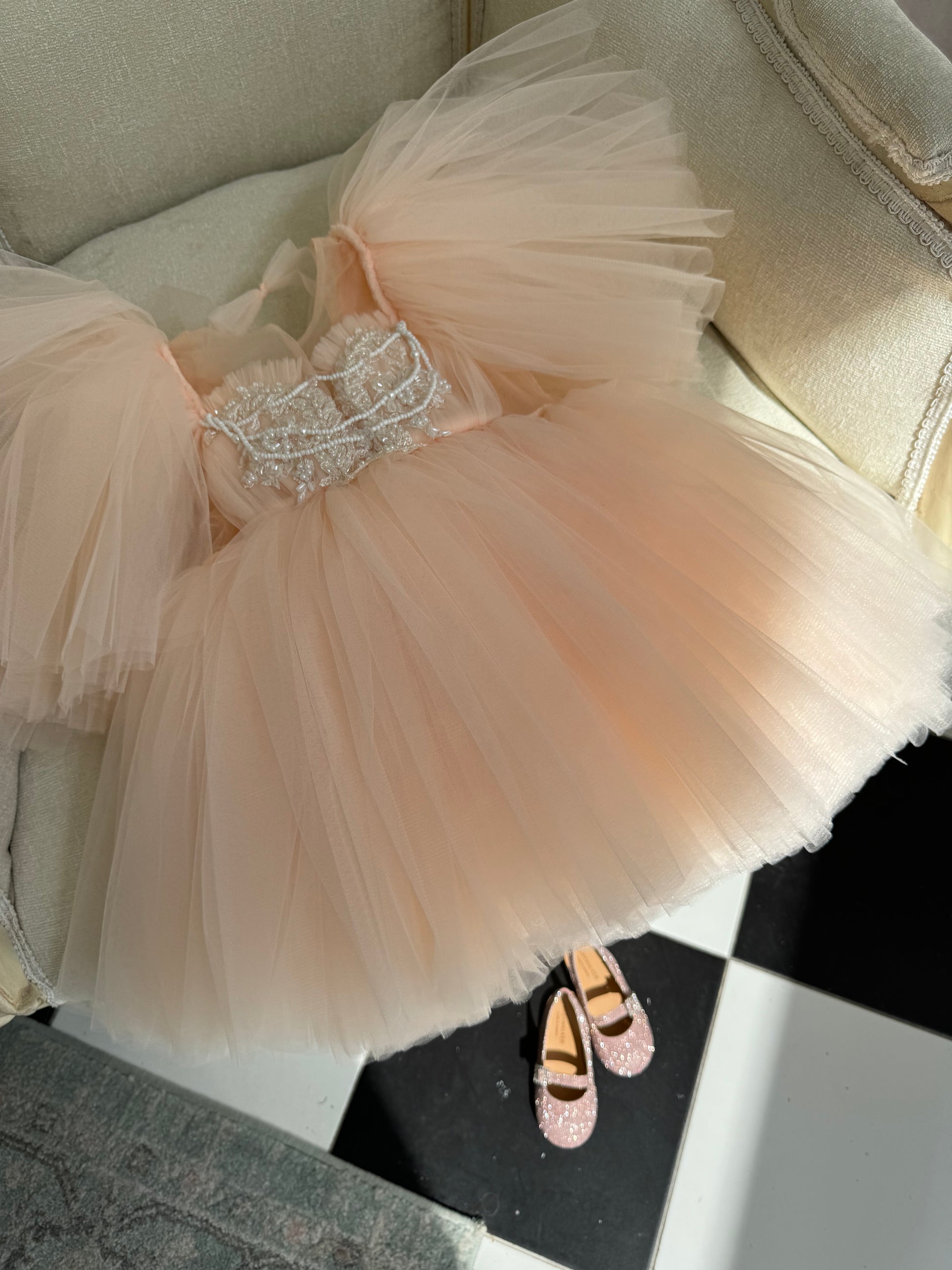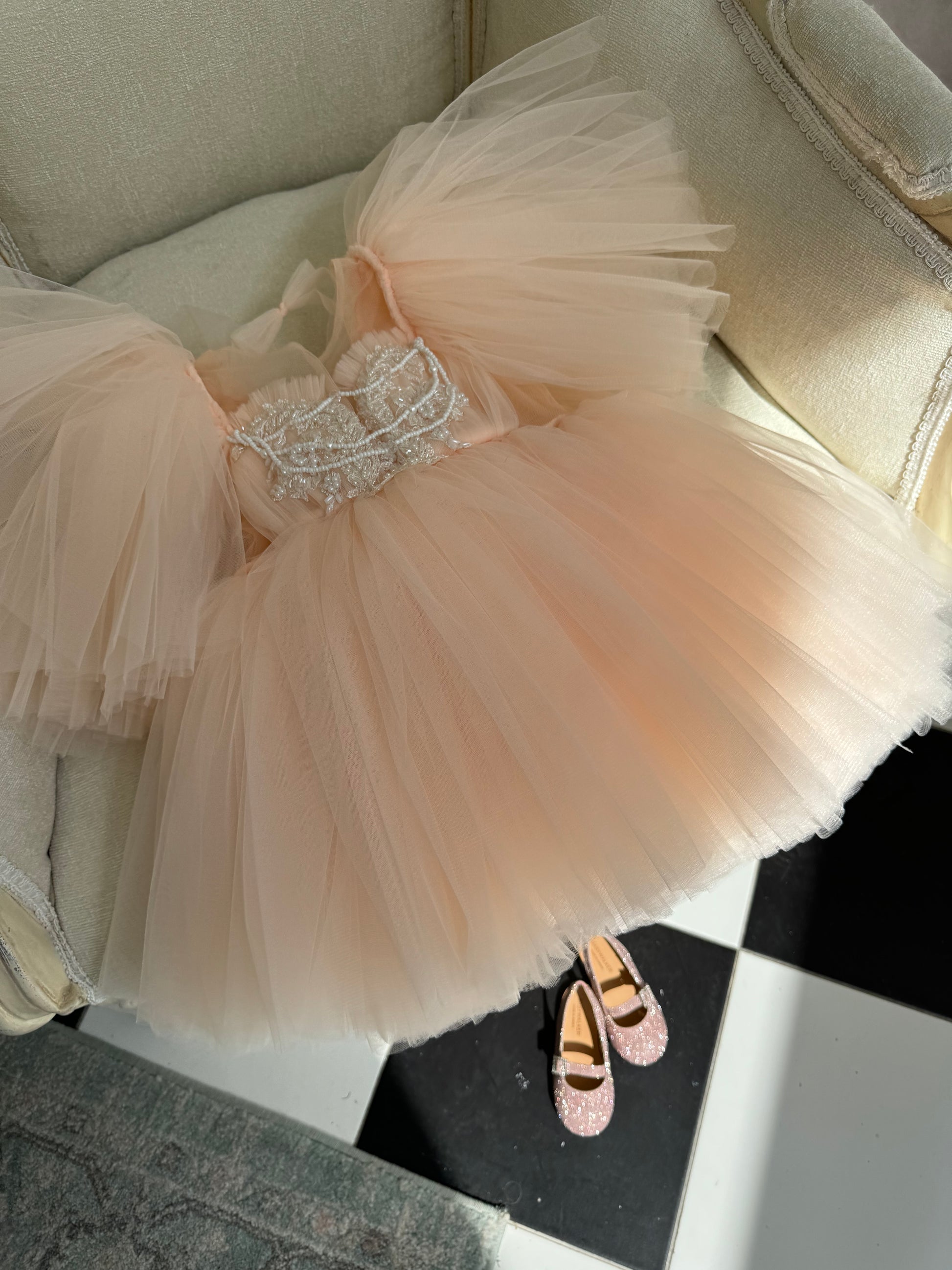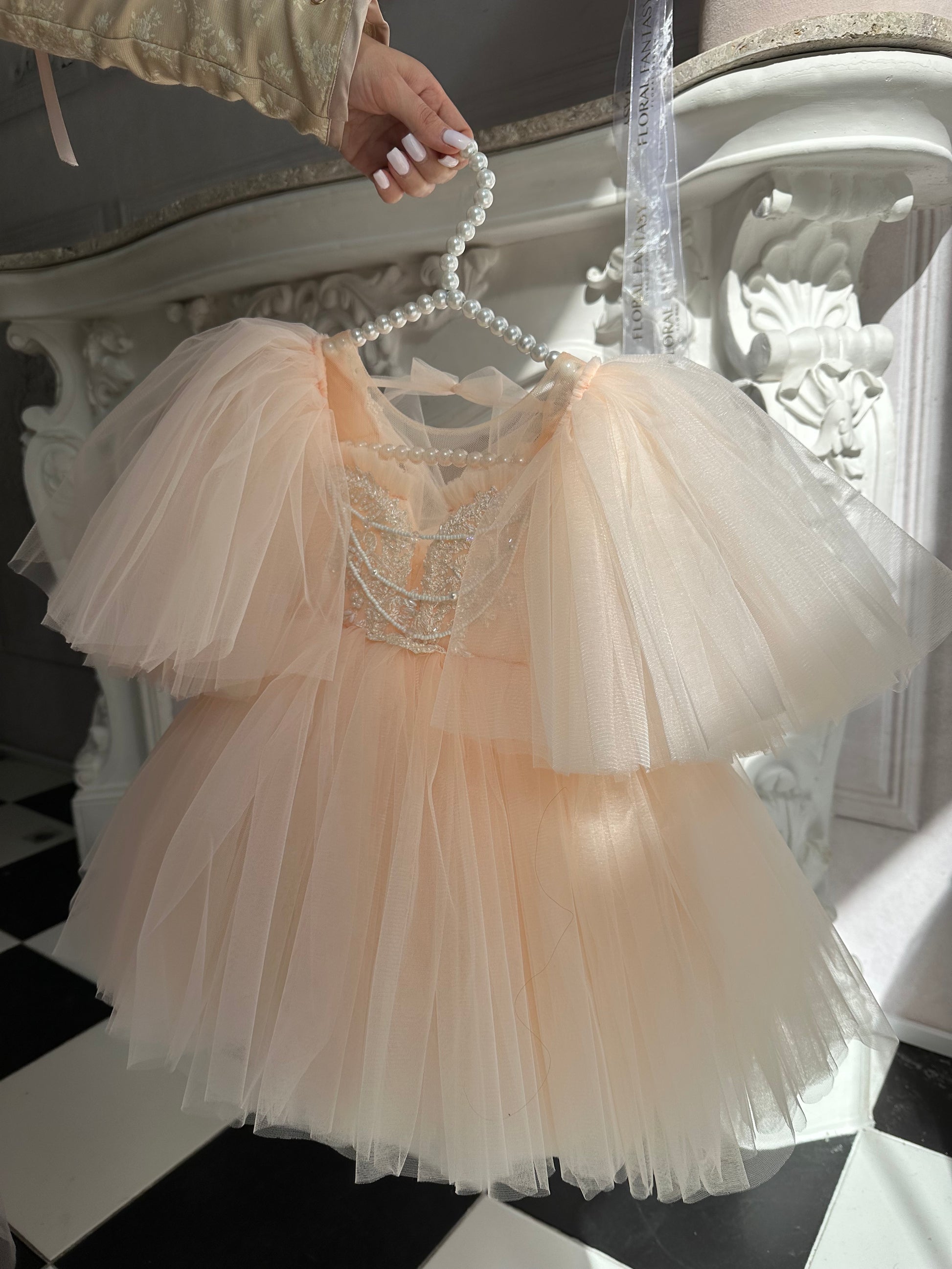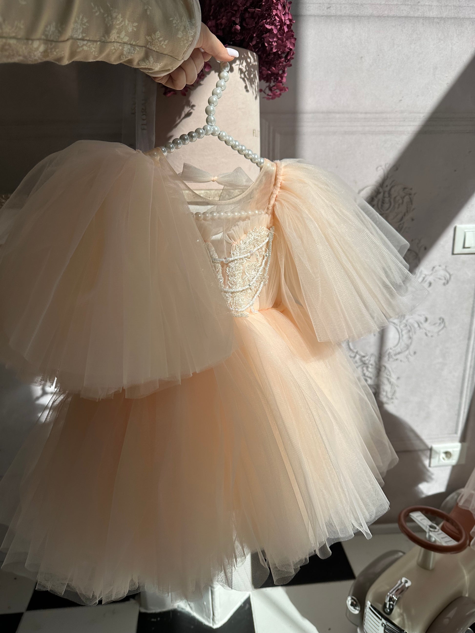 Fustan eventesh me tyl dhe ruaza te qendisura