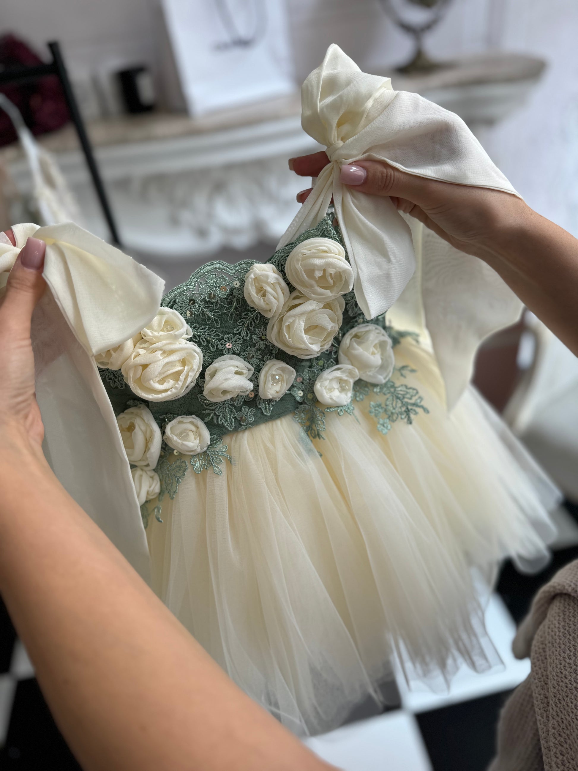 Fustan veror me tirante, me tyl dhe trendafila te aplikuara
