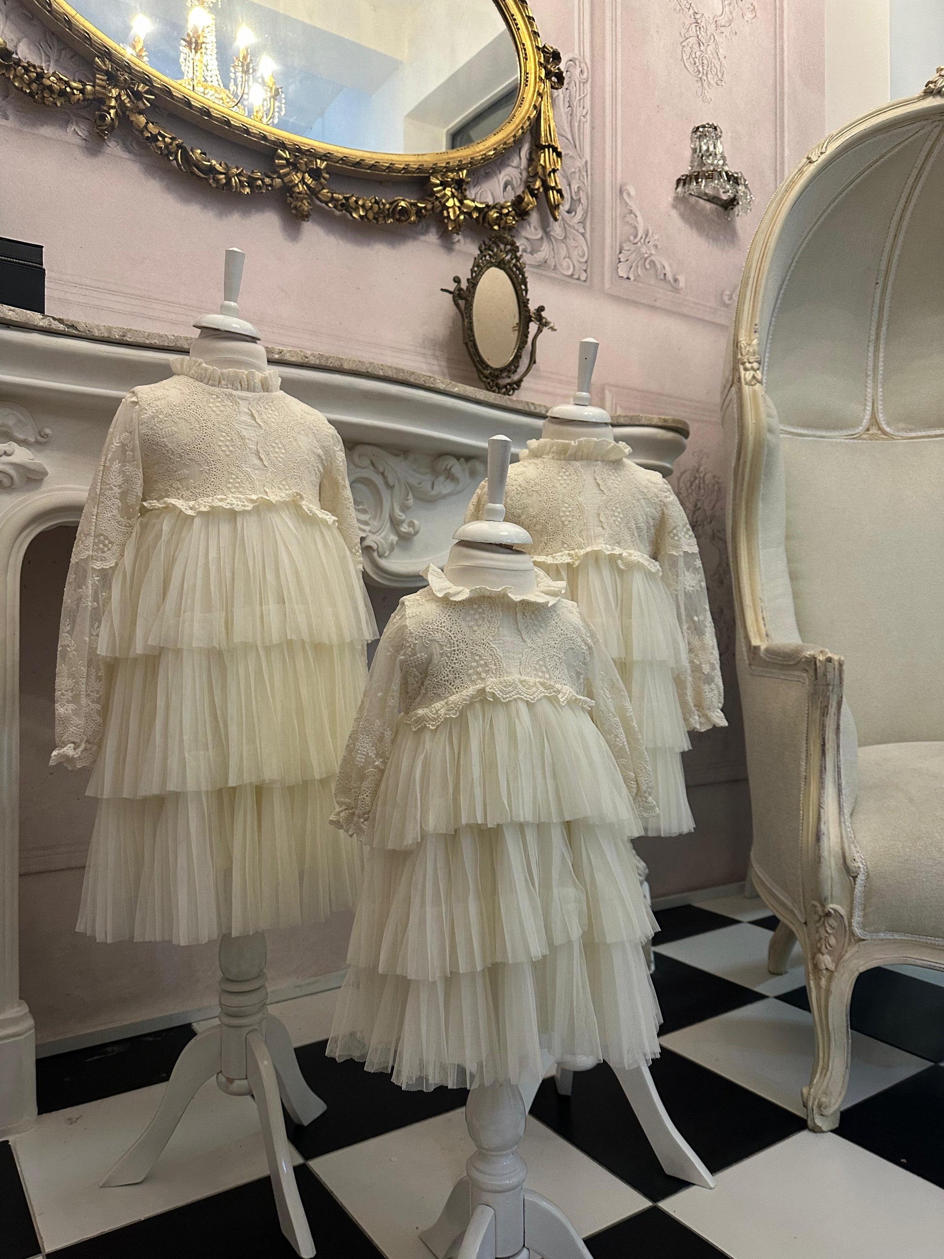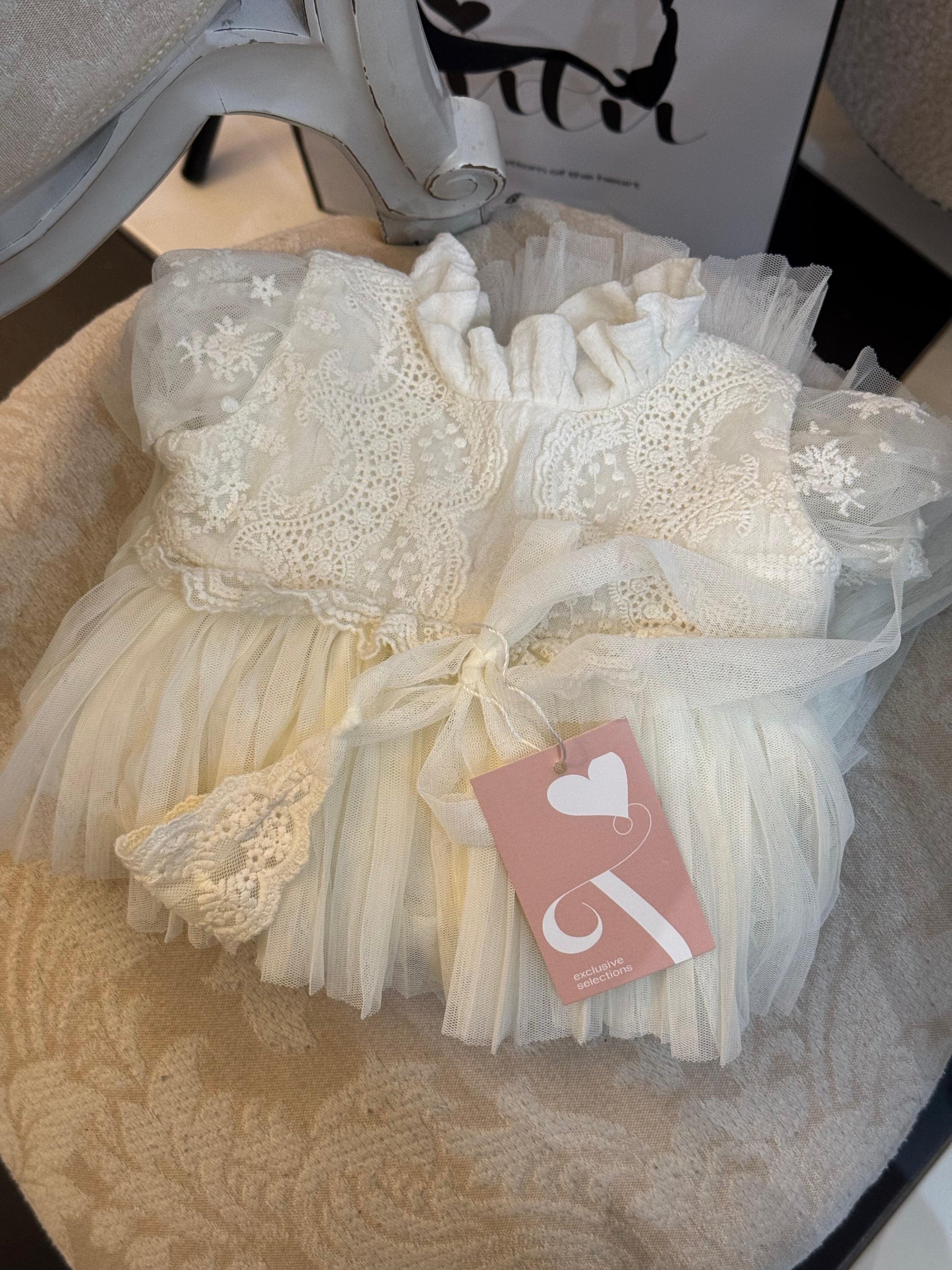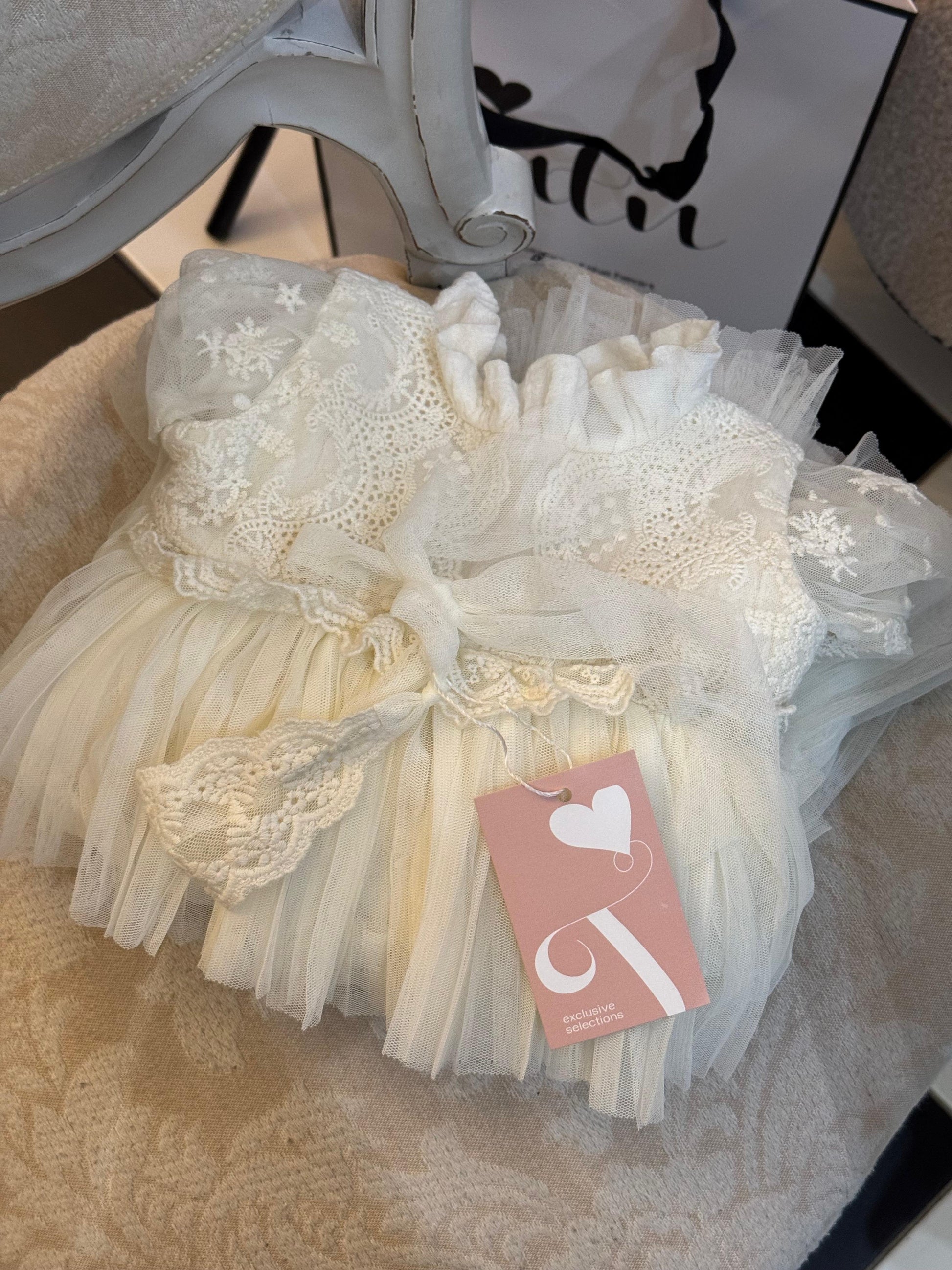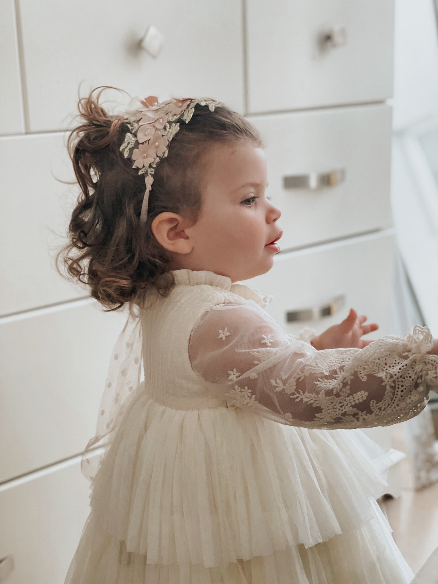 Fustan eventesh me menge te gjata, lino me tantelle dhe tyl francez me pala!