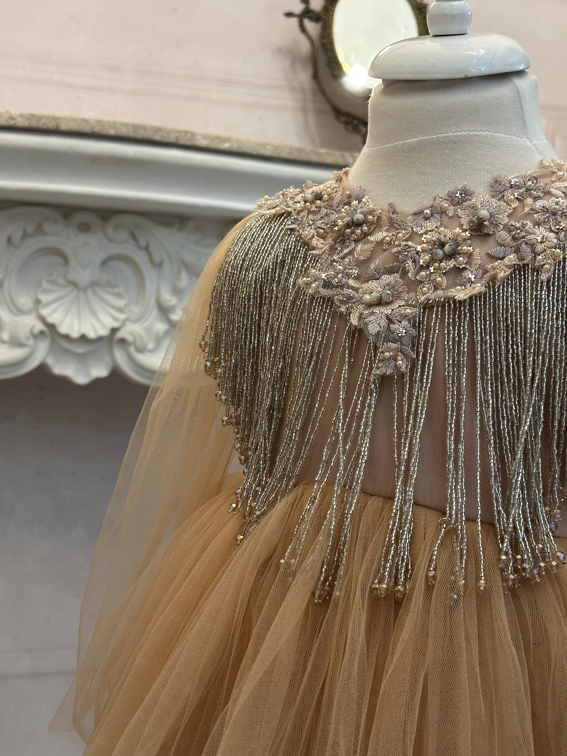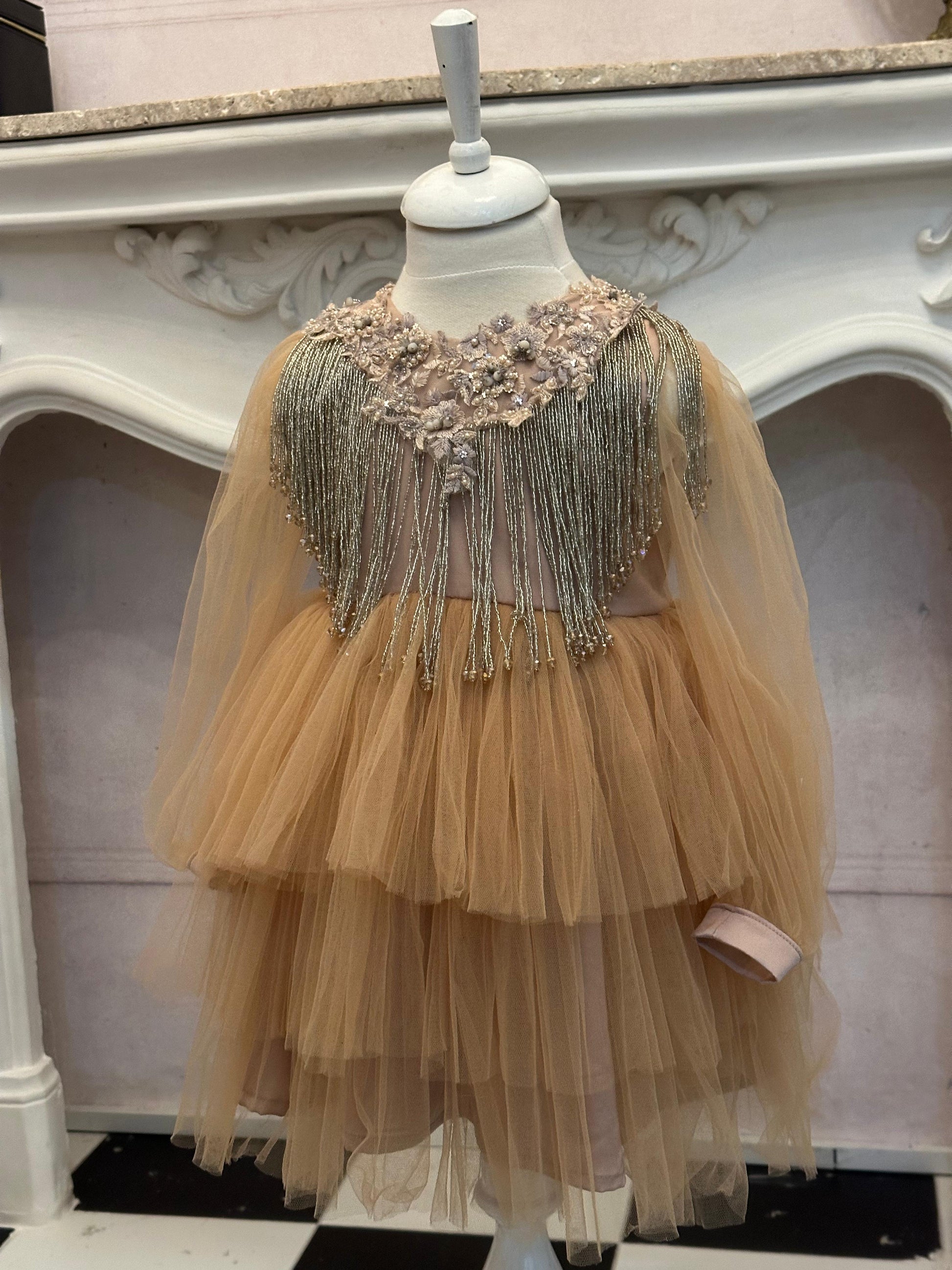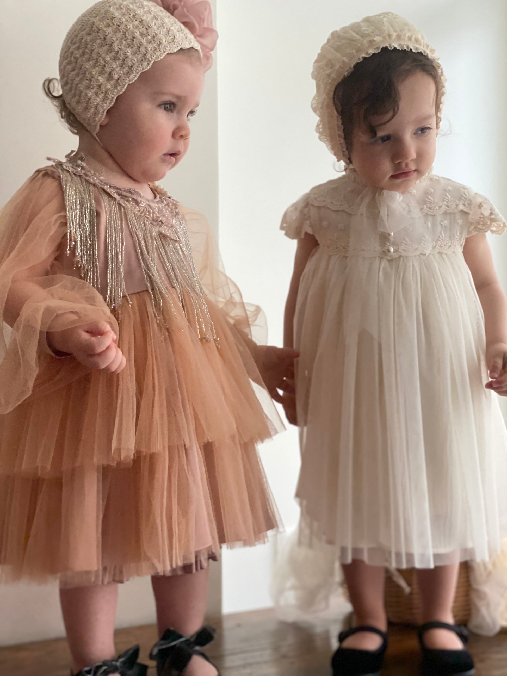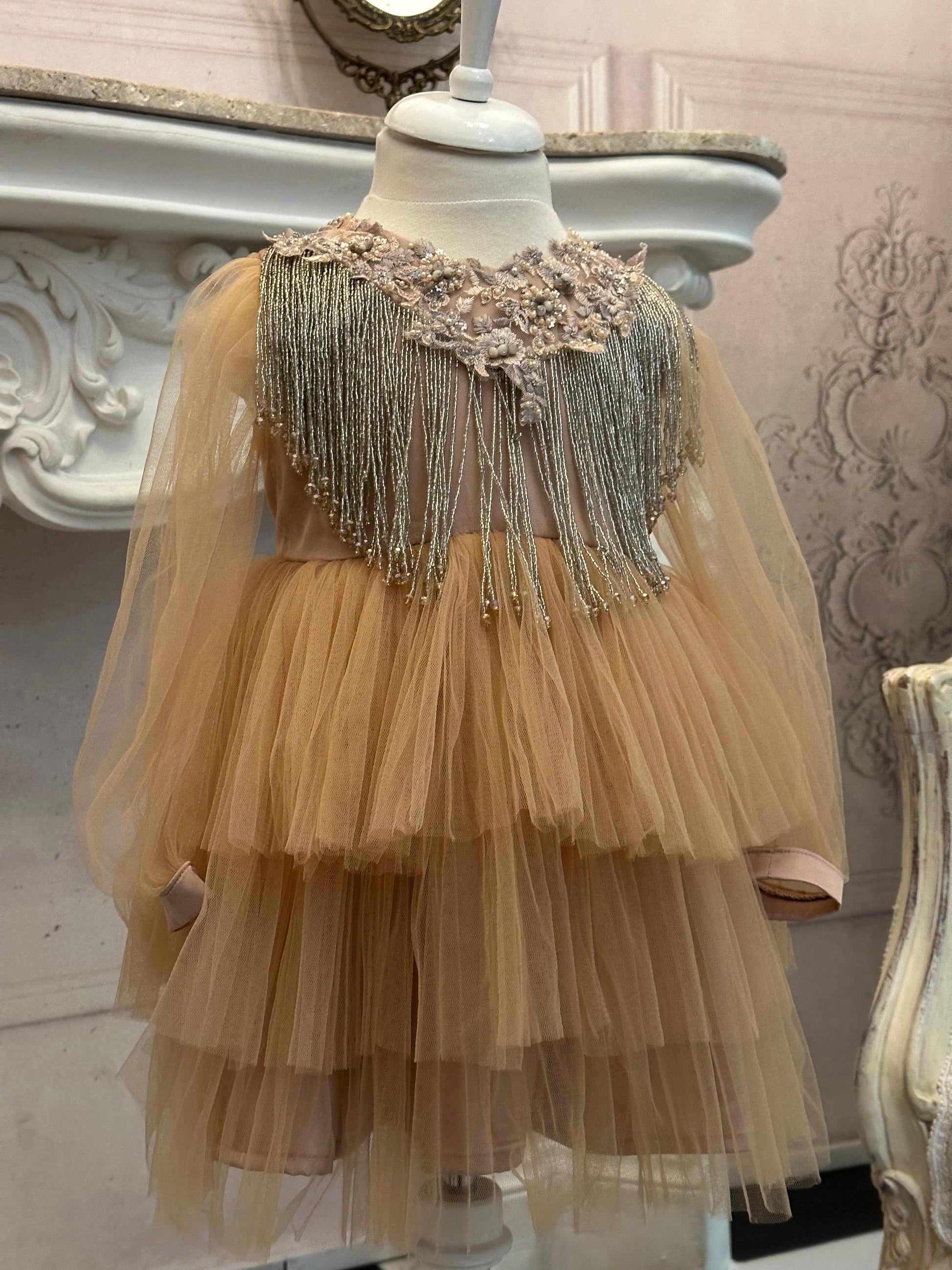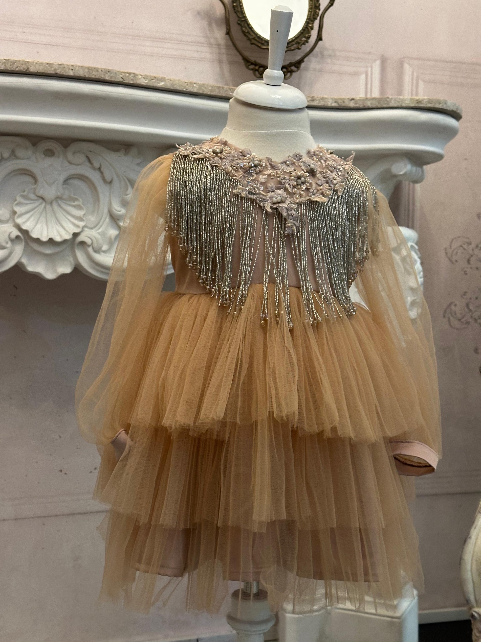 Garbi dress, fustan eventesh dhe pagezimi.Me menge te gjata transparente dhe detaje ruazash e kristalesh.