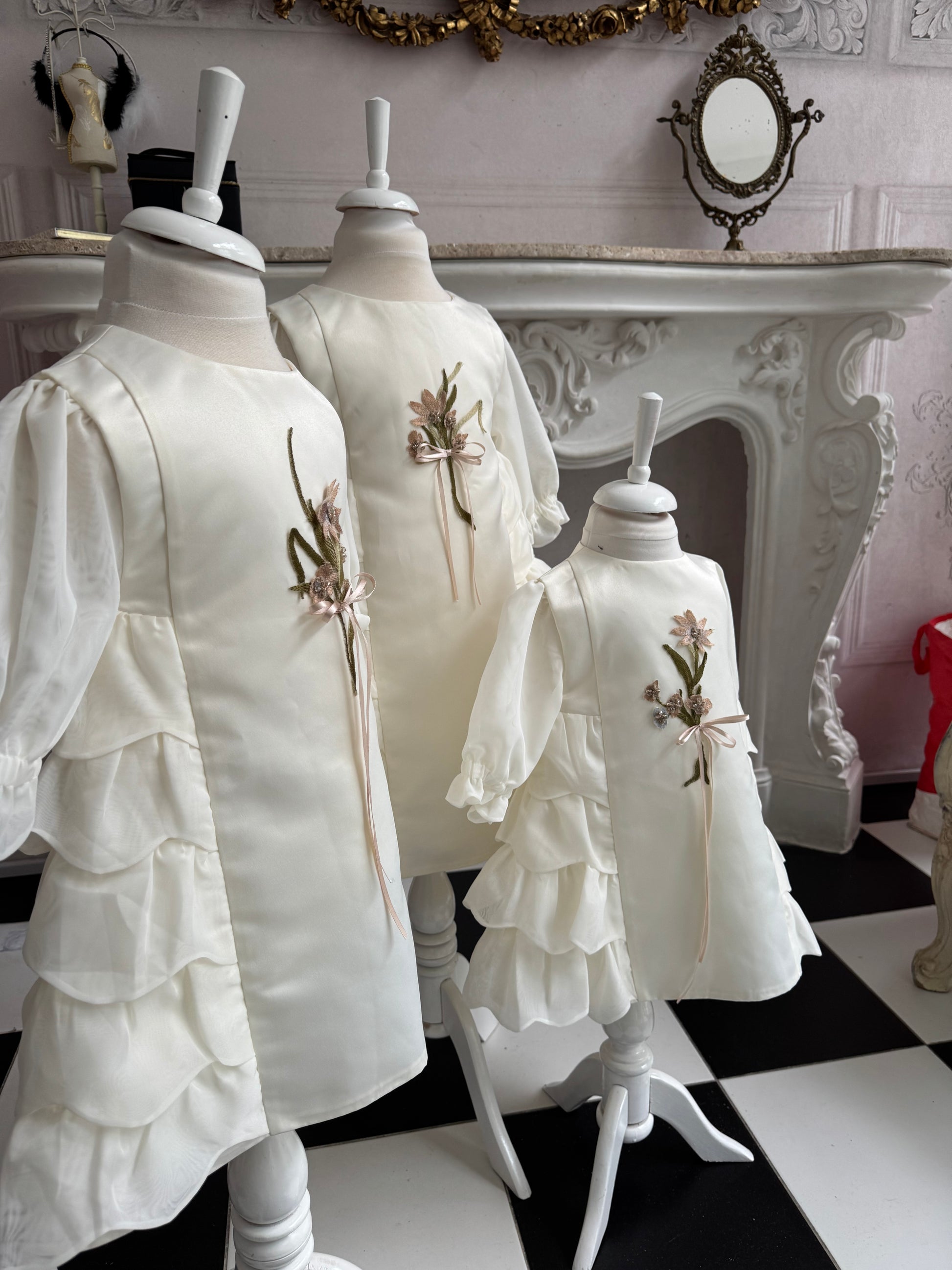 Fustan eventesh dhe pagezimesh! Punuar me mendafsh dhe organza e lehte tek menget!