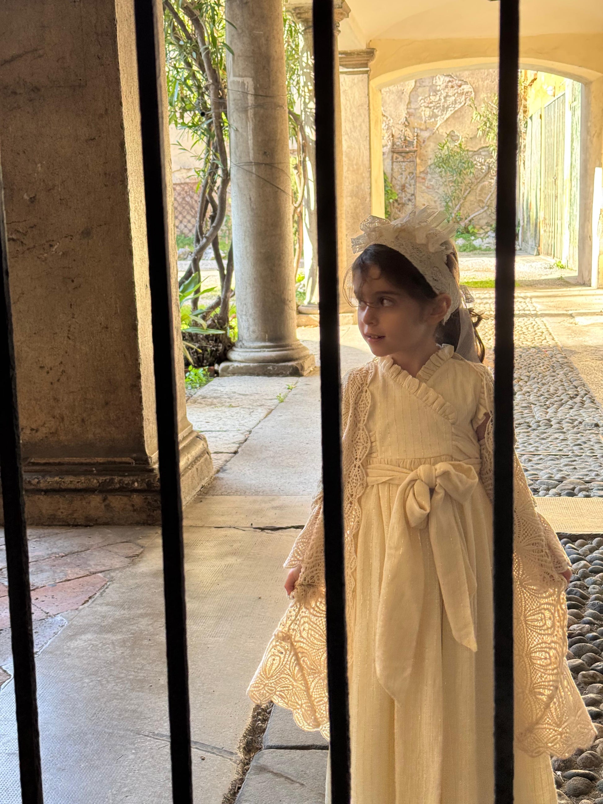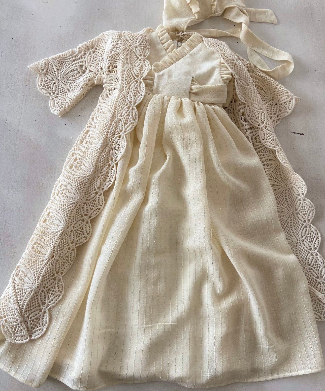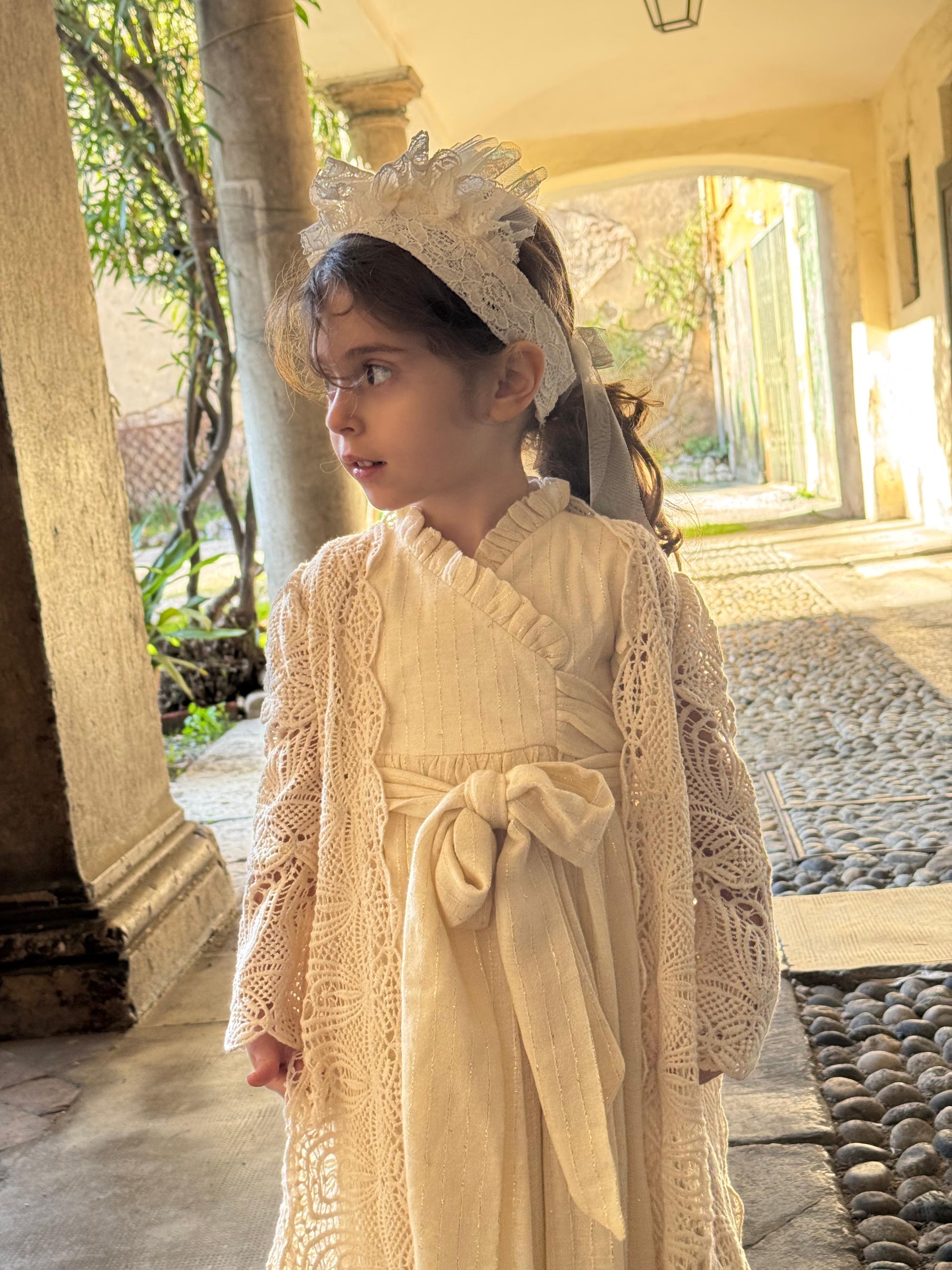 Fustan me extra gjatesi i shoqeruar me pelerine, per evente dhe pagezime.