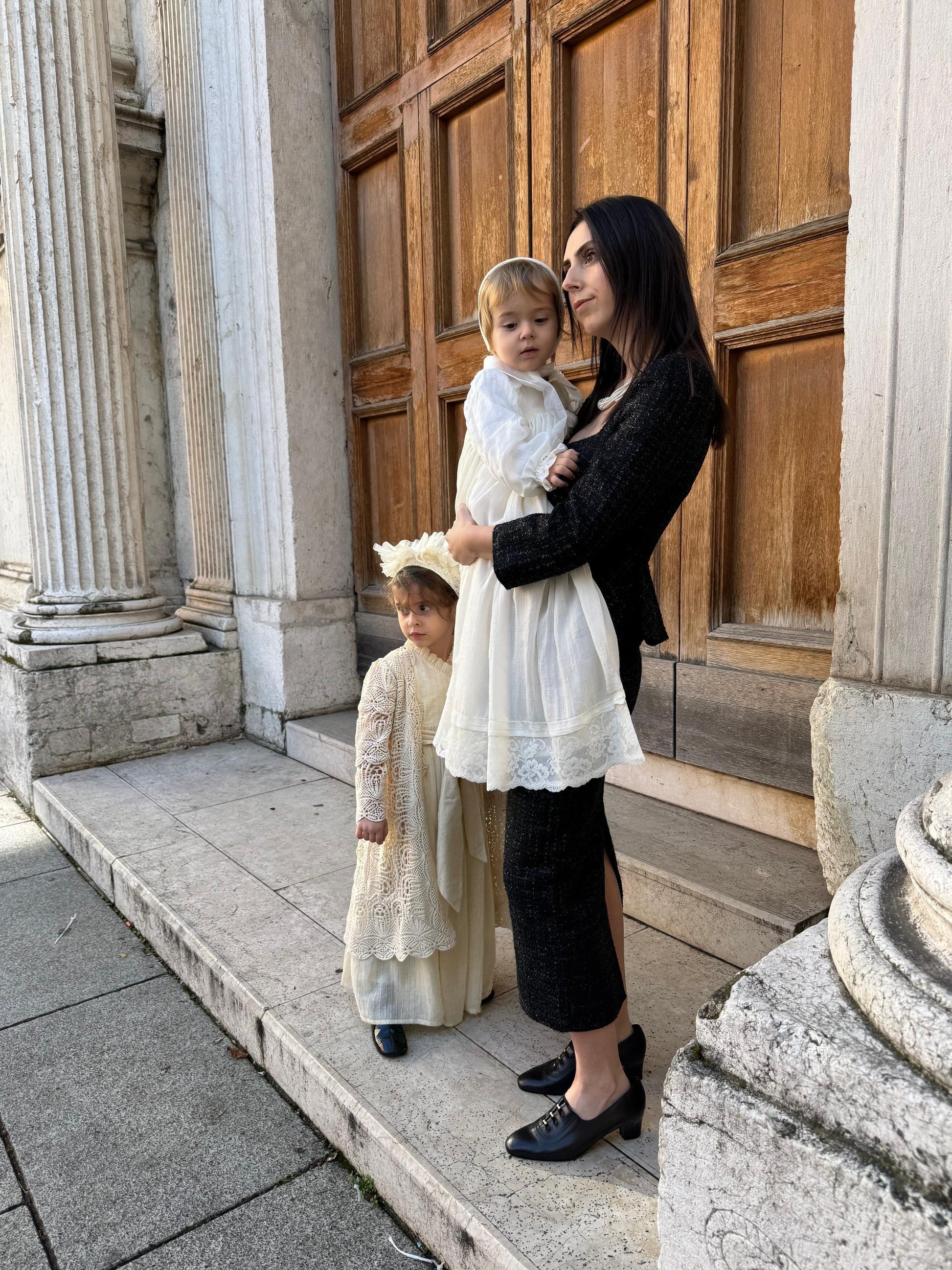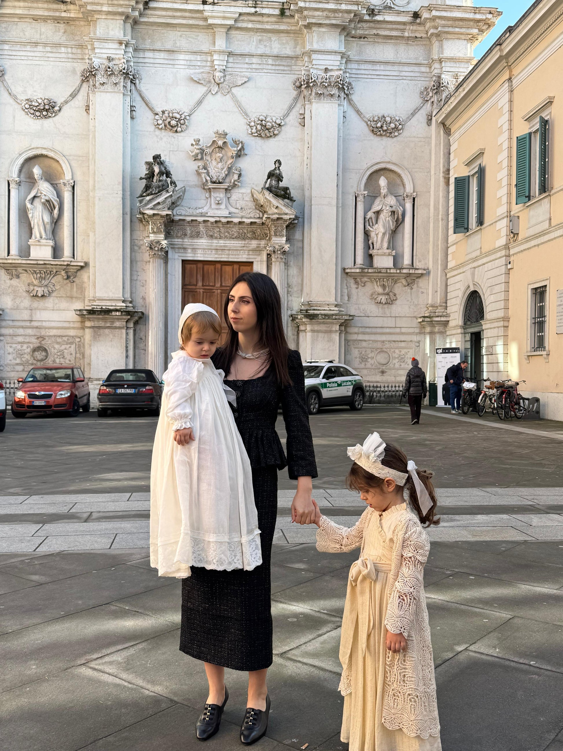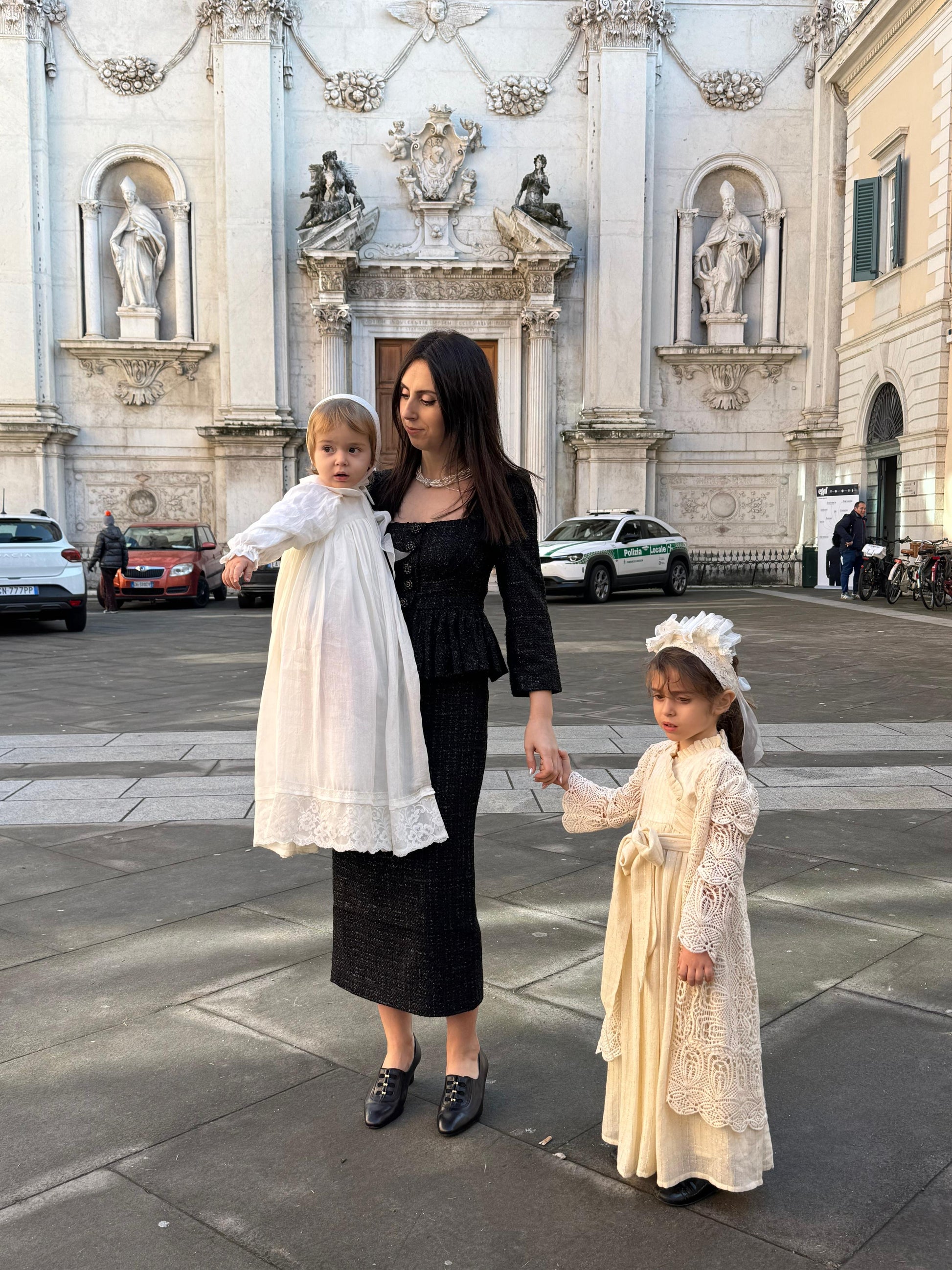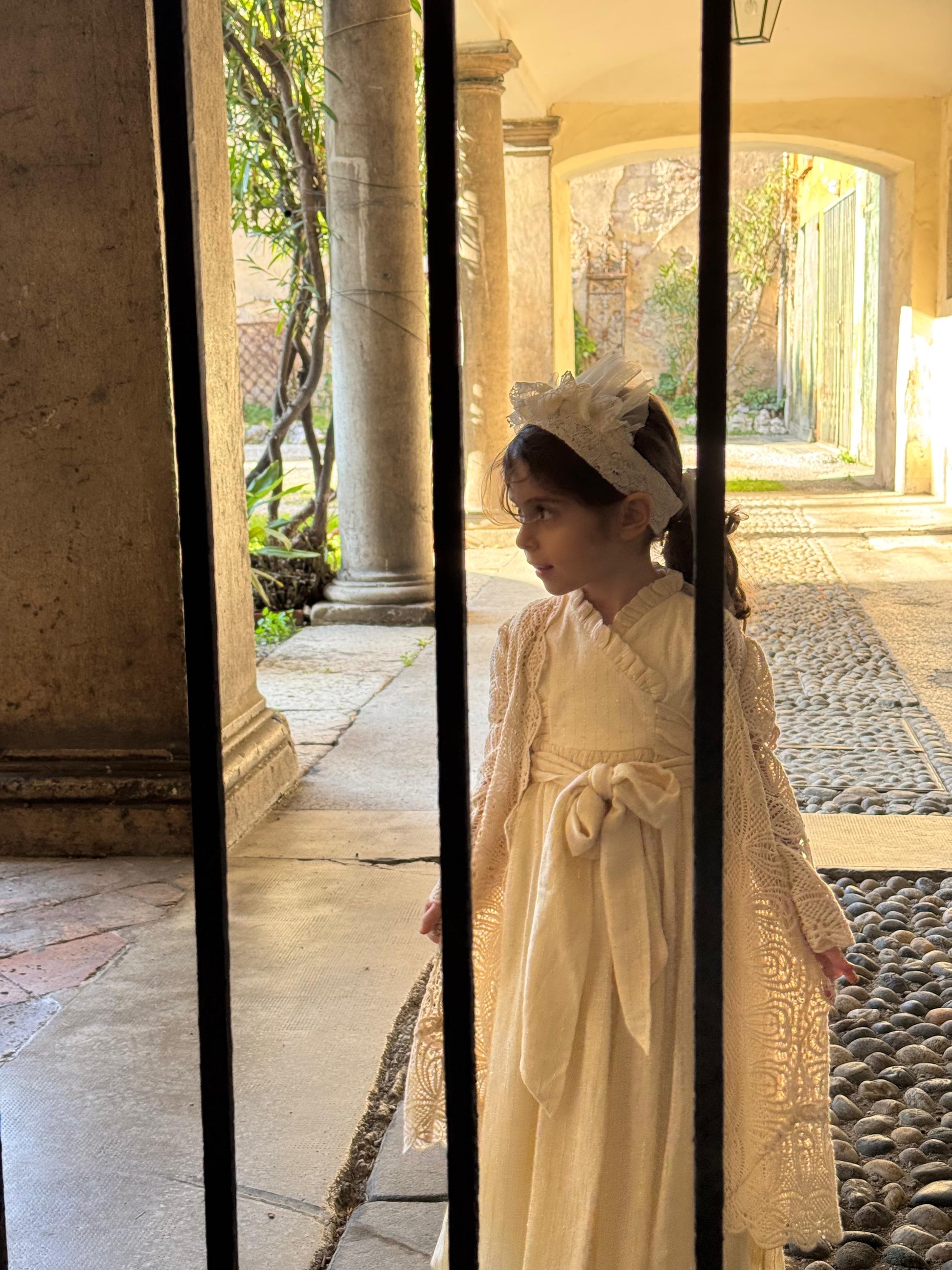 Fustan me extra gjatesi i shoqeruar me pelerine, per evente dhe pagezime.