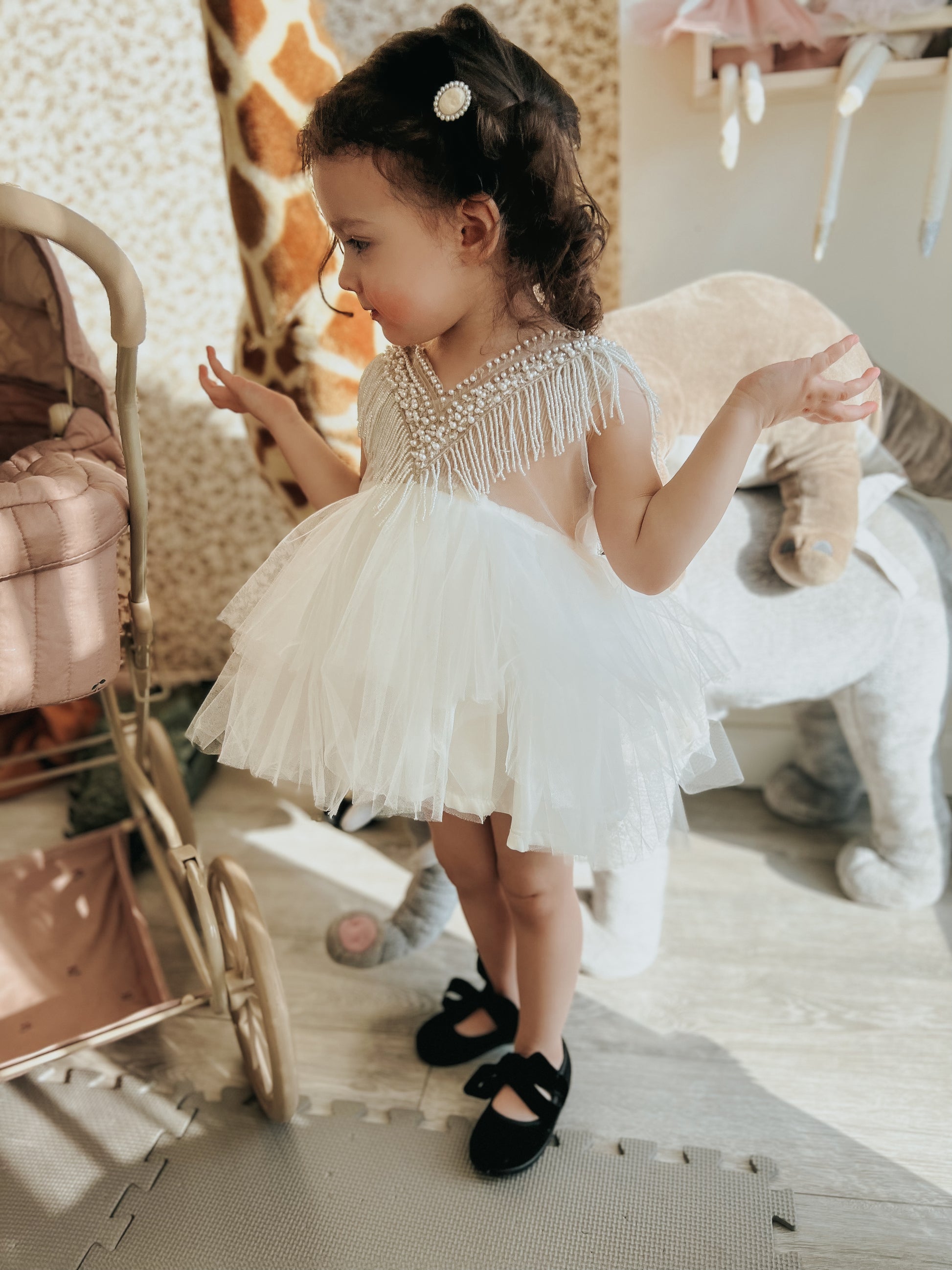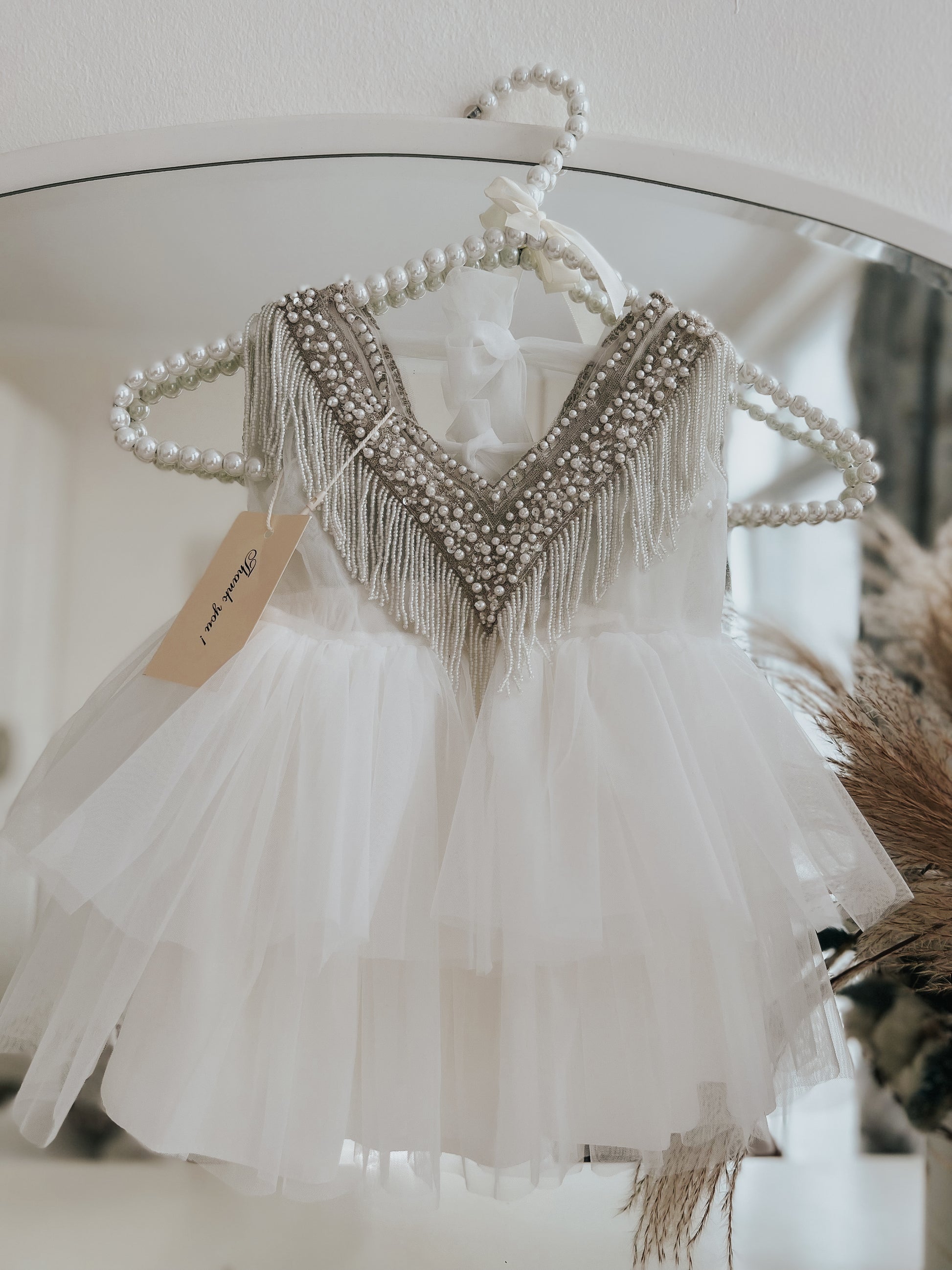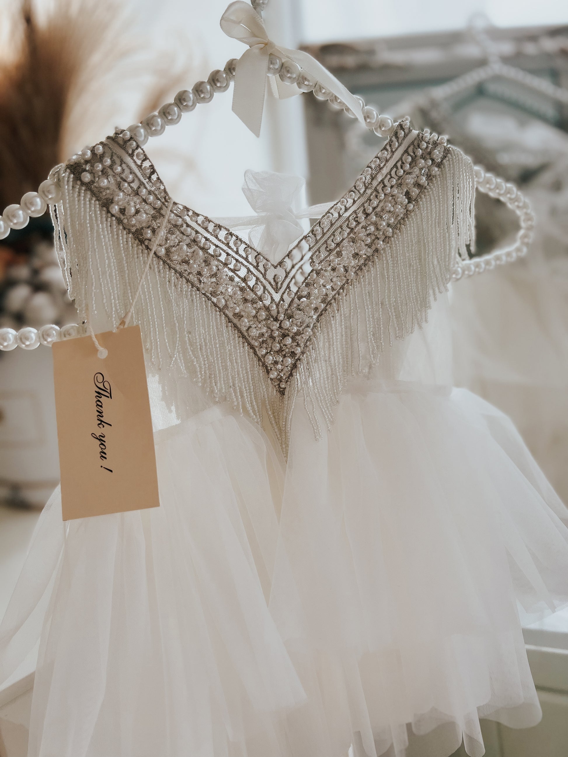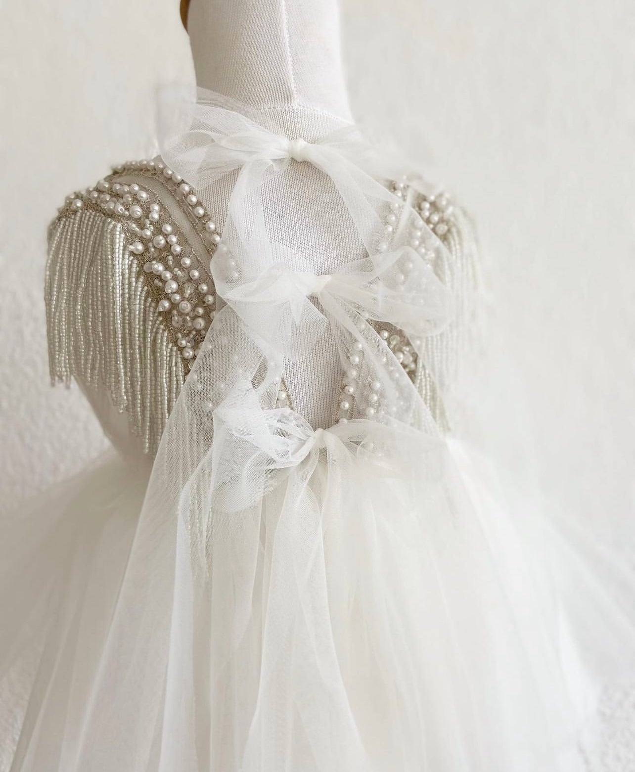 Garbi dress.Fustan veror eventesh, me tyl te bute francez dhe detaje te qendisura gurresh dhe kristale!