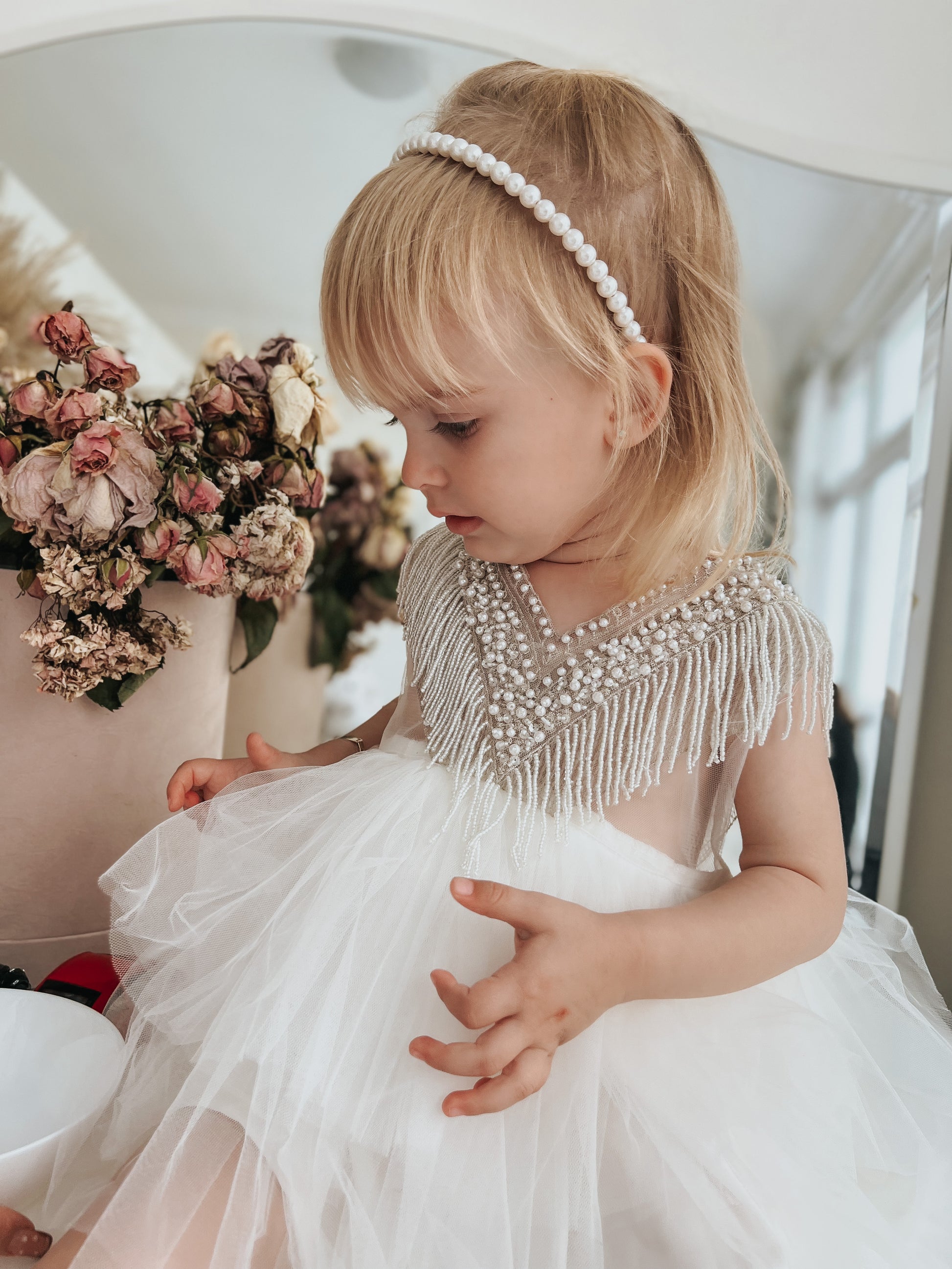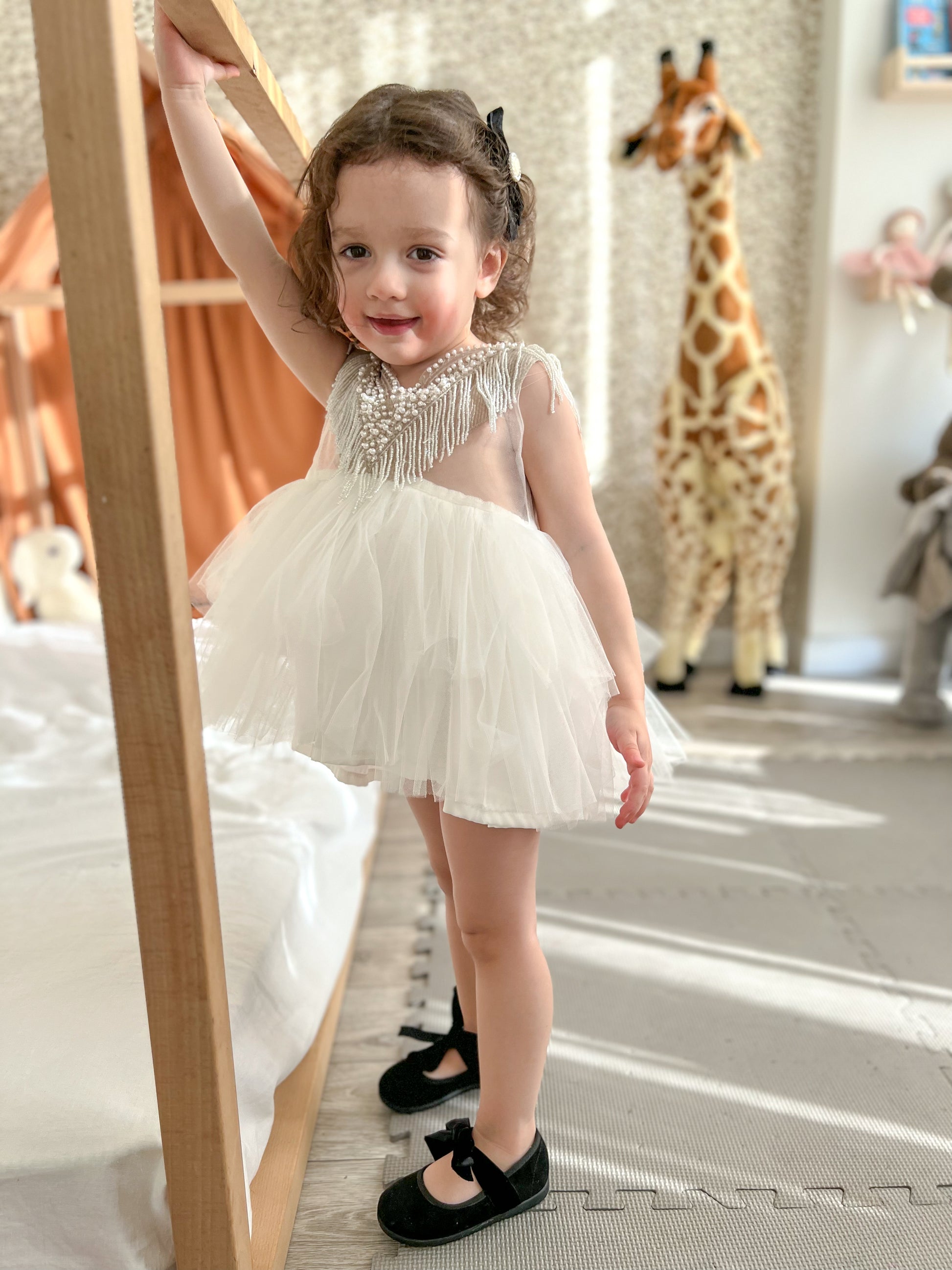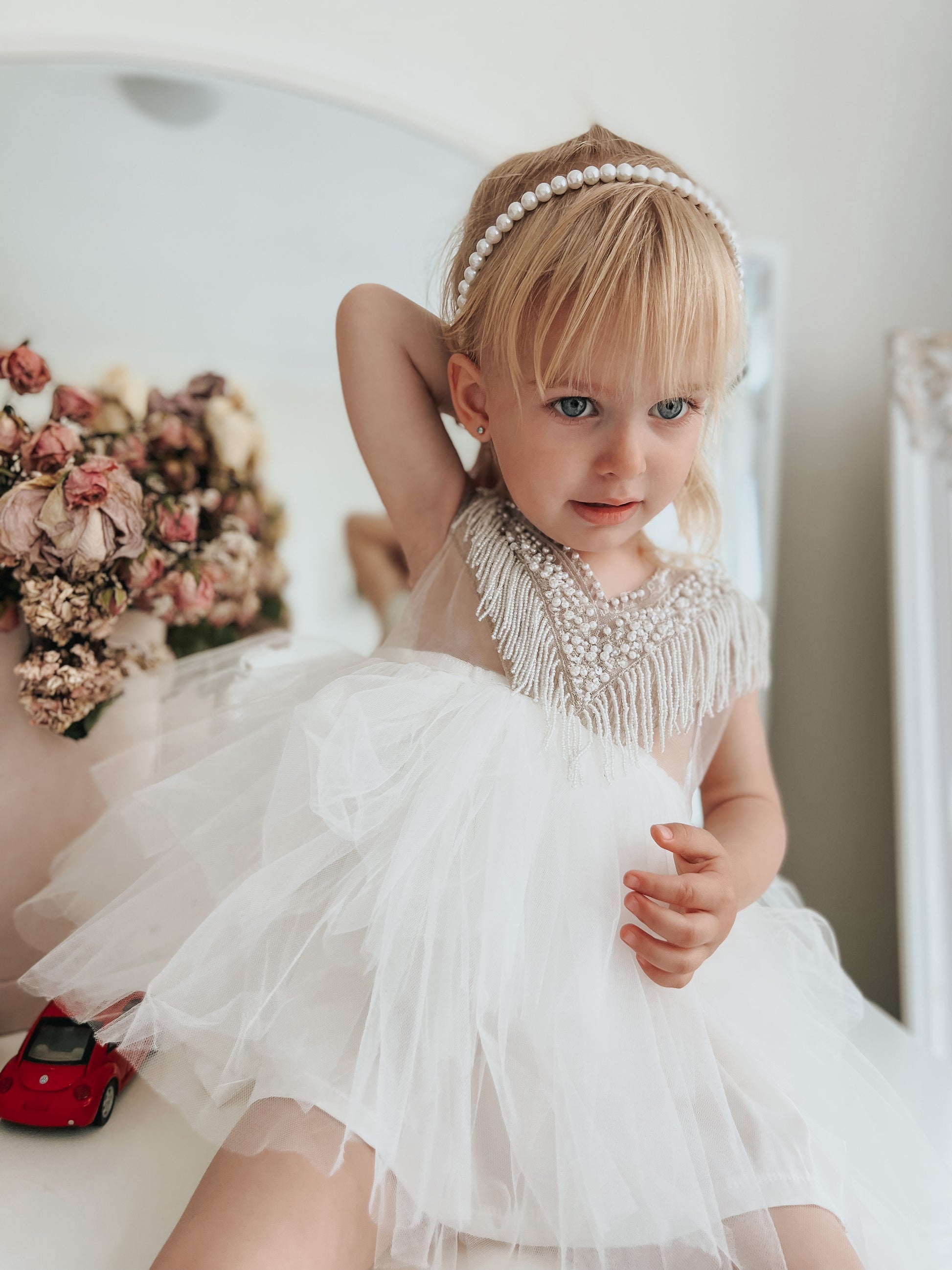 Garbi dress.Fustan veror eventesh, me tyl te bute francez dhe detaje te qendisura gurresh dhe kristale!