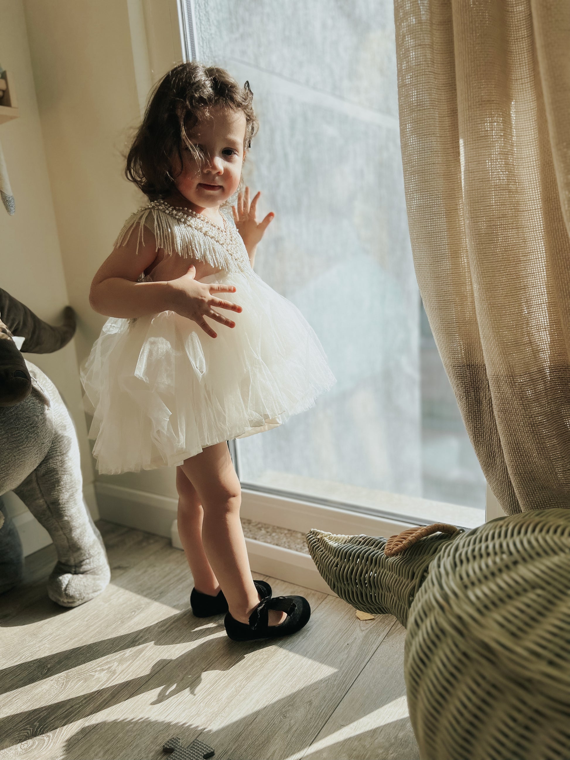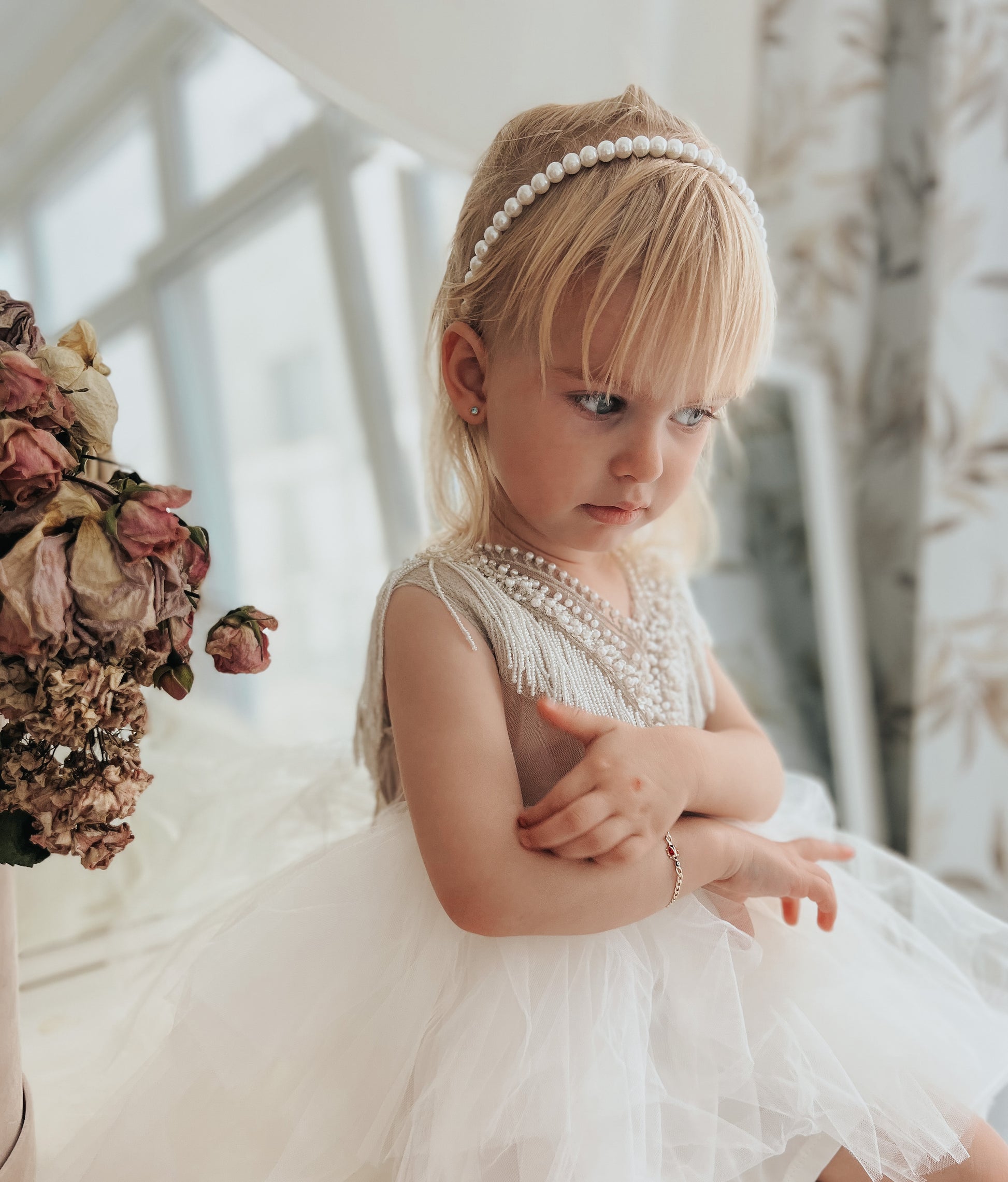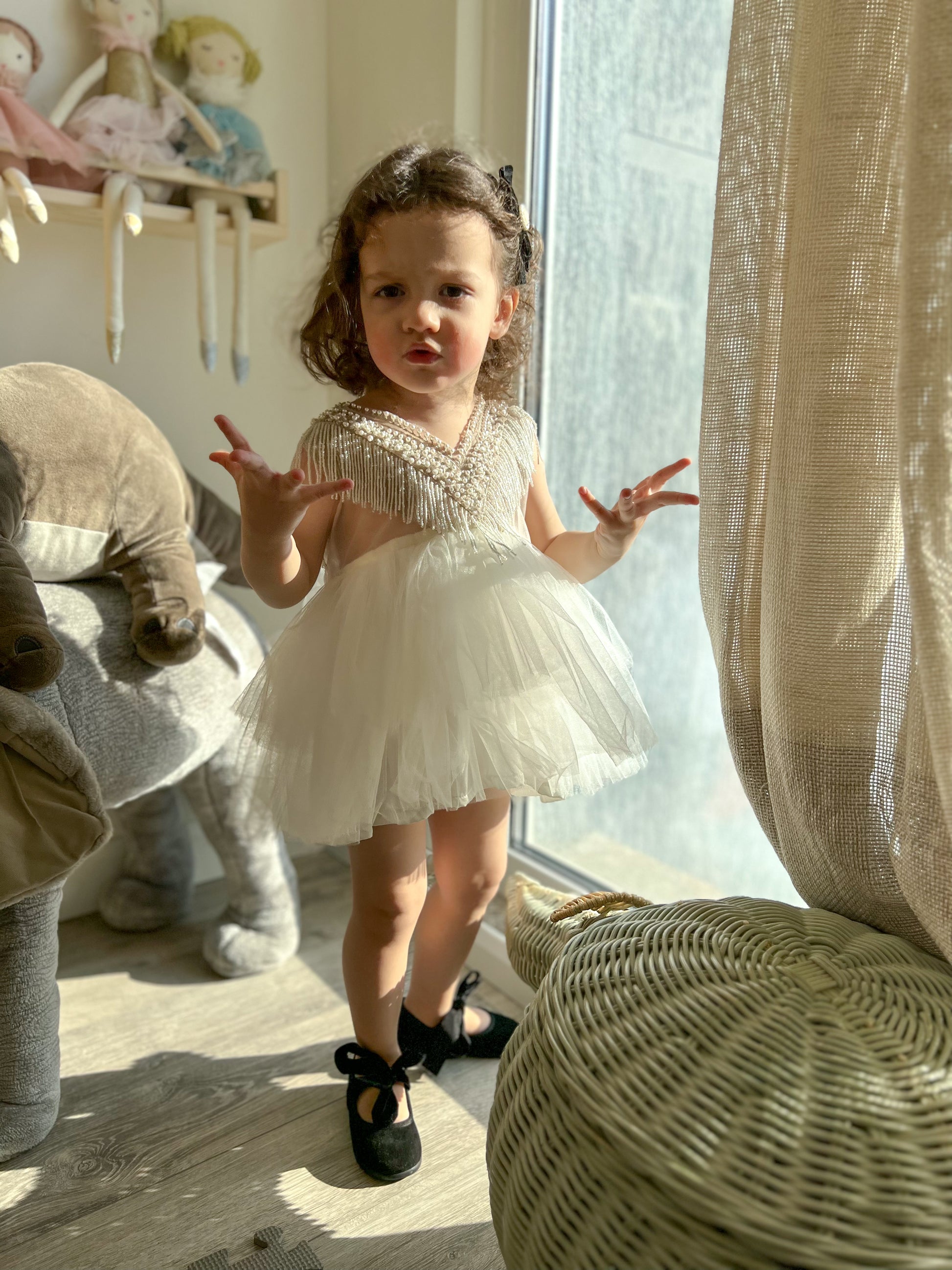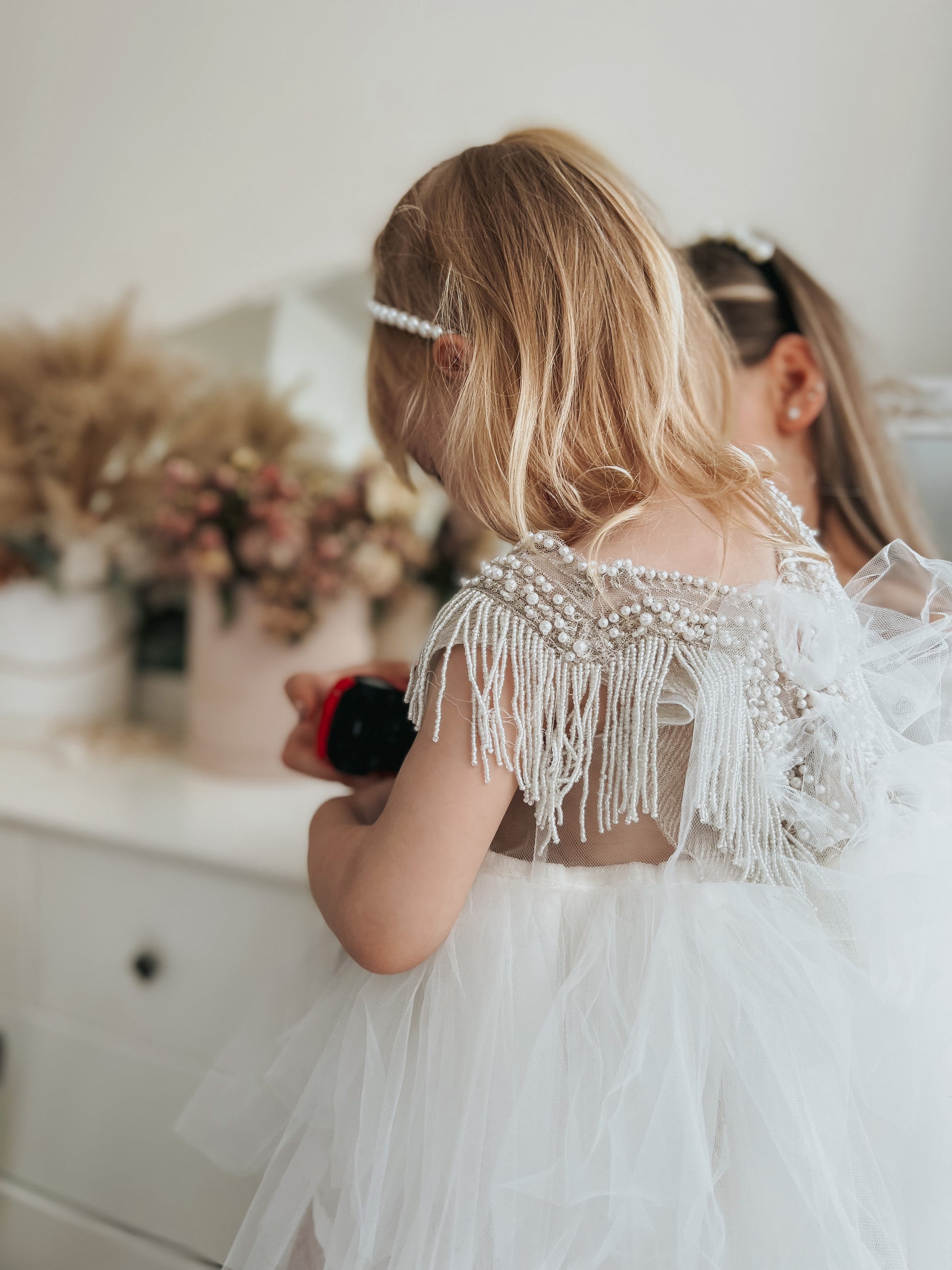 Garbi dress.Fustan veror eventesh, me tyl te bute francez dhe detaje te qendisura gurresh dhe kristale!