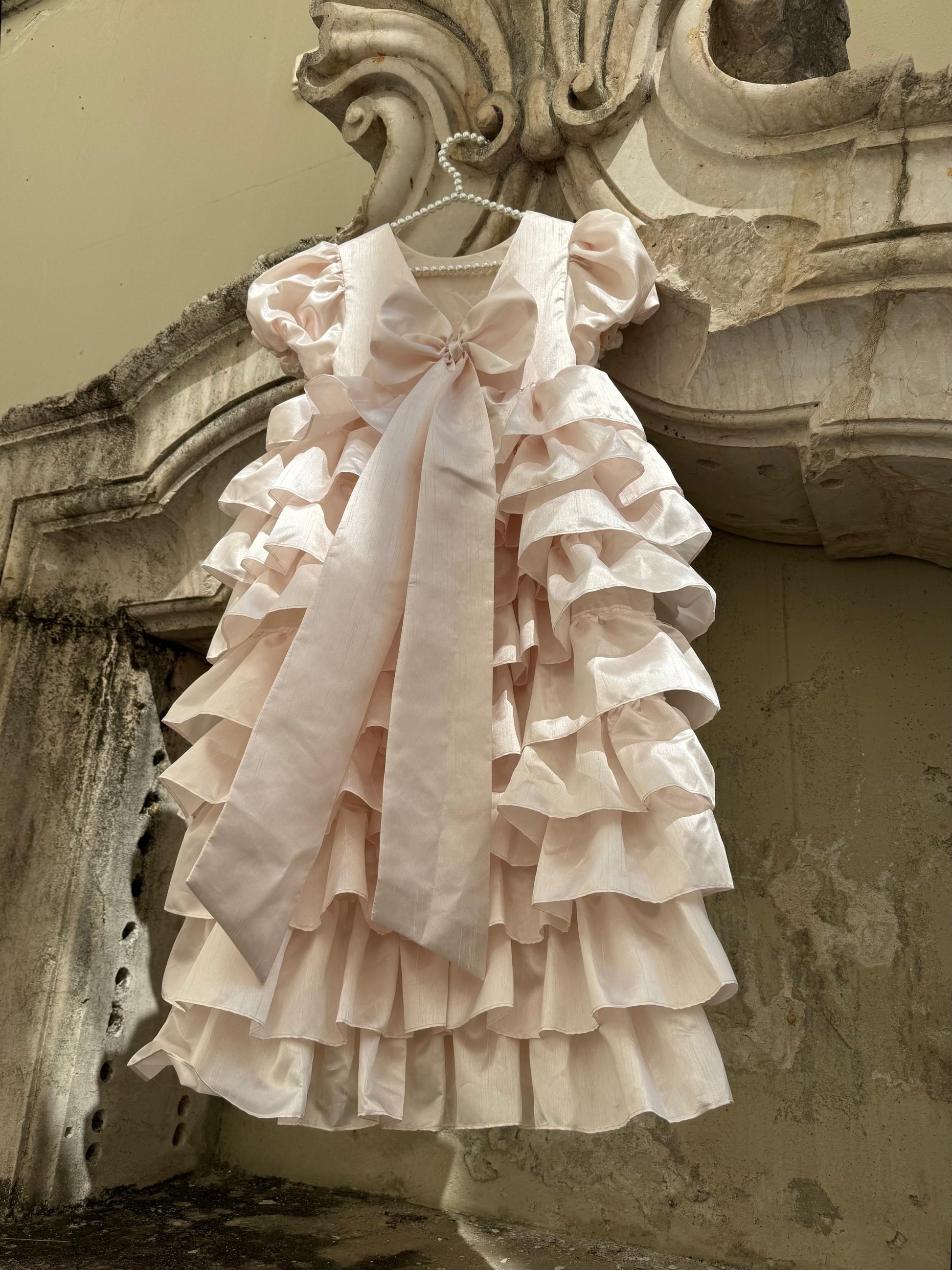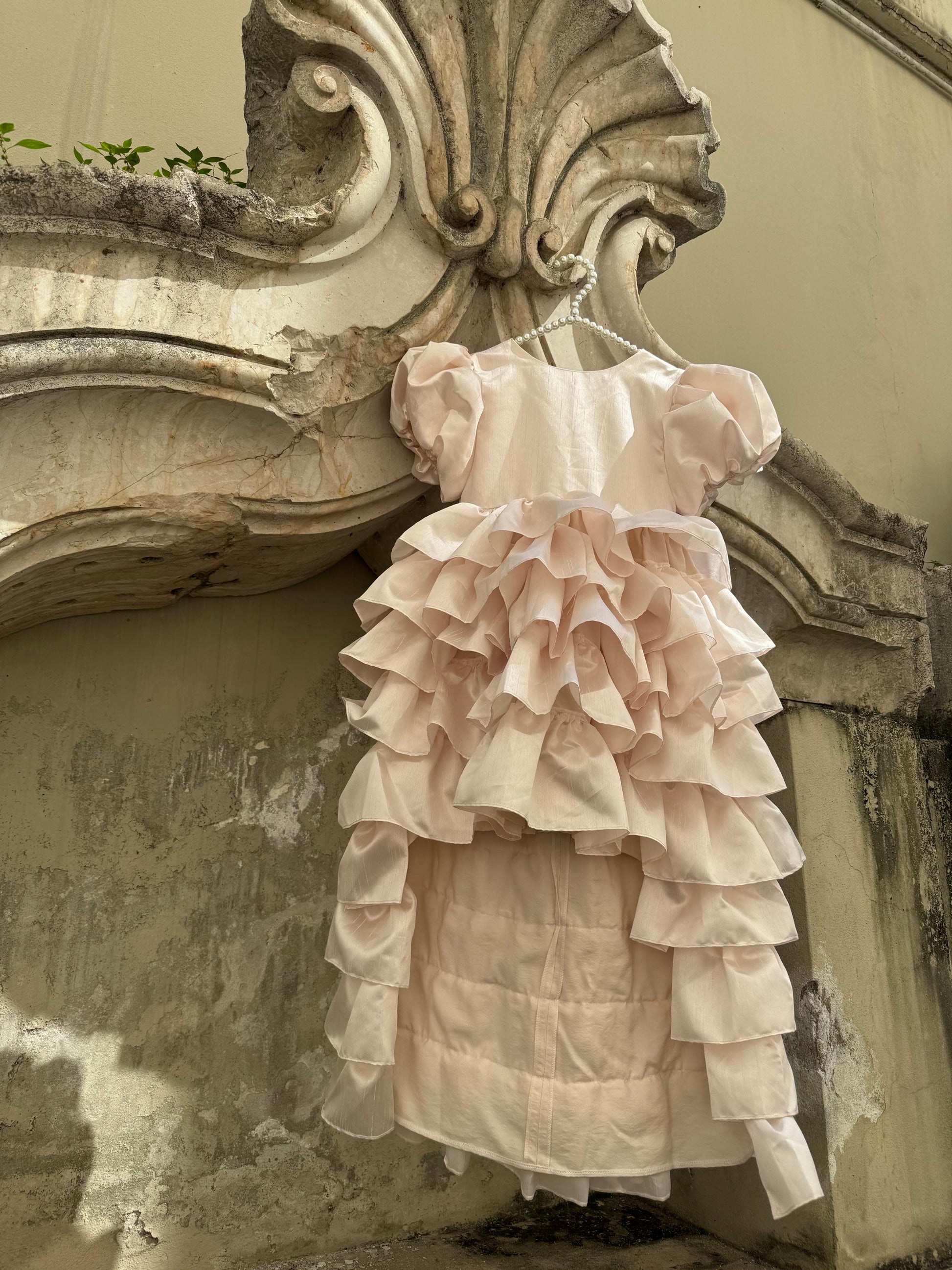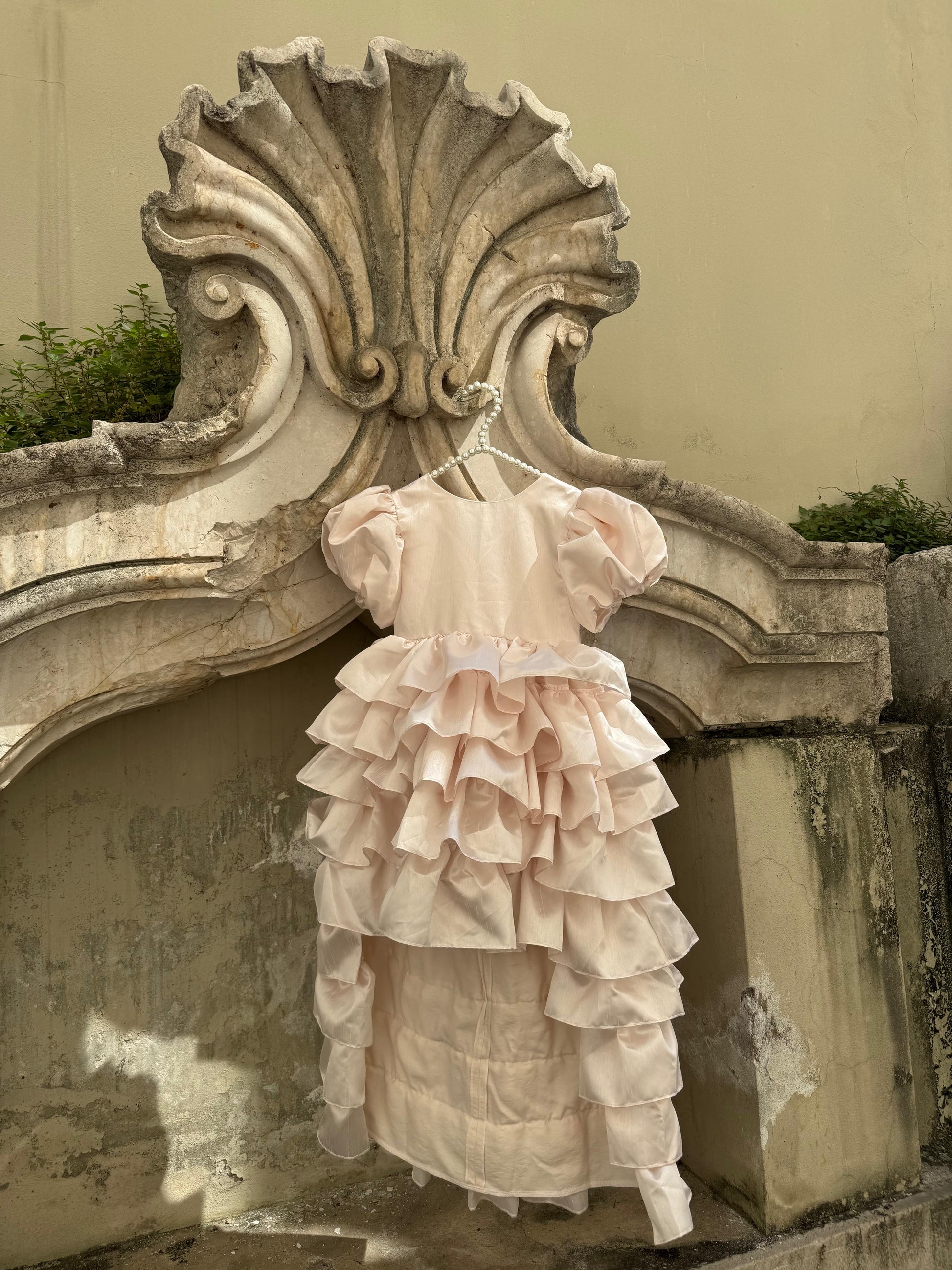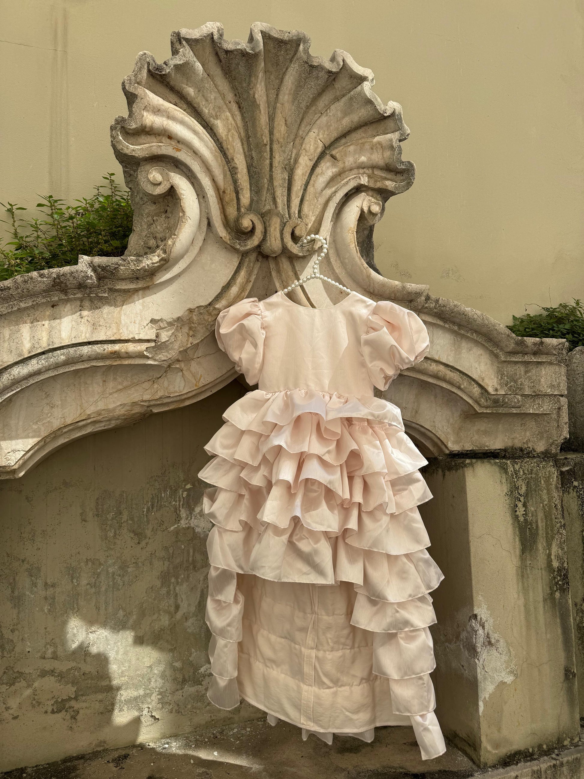Fustan me frulla dhe bisht madheshtor, i shkurter para dhe i gjate mbrapa.