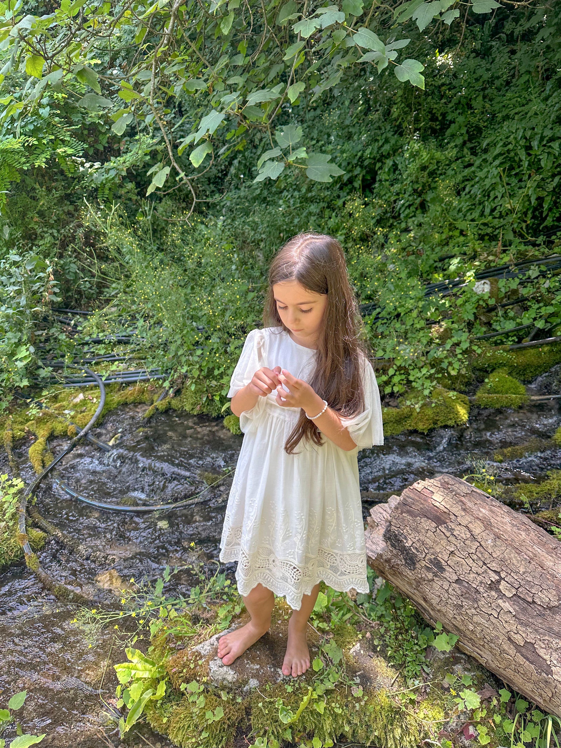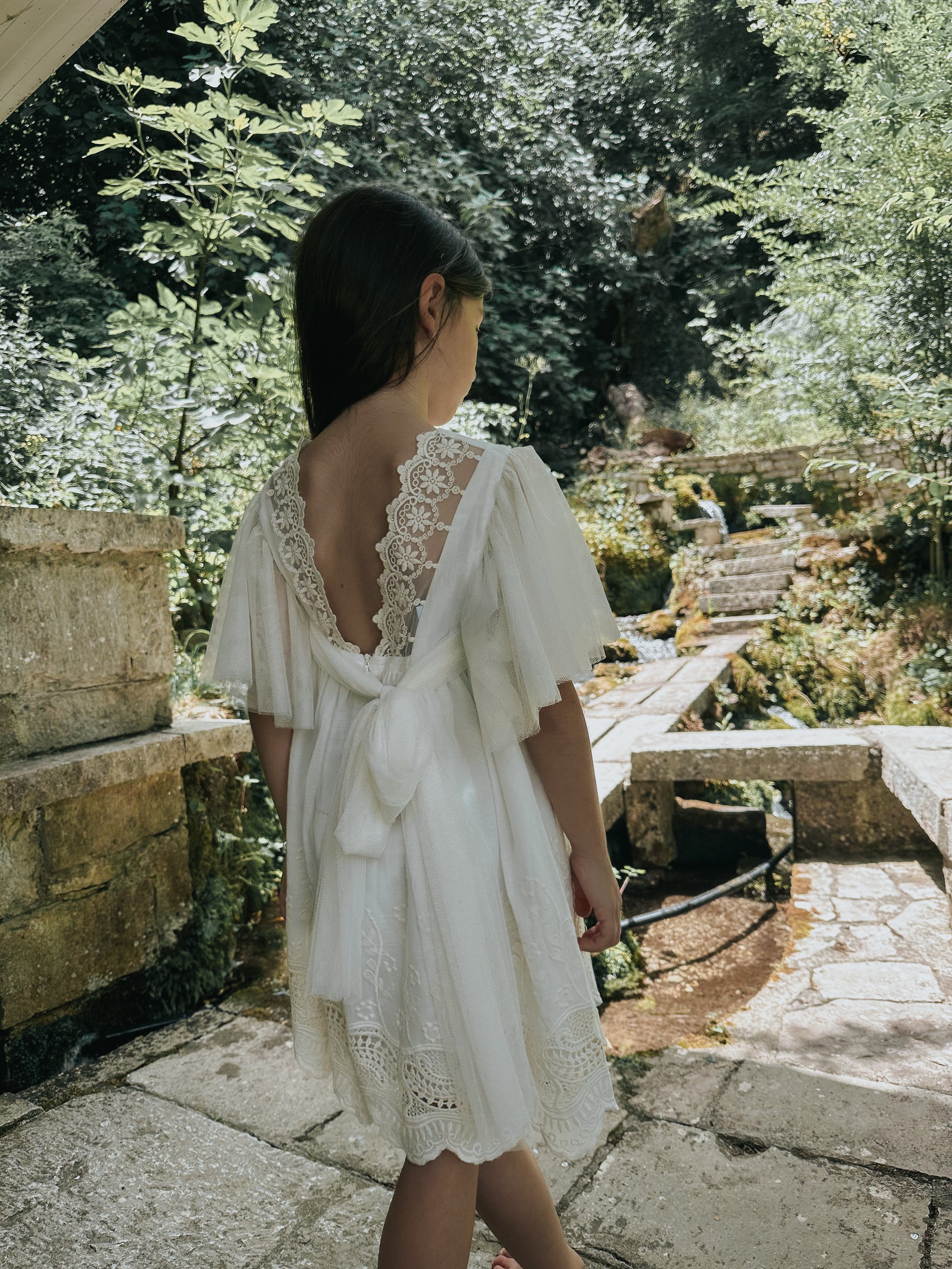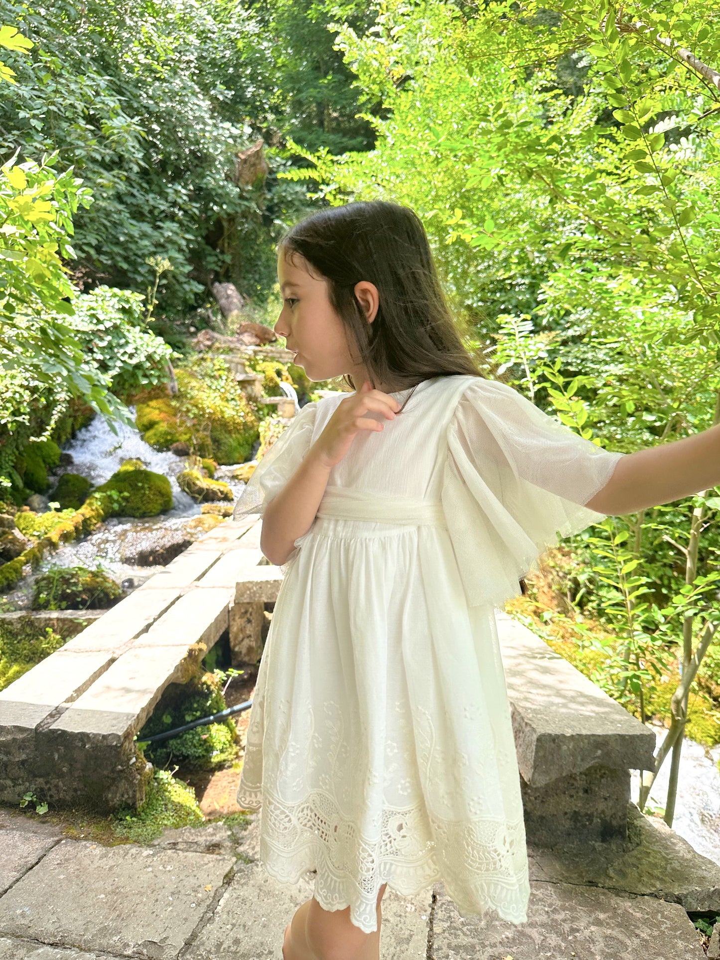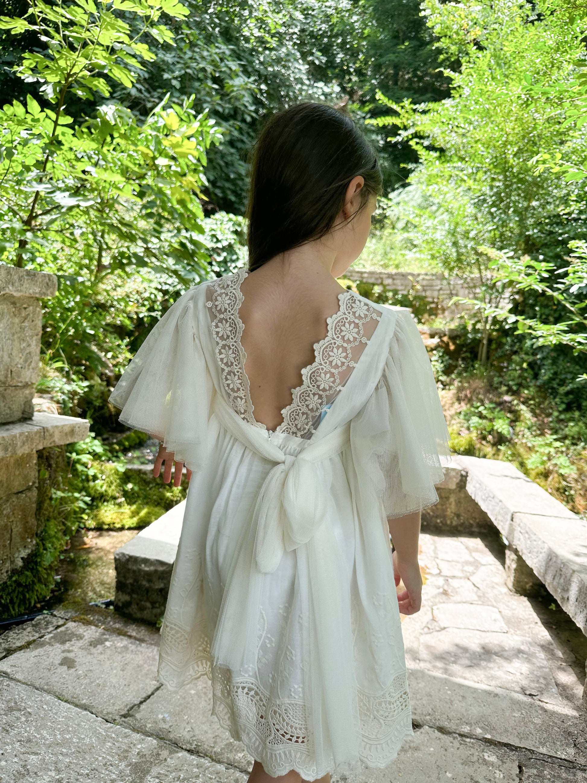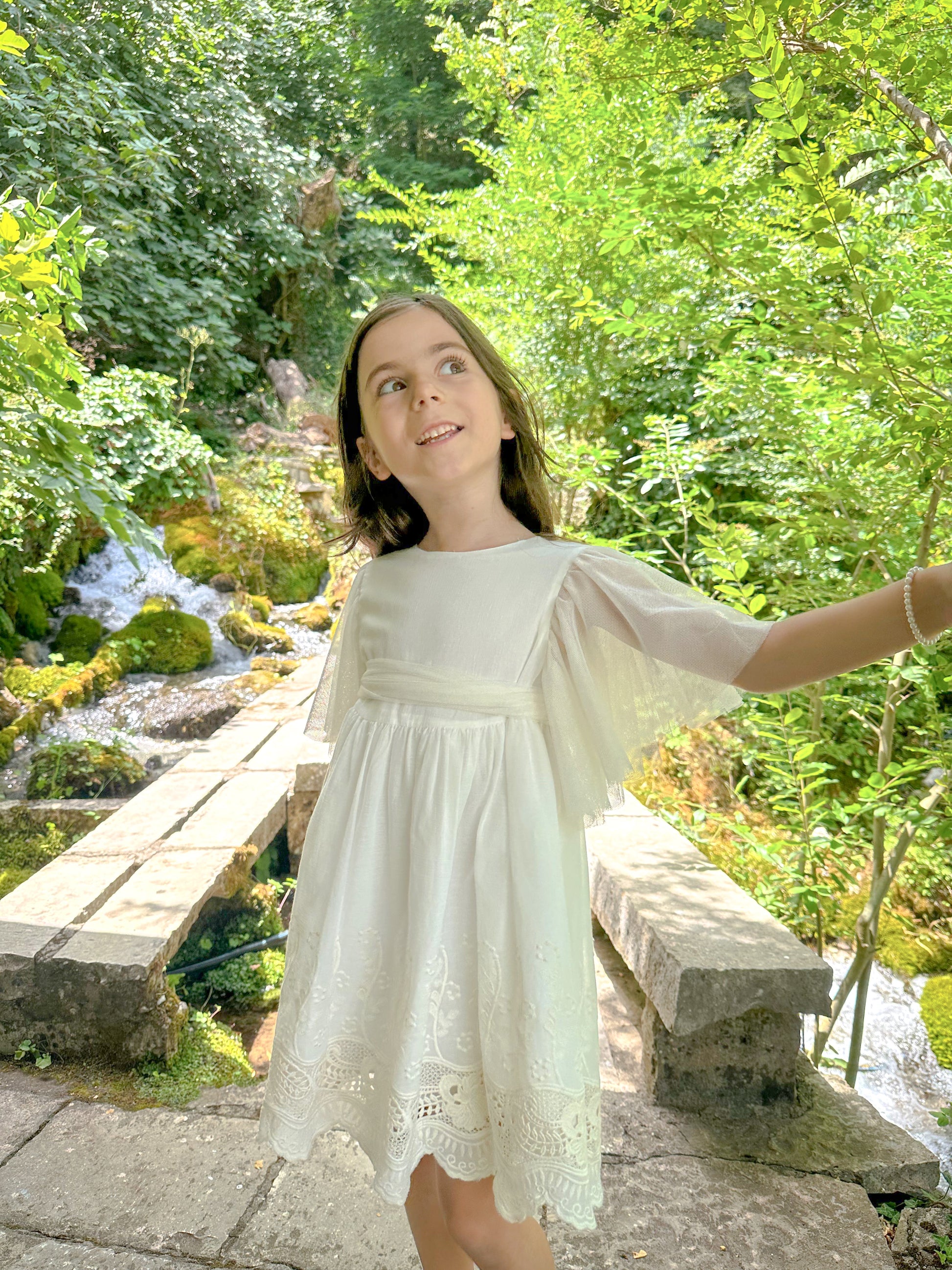 Fustan ceremonial pana me tyl dhe tantelle