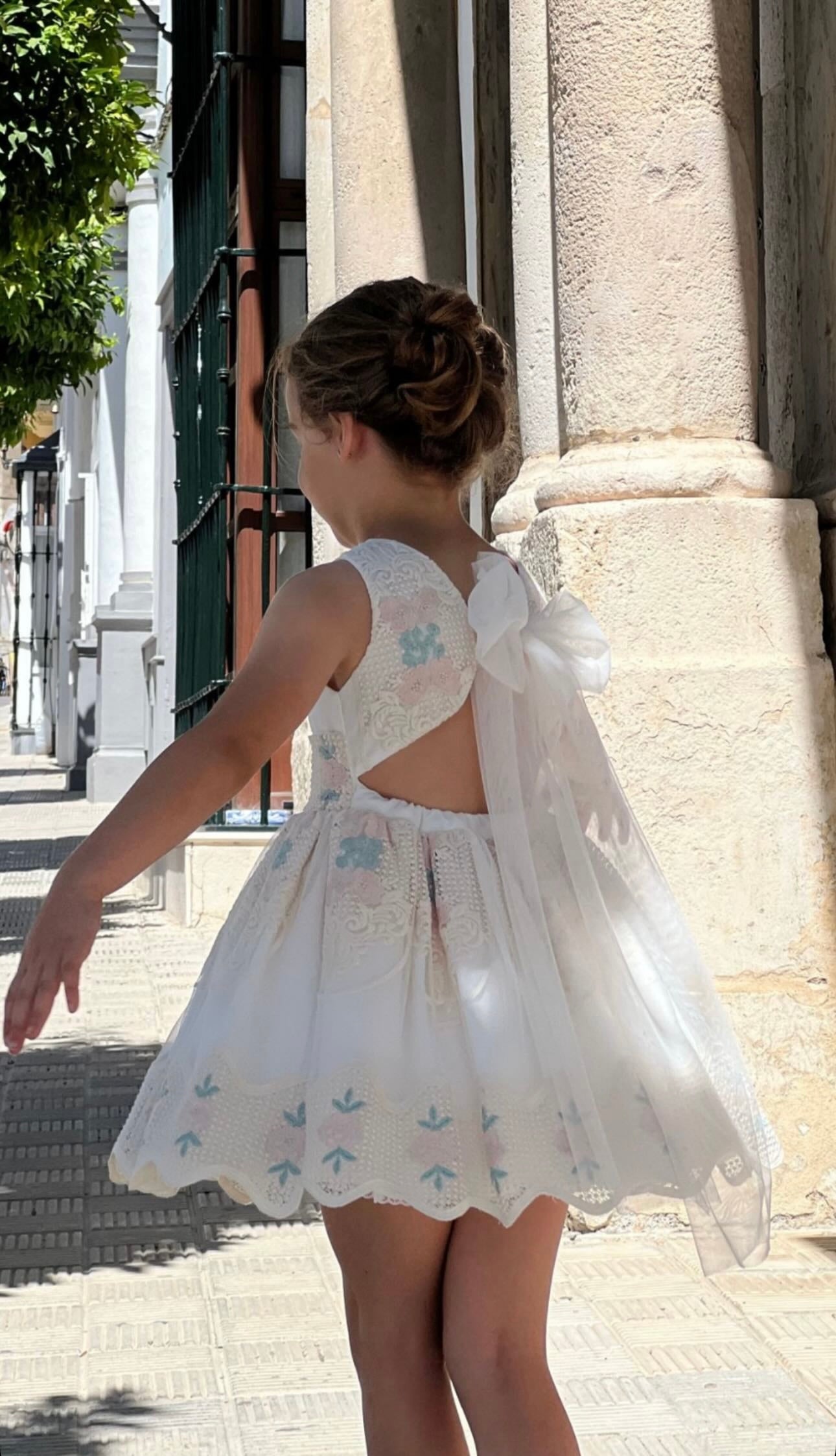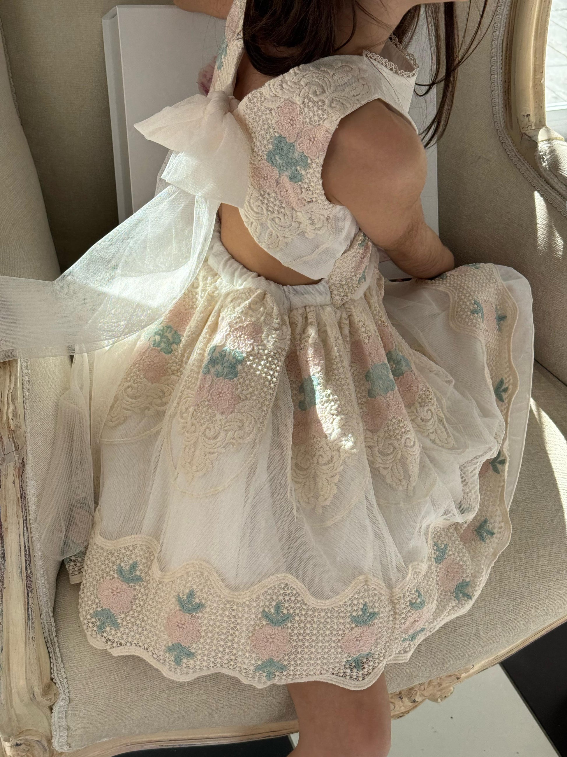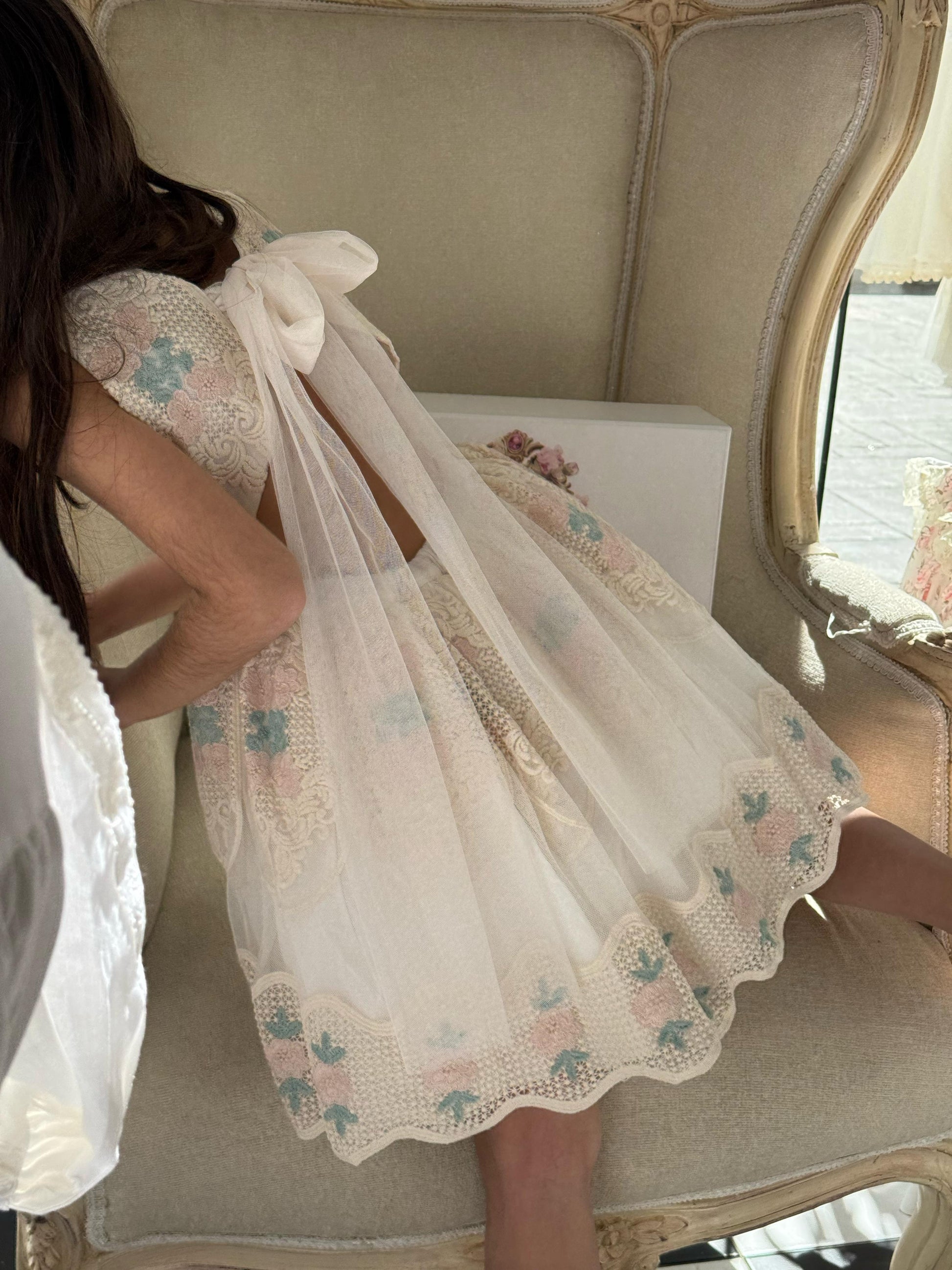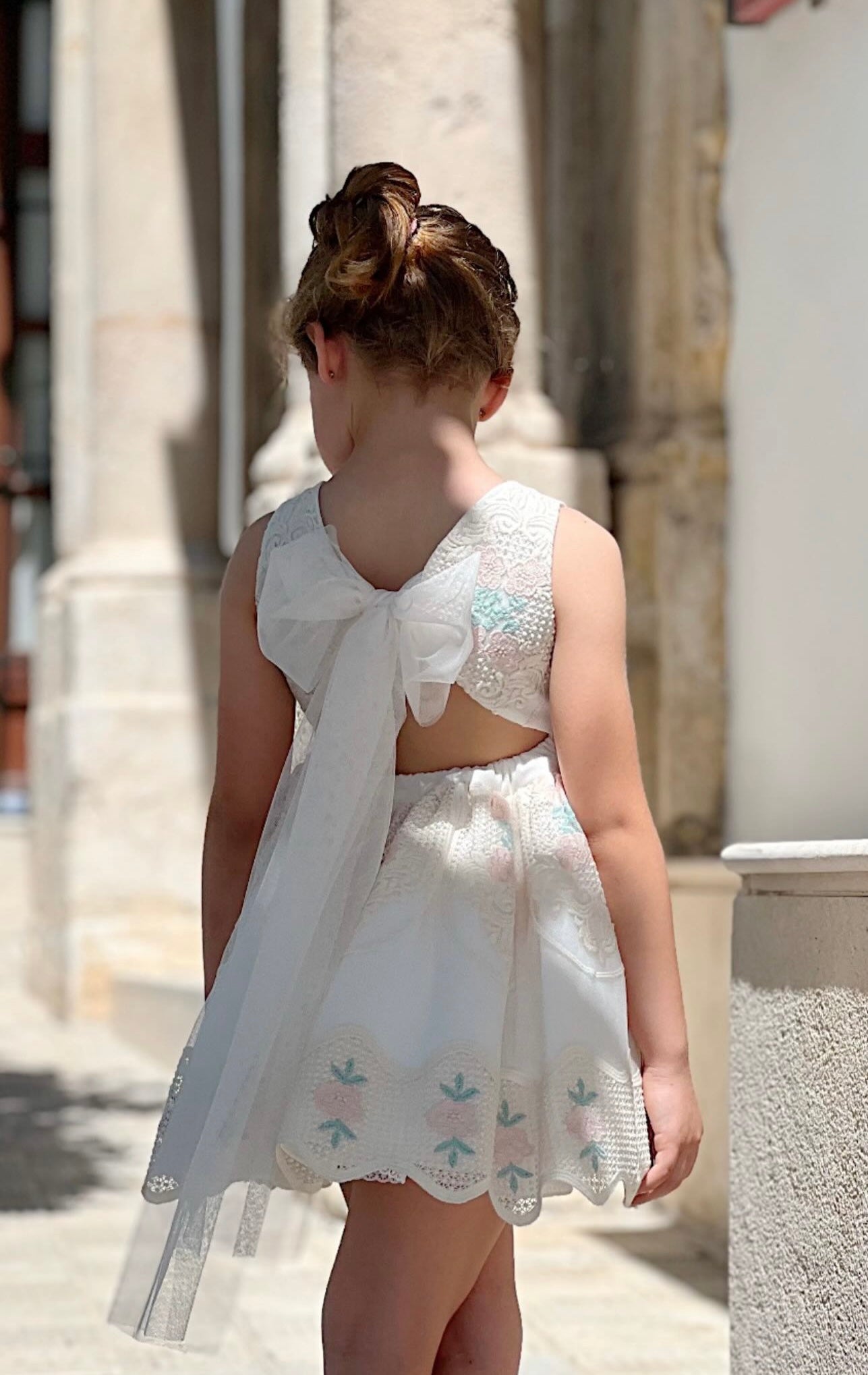 Fustan ceremonial, veror me shpinen jashte dhe lidhje me fjongo tyli.