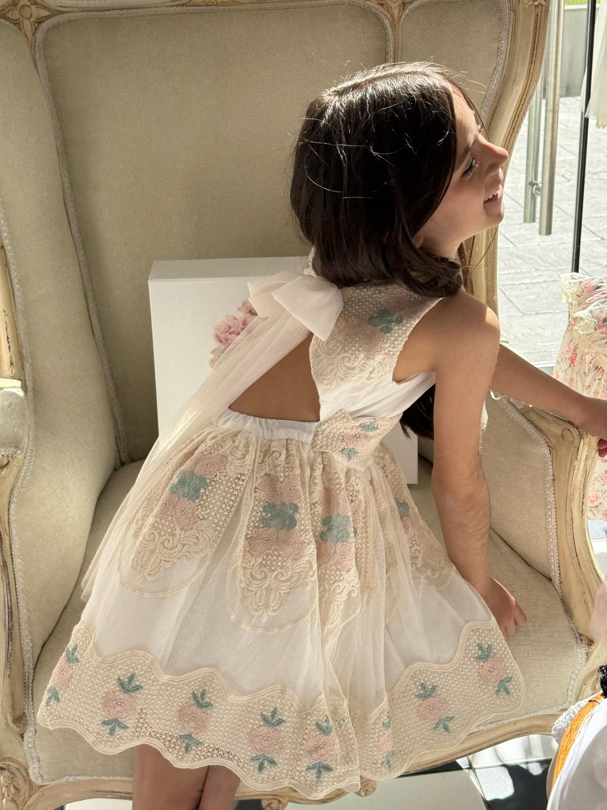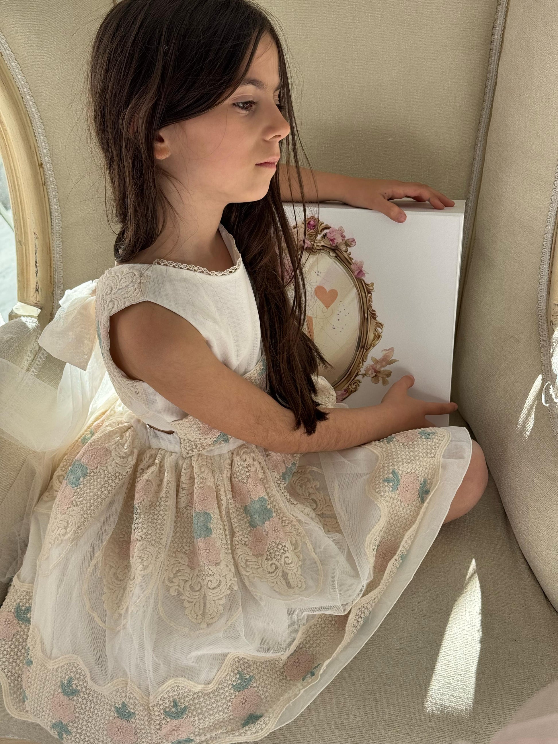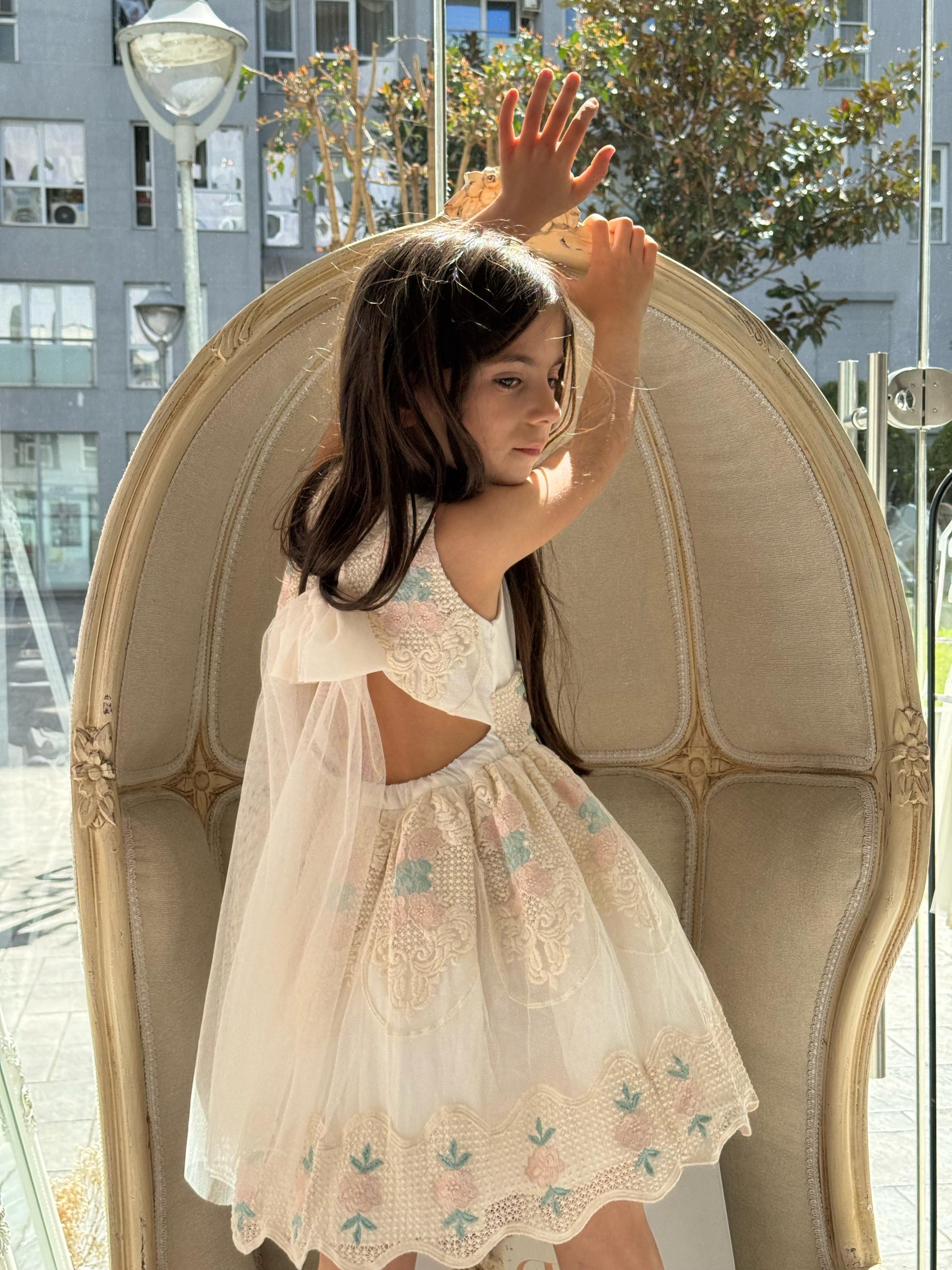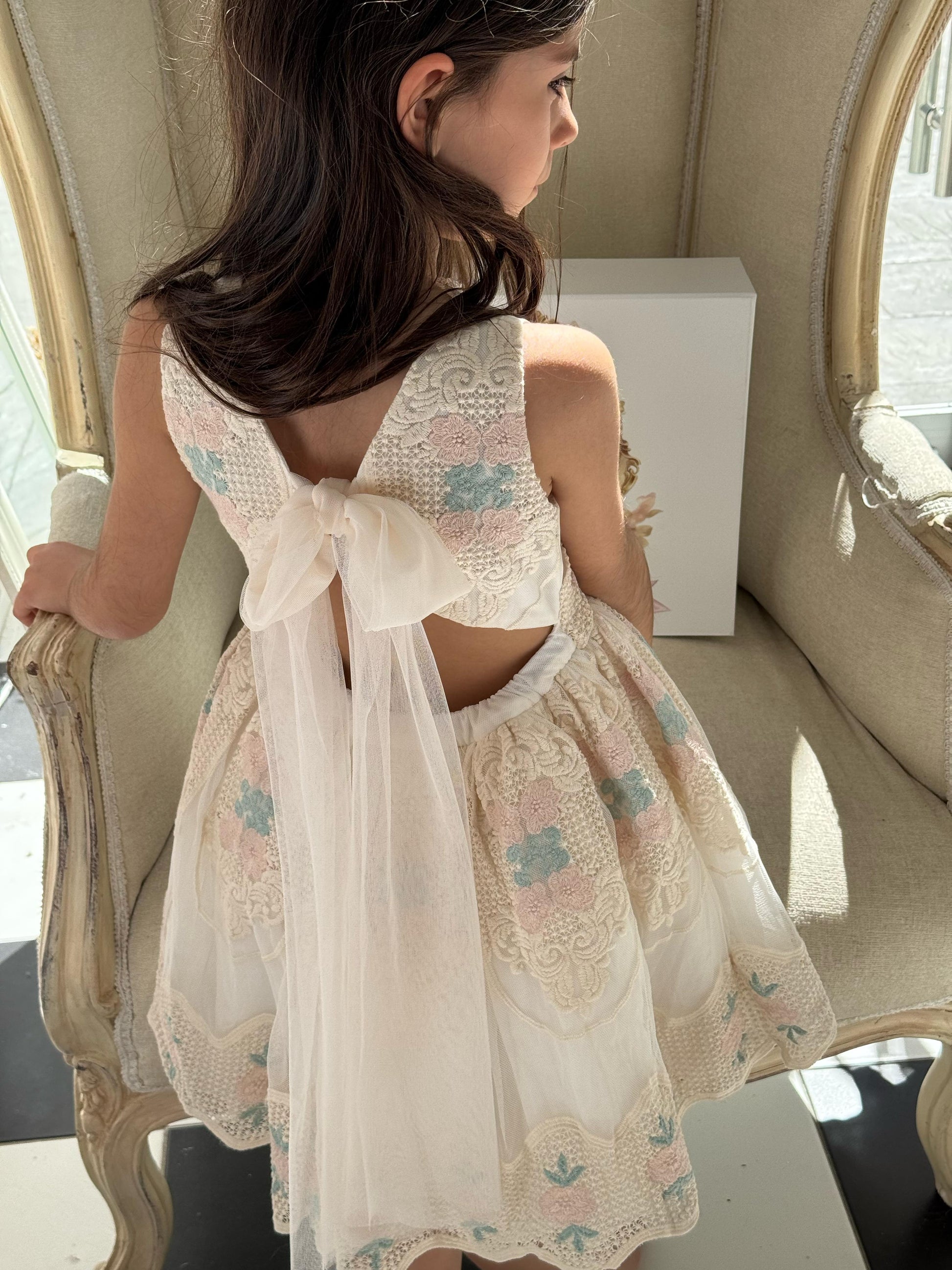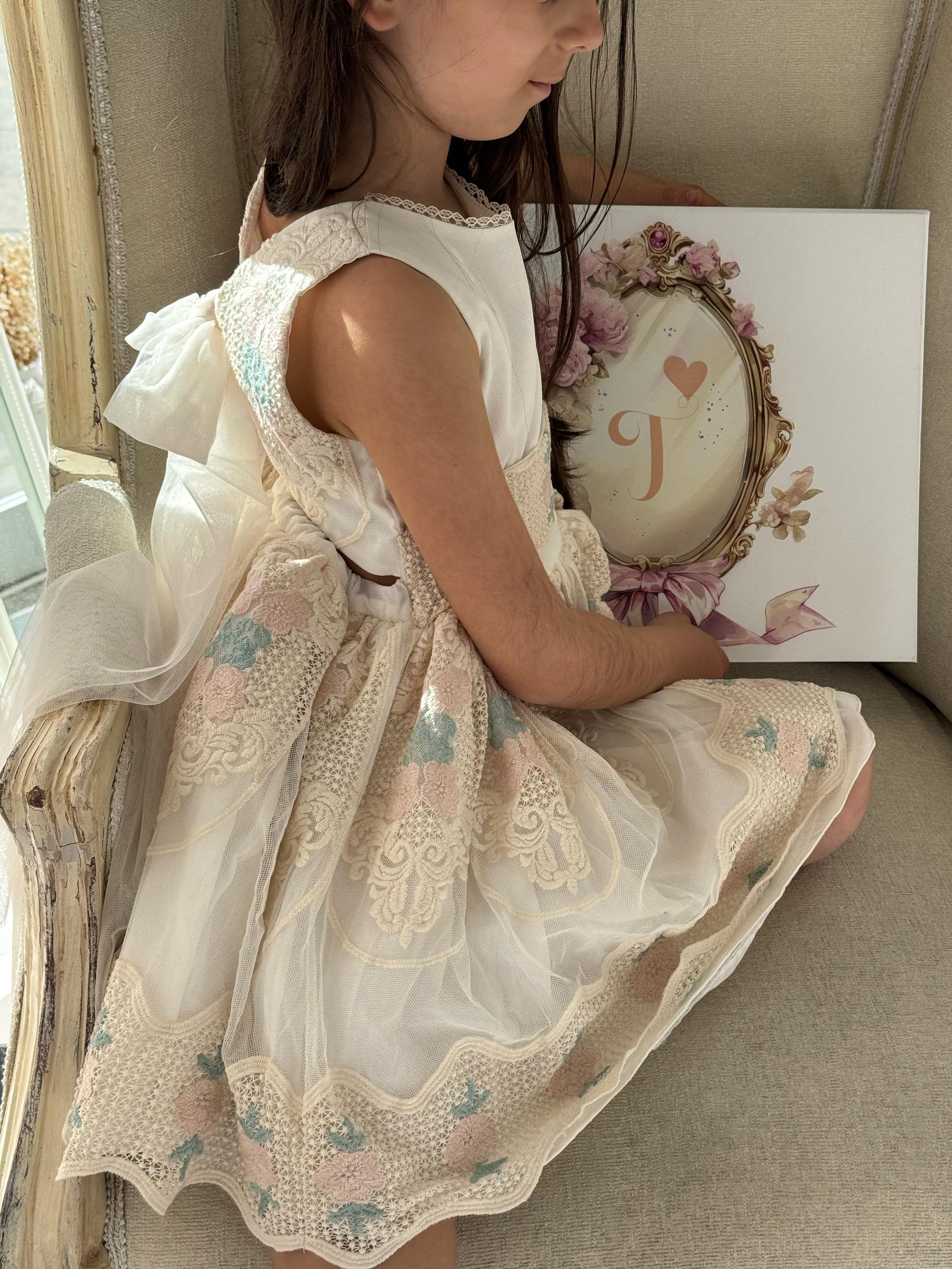 Fustan ceremonial, veror me shpinen jashte dhe lidhje me fjongo tyli.