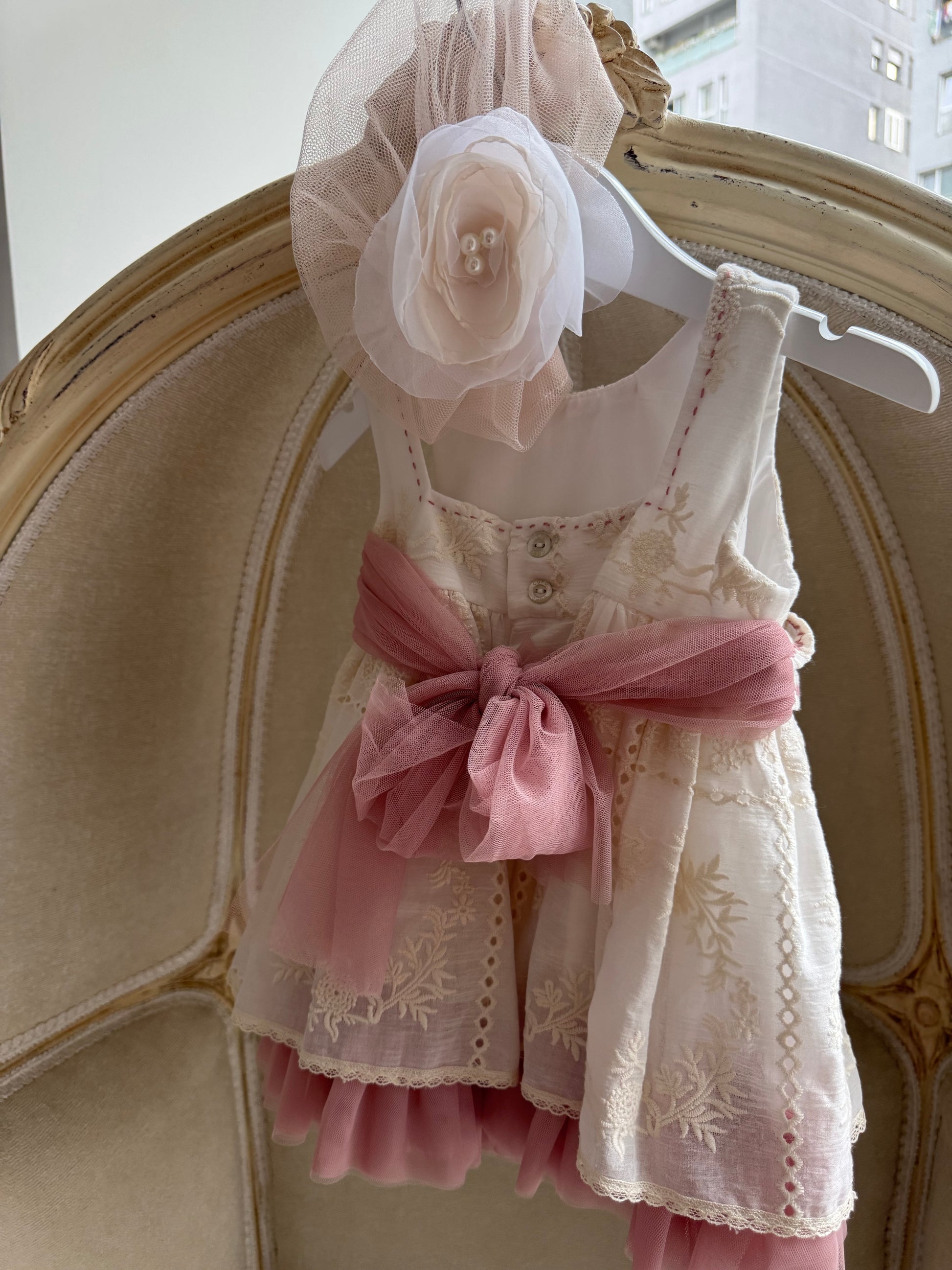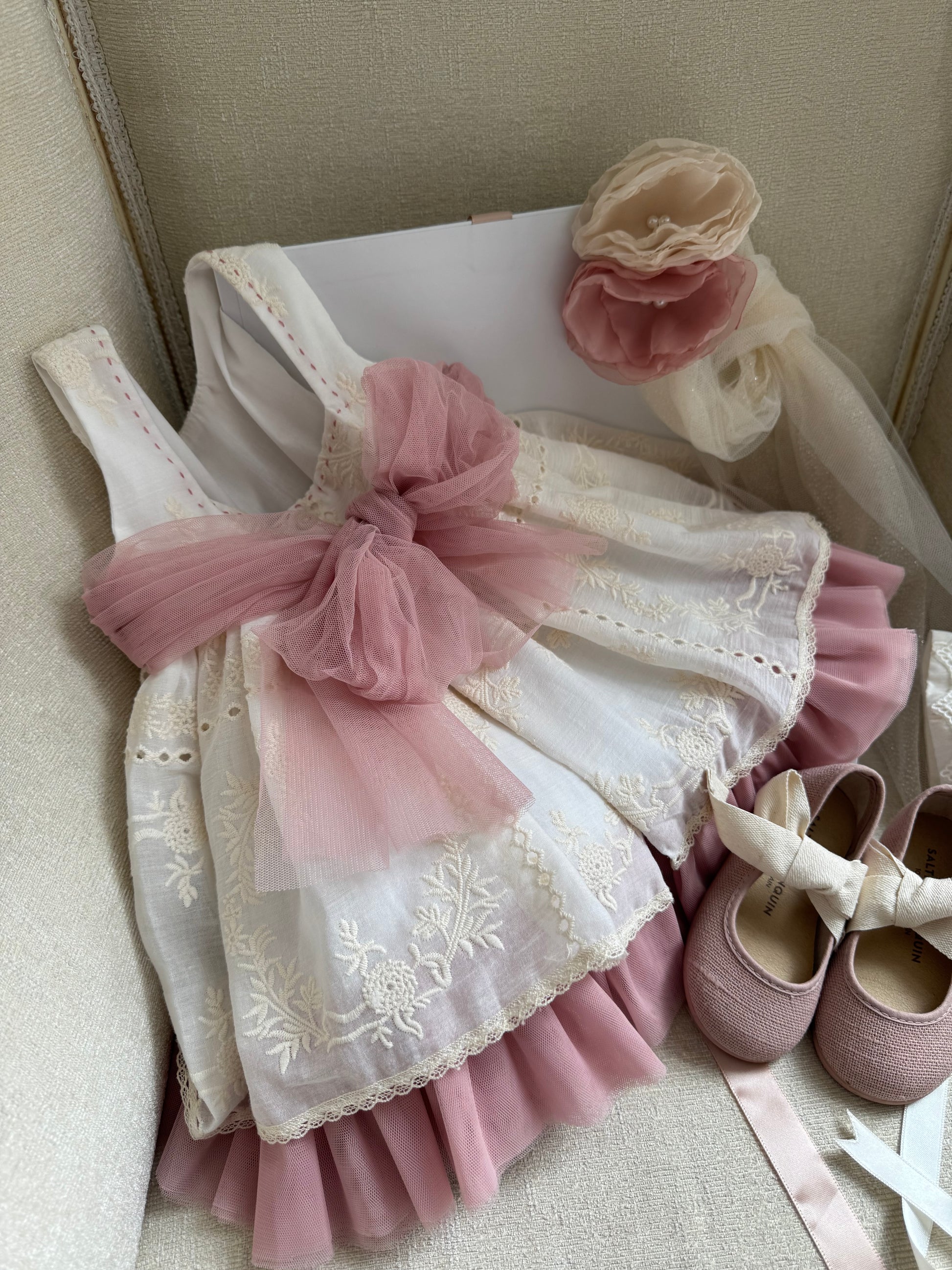 Fustan ceremonial me pjese tyli si astar i poshtem