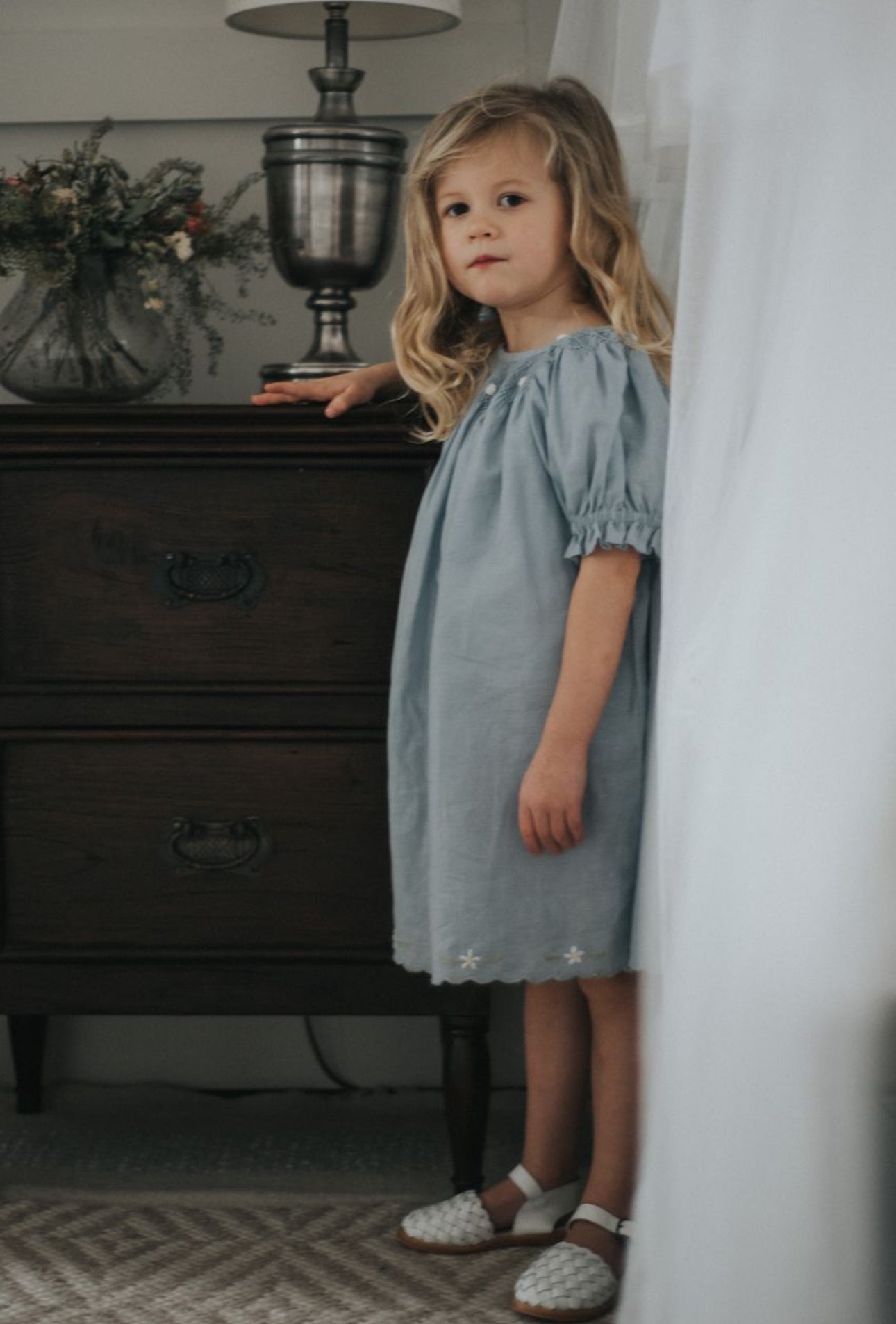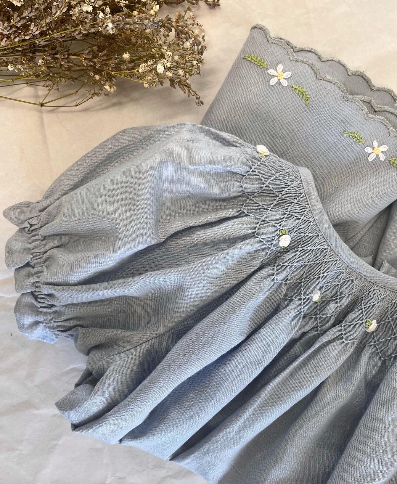 Fustan lino boqelli me detaje te qendisura, per evente dhe perditshmeri