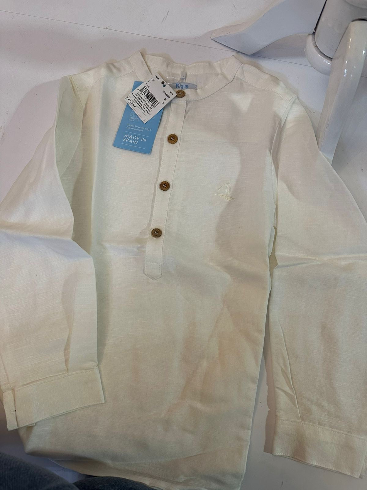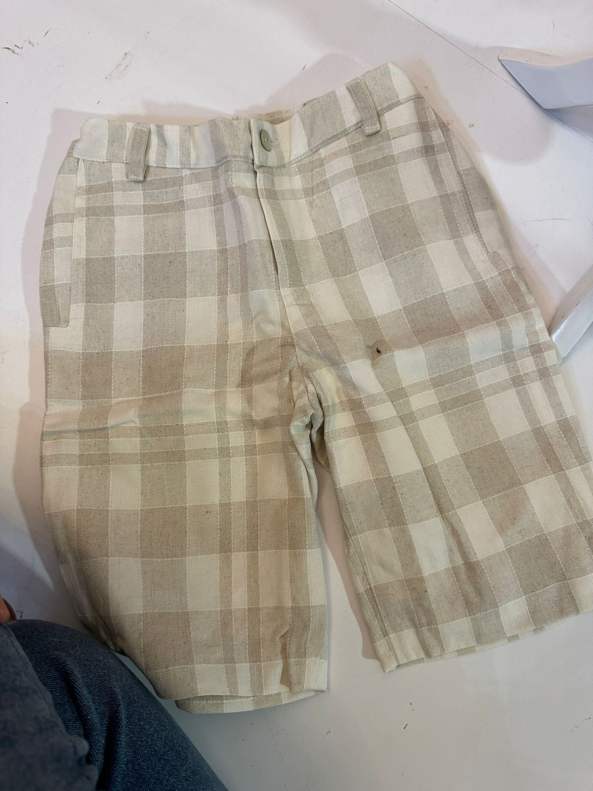 Kemishe lino dhe pantallona me kuadrata bezhe