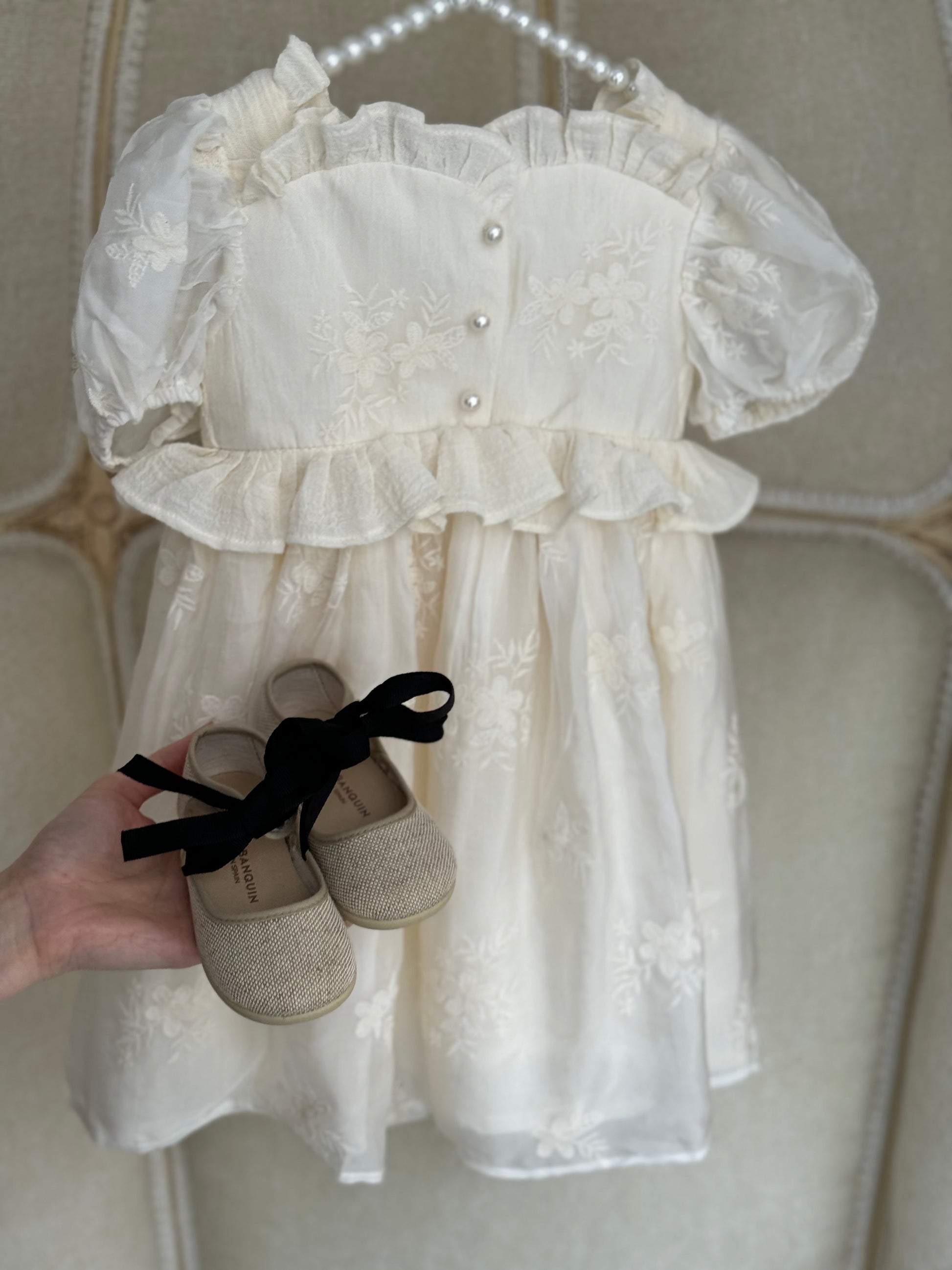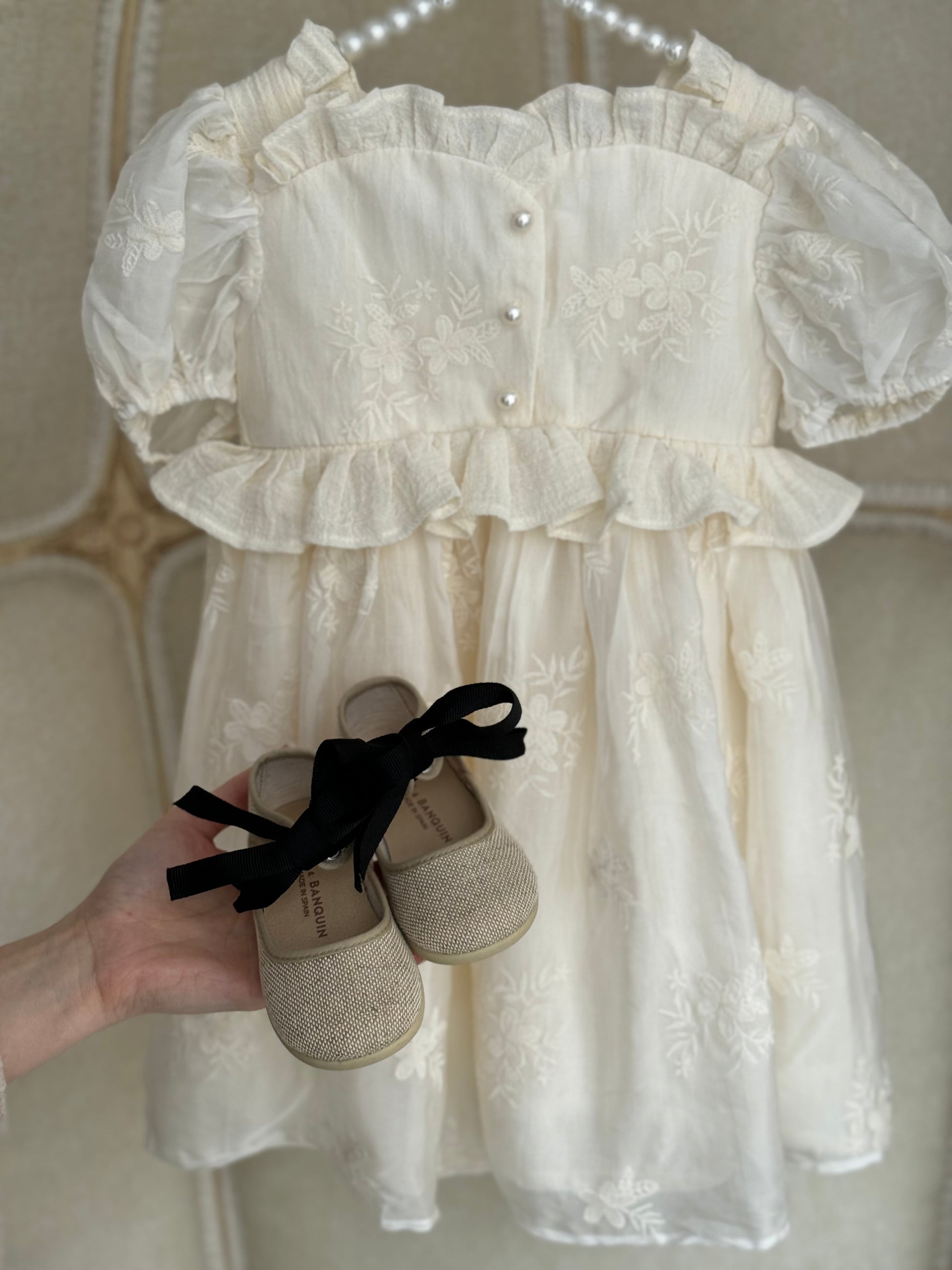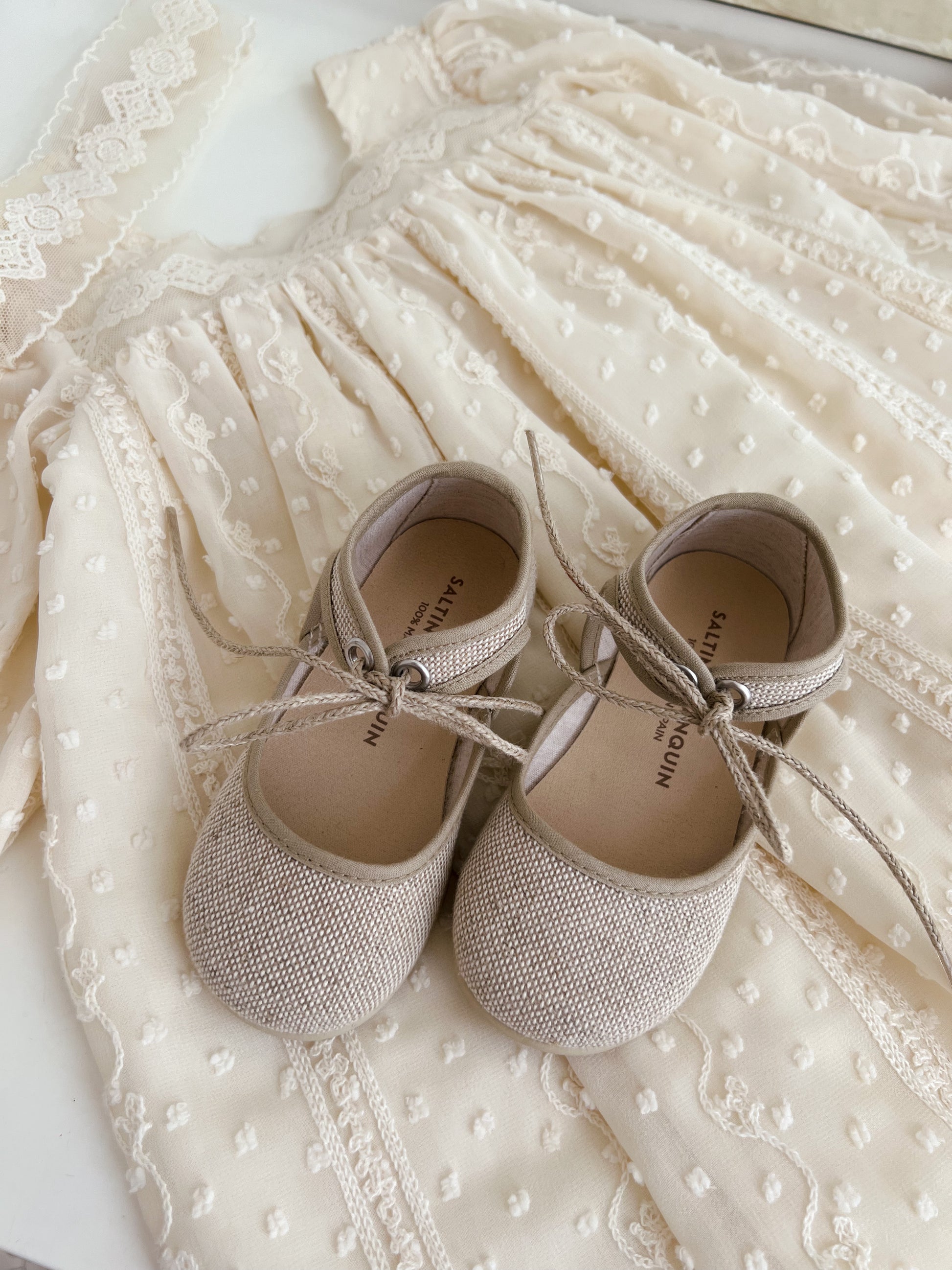 Kepuce verore, me fjongo qe lidhet perpara kurizit te kembes, e shoqeruar me dy lloj fjongosh , e zeze dhe bezhe.