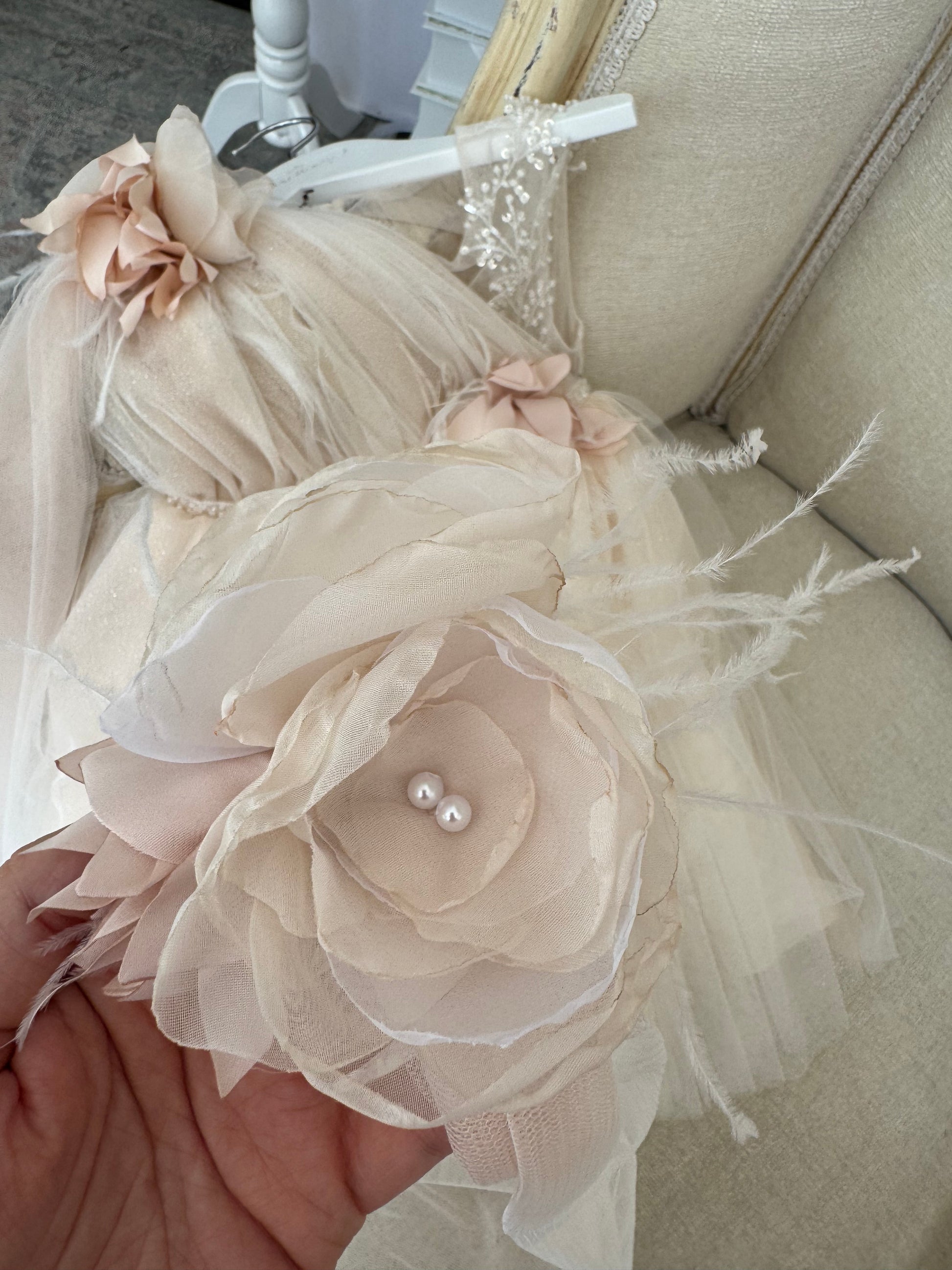 Kordele nga babybloom, me detaje lulesh, perla, pupla dhe tyl