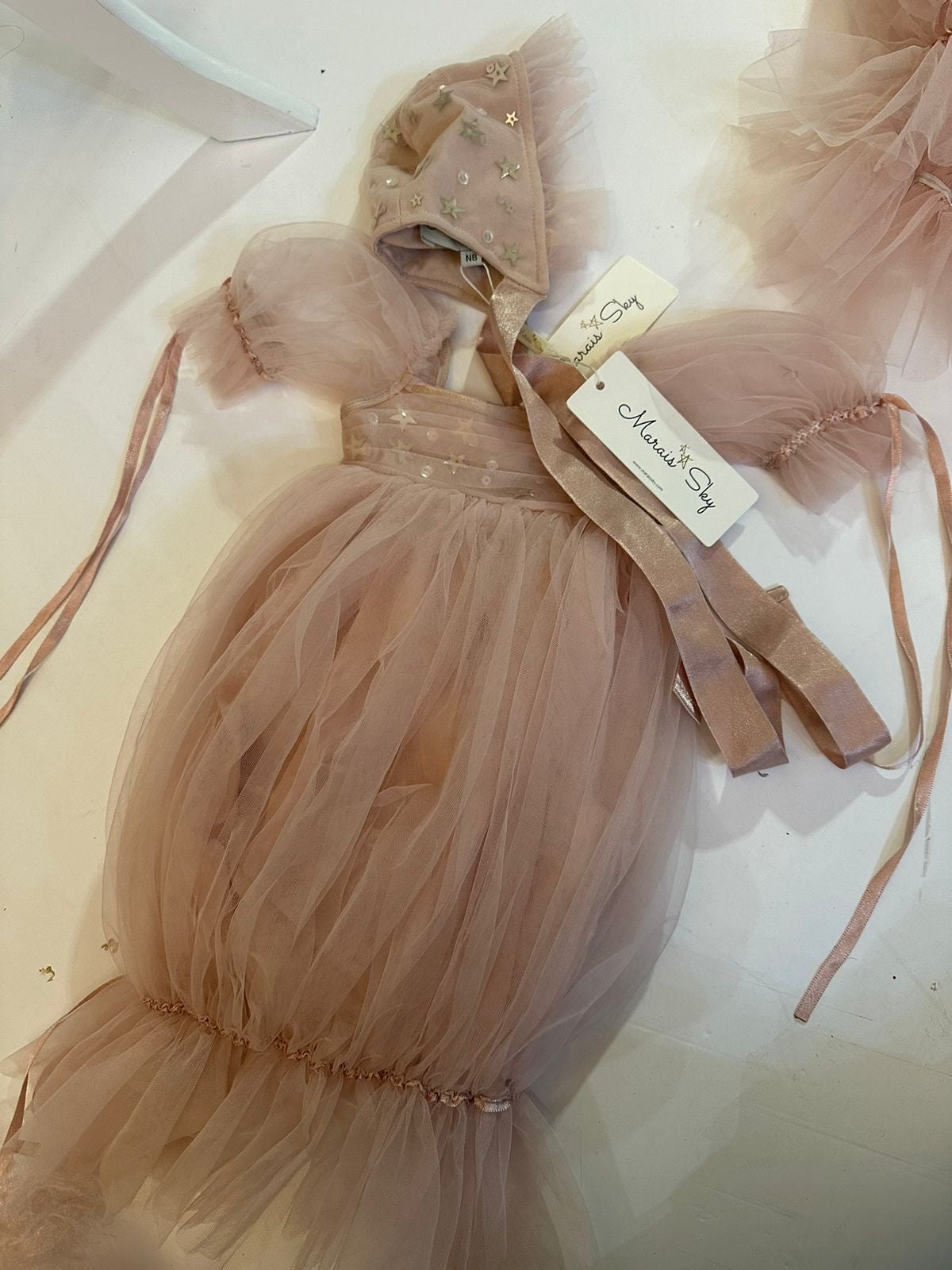 Marais Sky set newborn gown dhe kapuç