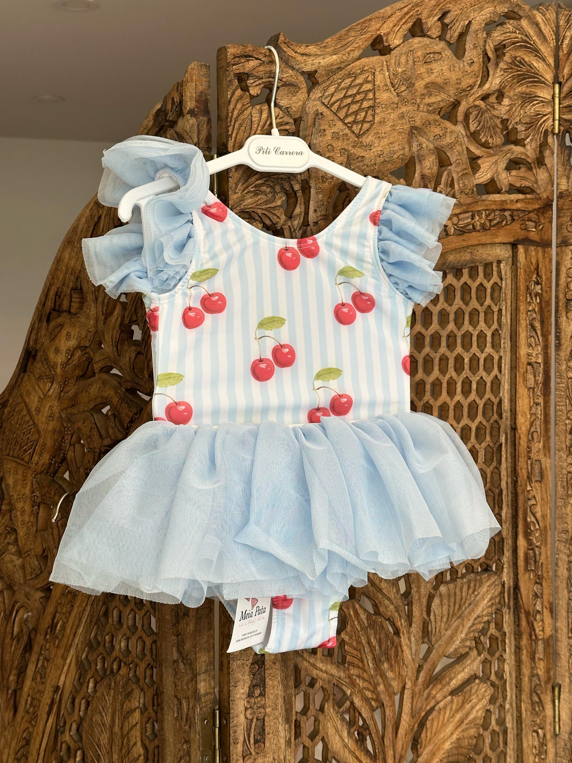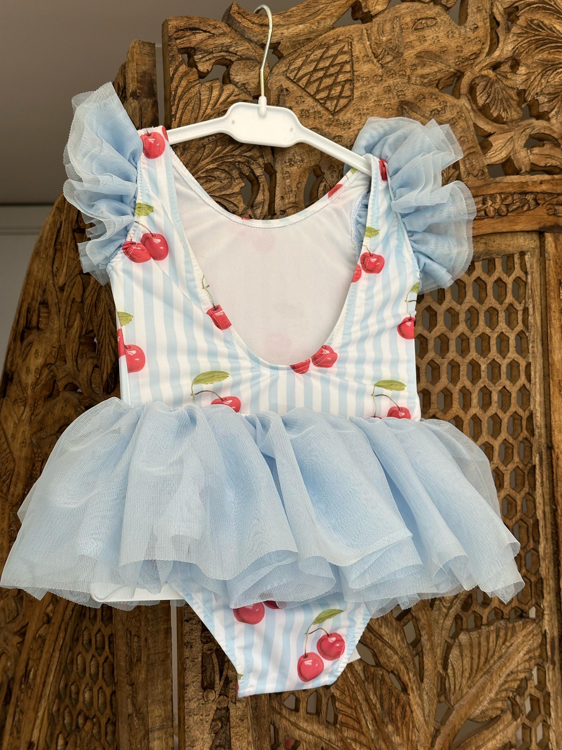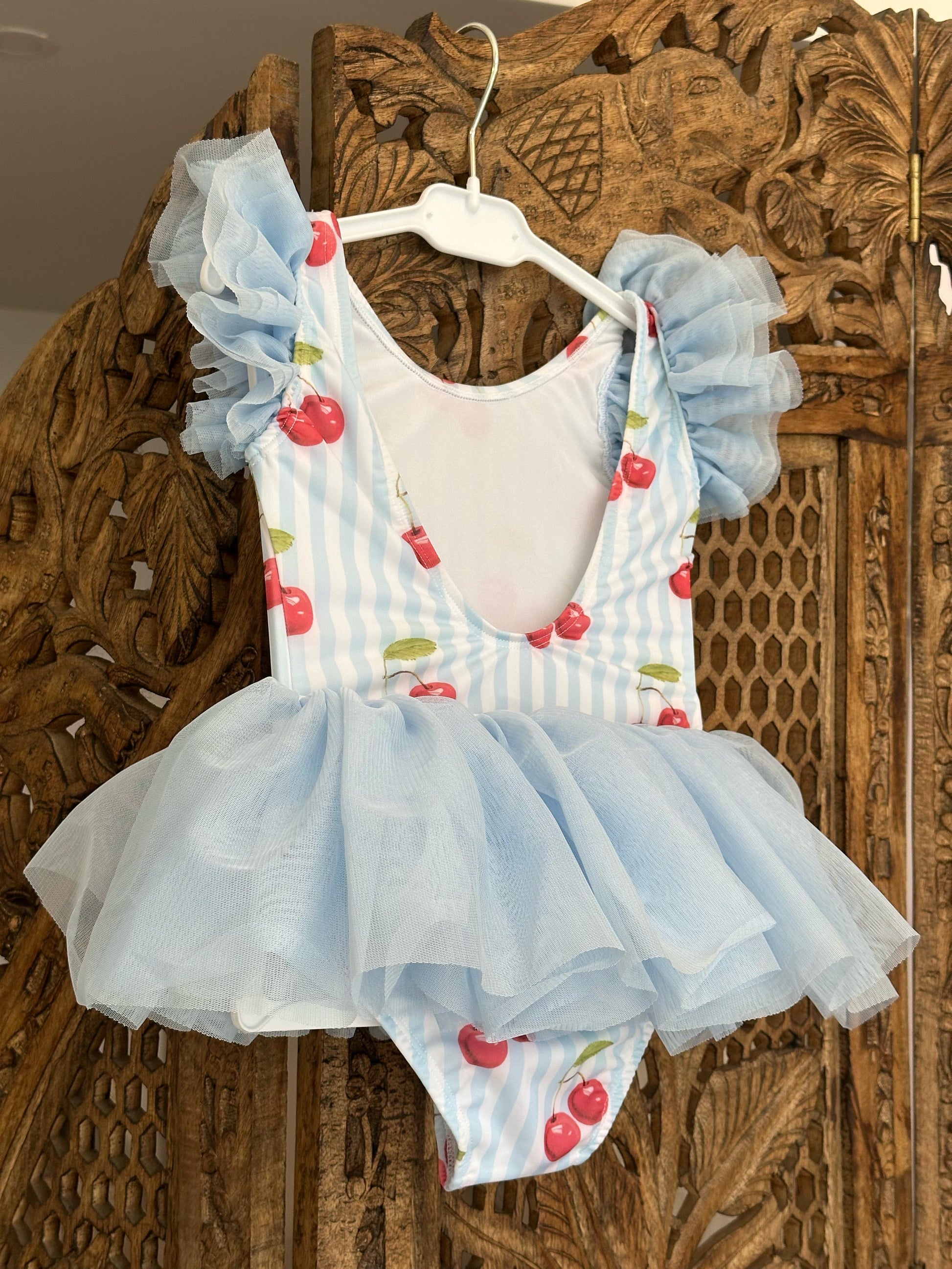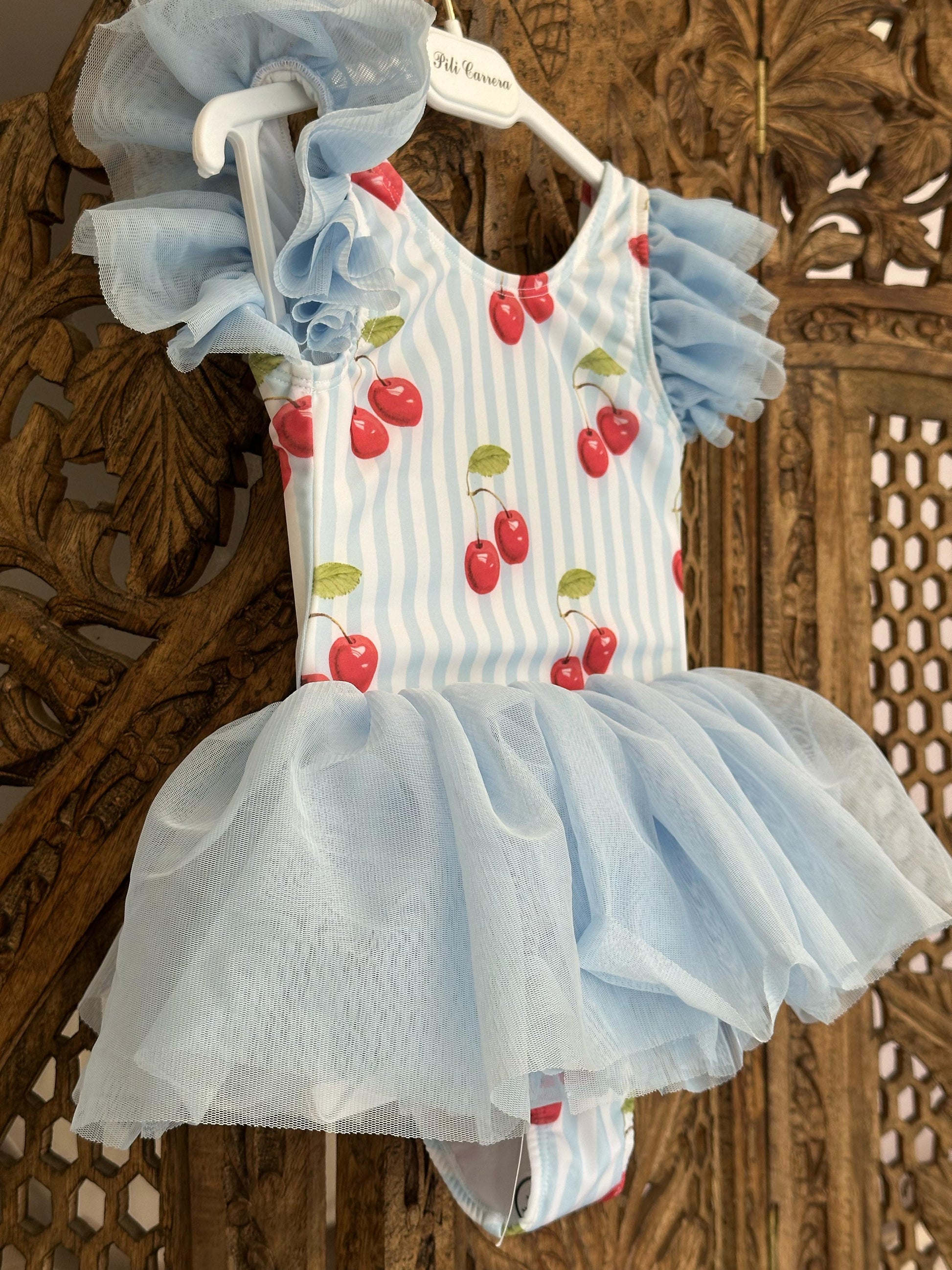 Roba banje me trup, me print qershia dhe detaj tyli ne bel.