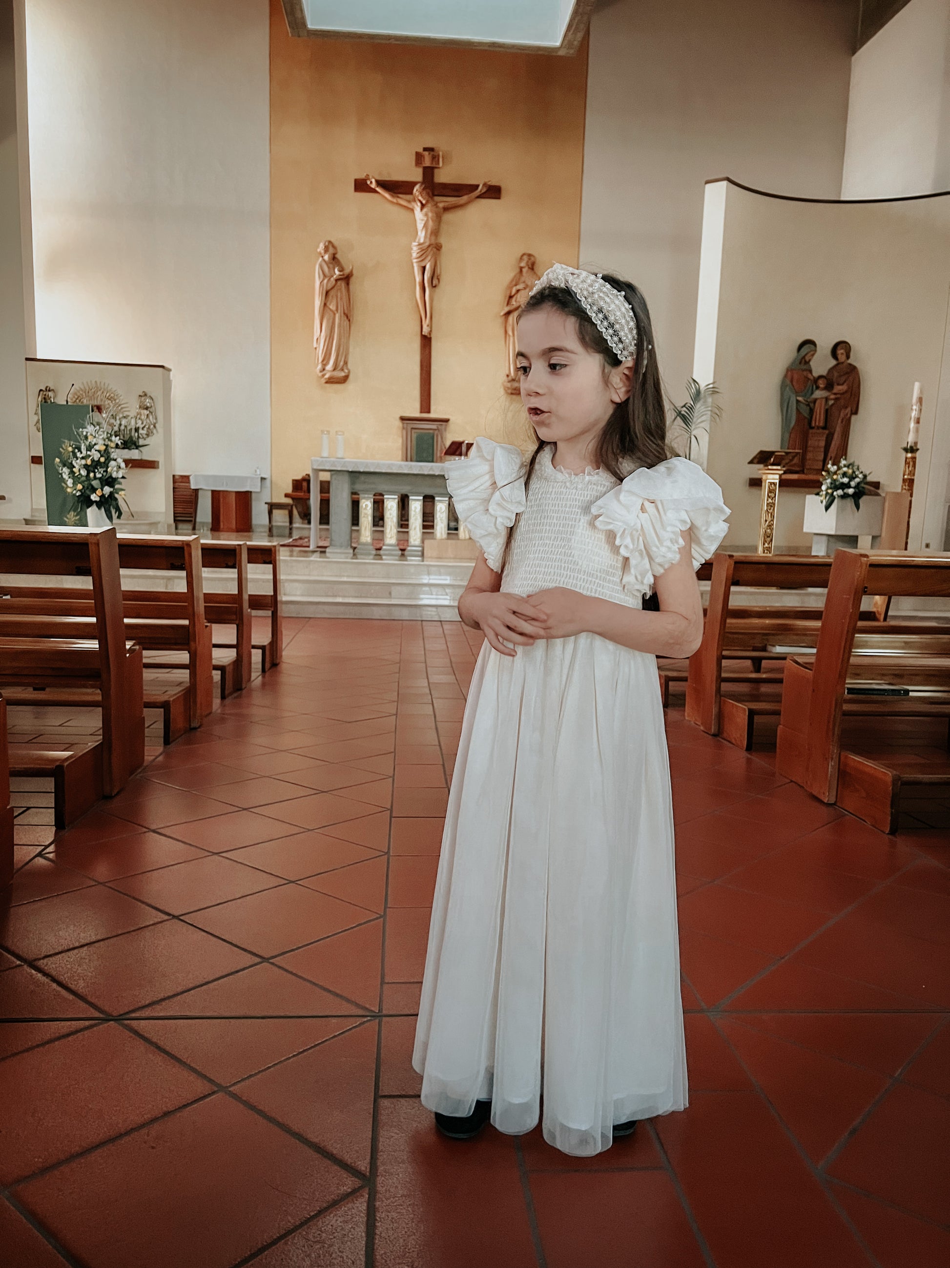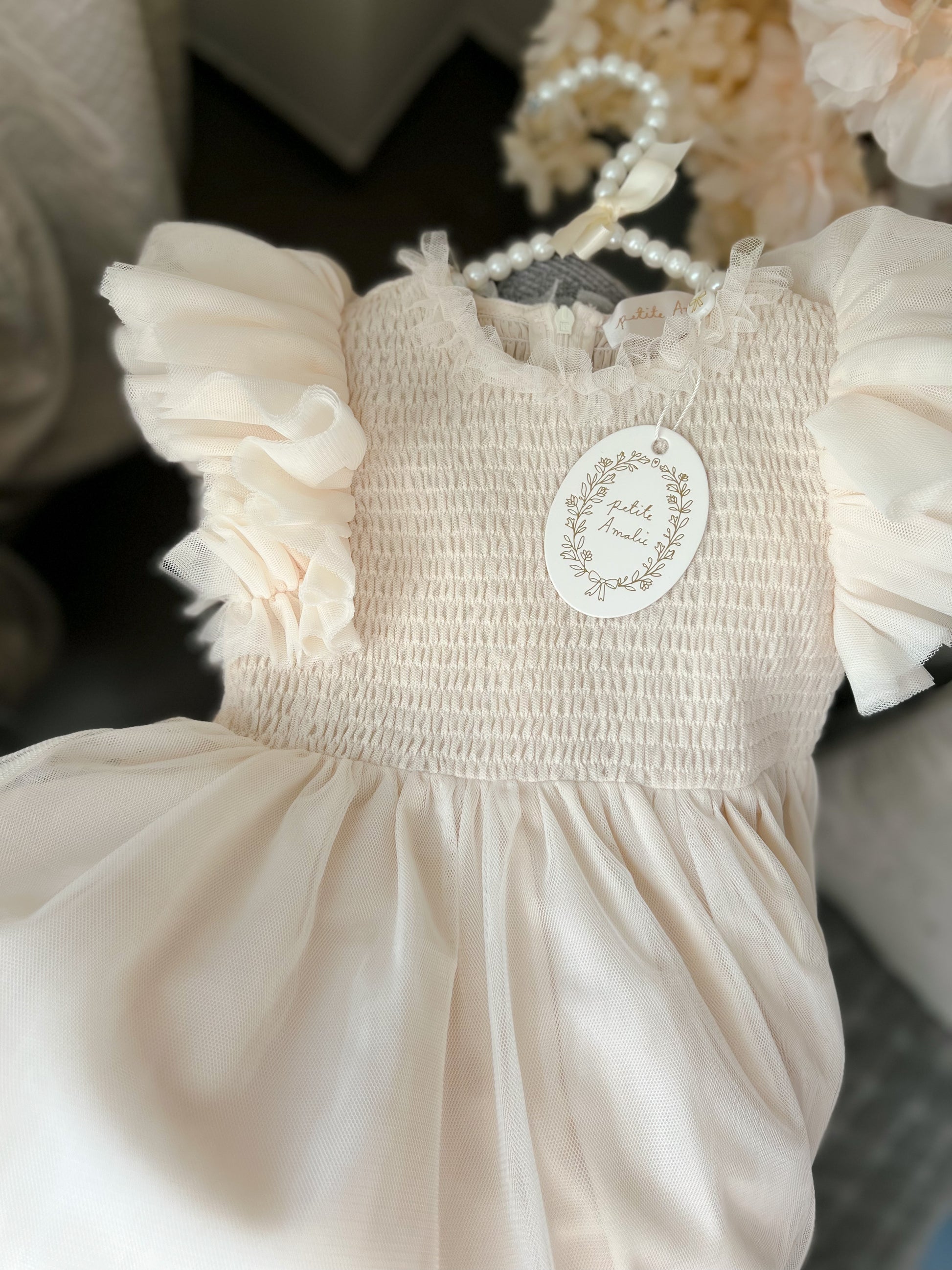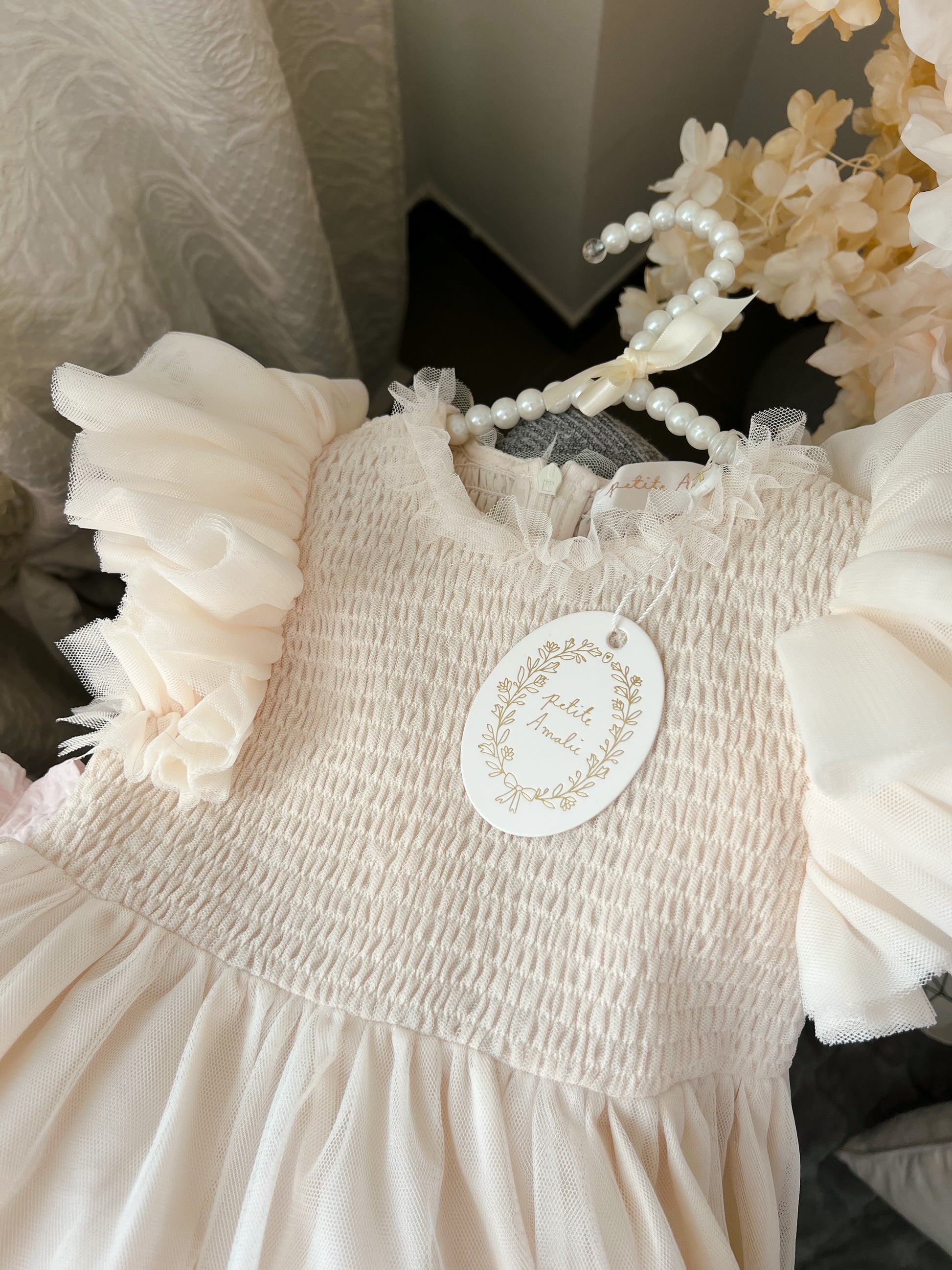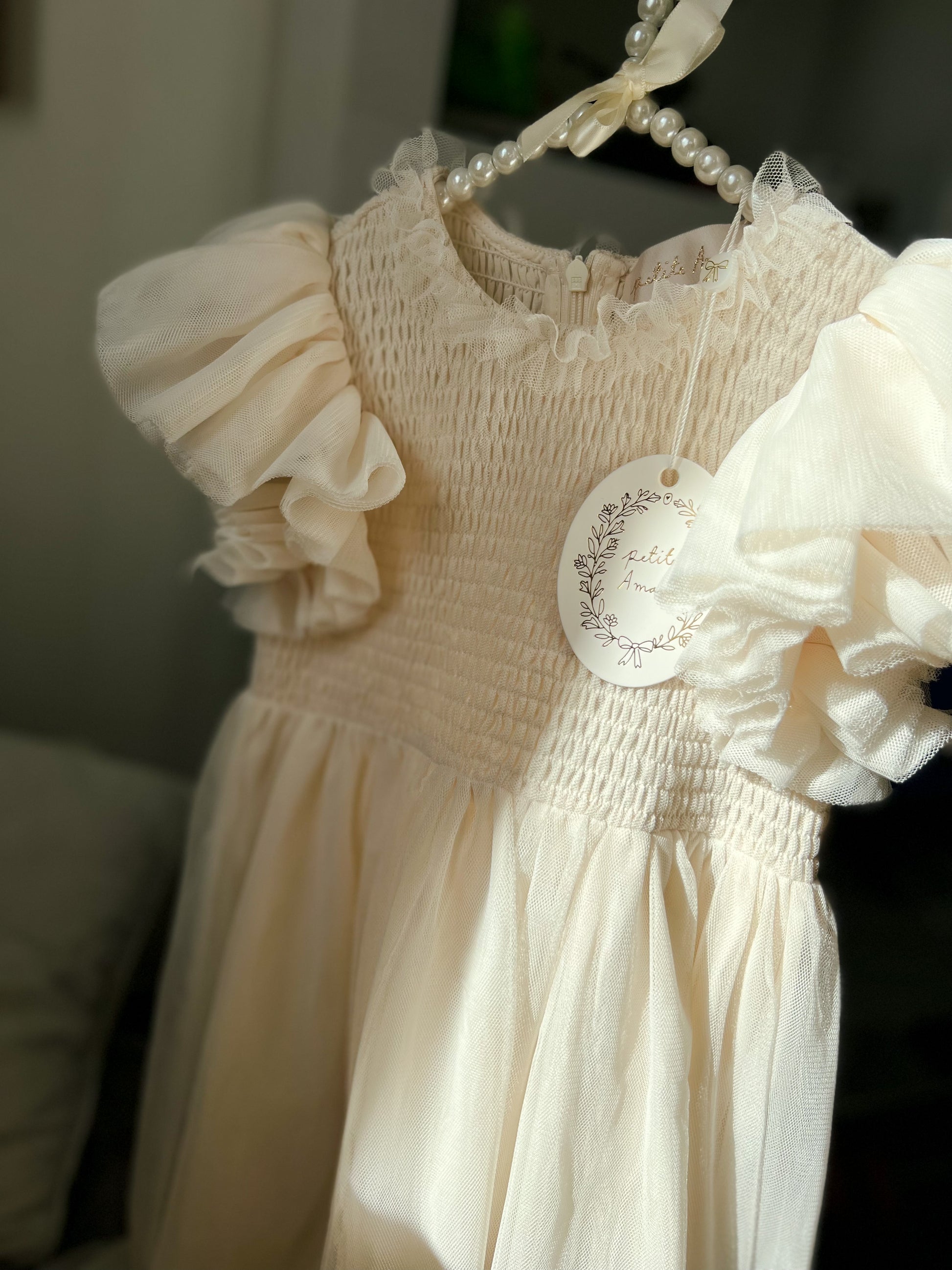 Fustan i gjate me extra gjatesi prej tyli te bute, ngjyre pana