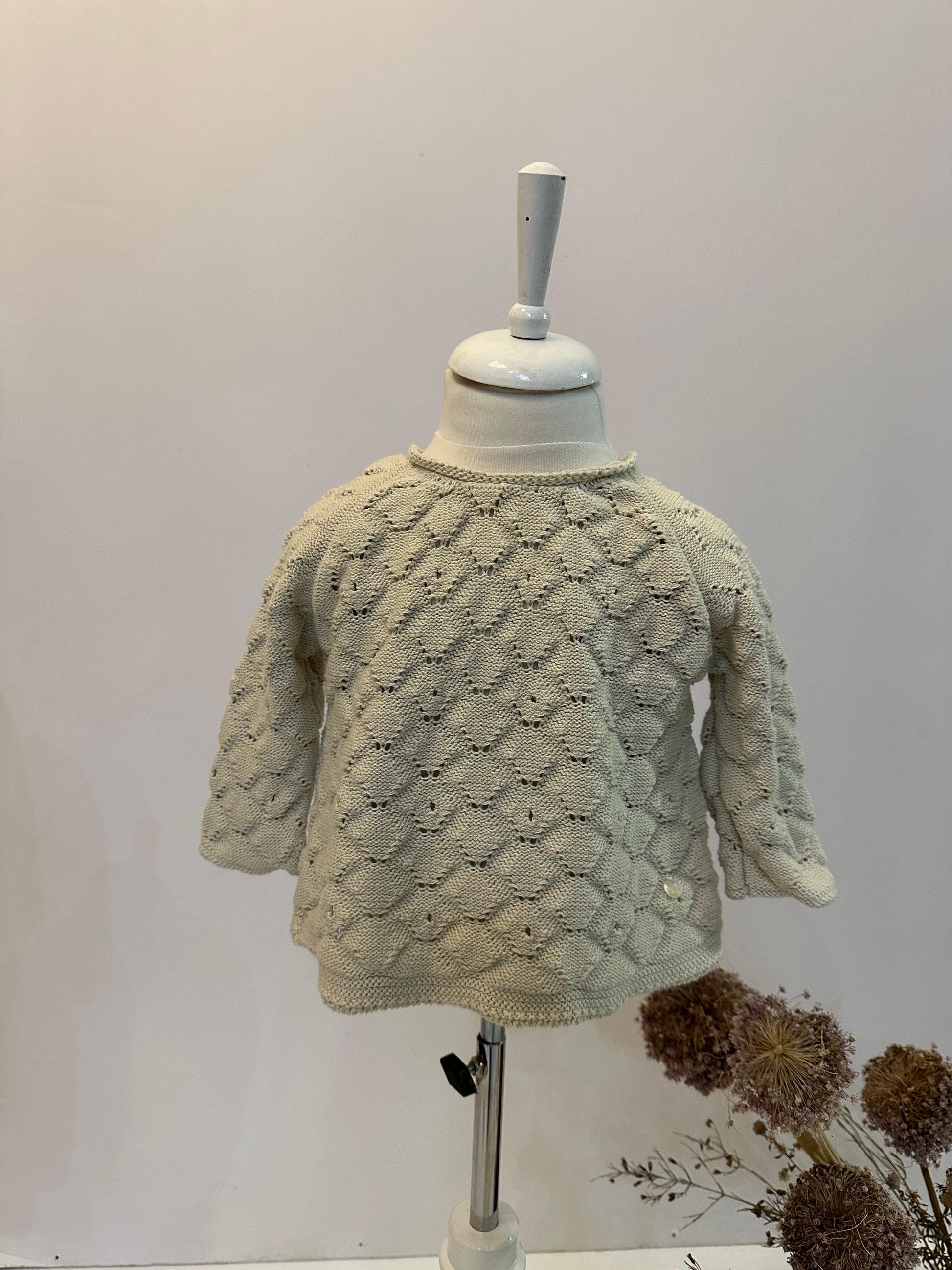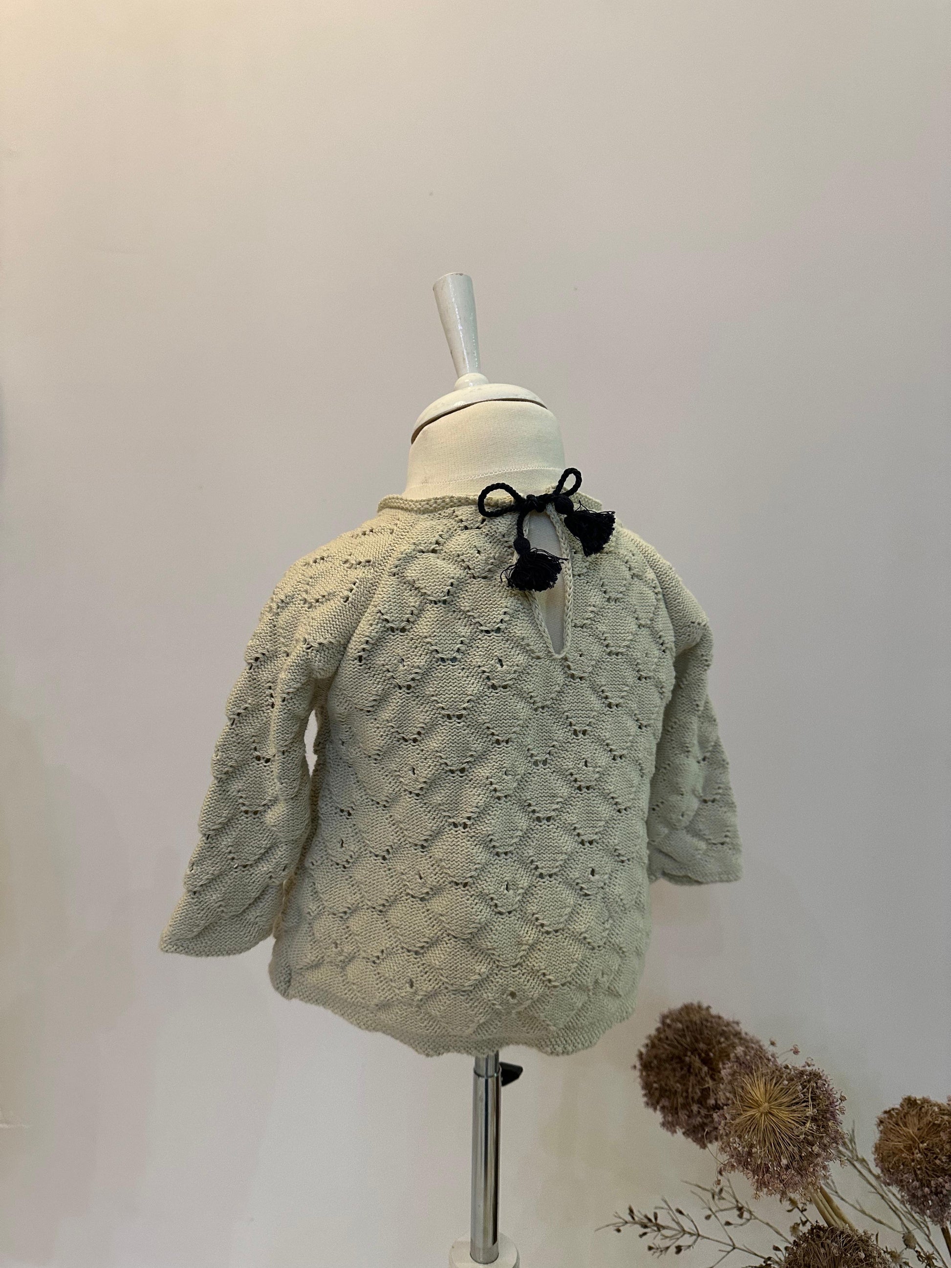 Triko bezhe me punim me fjongo blu mbrapa, stil marine